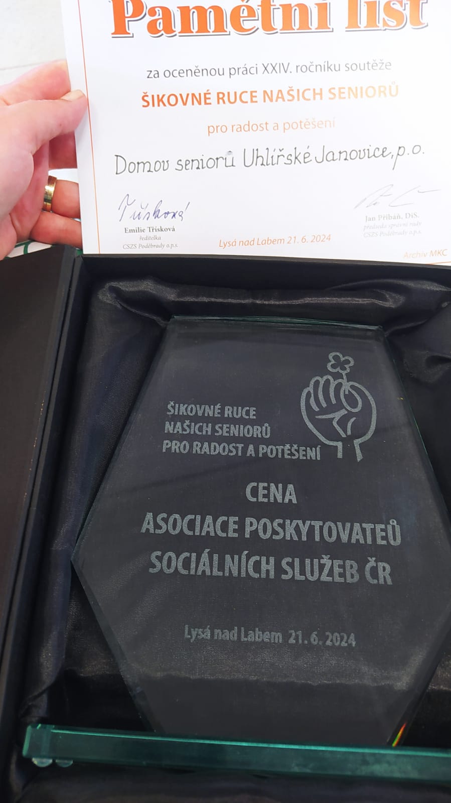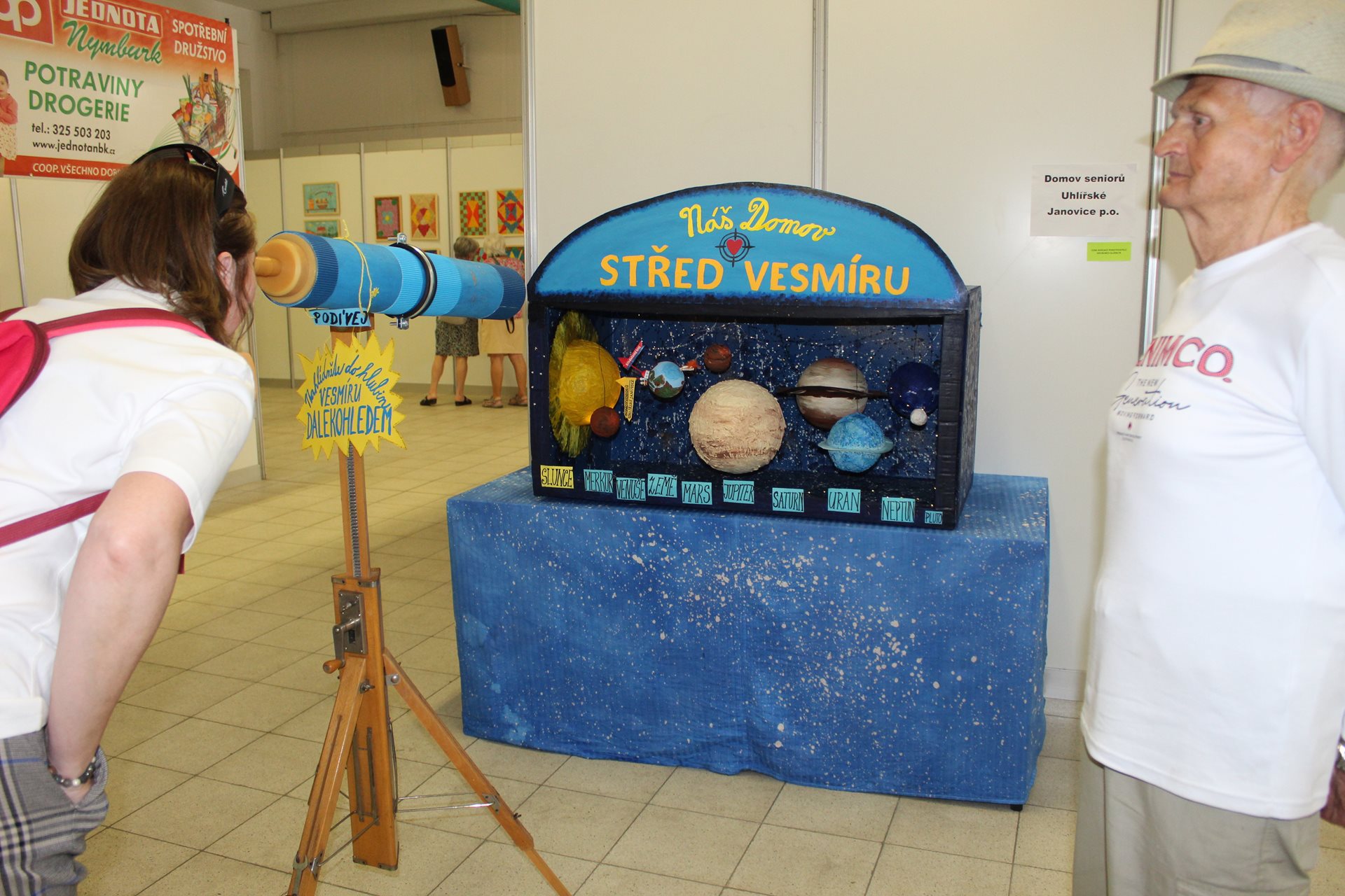 Na 24. ročníku výstavy "ŠIKOVNÉ RUCE NAŠICH SENIORŮ" v Lysé nad Labem jsme získali krásné ocenění - speciální cenu Asociace poskytovatelů sociálních služeb. Tým aktivizace s našimi klienty vytvořil dílo s názvem "Náš Domov - Střed vesmíru". Na realizaci se podíleli klienti i naši kolegové. Od pondělí je "vesmír" k vidění v našem Domově, kam jej chodí obdivovat návštěvy a dokonce i děti z místní mateřské školy. Úspěch nás moc těší a kolegům i klientům k ocenění gratulujeme.