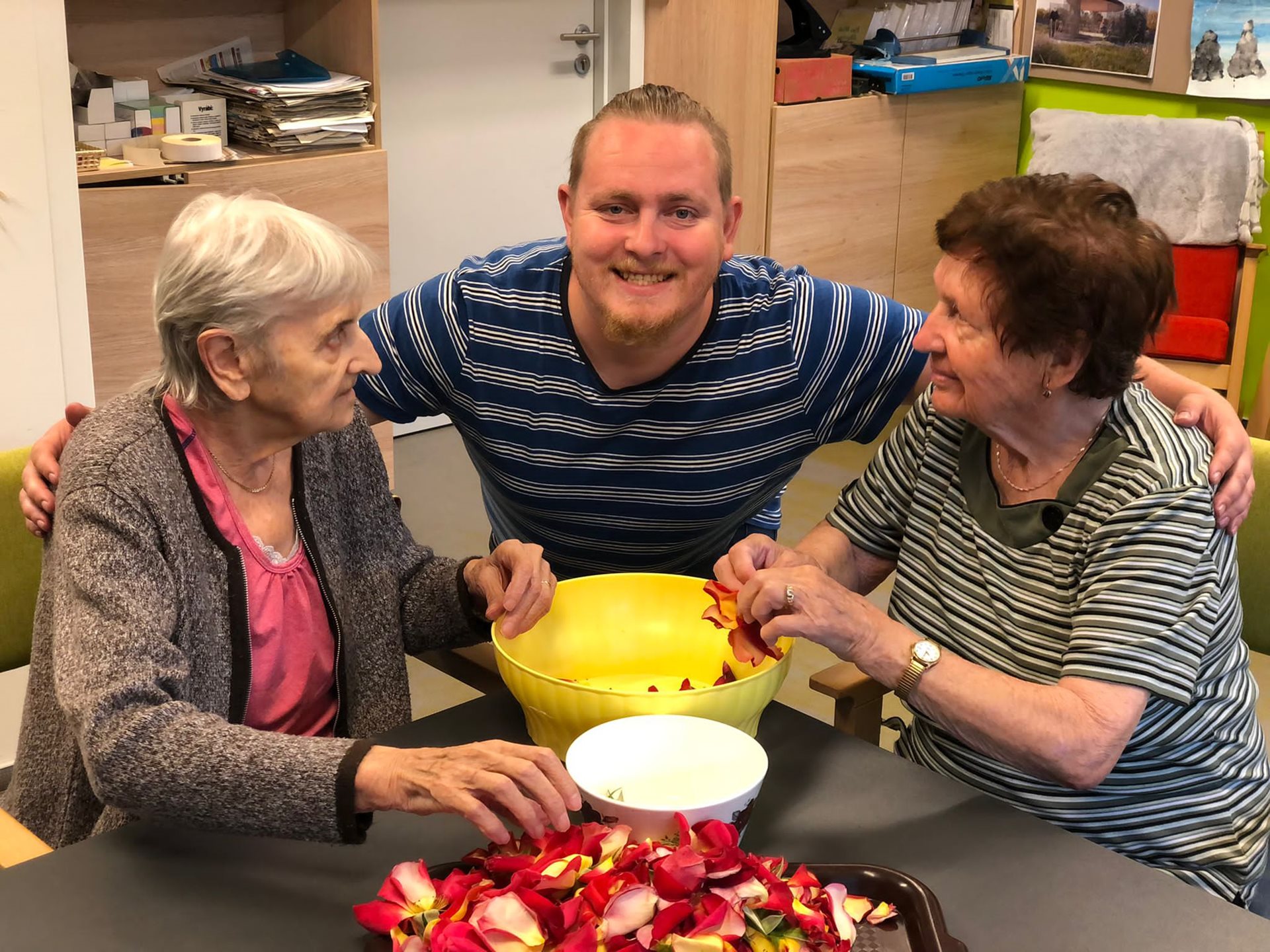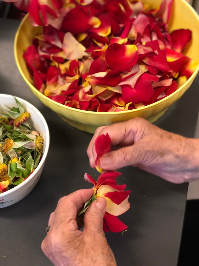 - Trhání lístků růží do vonných sáčků