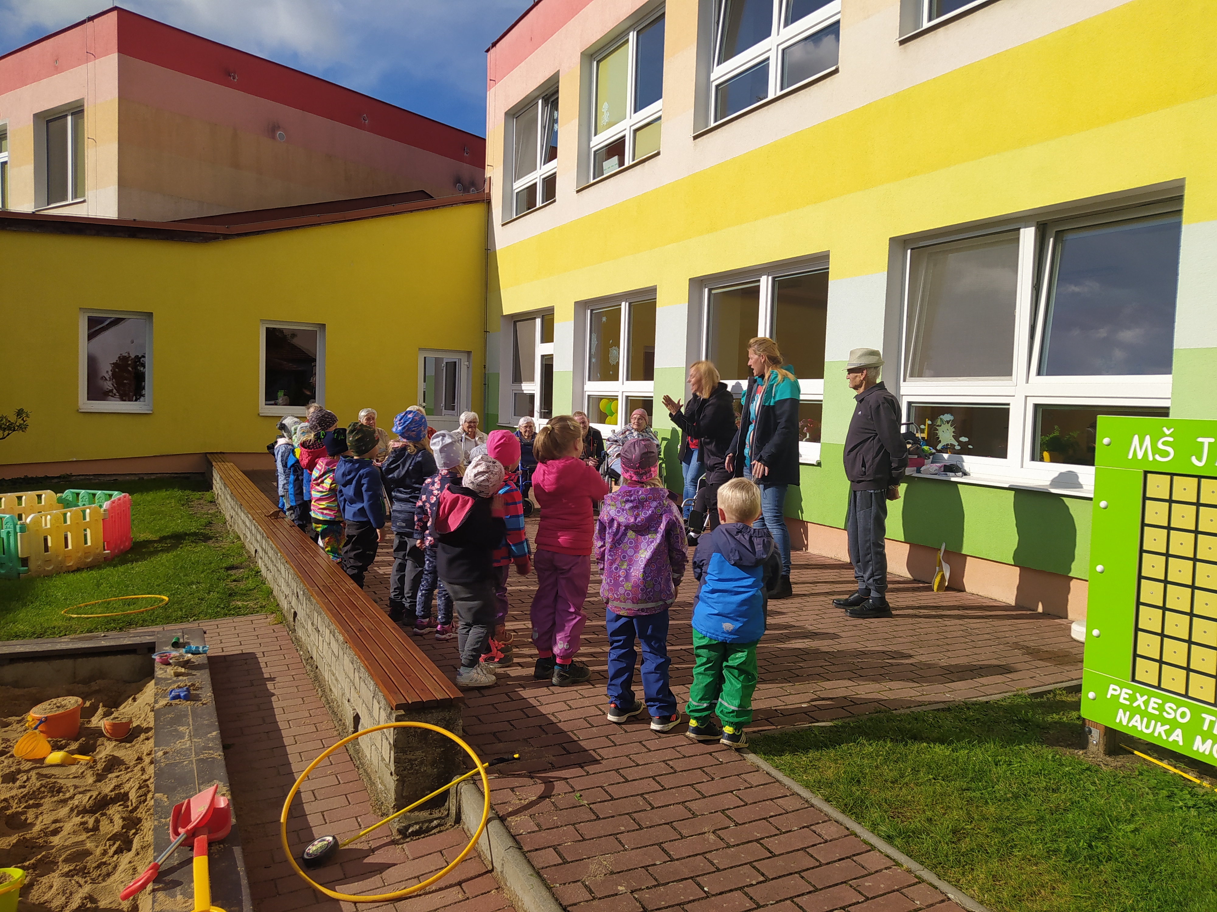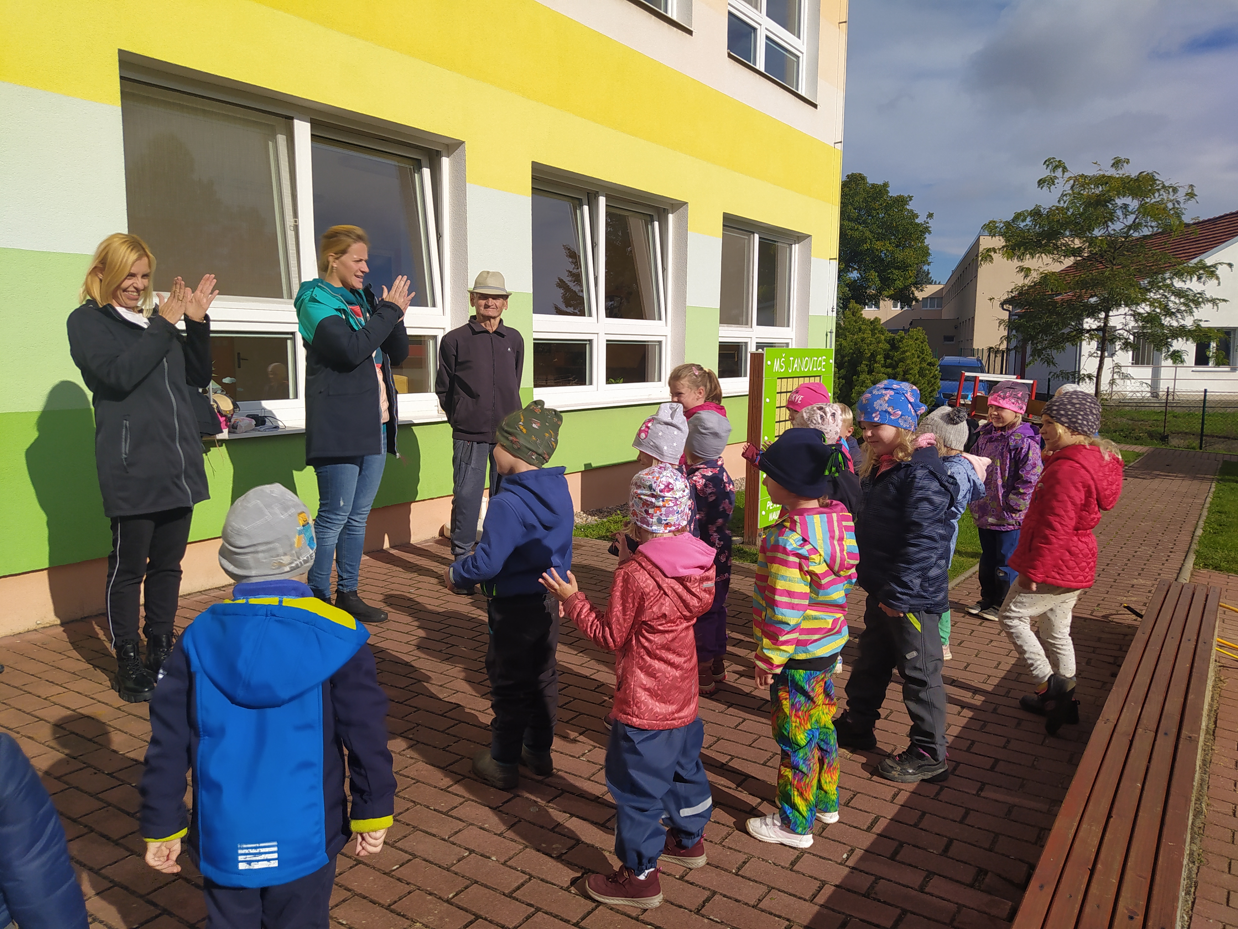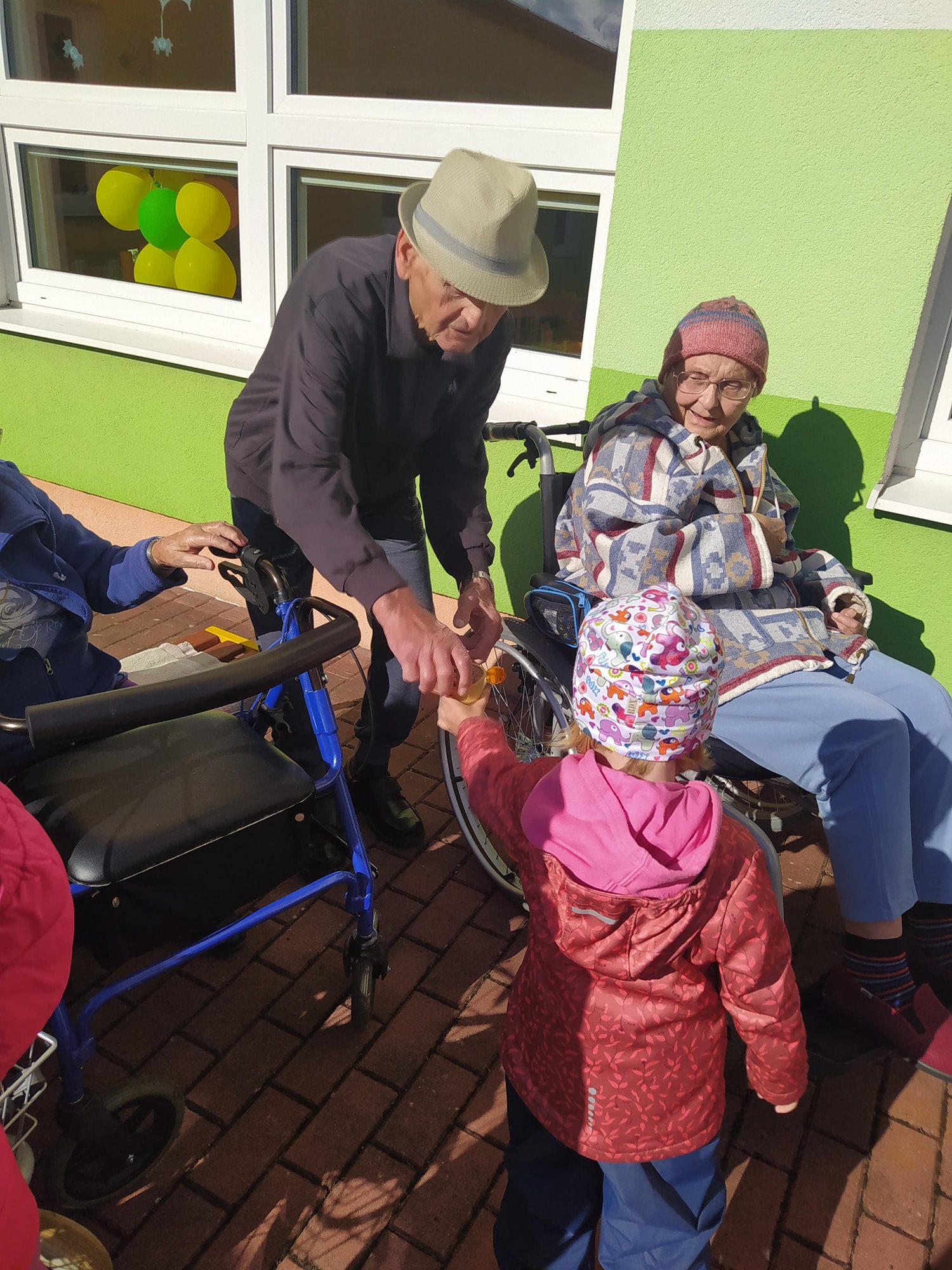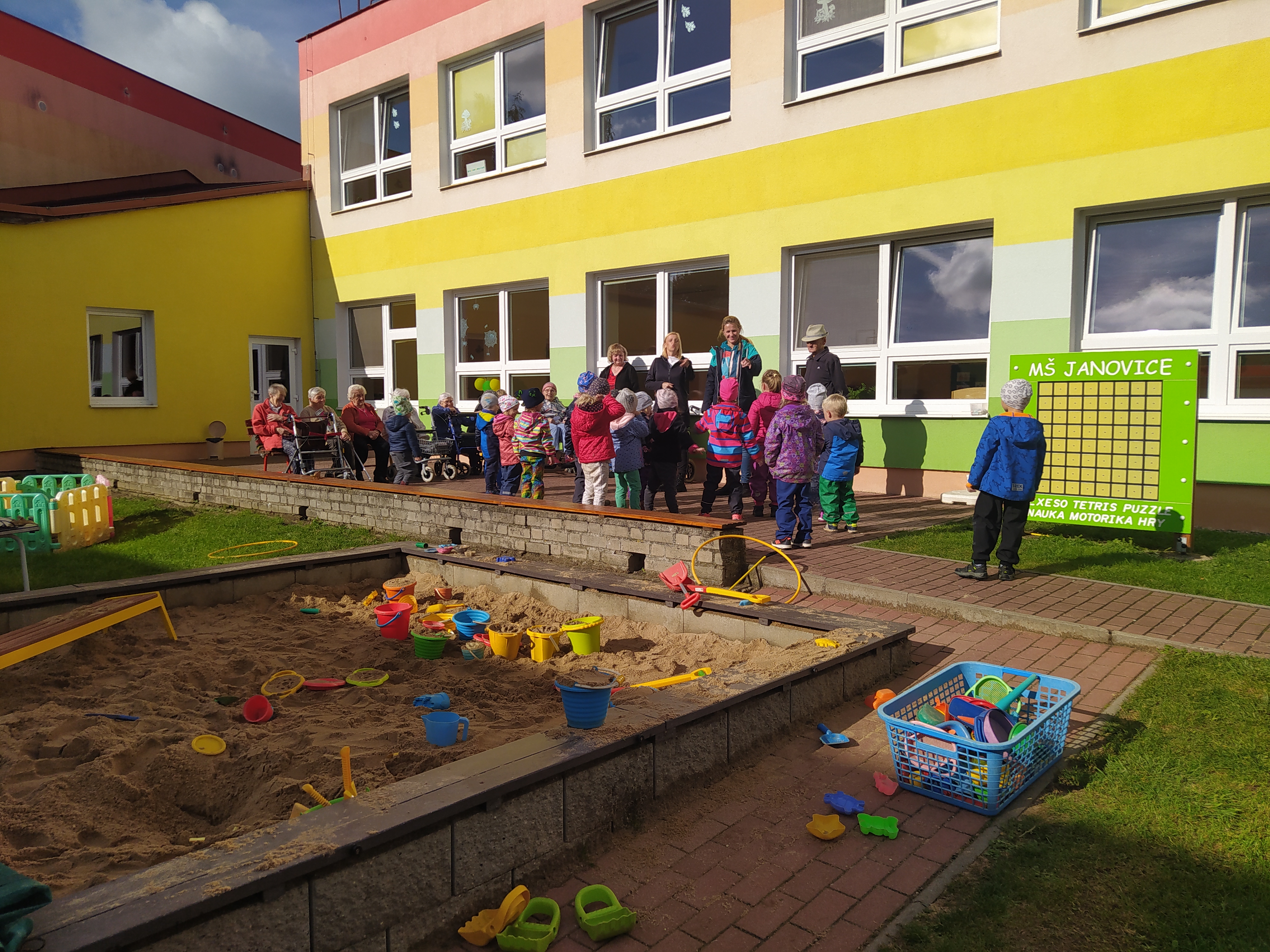 Navštívili jsme děti z místí mateřinky, od dětí jsme dostali obrázky, zazpívaly nám a uvařily dobrůtky z písku.