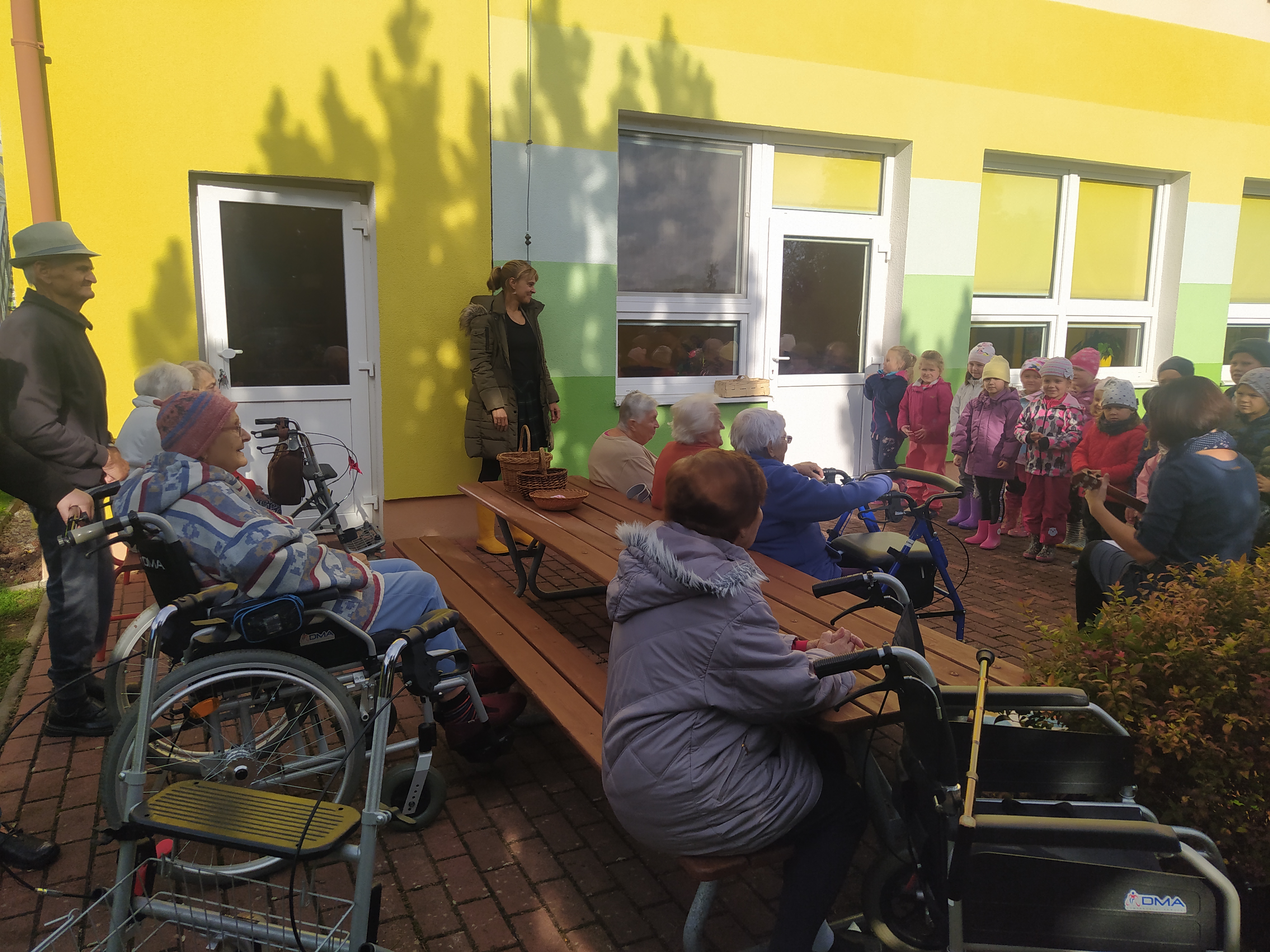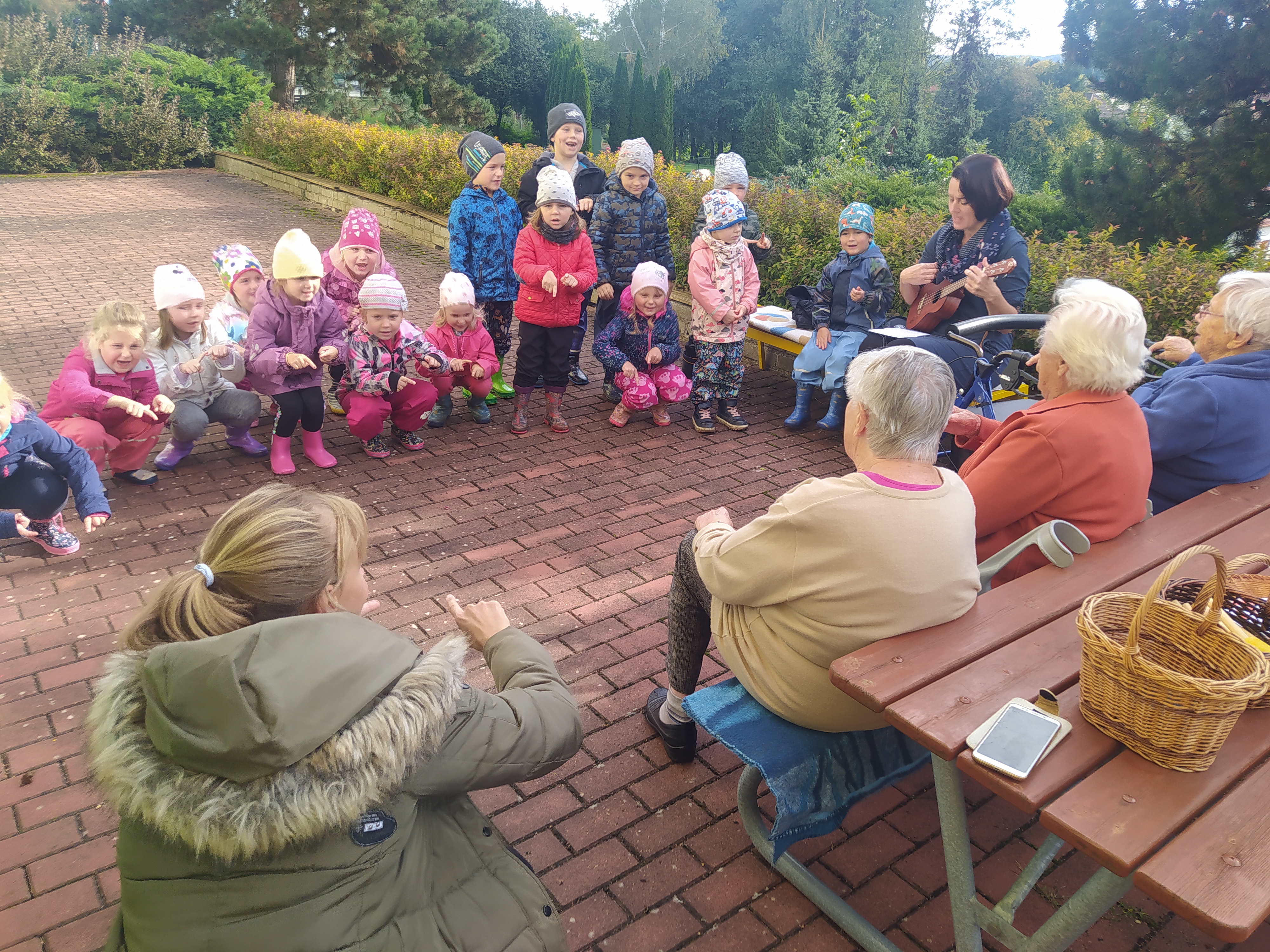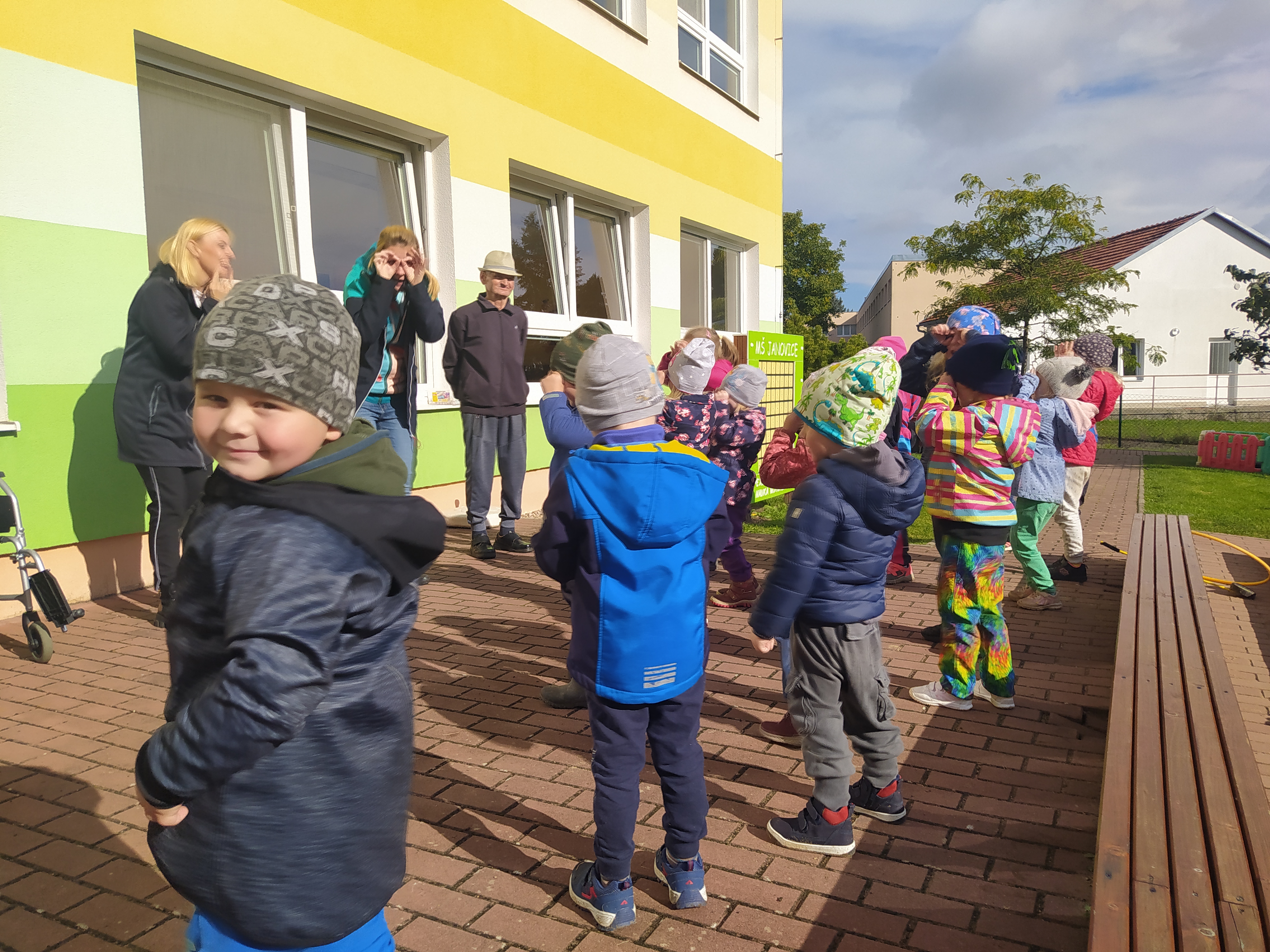 Navštívili jsme děti z místí mateřinky, od dětí jsme dostali obrázky, zazpívaly nám a uvařily dobrůtky z písku.