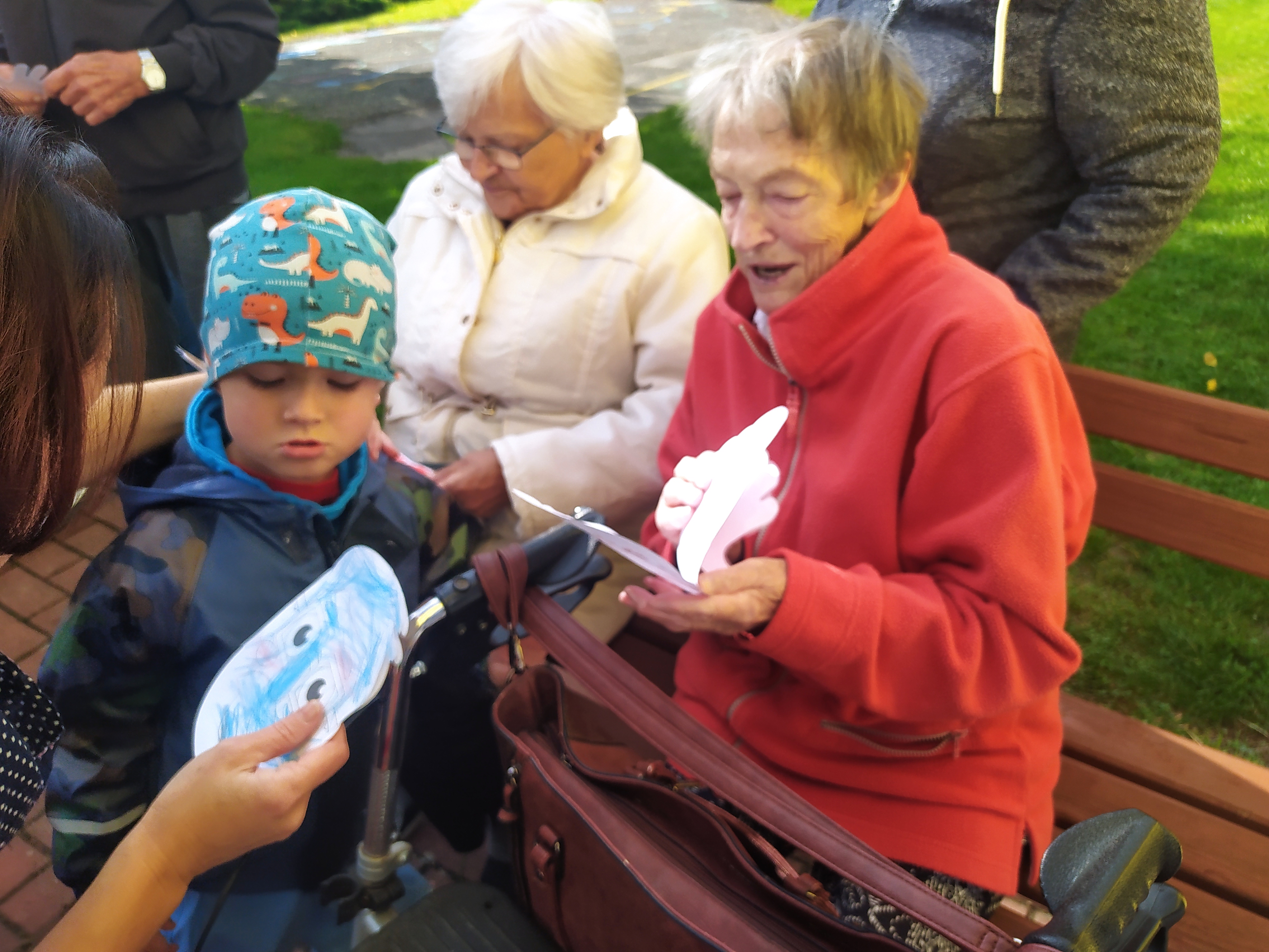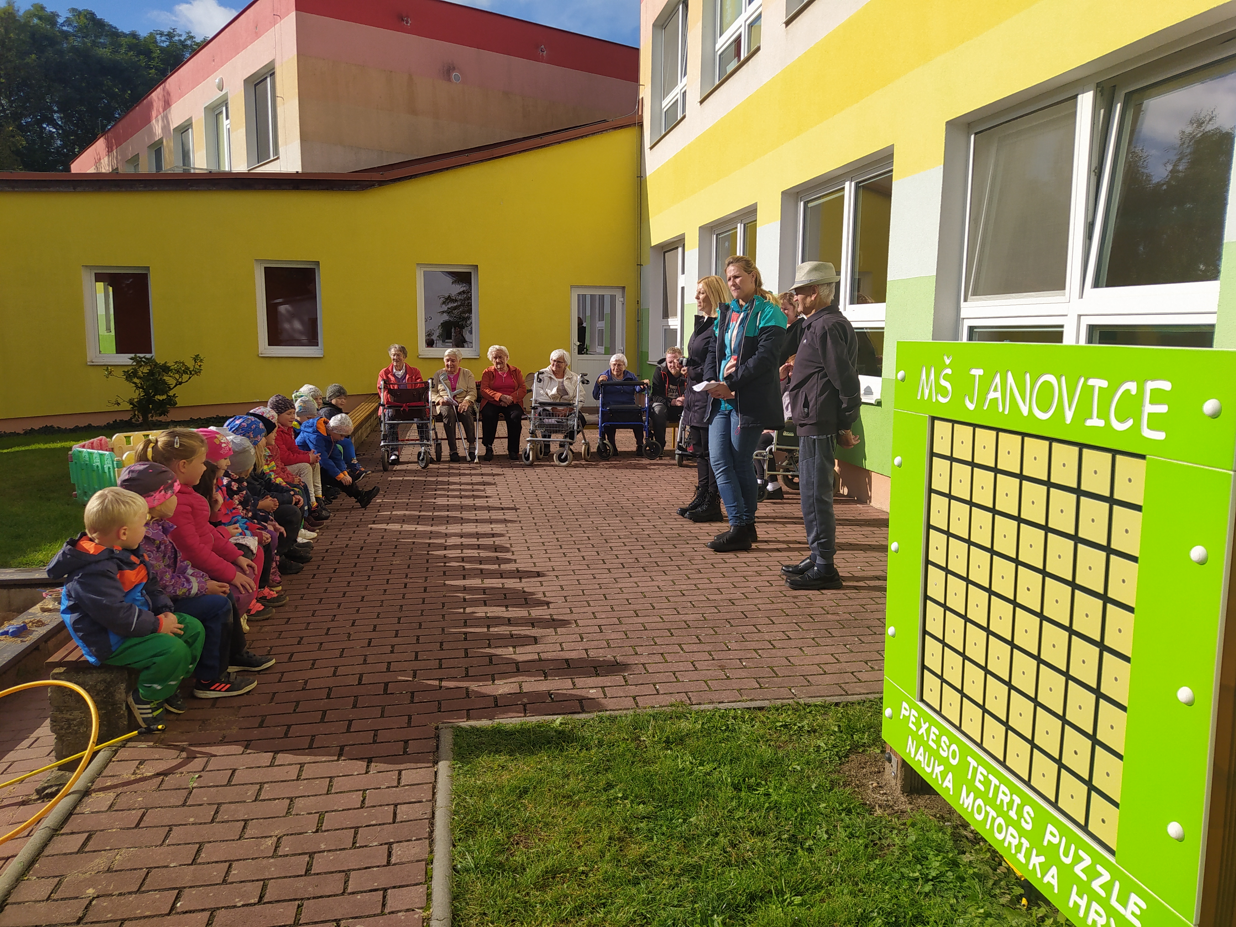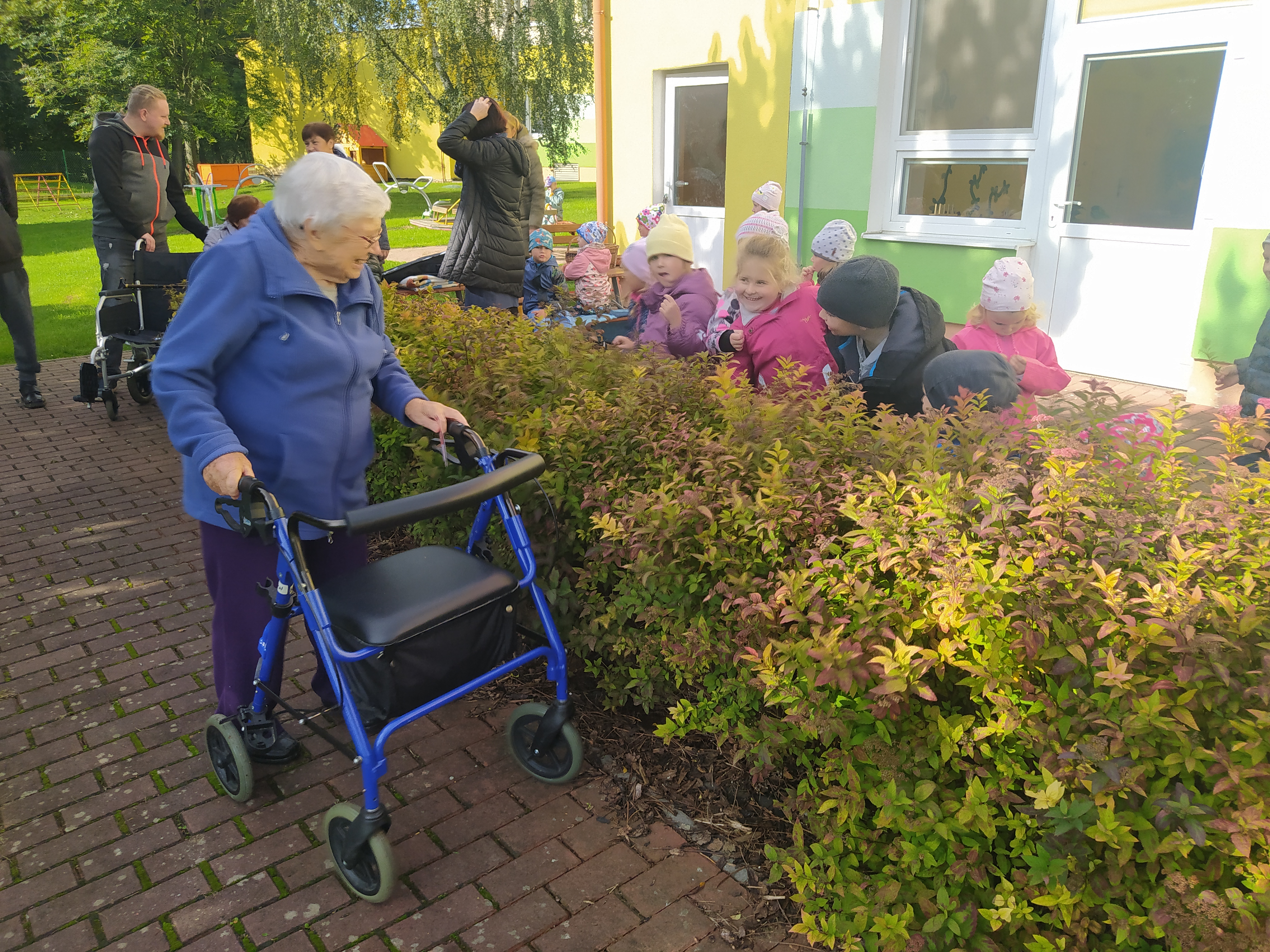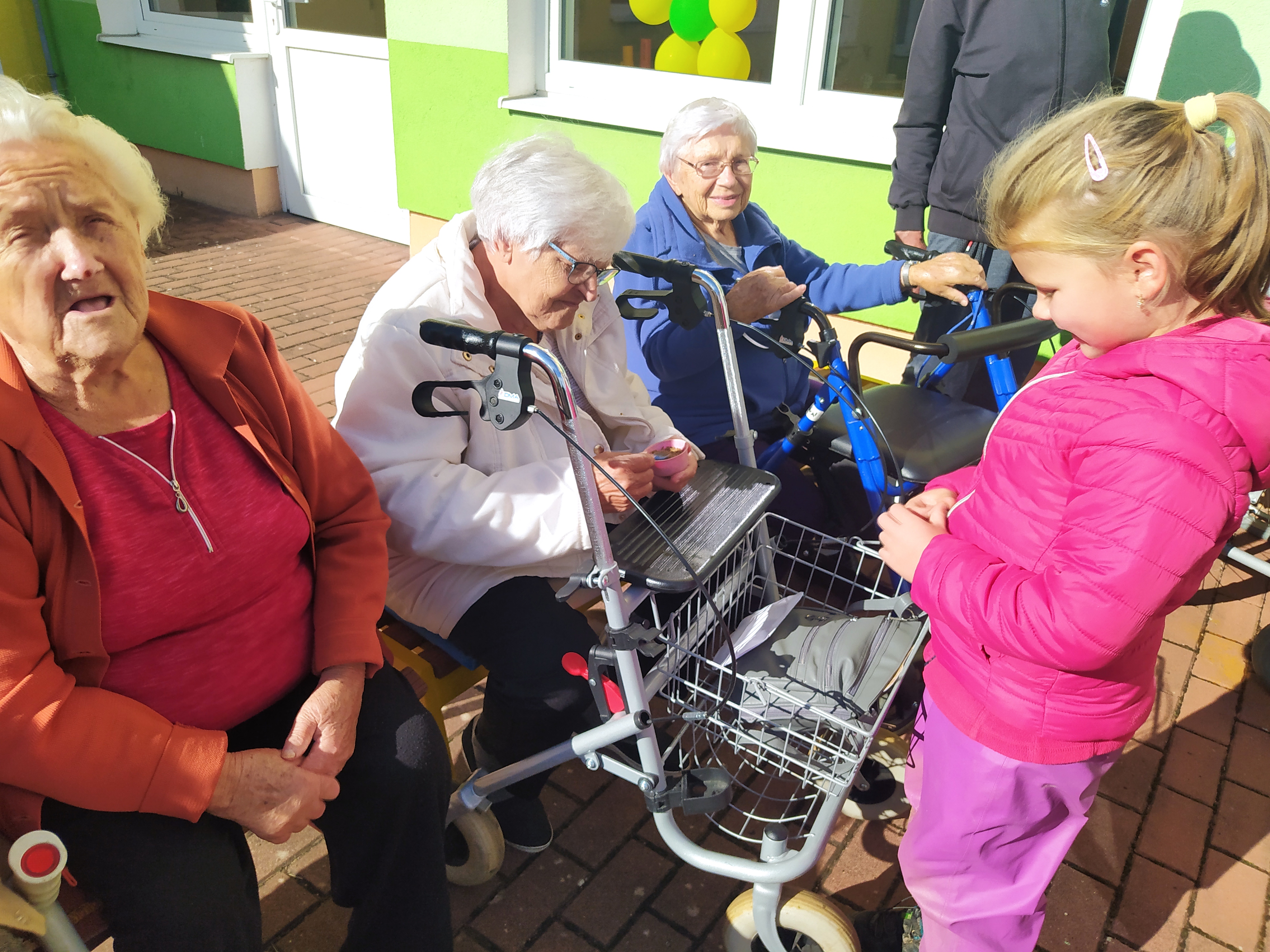 Navštívili jsme děti z místí mateřinky, od dětí jsme dostali obrázky, zazpívaly nám a uvařily dobrůtky z písku.