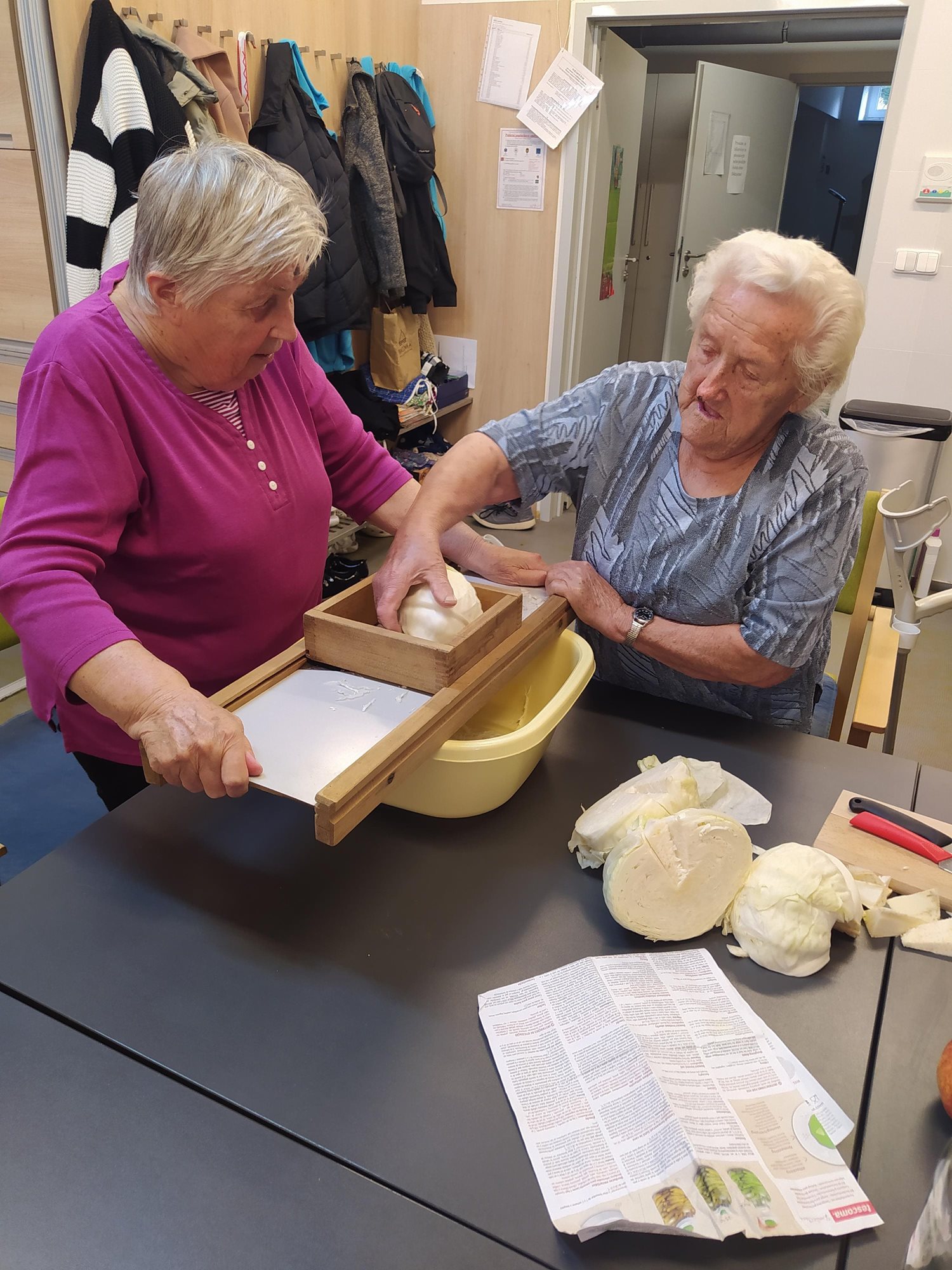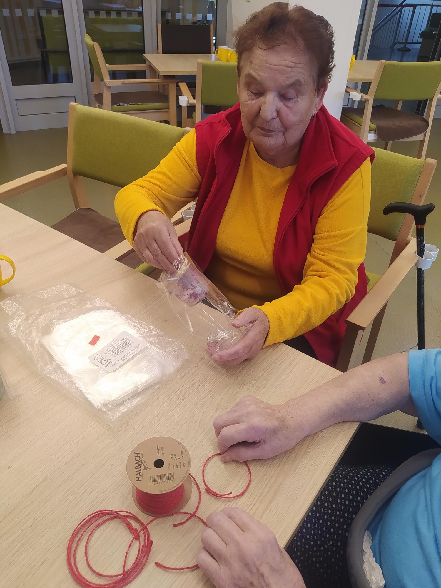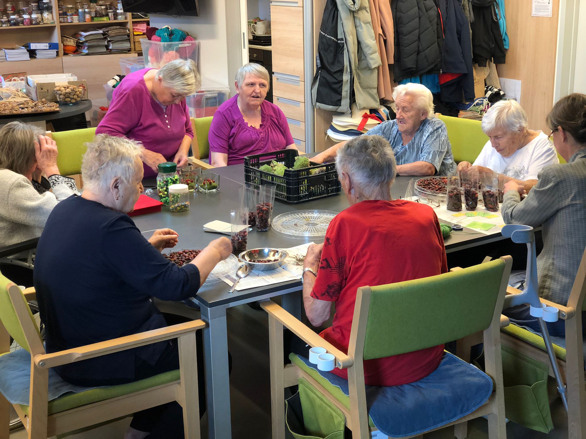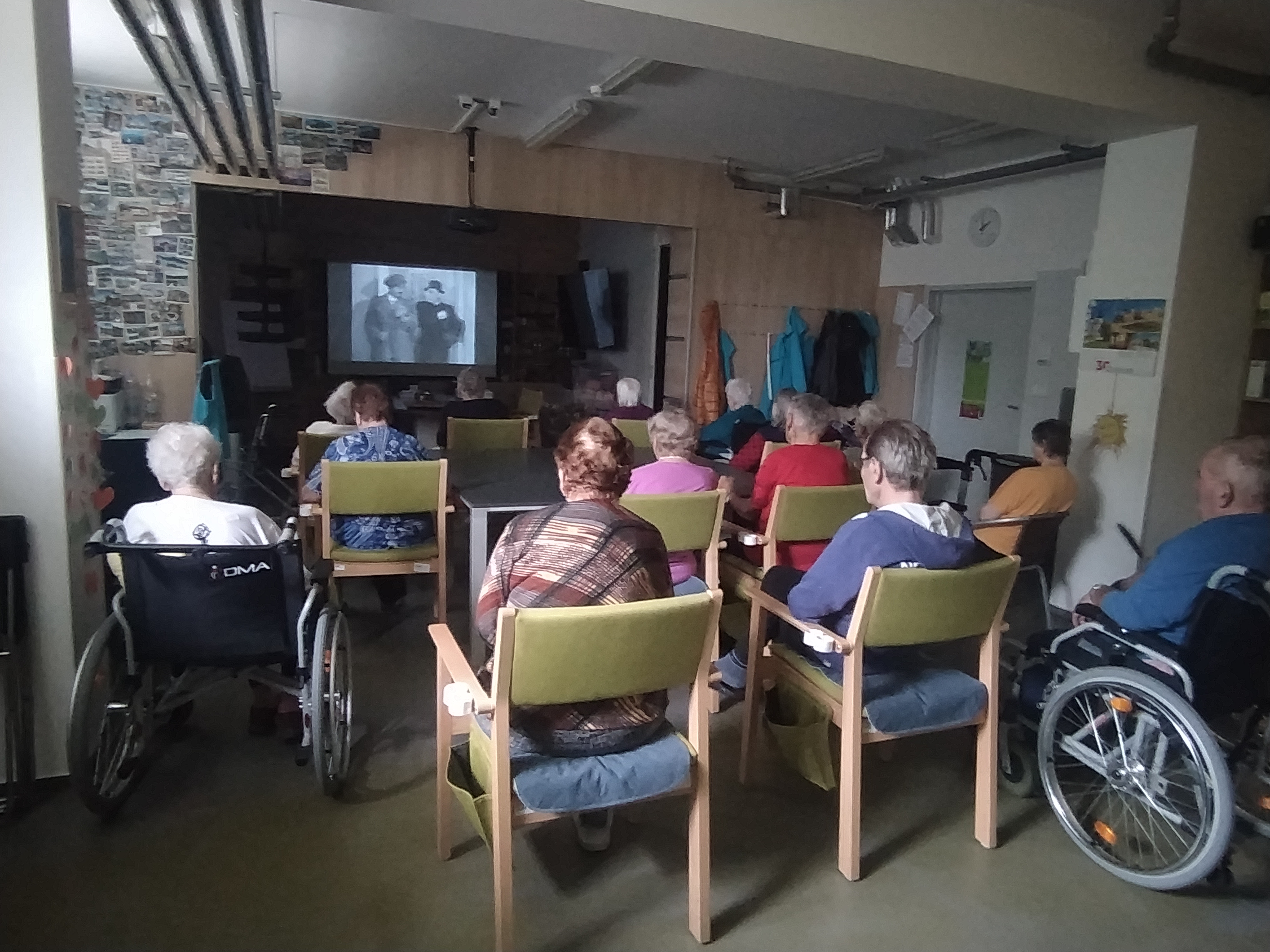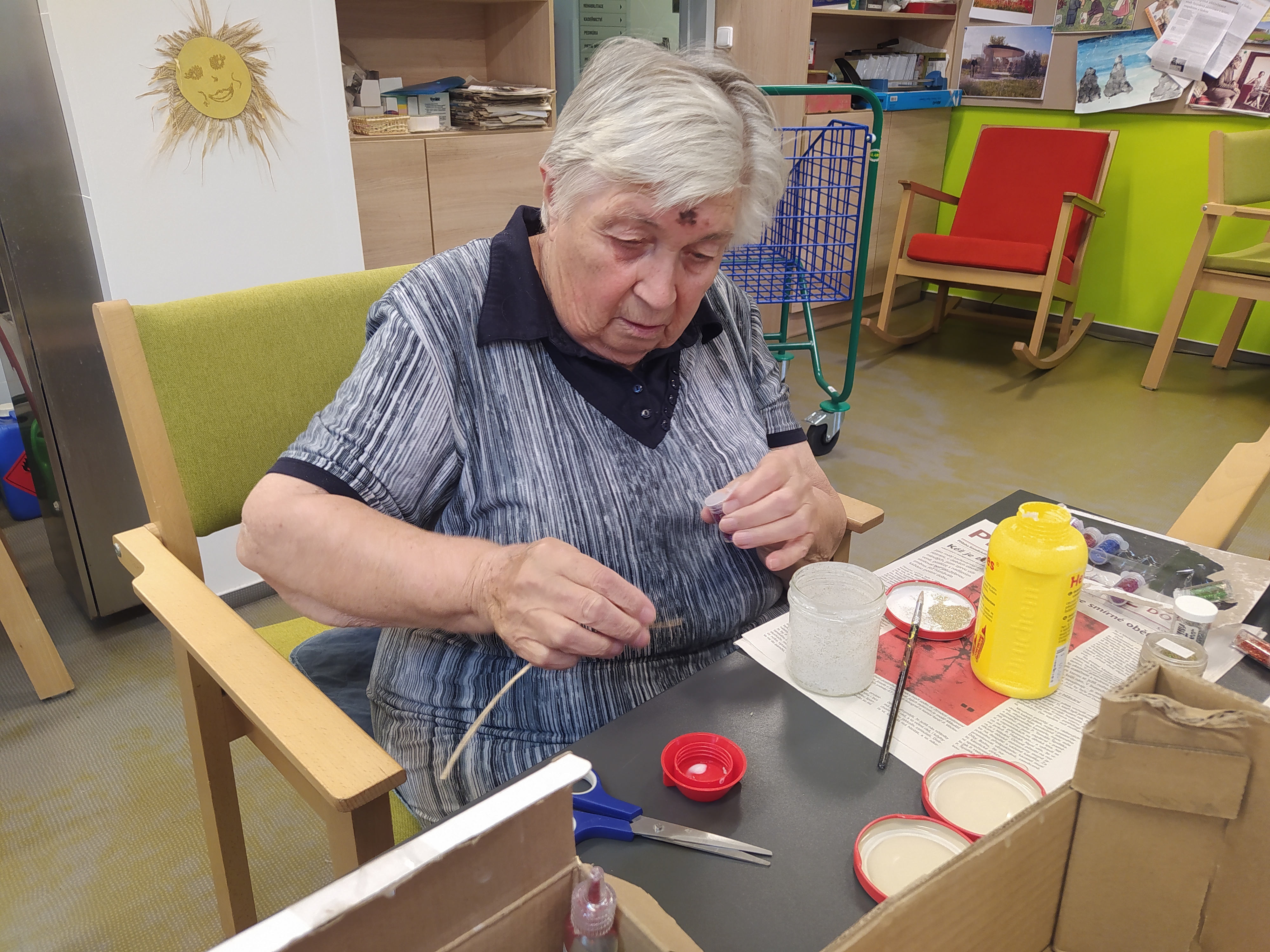 Během října jsme toho opět stihli hodně. Tvořili jsme podzimní motivy, vyráběli svícínky, pekli bábovky, sbírali ořechy, které jsme poté vyloupali a zdobili. Společný čas jsme strávili u cvičení, zpívání a procházkách. Aktivizace se na odpoledne změnila na biograf. Potěšili nás psí společníci při canisterapii. Naložili jsme zelí, které jsme si i nakrouhali.