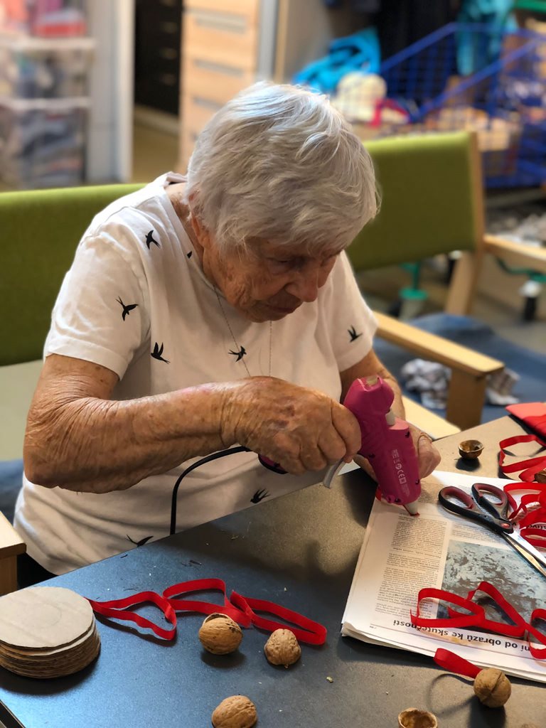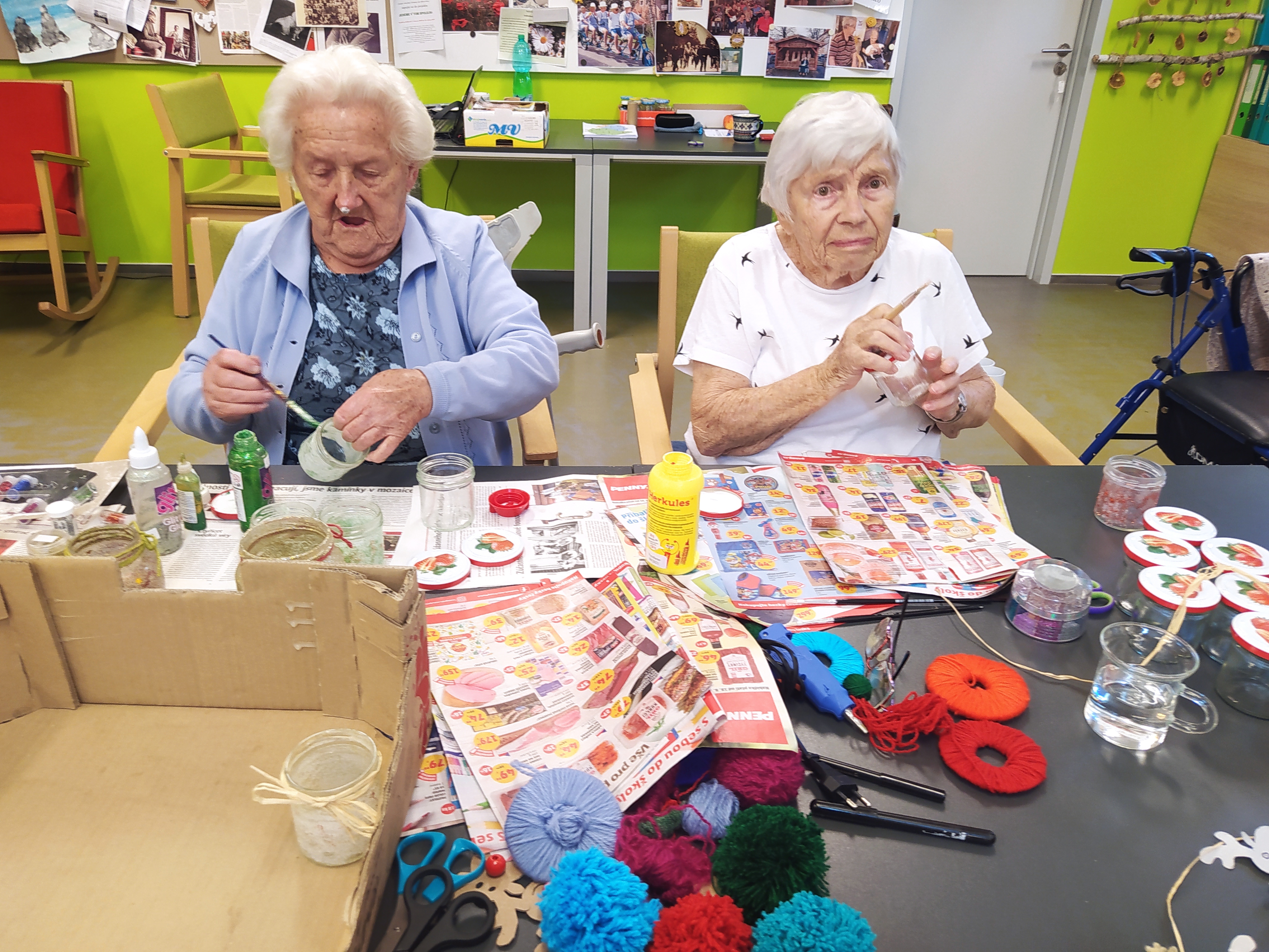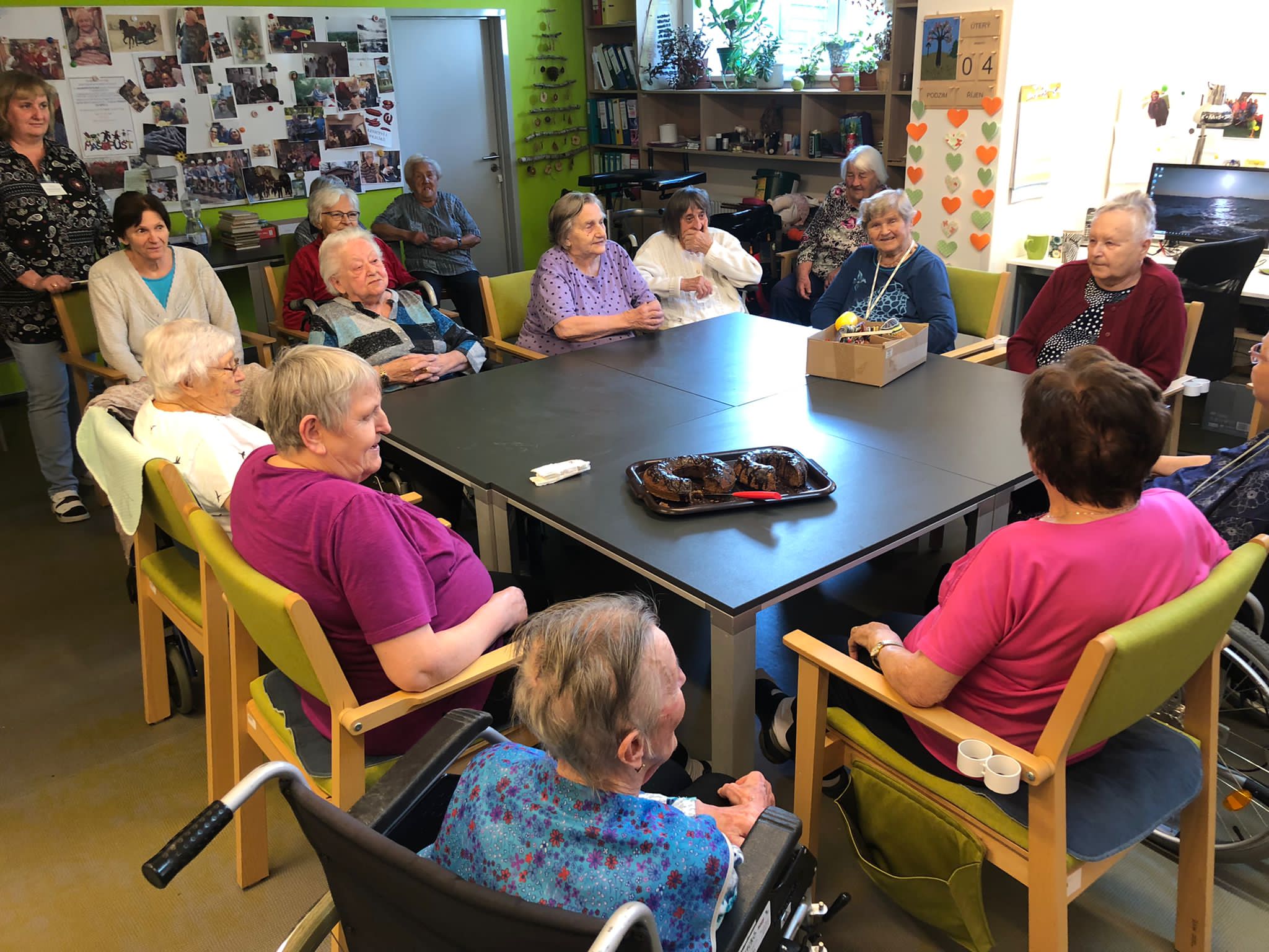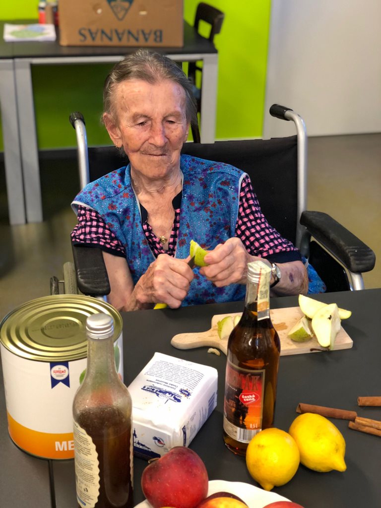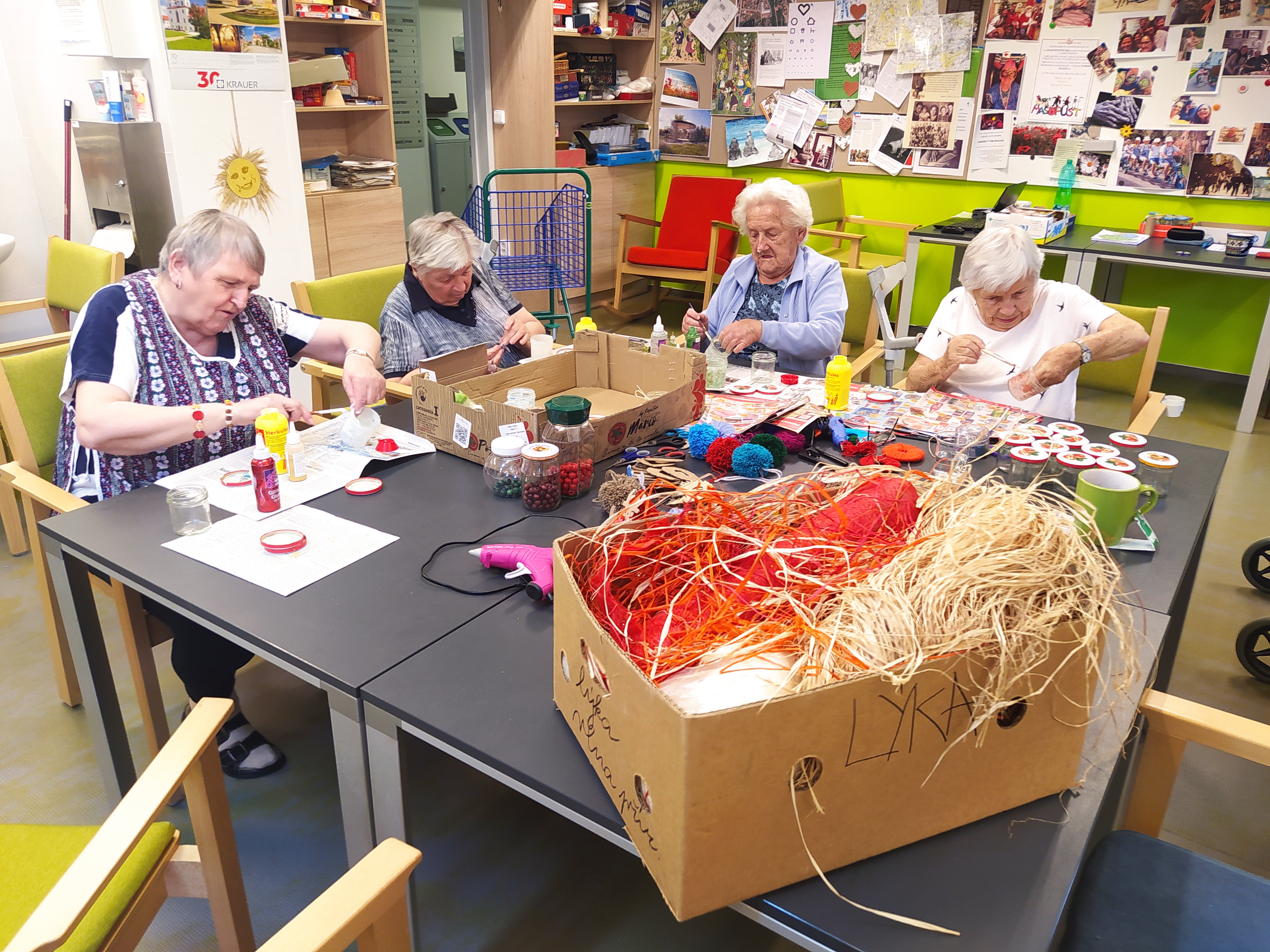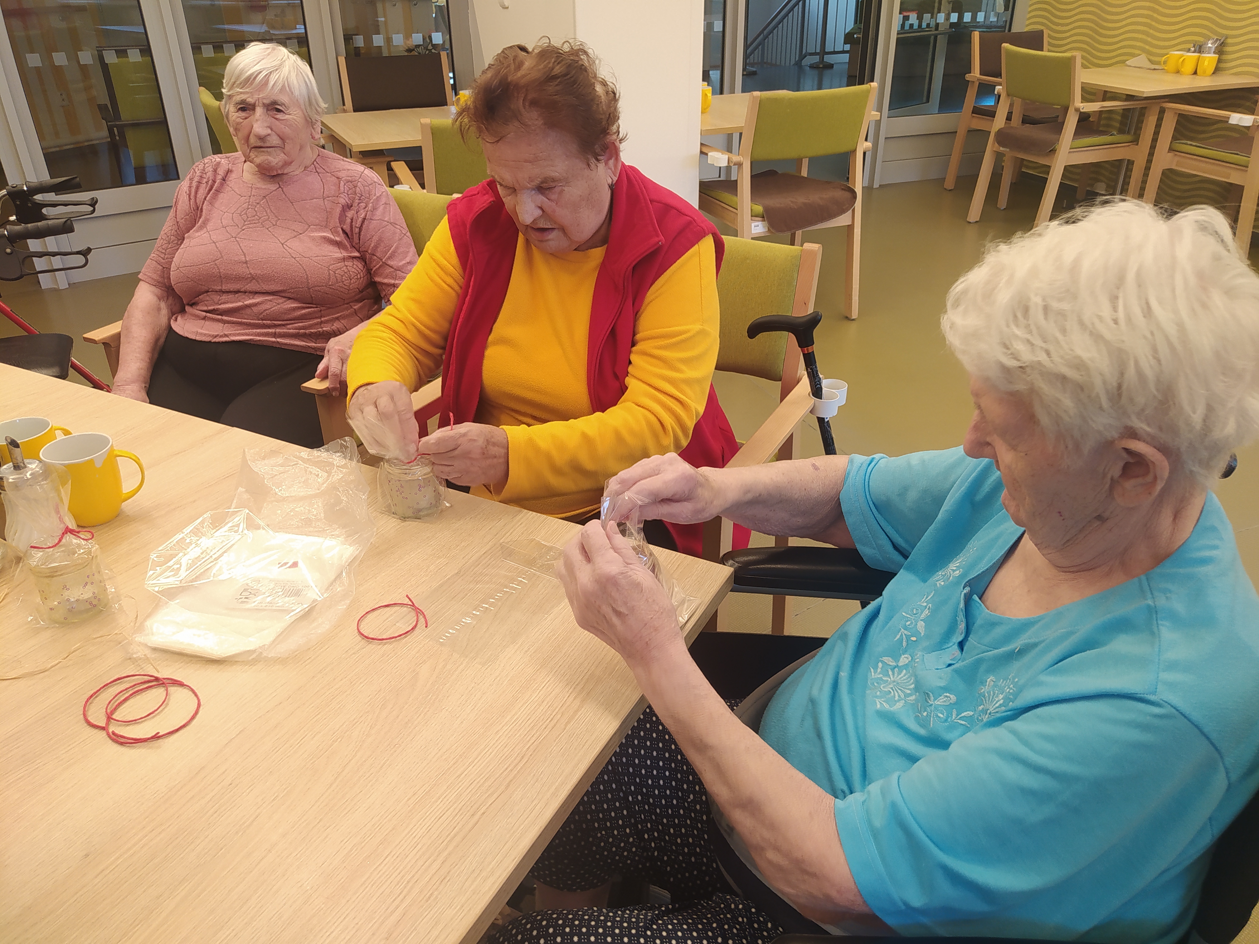Během října jsme toho opět stihli hodně. Tvořili jsme podzimní motivy, vyráběli svícínky, pekli bábovky, sbírali ořechy, které jsme poté vyloupali a zdobili. Společný čas jsme strávili u cvičení, zpívání a procházkách. Aktivizace se na odpoledne změnila na biograf. Potěšili nás psí společníci při canisterapii. Naložili jsme zelí, které jsme si i nakrouhali.