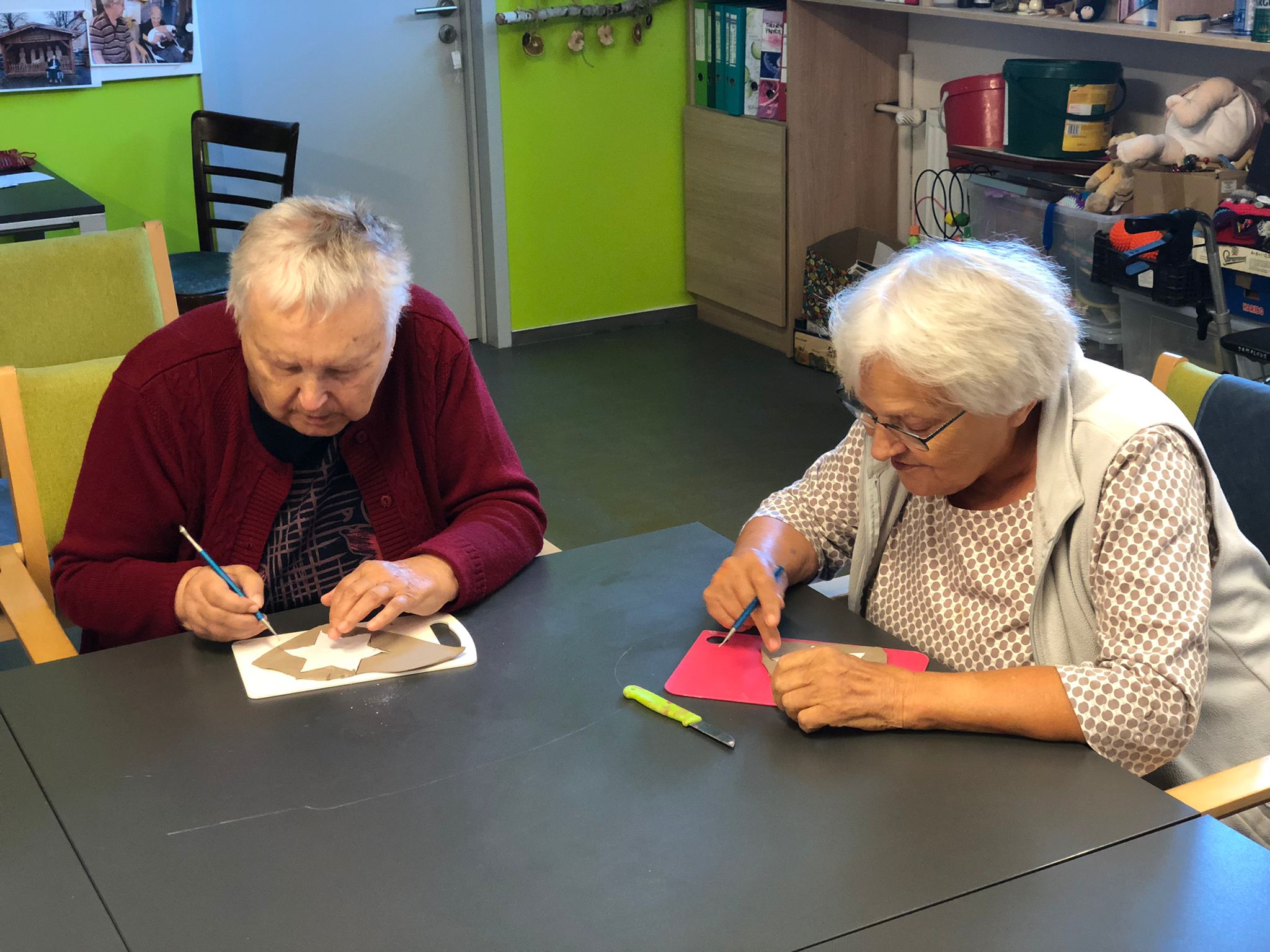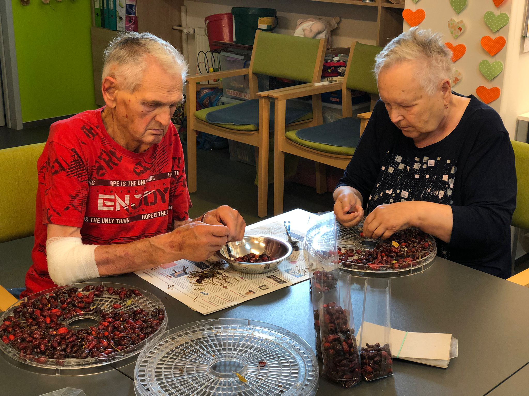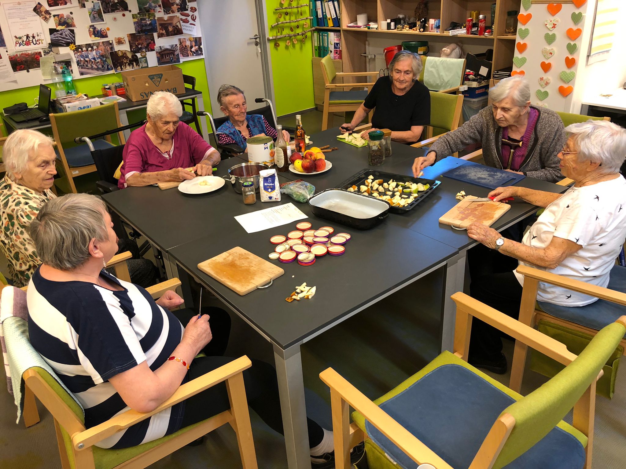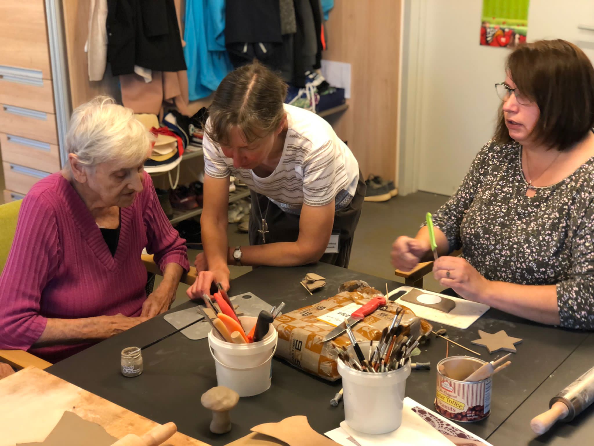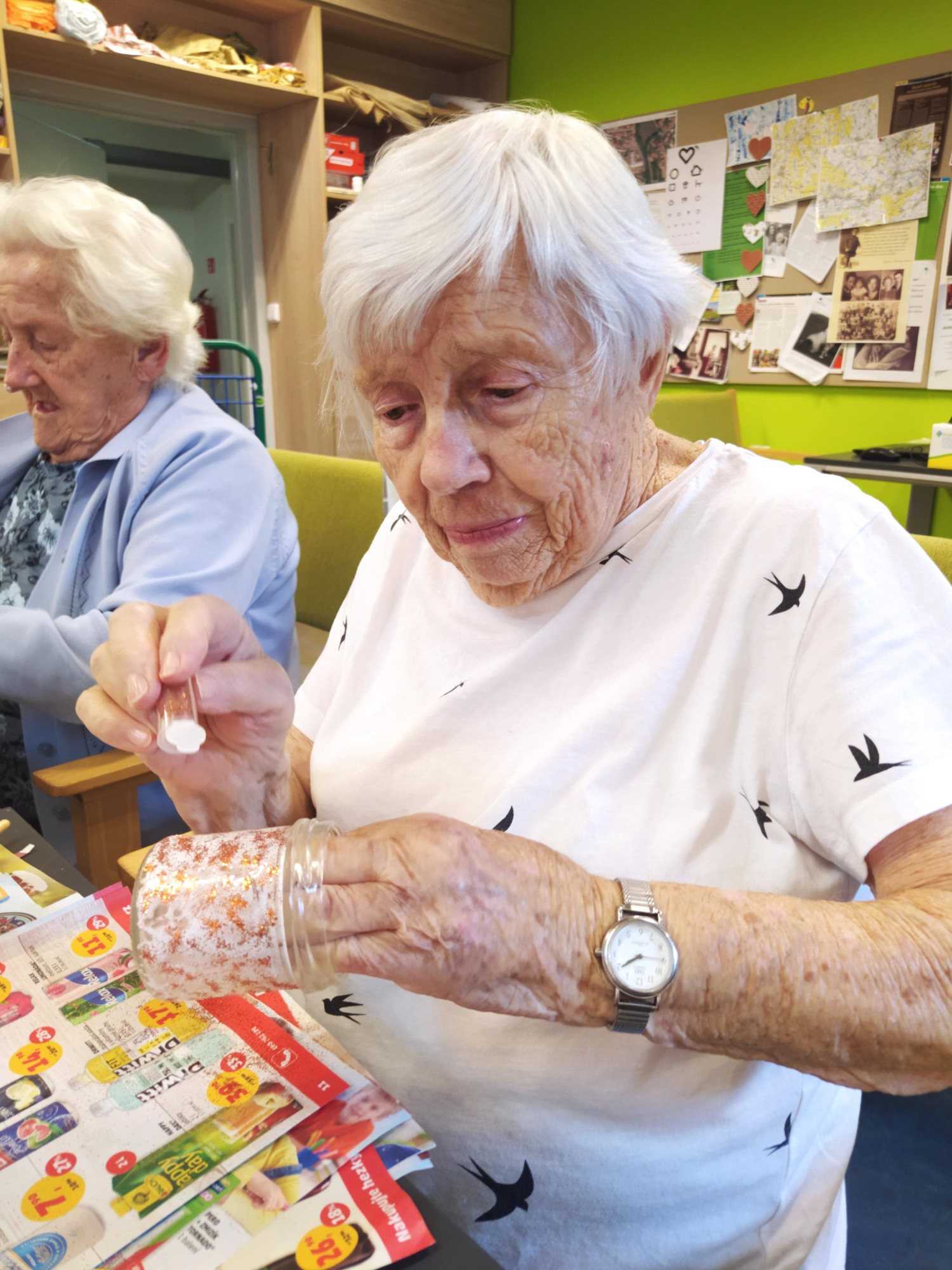 Během října jsme toho opět stihli hodně. Tvořili jsme podzimní motivy, vyráběli svícínky, pekli bábovky, sbírali ořechy, které jsme poté vyloupali a zdobili. Společný čas jsme strávili u cvičení, zpívání a procházkách. Aktivizace se na odpoledne změnila na biograf. Potěšili nás psí společníci při canisterapii. Naložili jsme zelí, které jsme si i nakrouhali.