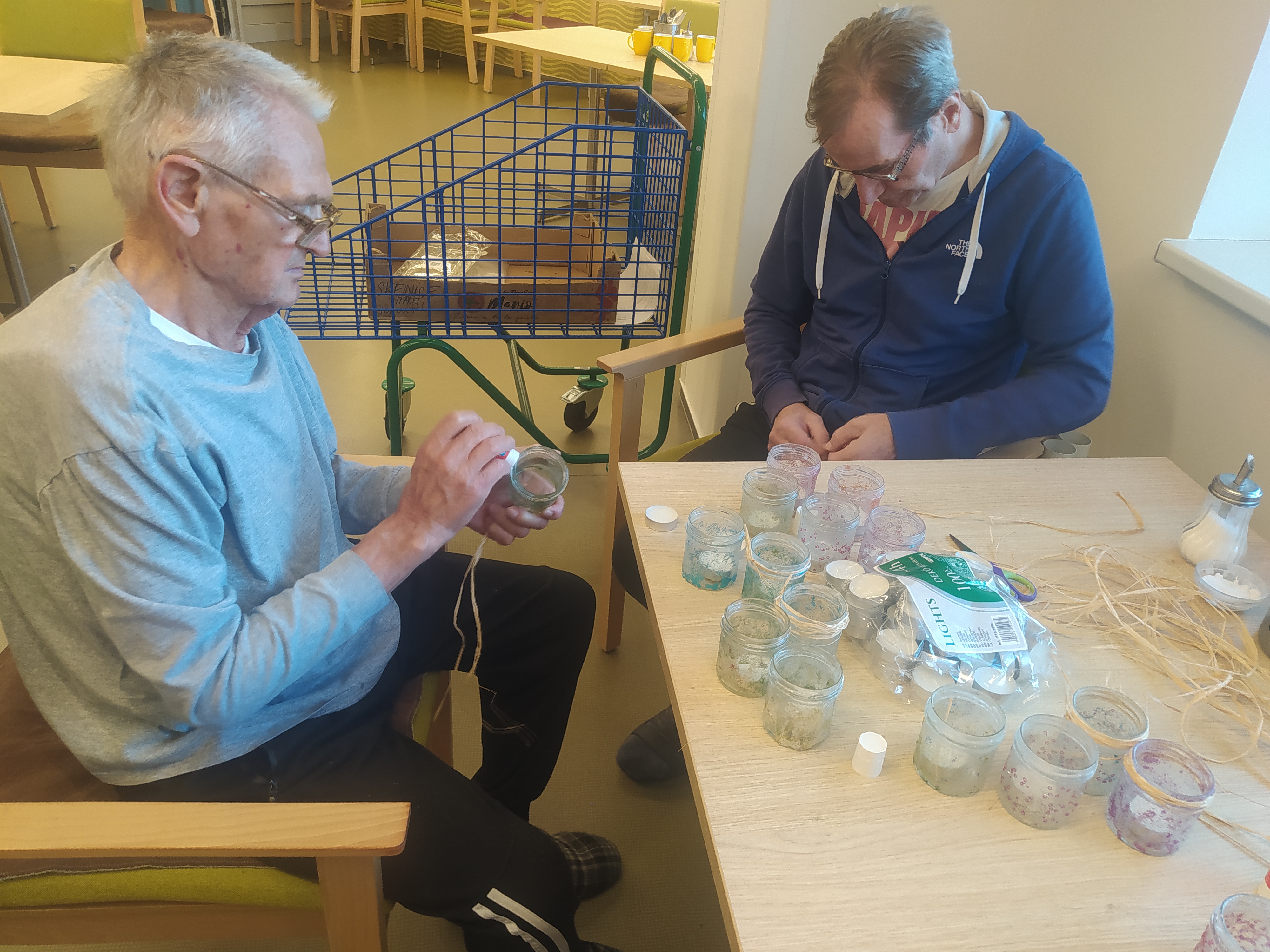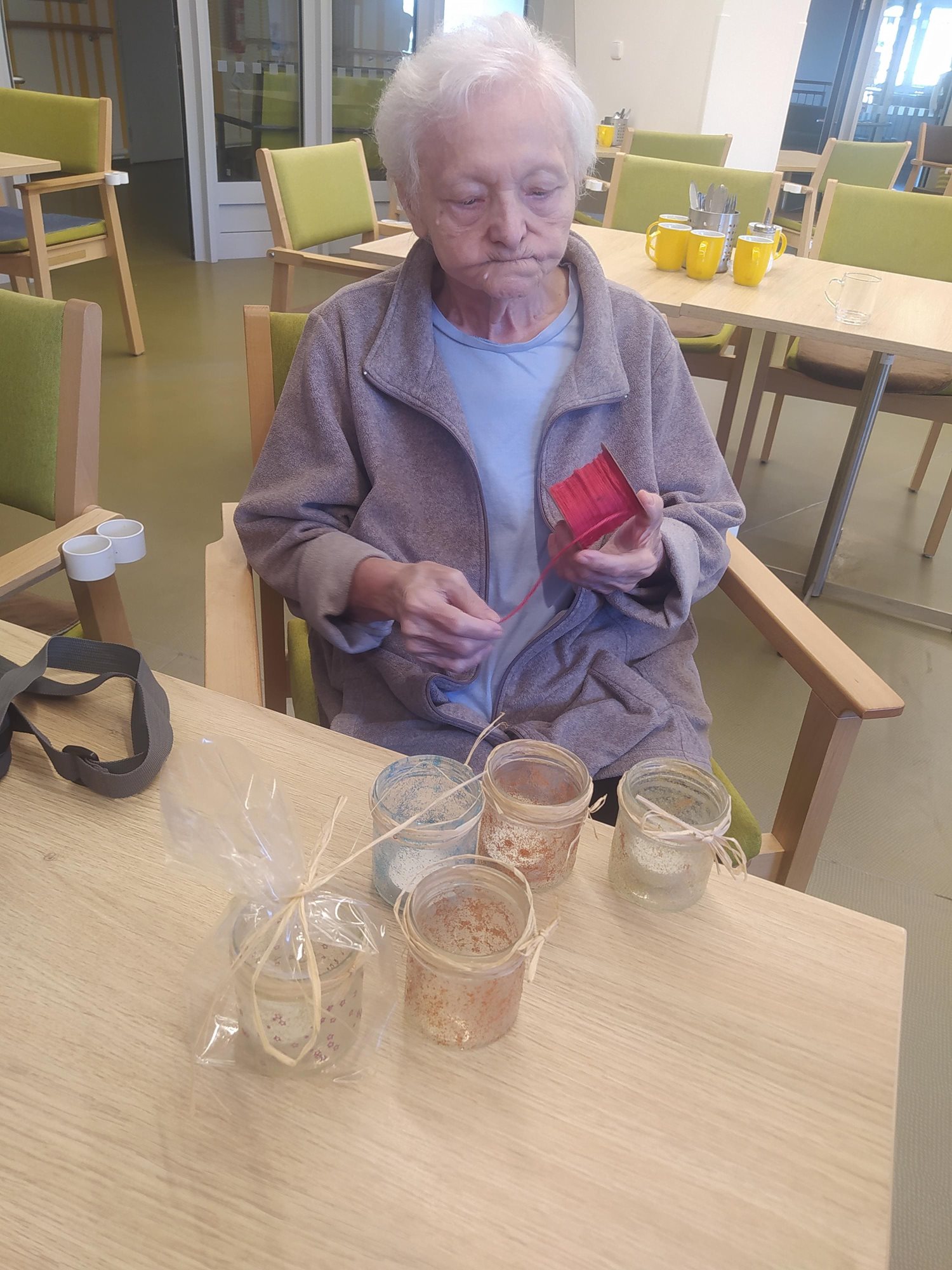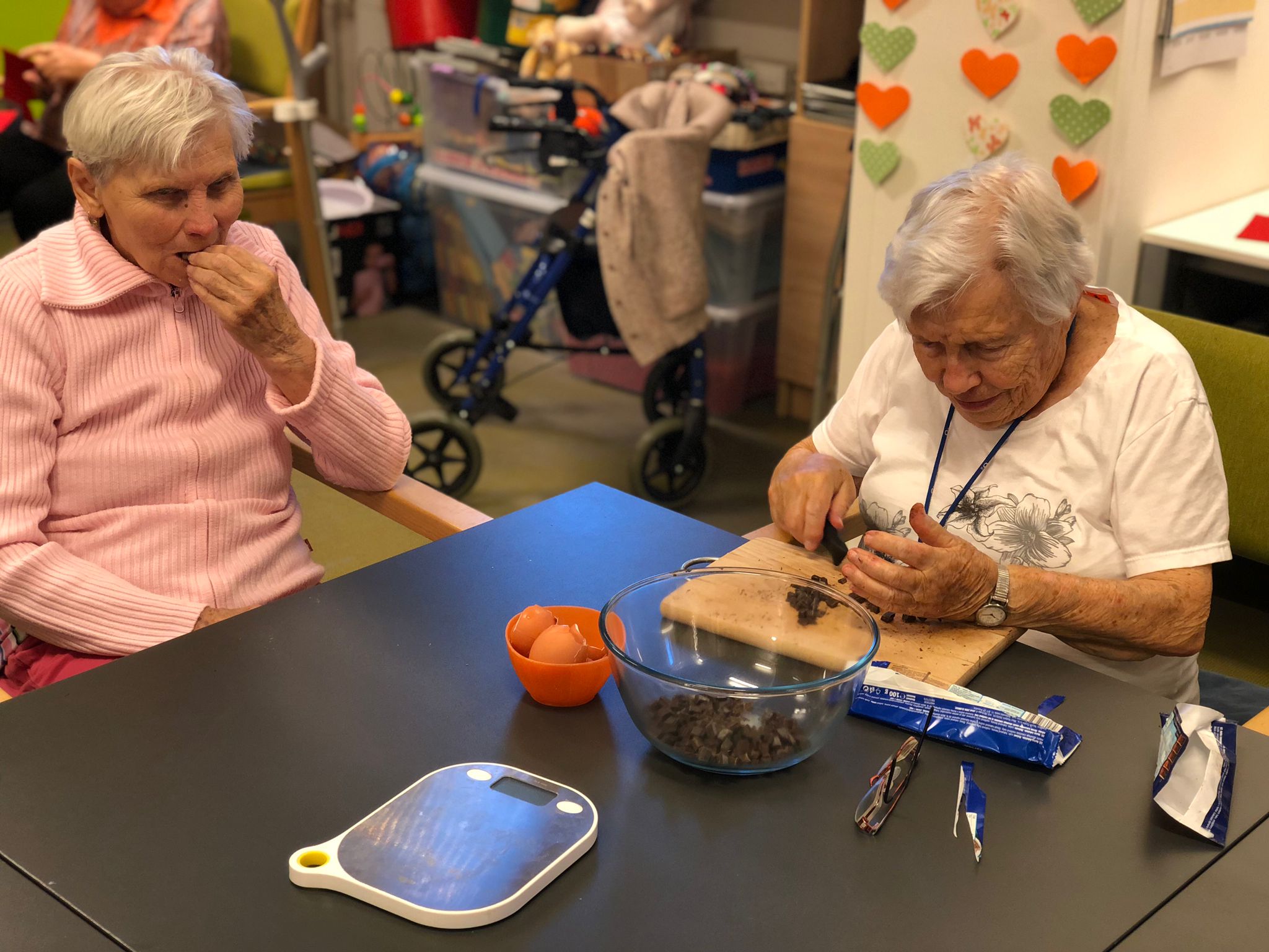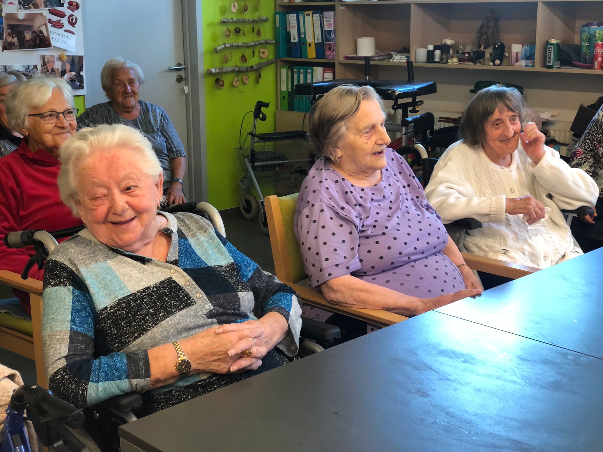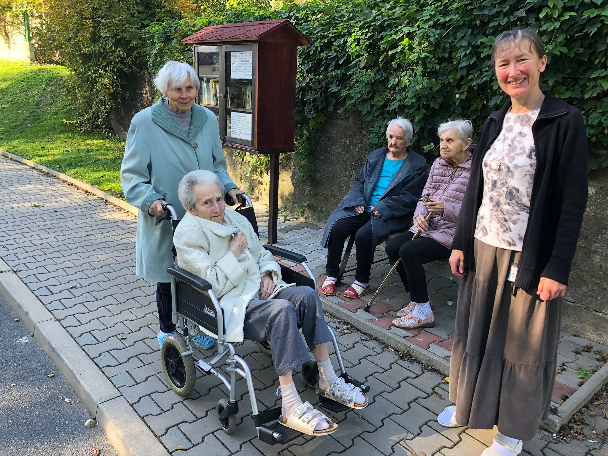 Během října jsme toho opět stihli hodně. Tvořili jsme podzimní motivy, vyráběli svícínky, pekli bábovky, sbírali ořechy, které jsme poté vyloupali a zdobili. Společný čas jsme strávili u cvičení, zpívání a procházkách. Aktivizace se na odpoledne změnila na biograf. Potěšili nás psí společníci při canisterapii. Naložili jsme zelí, které jsme si i nakrouhali.