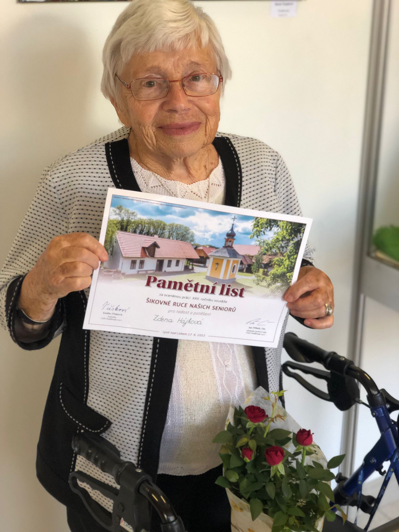 první cenu obdržela naše klientka paní Hájková za příspěvek do literární sekce s podtitulem Zvyky a tradice s názvem "VODÁCKÉ VZPOMÍNKY".