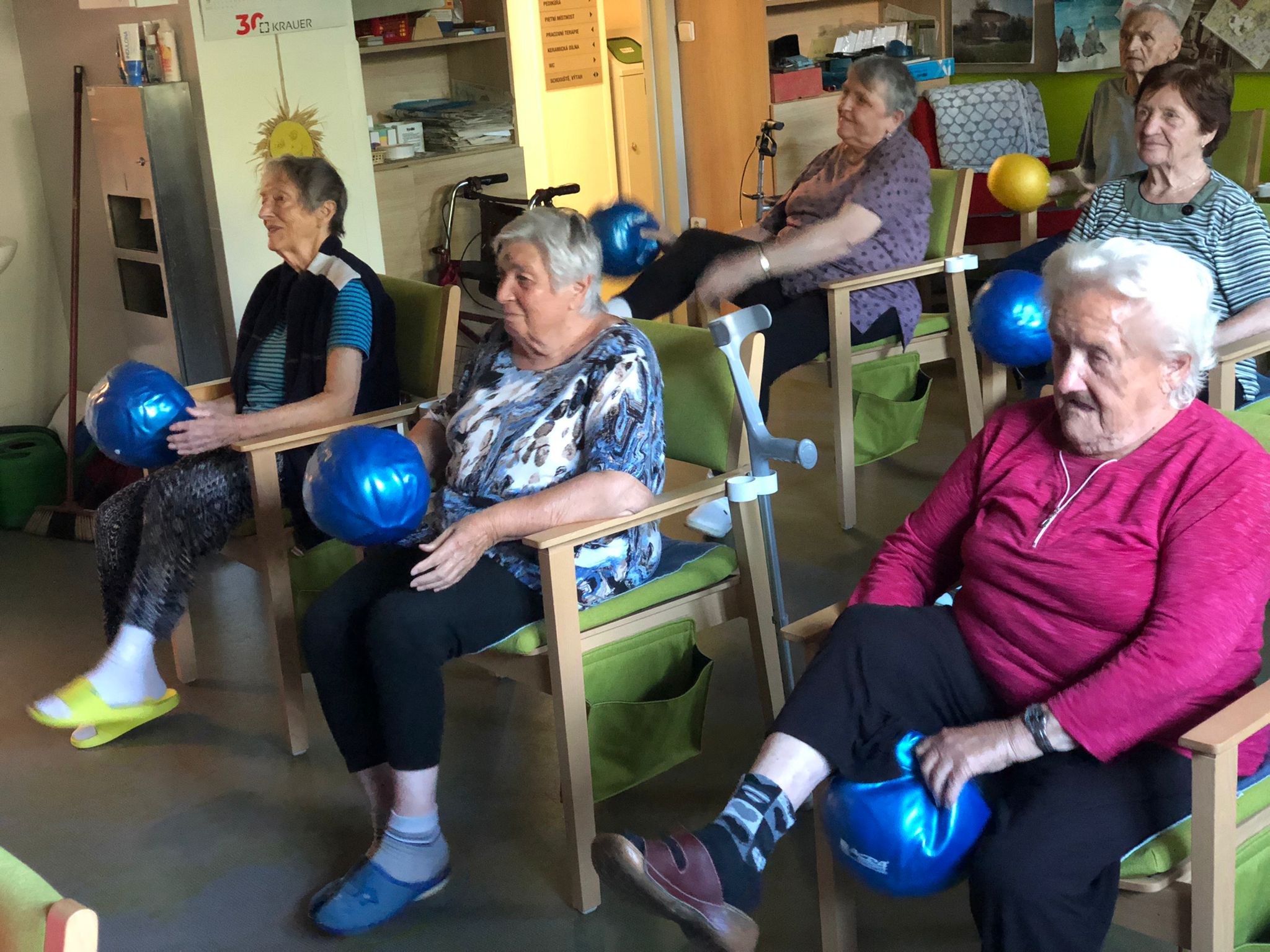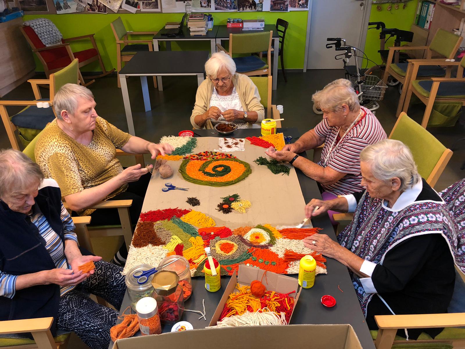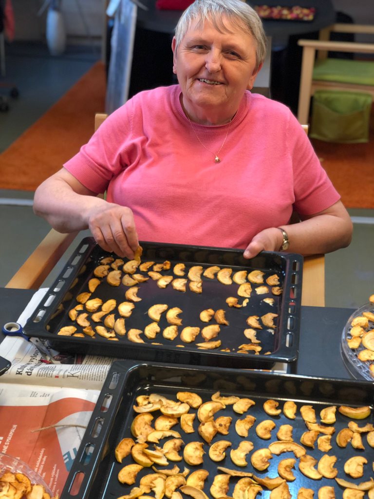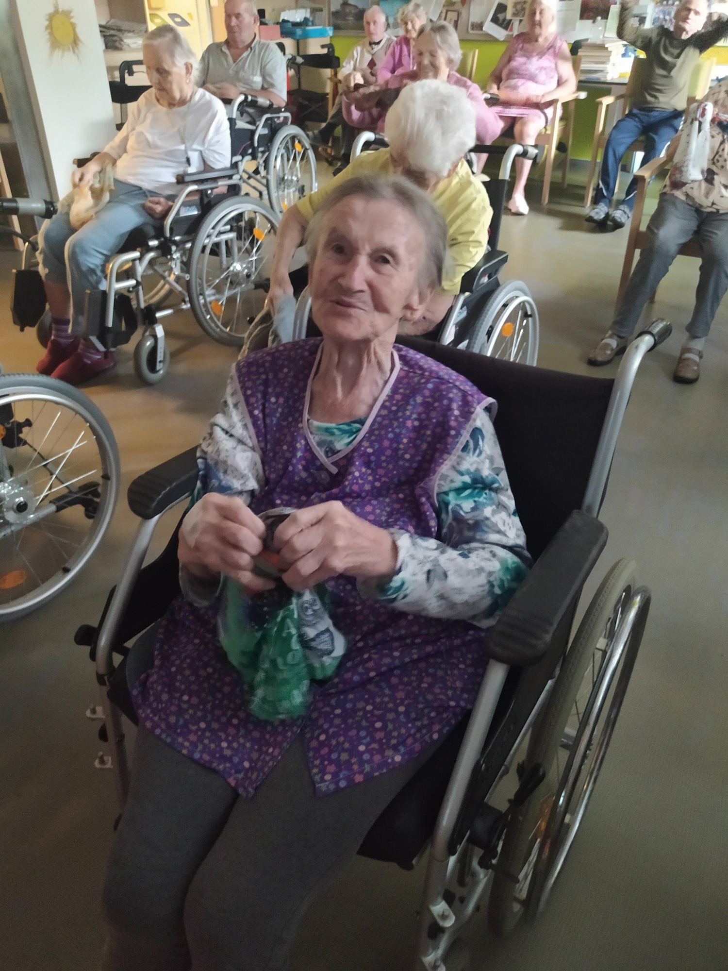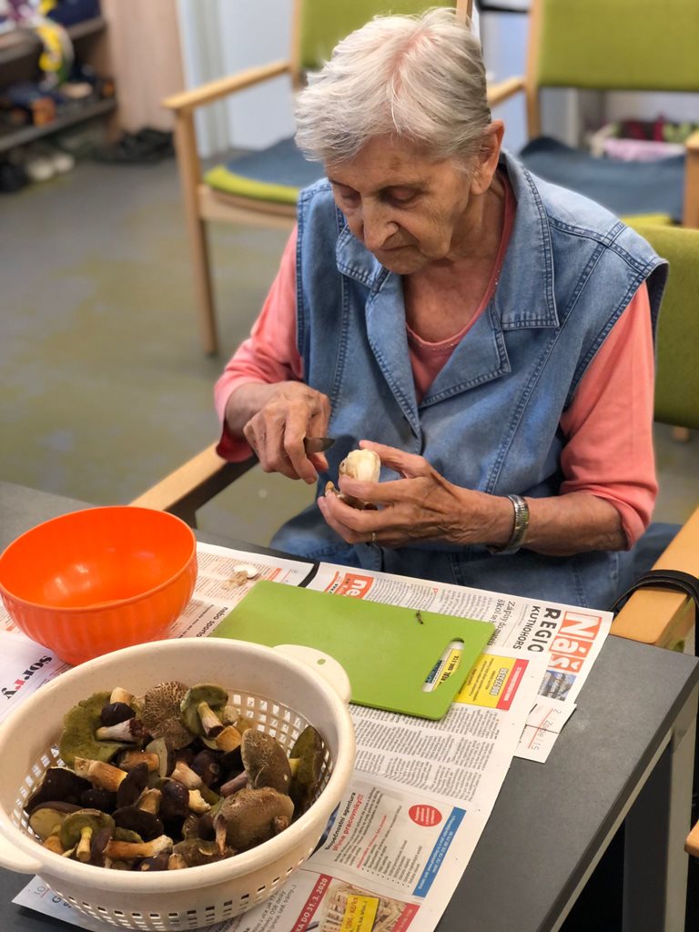Dámy využily kadeřnických služeb a moc jim to sluší. Během měsíce jsme tvořili podzimní motivy, pekli štrůdl, sbírali úrodu ze zahrádky, houby a užívali si slunečné dny pobytem venku. Společně jsme cvičili, jsme zapojeni do pilotního projektu s rehabilitačním centrem v Kladrubech. Navštívila nás zvířátka v rámci canisterapii a zooterapie. Opět jsme vyzkoušeli náš vozík Selvo. Poseděli jsme spolu a oslavili narozeniny při narozeninové kavárničce.