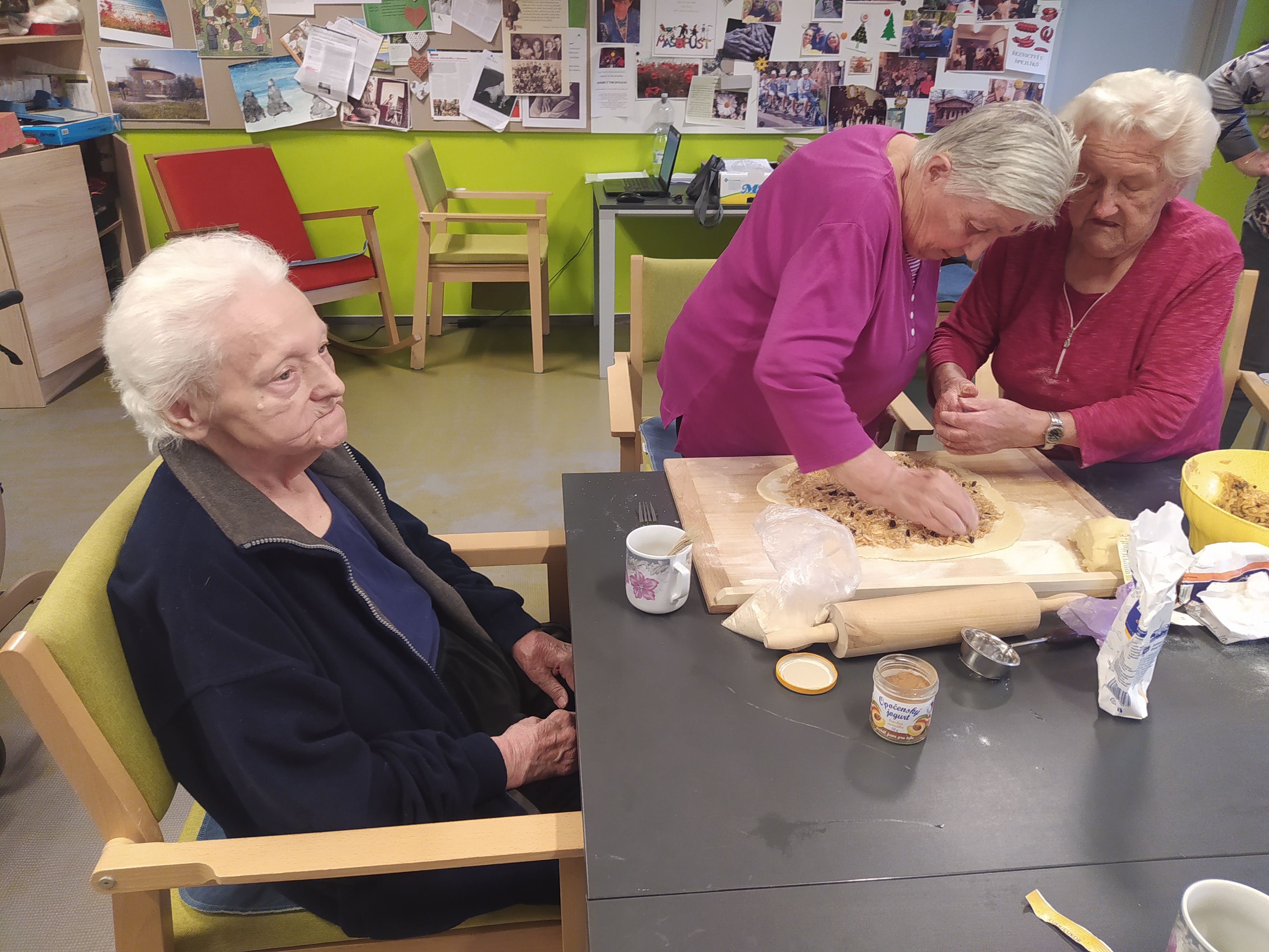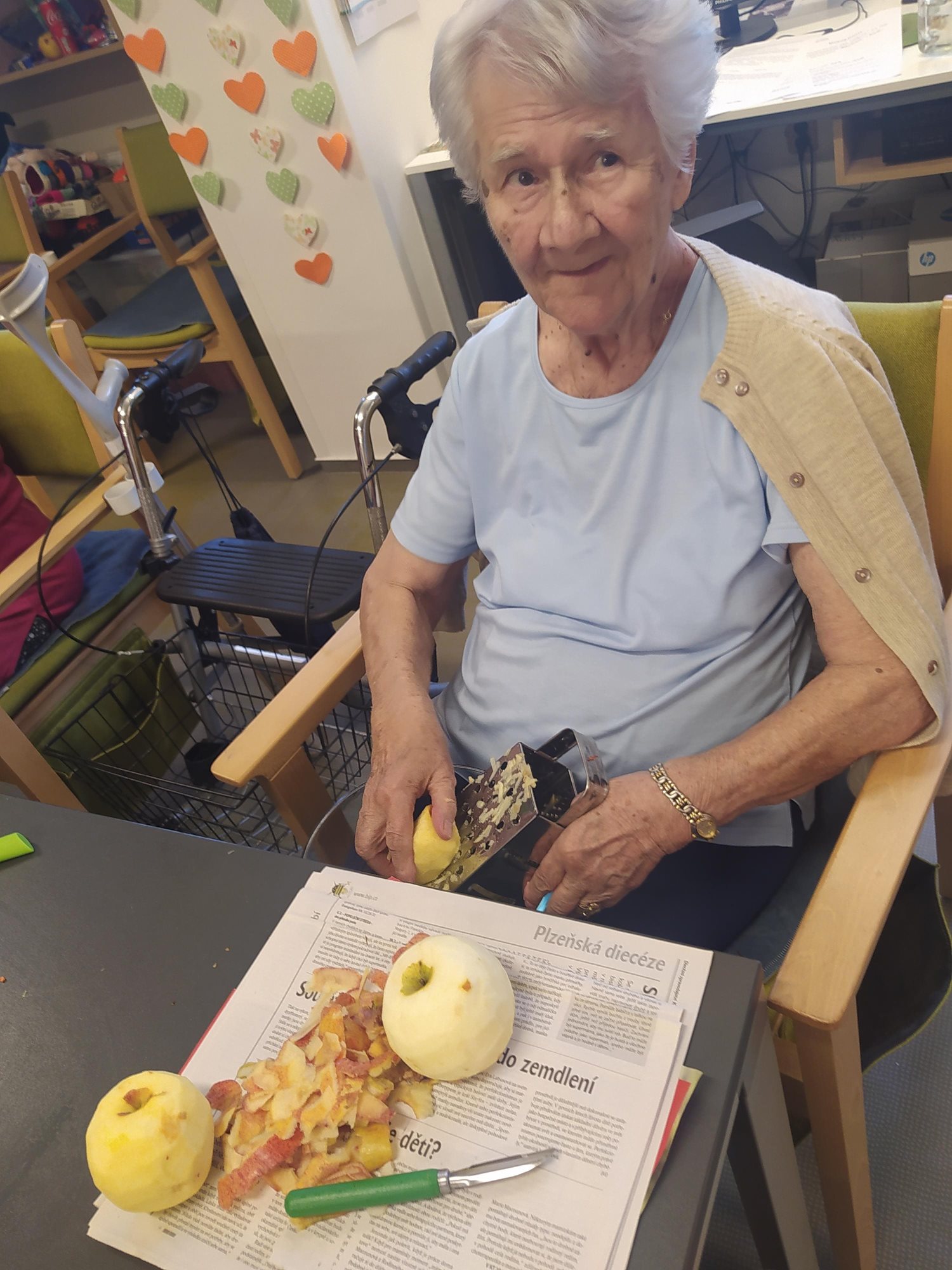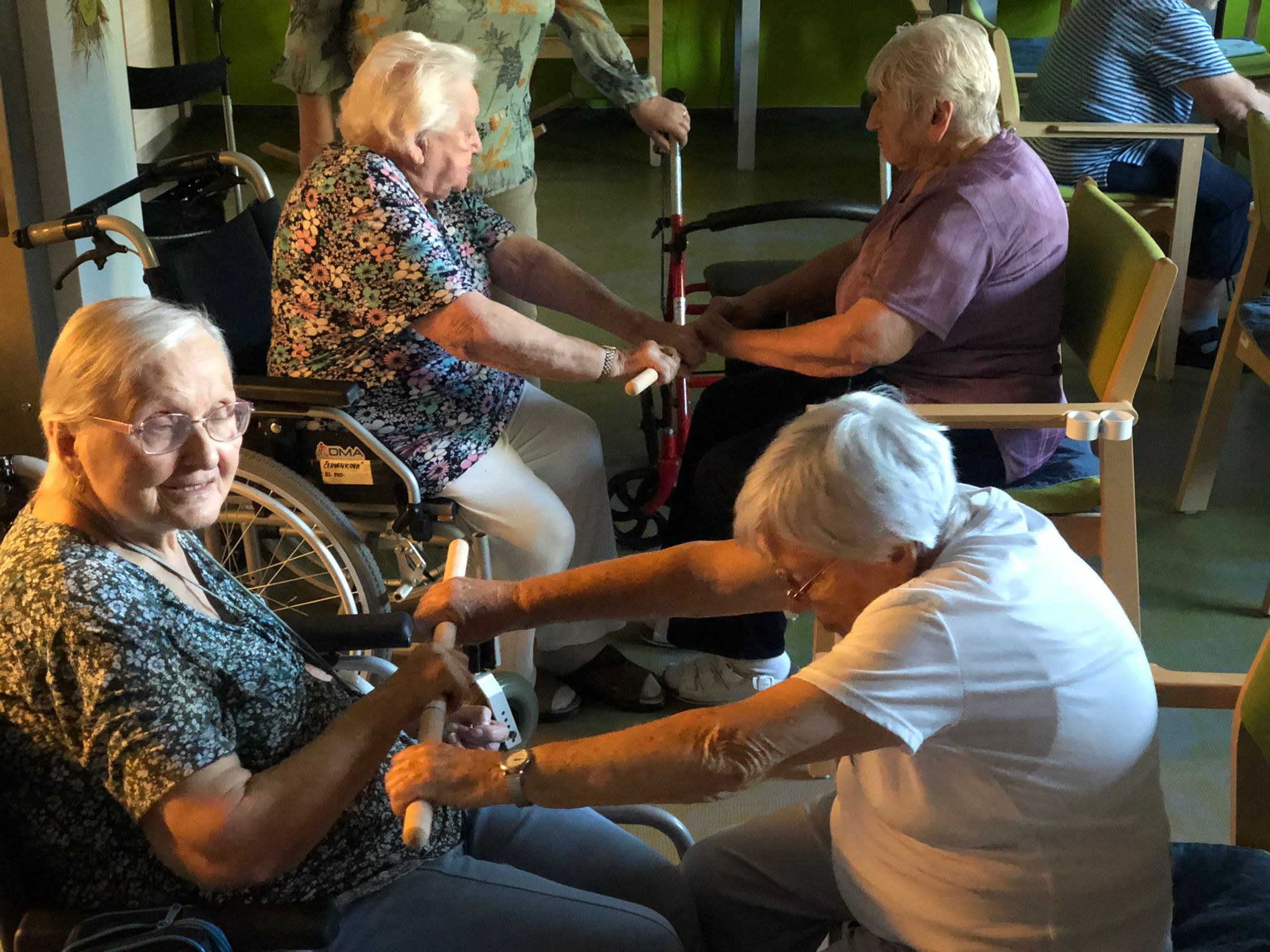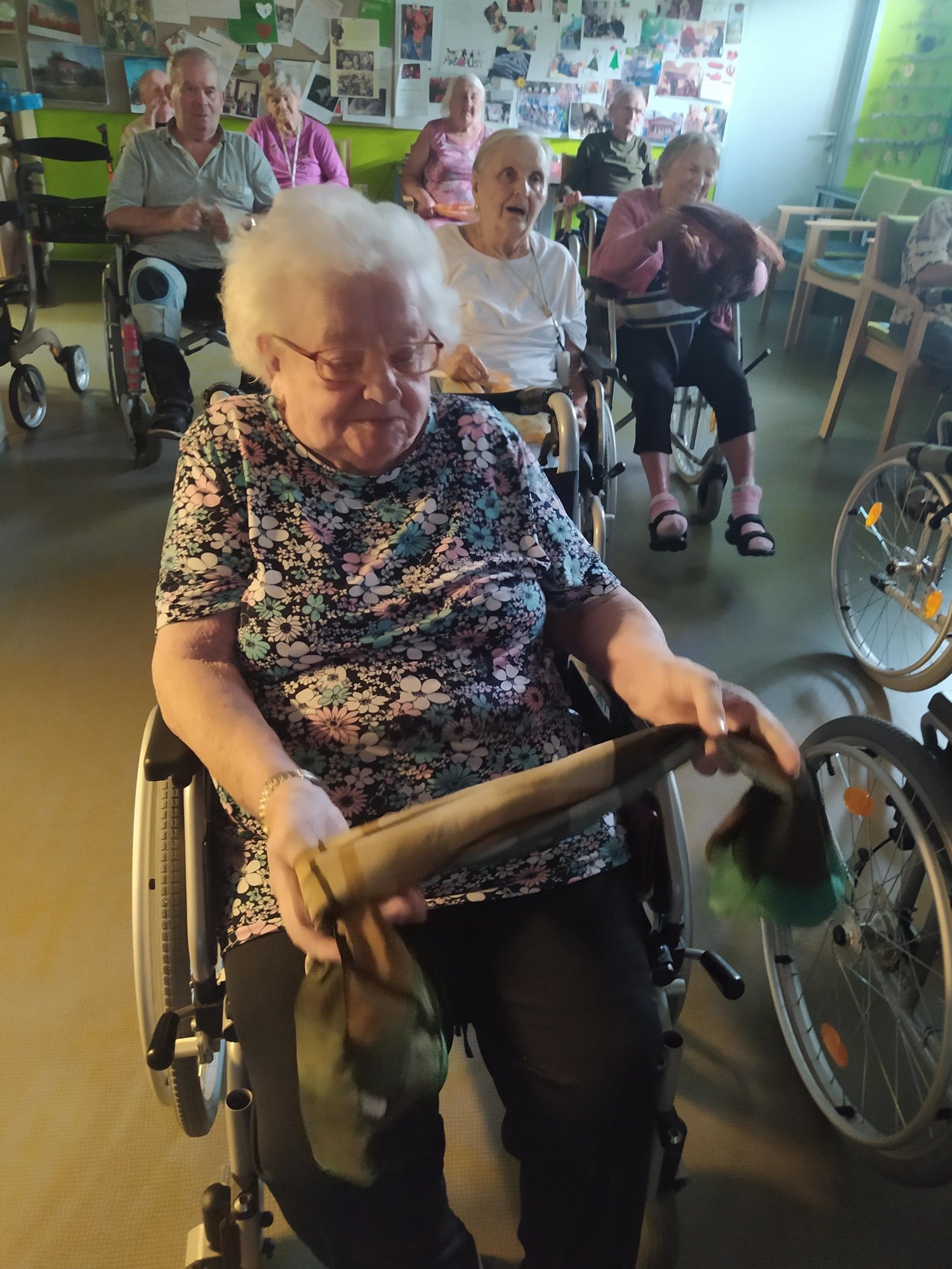 Dámy využily kadeřnických služeb a moc jim to sluší. Během měsíce jsme tvořili podzimní motivy, pekli štrůdl, sbírali úrodu ze zahrádky, houby a užívali si slunečné dny pobytem venku. Společně jsme cvičili, jsme zapojeni do pilotního projektu s rehabilitačním centrem v Kladrubech. Navštívila nás zvířátka v rámci canisterapii a zooterapie. Opět jsme vyzkoušeli náš vozík Selvo. Poseděli jsme spolu a oslavili narozeniny při narozeninové kavárničce.