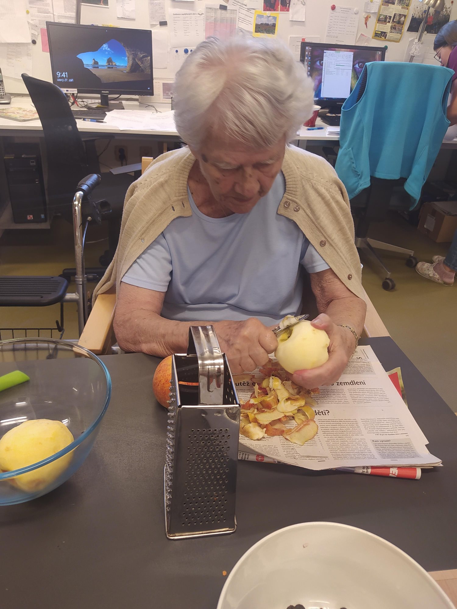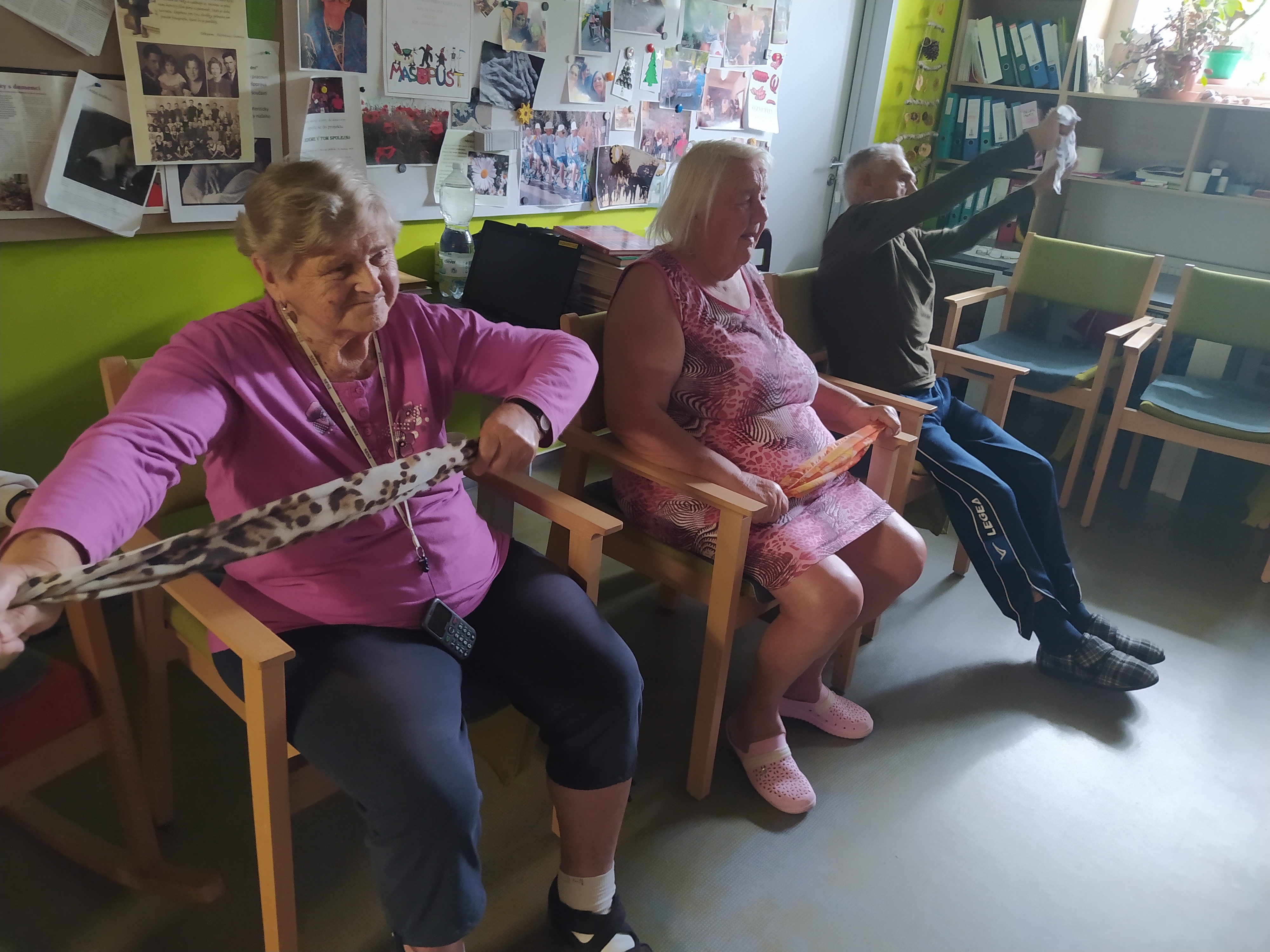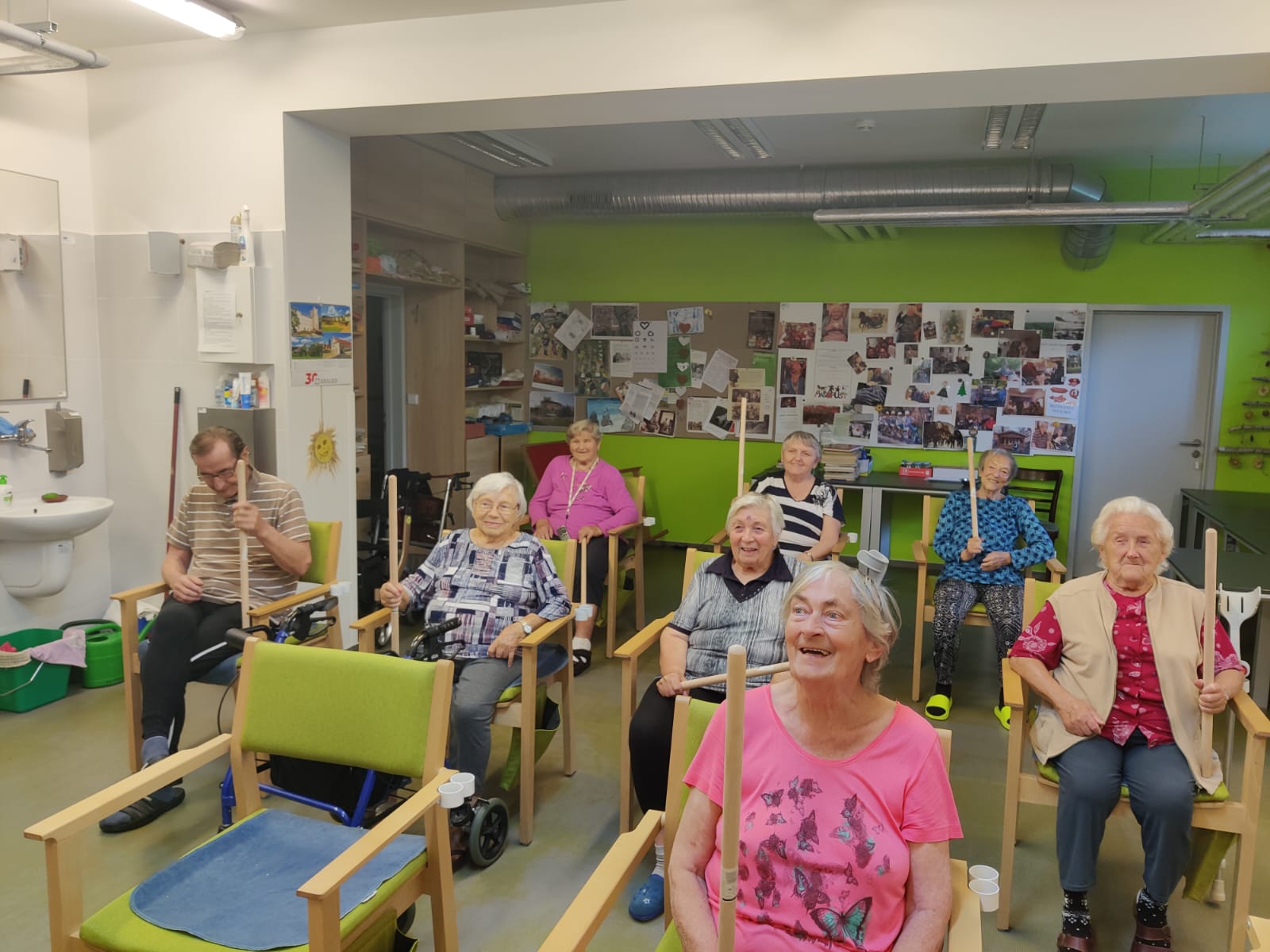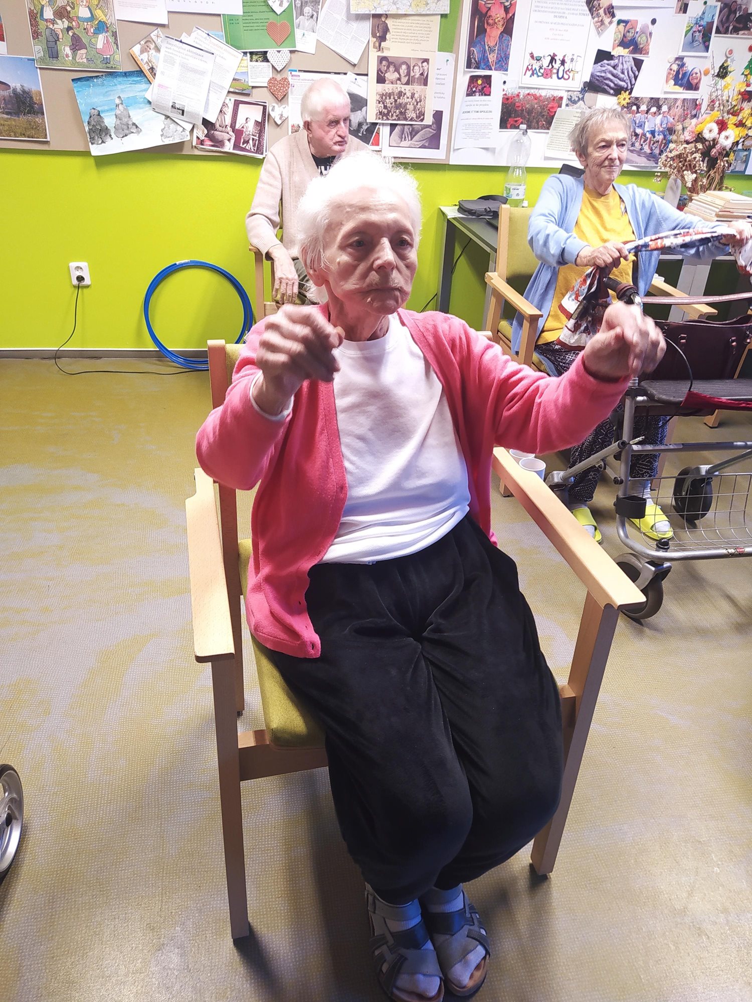 Dámy využily kadeřnických služeb a moc jim to sluší. Během měsíce jsme tvořili podzimní motivy, pekli štrůdl, sbírali úrodu ze zahrádky, houby a užívali si slunečné dny pobytem venku. Společně jsme cvičili, jsme zapojeni do pilotního projektu s rehabilitačním centrem v Kladrubech. Navštívila nás zvířátka v rámci canisterapii a zooterapie. Opět jsme vyzkoušeli náš vozík Selvo. Poseděli jsme spolu a oslavili narozeniny při narozeninové kavárničce.