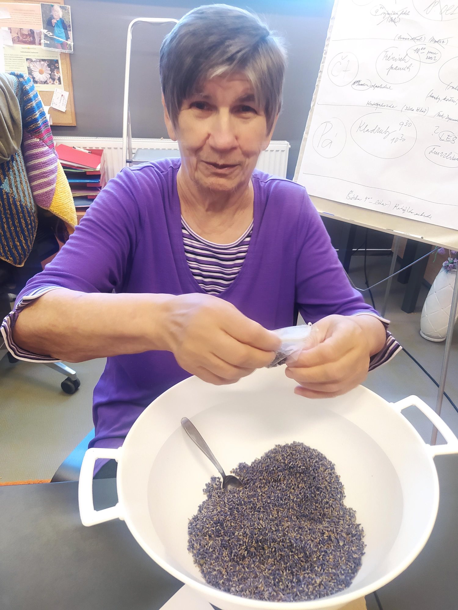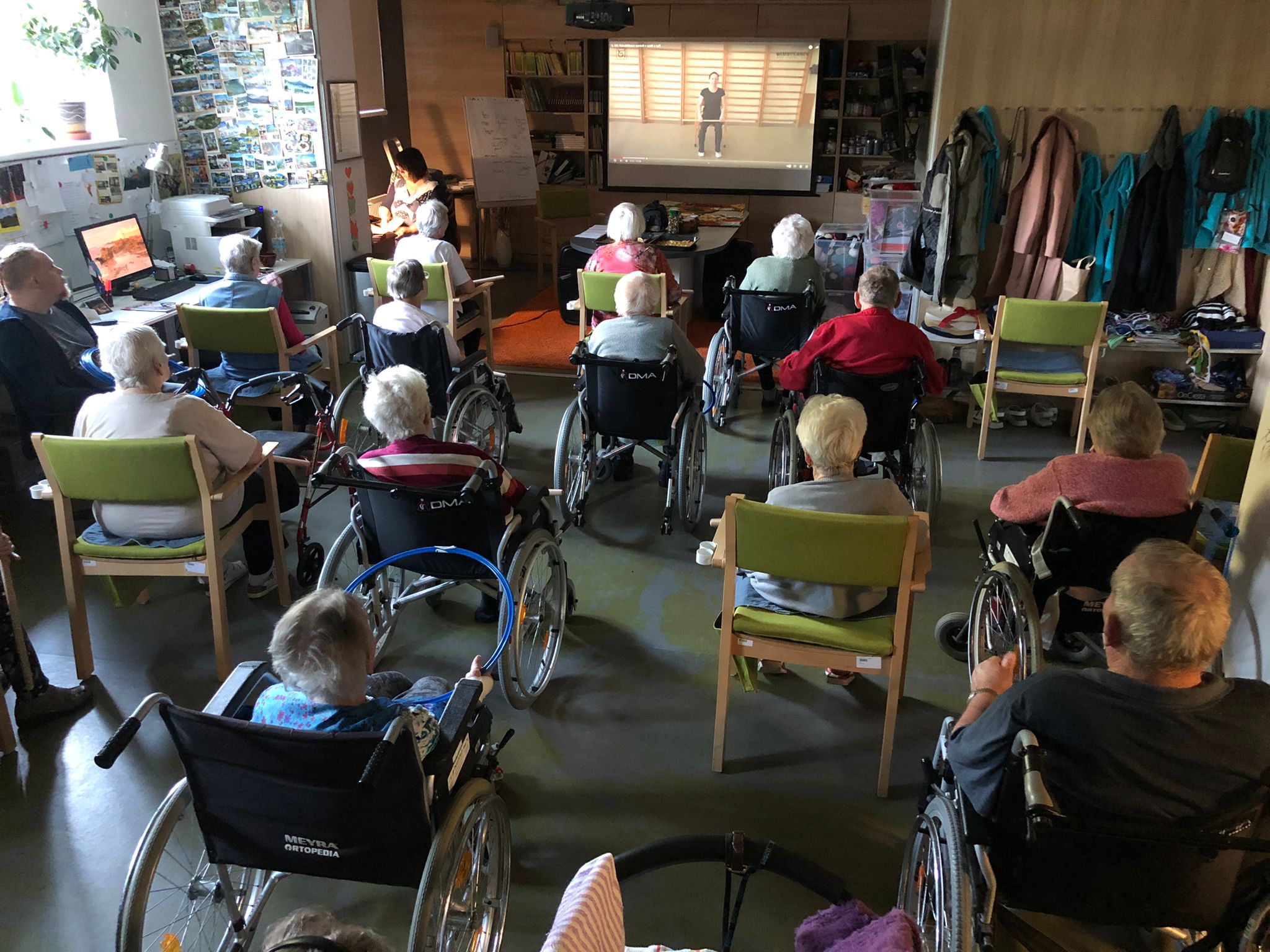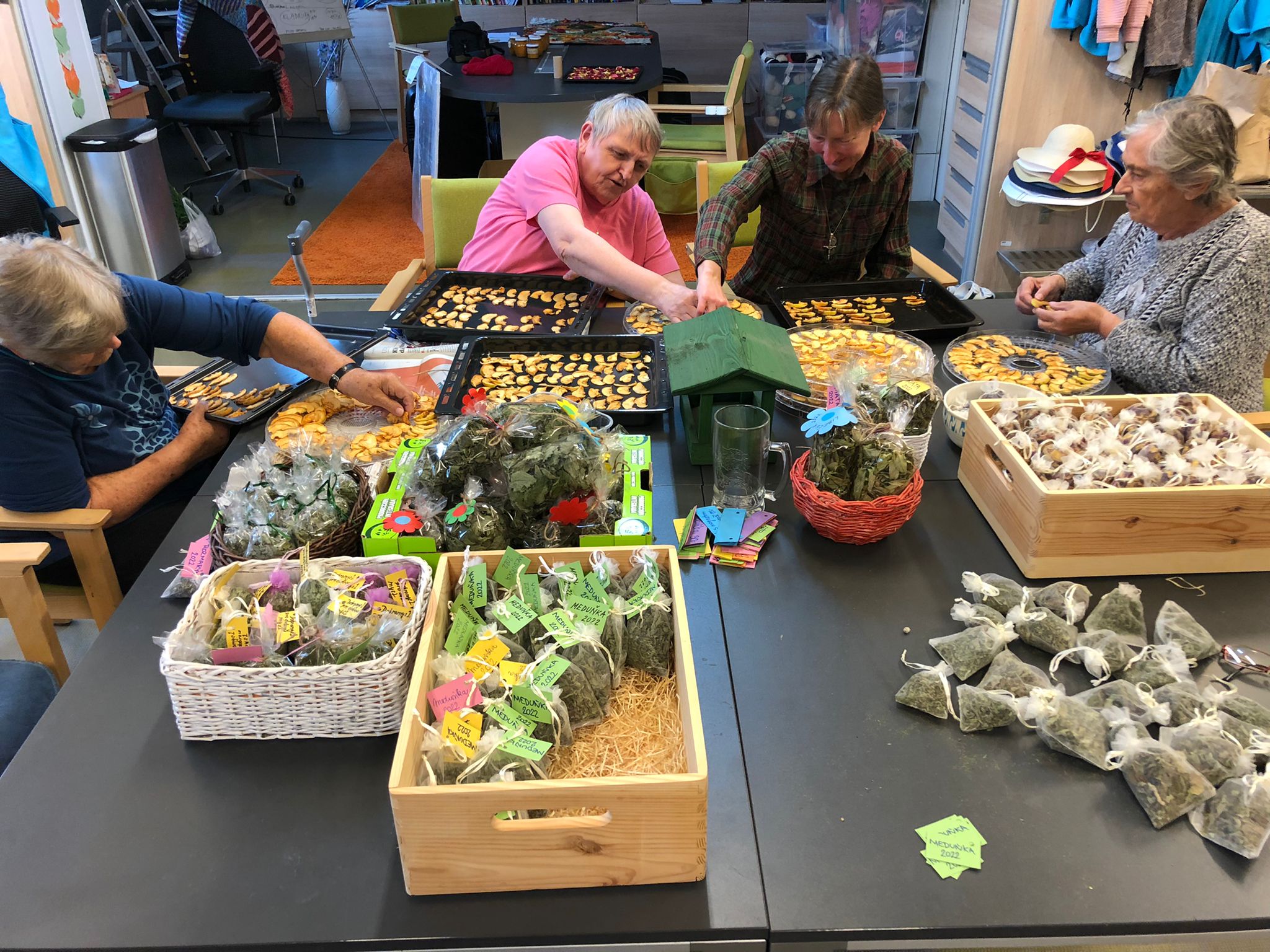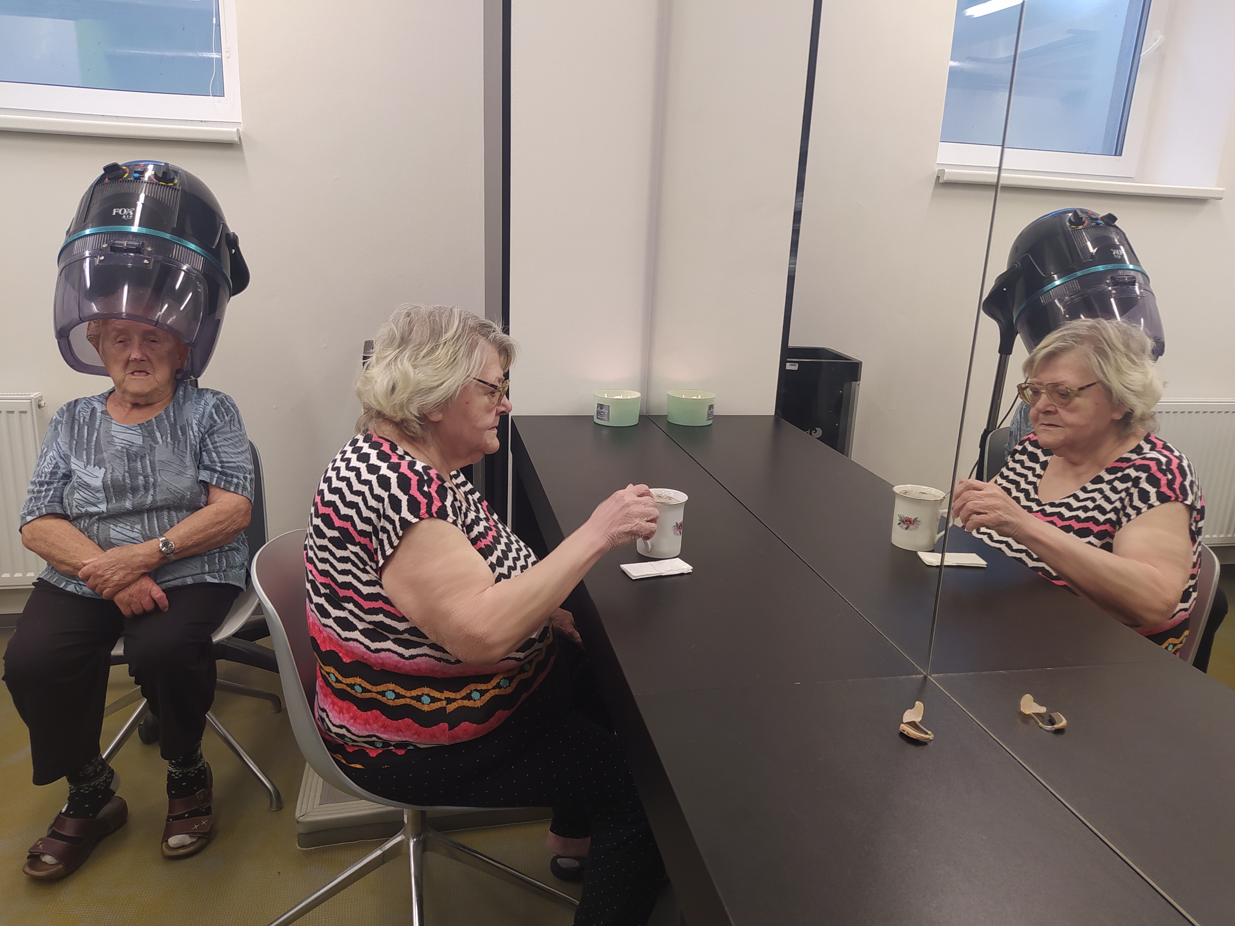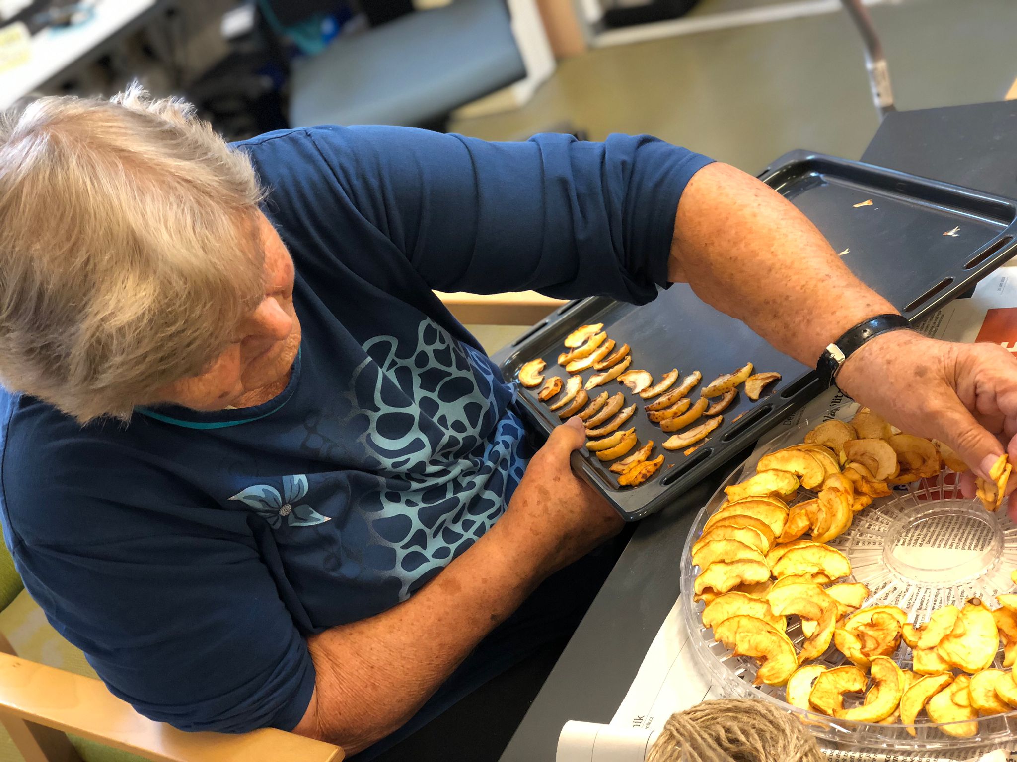 Dámy využily kadeřnických služeb a moc jim to sluší. Během měsíce jsme tvořili podzimní motivy, pekli štrůdl, sbírali úrodu ze zahrádky, houby a užívali si slunečné dny pobytem venku. Společně jsme cvičili, jsme zapojeni do pilotního projektu s rehabilitačním centrem v Kladrubech. Navštívila nás zvířátka v rámci canisterapii a zooterapie. Opět jsme vyzkoušeli náš vozík Selvo. Poseděli jsme spolu a oslavili narozeniny při narozeninové kavárničce.