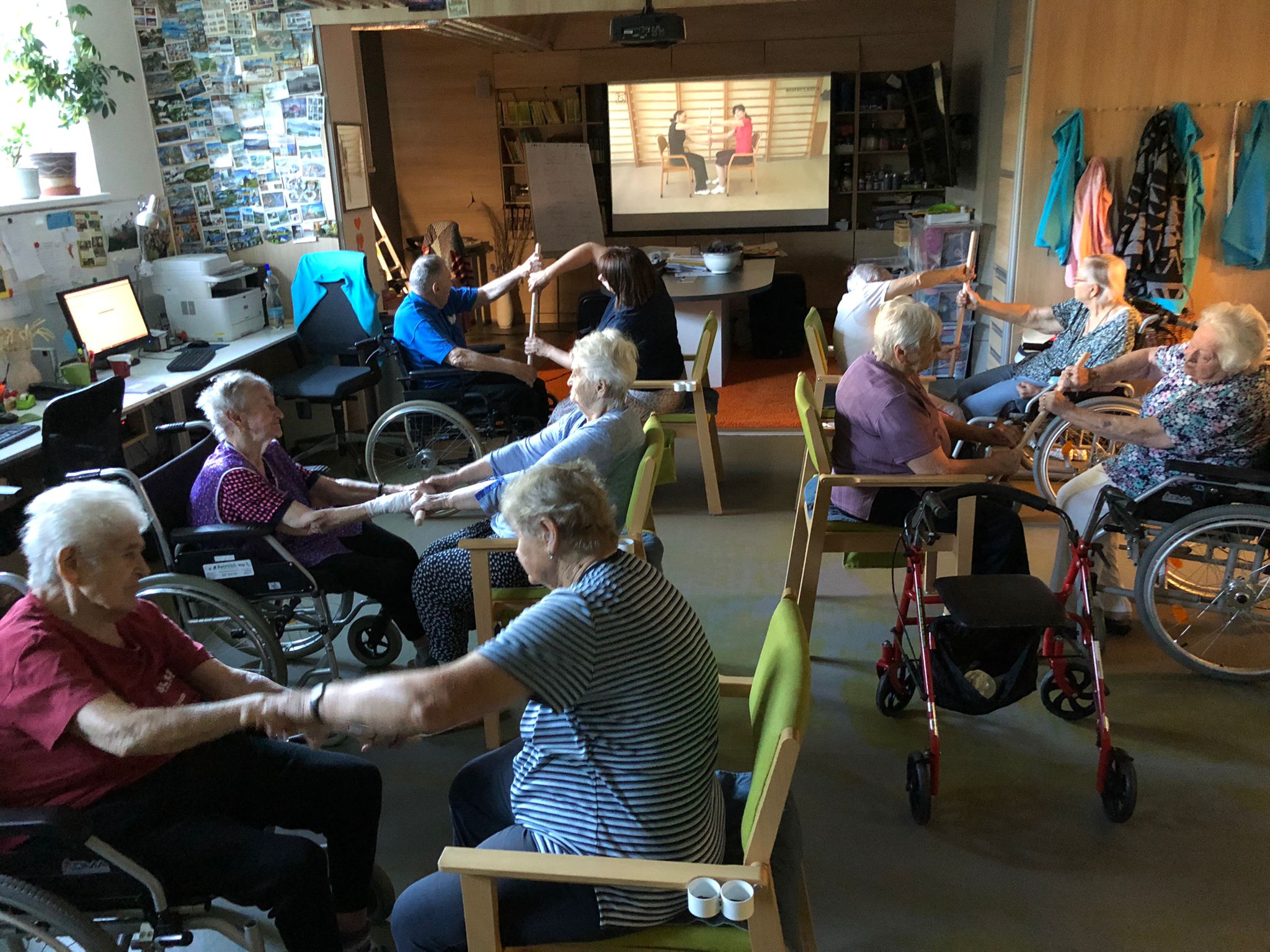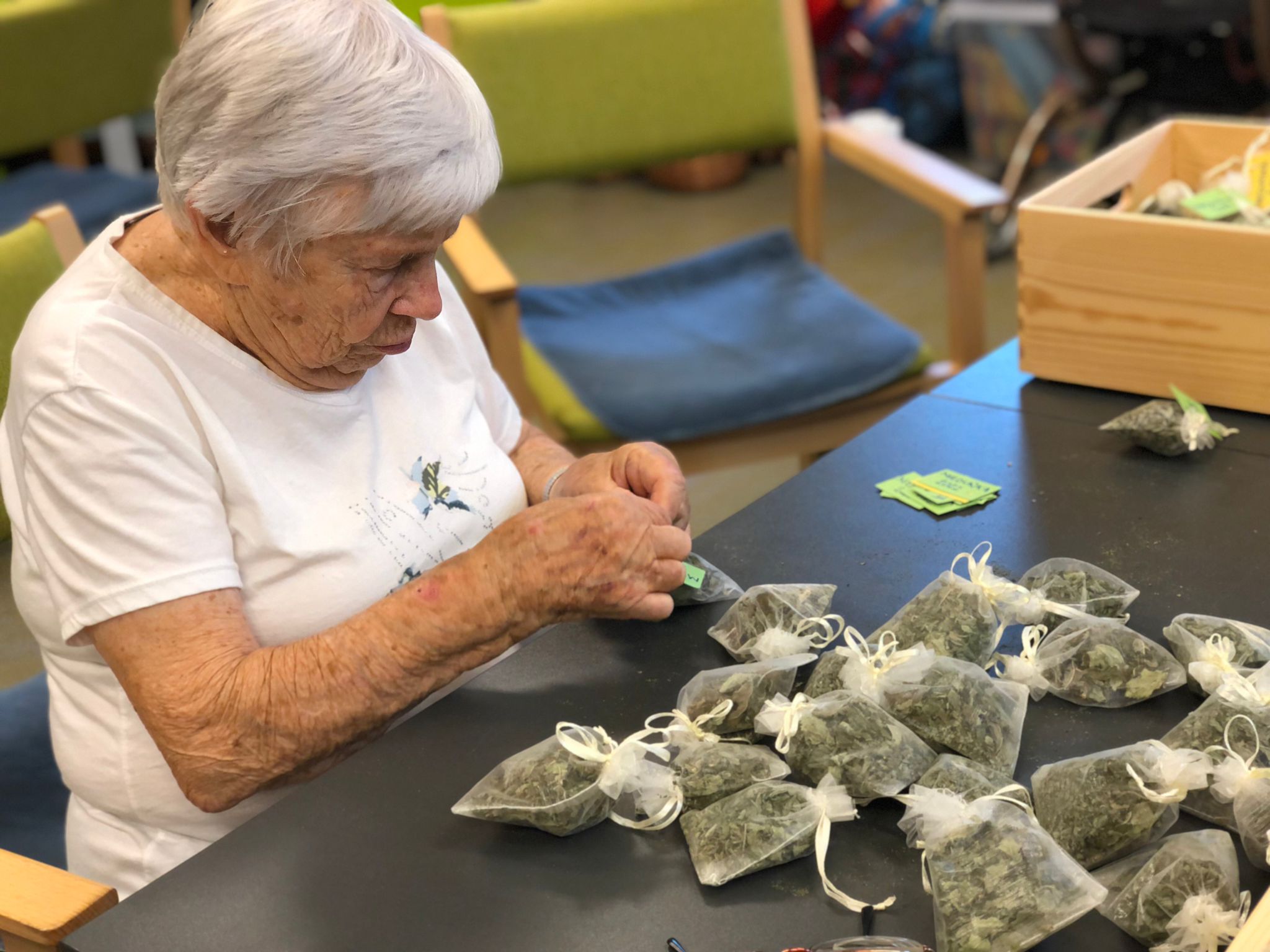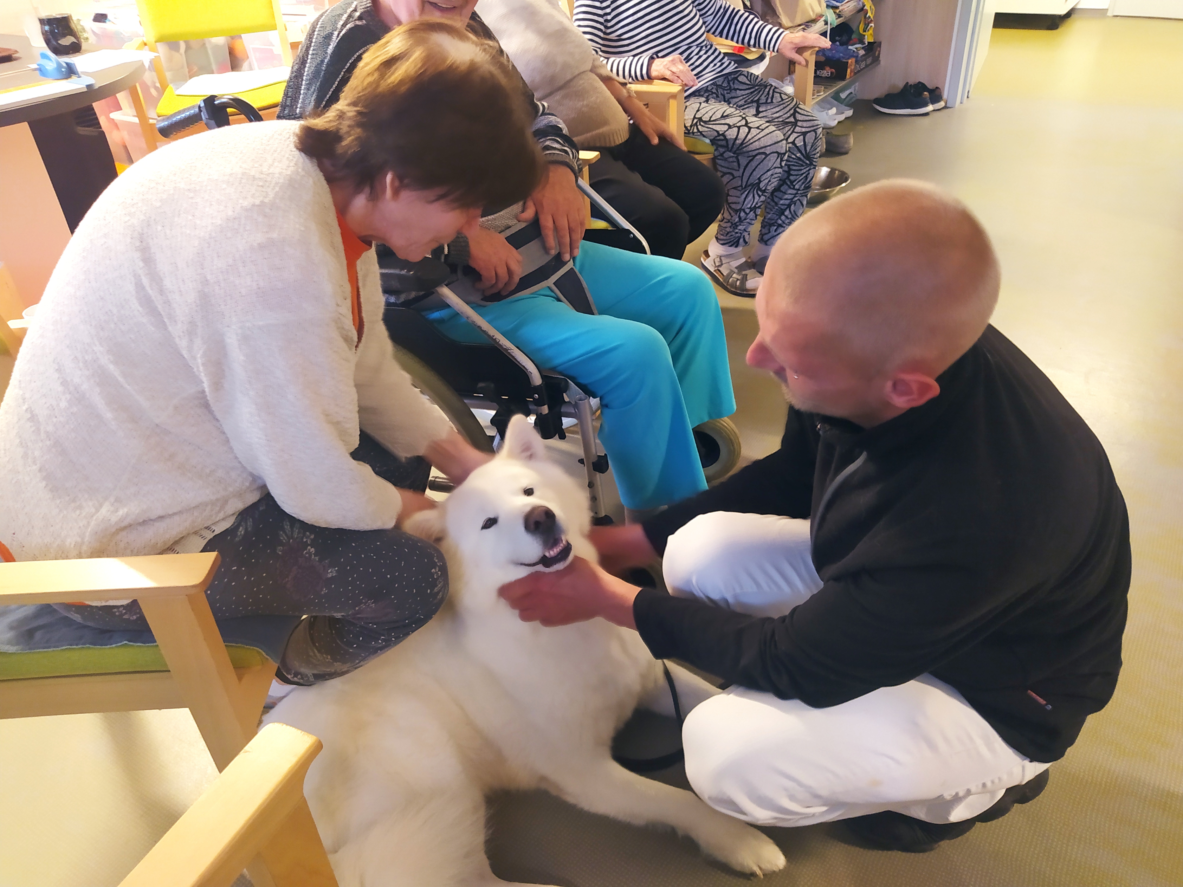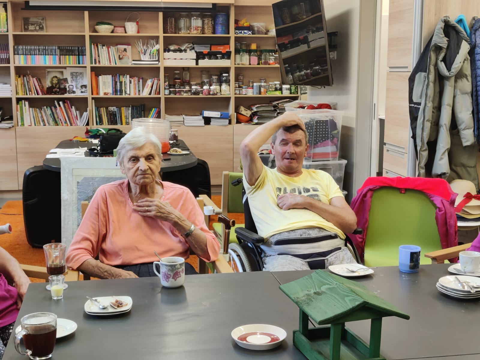 Dámy využily kadeřnických služeb a moc jim to sluší. Během měsíce jsme tvořili podzimní motivy, pekli štrůdl, sbírali úrodu ze zahrádky, houby a užívali si slunečné dny pobytem venku. Společně jsme cvičili, jsme zapojeni do pilotního projektu s rehabilitačním centrem v Kladrubech. Navštívila nás zvířátka v rámci canisterapii a zooterapie. Opět jsme vyzkoušeli náš vozík Selvo. Poseděli jsme spolu a oslavili narozeniny při narozeninové kavárničce.
