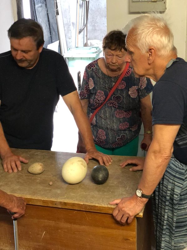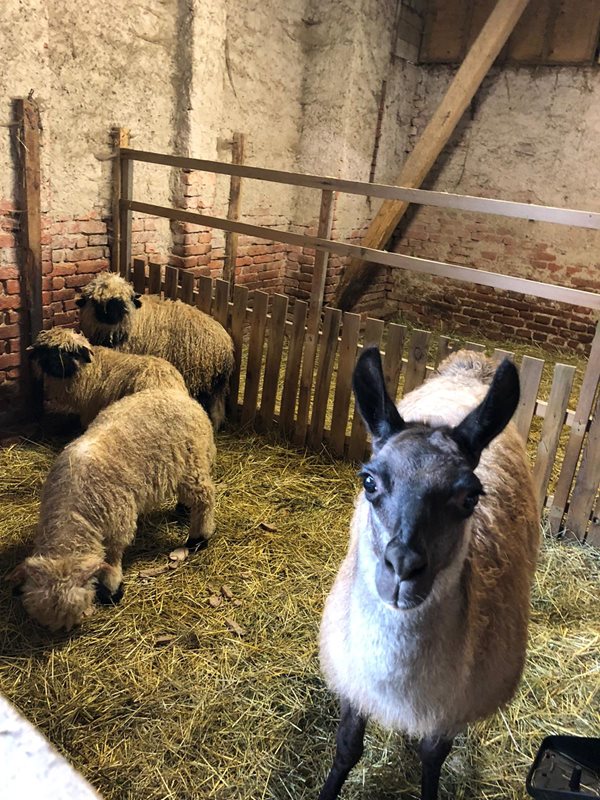 Pan Laube, který nás pozval na prohlídku farmy chová i vzácné druhy ptáků (Ibis, Jeřáb japonský, Plameňák ..) a zajímavé druhy rostlin (Pryšec, červená Bezinka ...).I přes nejisté počasí jsme si to užili a navíc jsme se potkali s lidmi z našeho spřáteleného DOMOVA NA OLEŠCE.