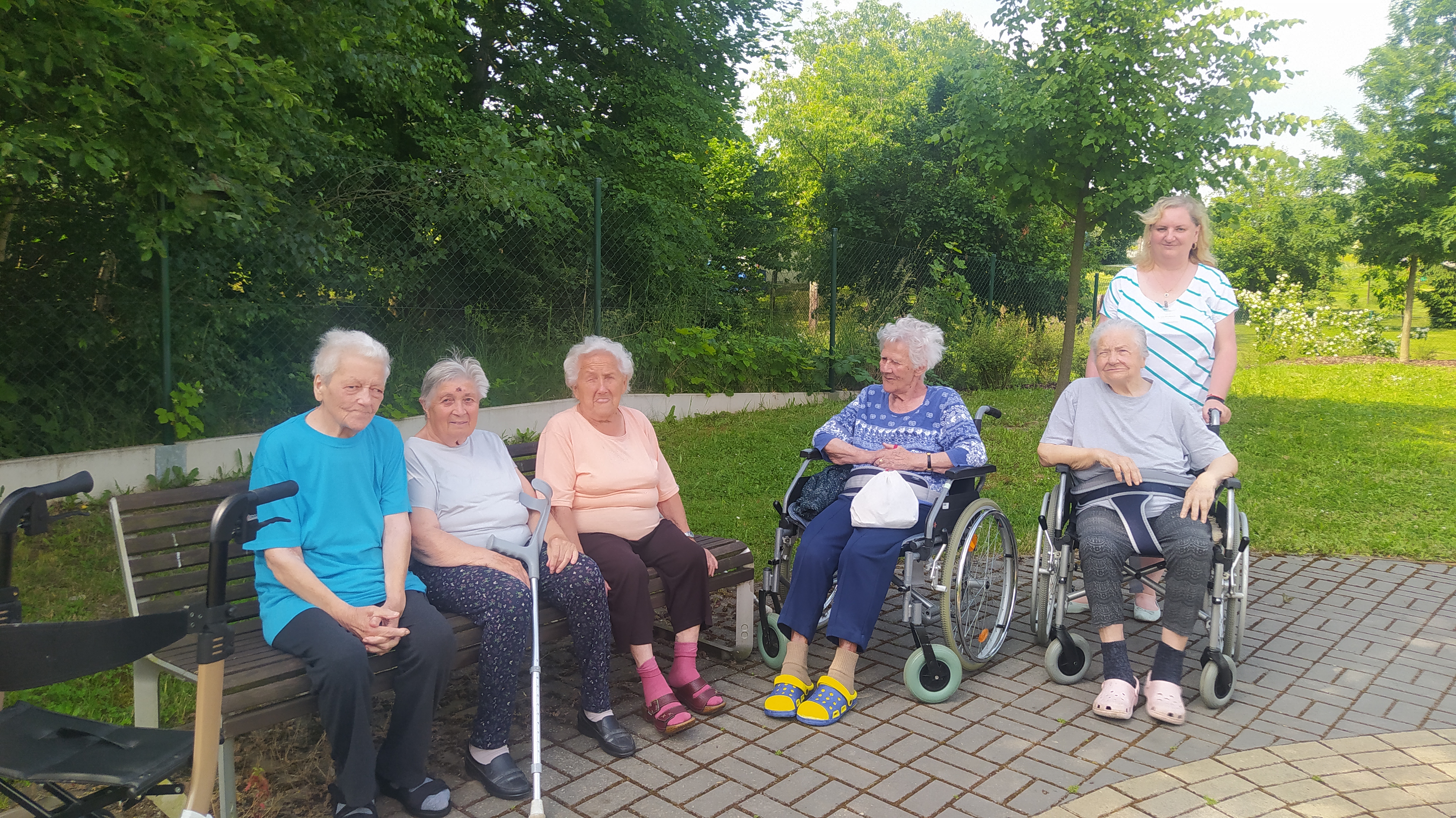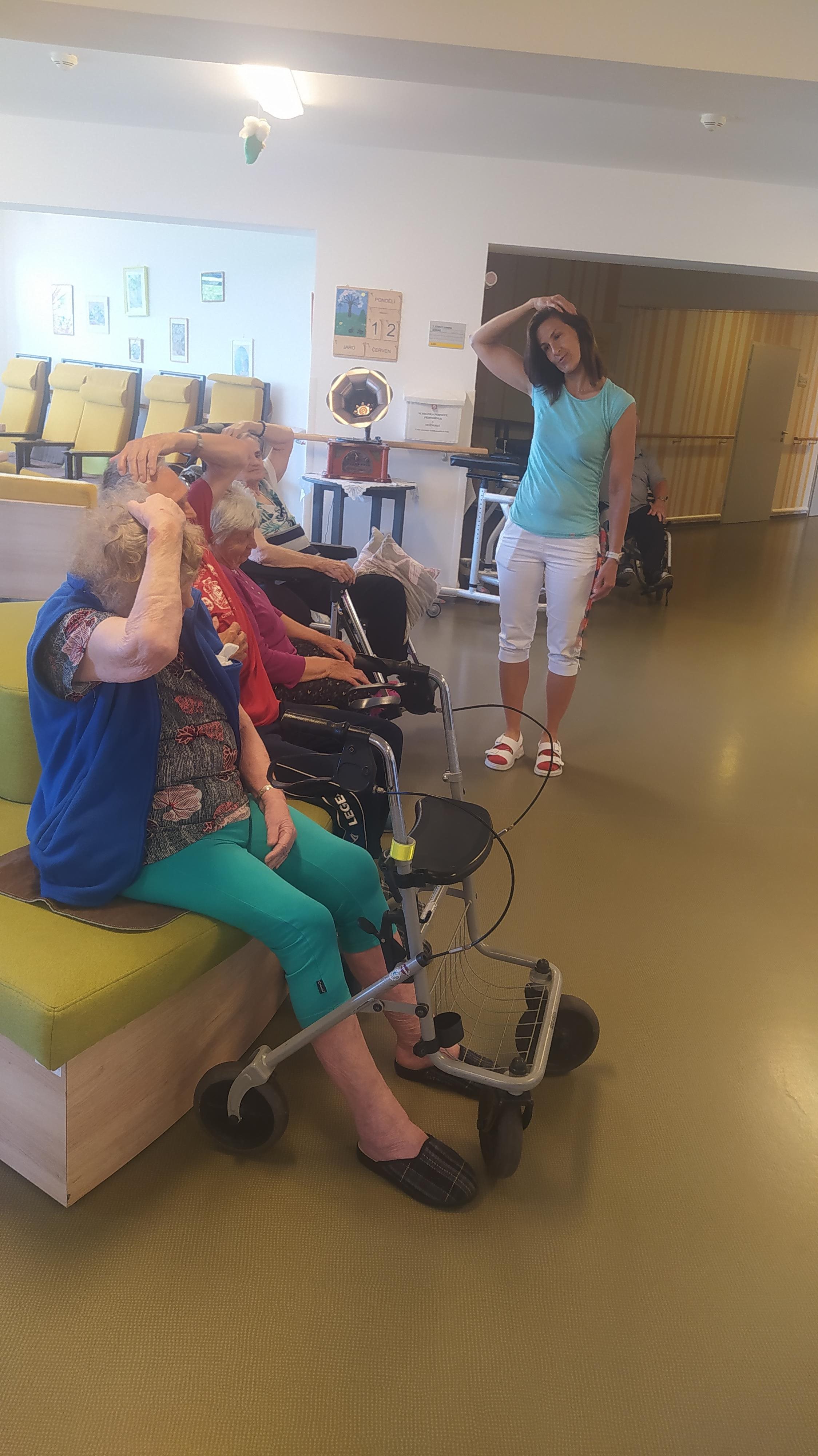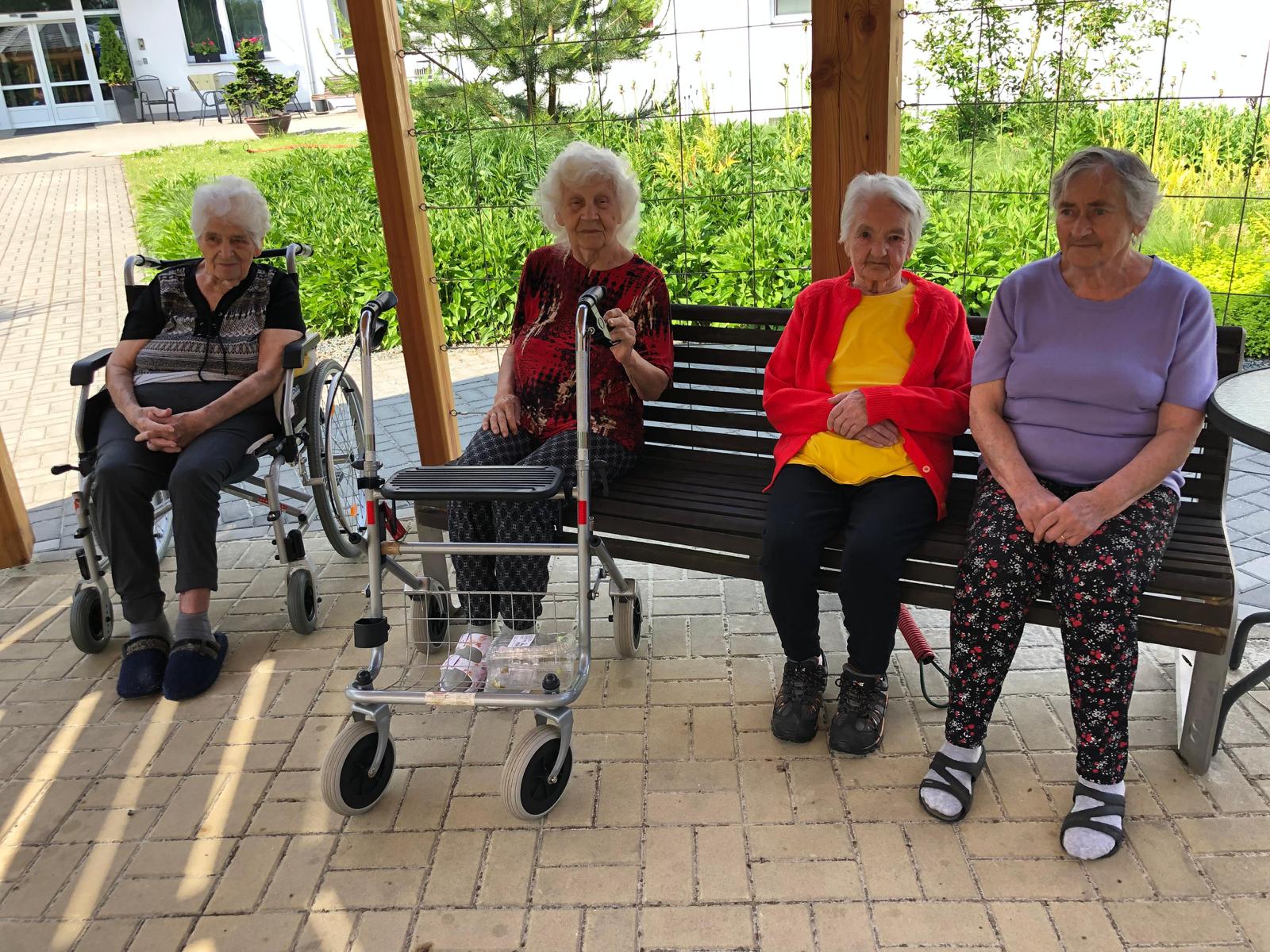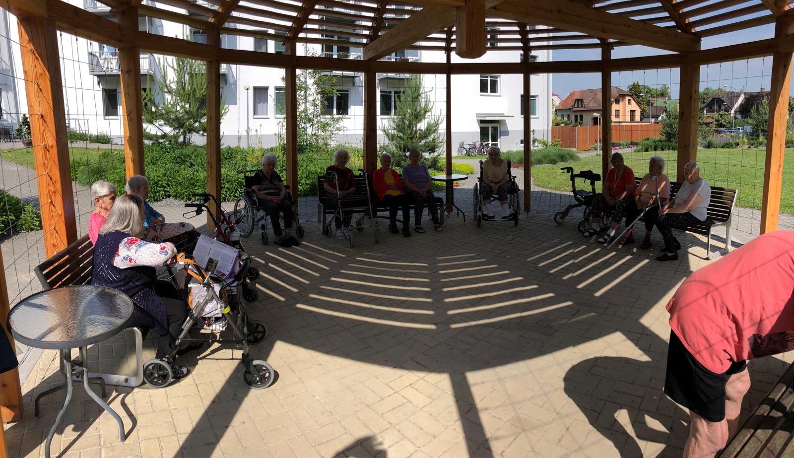 Léto pomalu nabírá na síle a my se už těšíme na letní výlety. V červnu jsme byli také dost aktivní: cvičili jsme společně na patrech, individuálně a s Kladruby. Upekli jsme ovocný koláč, se kterým jsme jeli na Olešku. Zpívali jsme s Jiřím Klečkou a Bárou Hrzánovou. V projektu "Ježíškova vnoučata" se splnilo přání a navštívili jsme ZOO Chleby. Potěšili nás naši čtyřnozí kamarádi a dokonce nám tu po zahradě pobíhal ztracený králík. Došlo i na první ochutnávky zmrzliny. Také u nás proběhla cvičná evakuace a jeli jsme na výstavu do Lysé nad Labem. Nový altán již plně slouží ke společnému setkávání a krásně nám rozkvetli nově osázené truhlíky na balkonech. A tak bychom mohli pokračovat ........