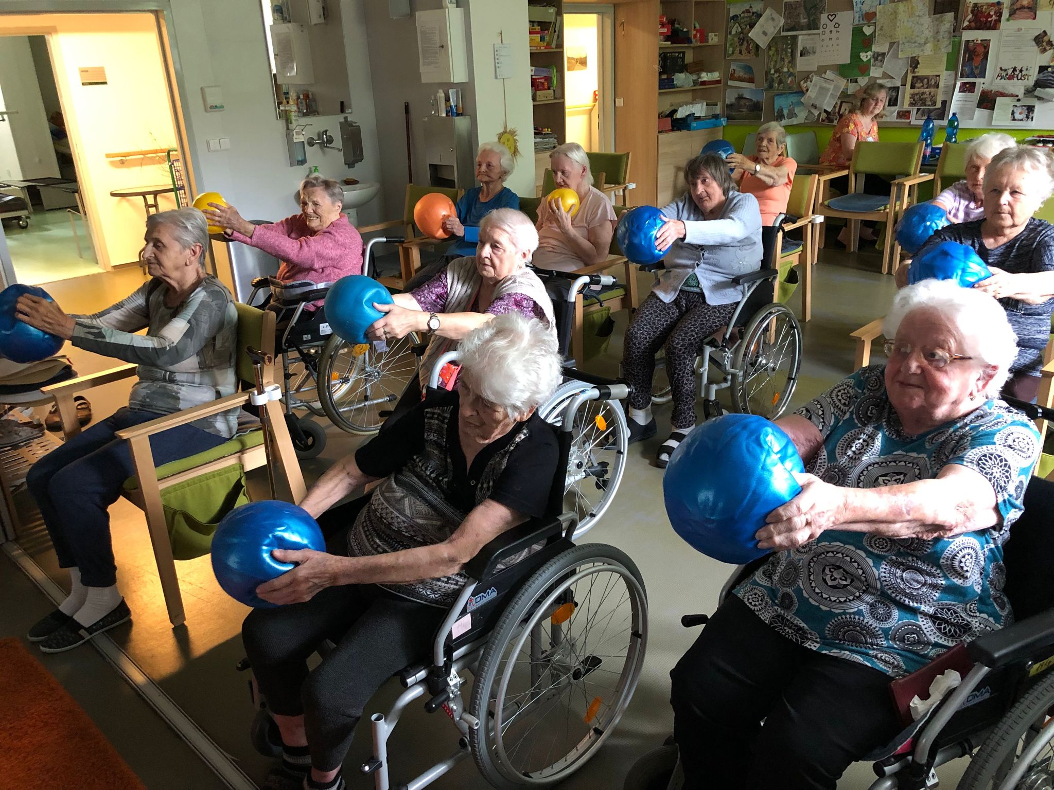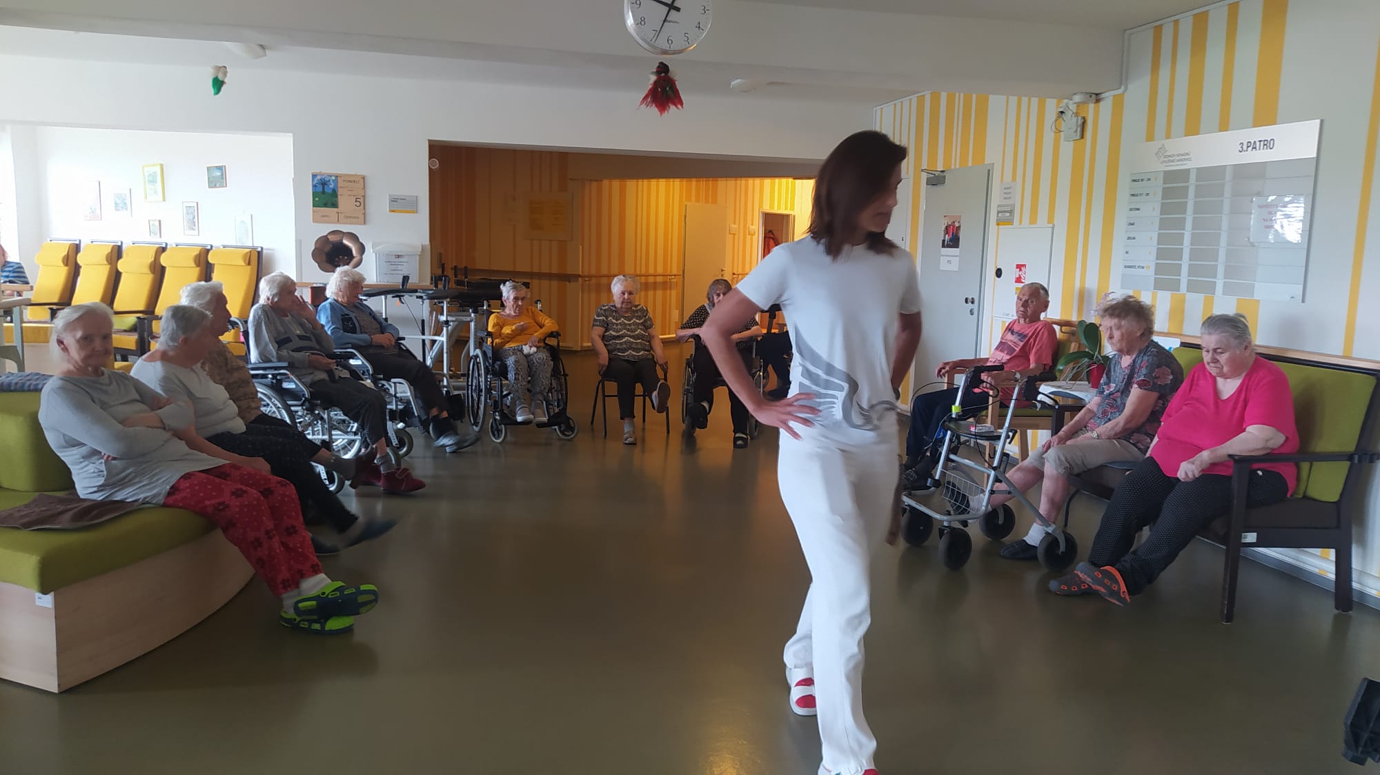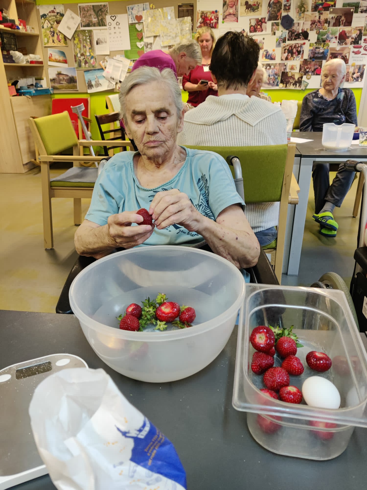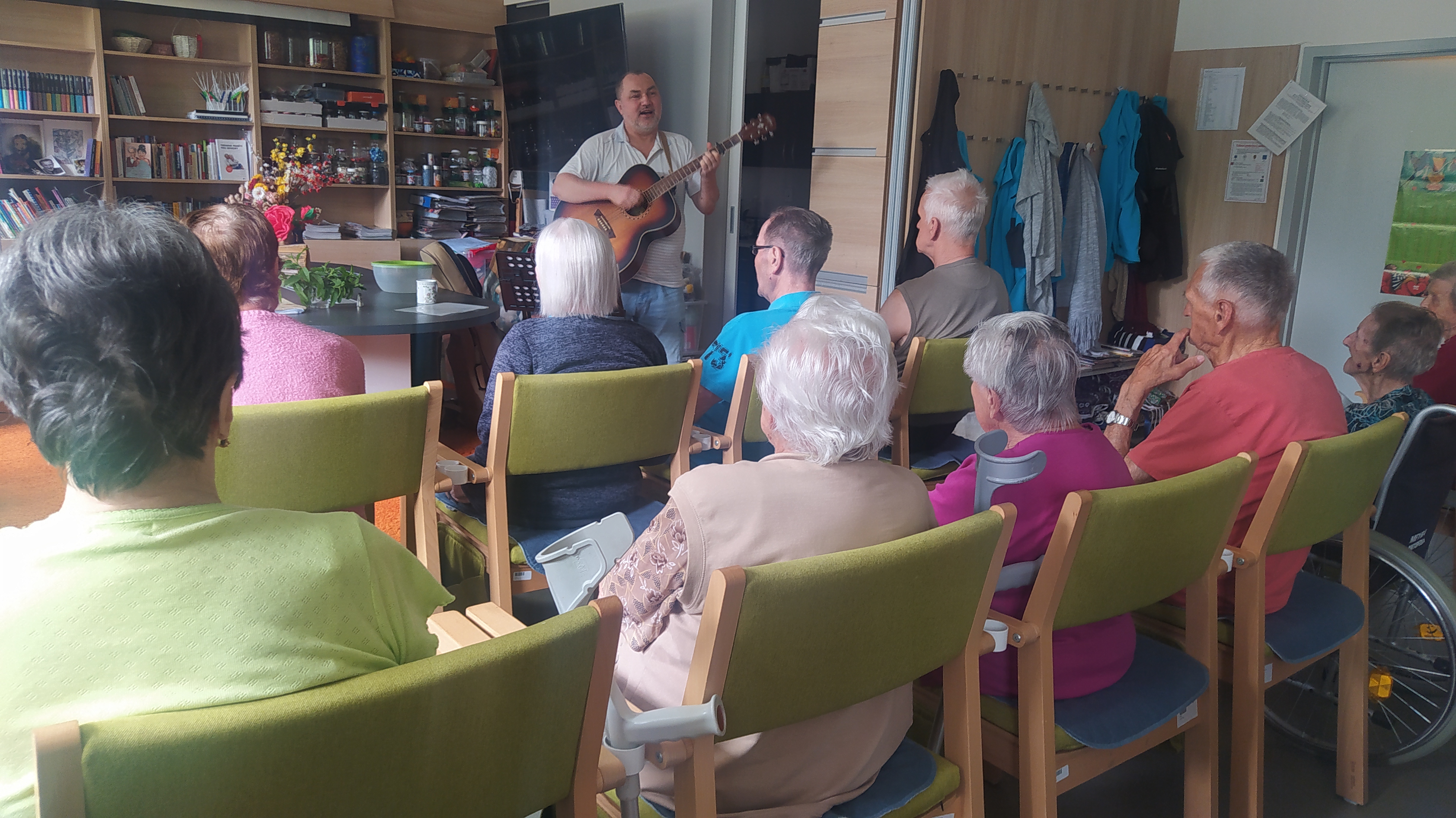 Léto pomalu nabírá na síle a my se už těšíme na letní výlety. V červnu jsme byli také dost aktivní: cvičili jsme společně na patrech, individuálně a s Kladruby. Upekli jsme ovocný koláč, se kterým jsme jeli na Olešku. Zpívali jsme s Jiřím Klečkou a Bárou Hrzánovou. V projektu "Ježíškova vnoučata" se splnilo přání a navštívili jsme ZOO Chleby. Potěšili nás naši čtyřnozí kamarádi a dokonce nám tu po zahradě pobíhal ztracený králík. Došlo i na první ochutnávky zmrzliny. Také u nás proběhla cvičná evakuace a jeli jsme na výstavu do Lysé nad Labem. Nový altán již plně slouží ke společnému setkávání a krásně nám rozkvetli nově osázené truhlíky na balkonech. A tak bychom mohli pokračovat ........
