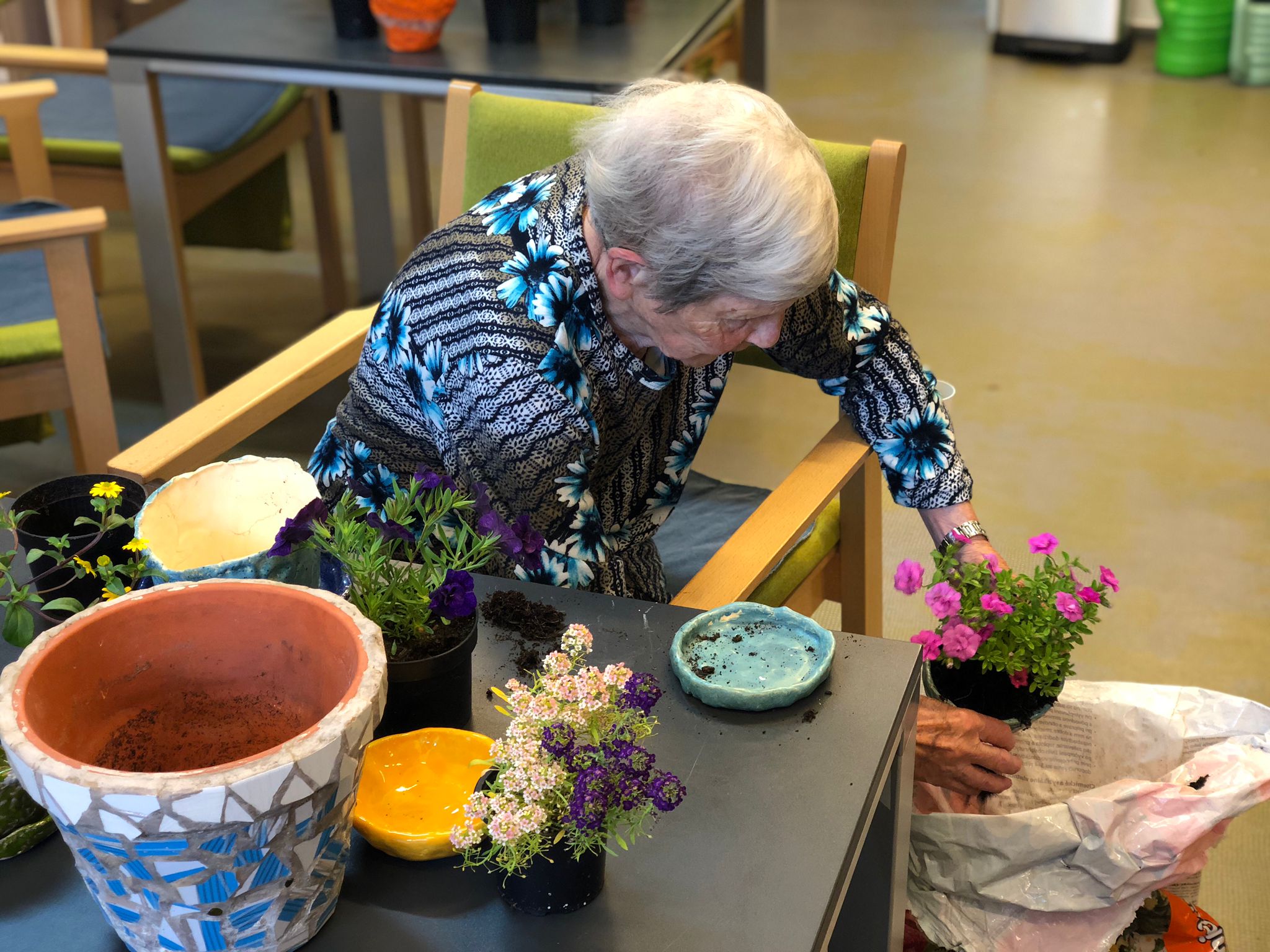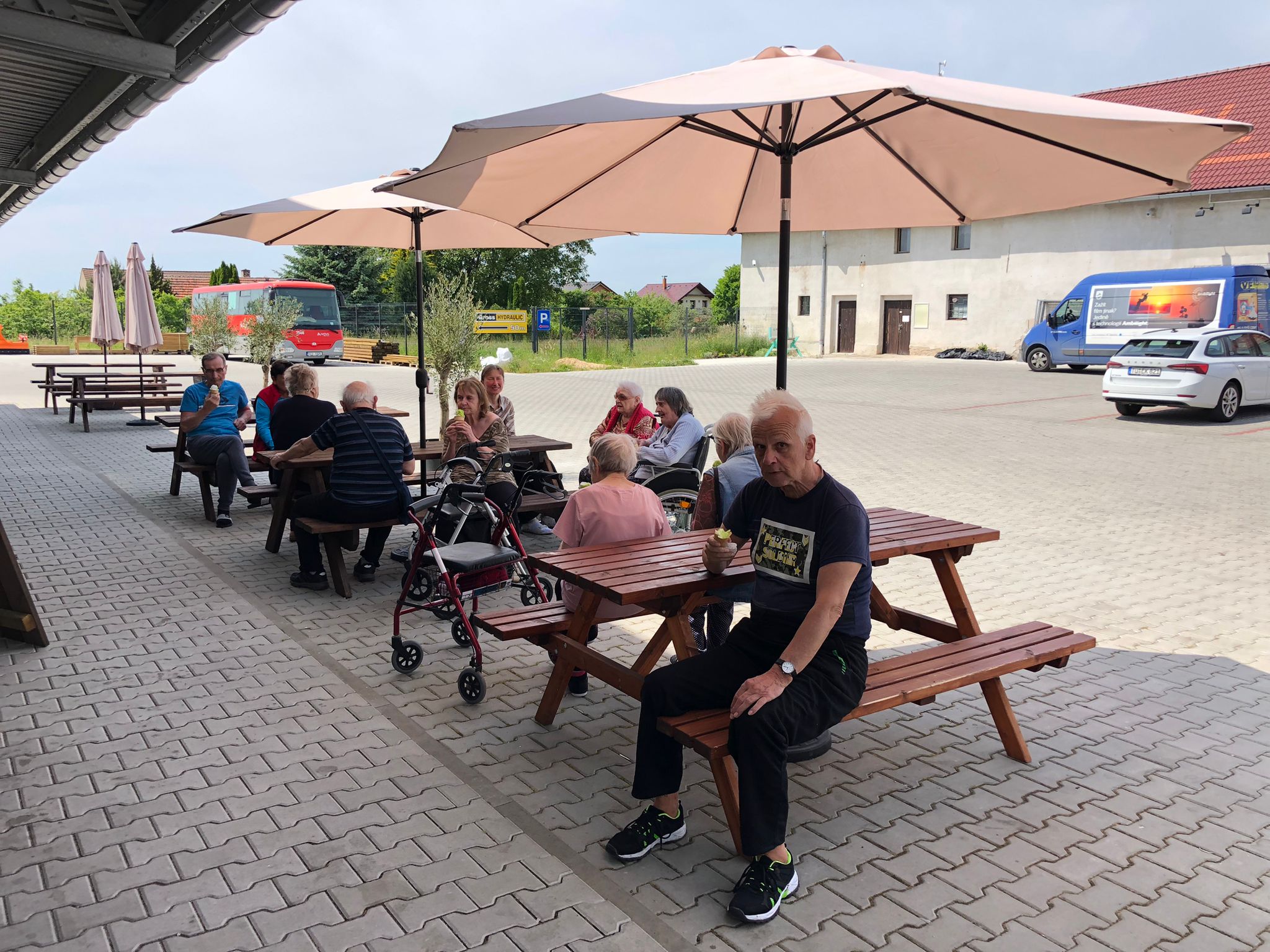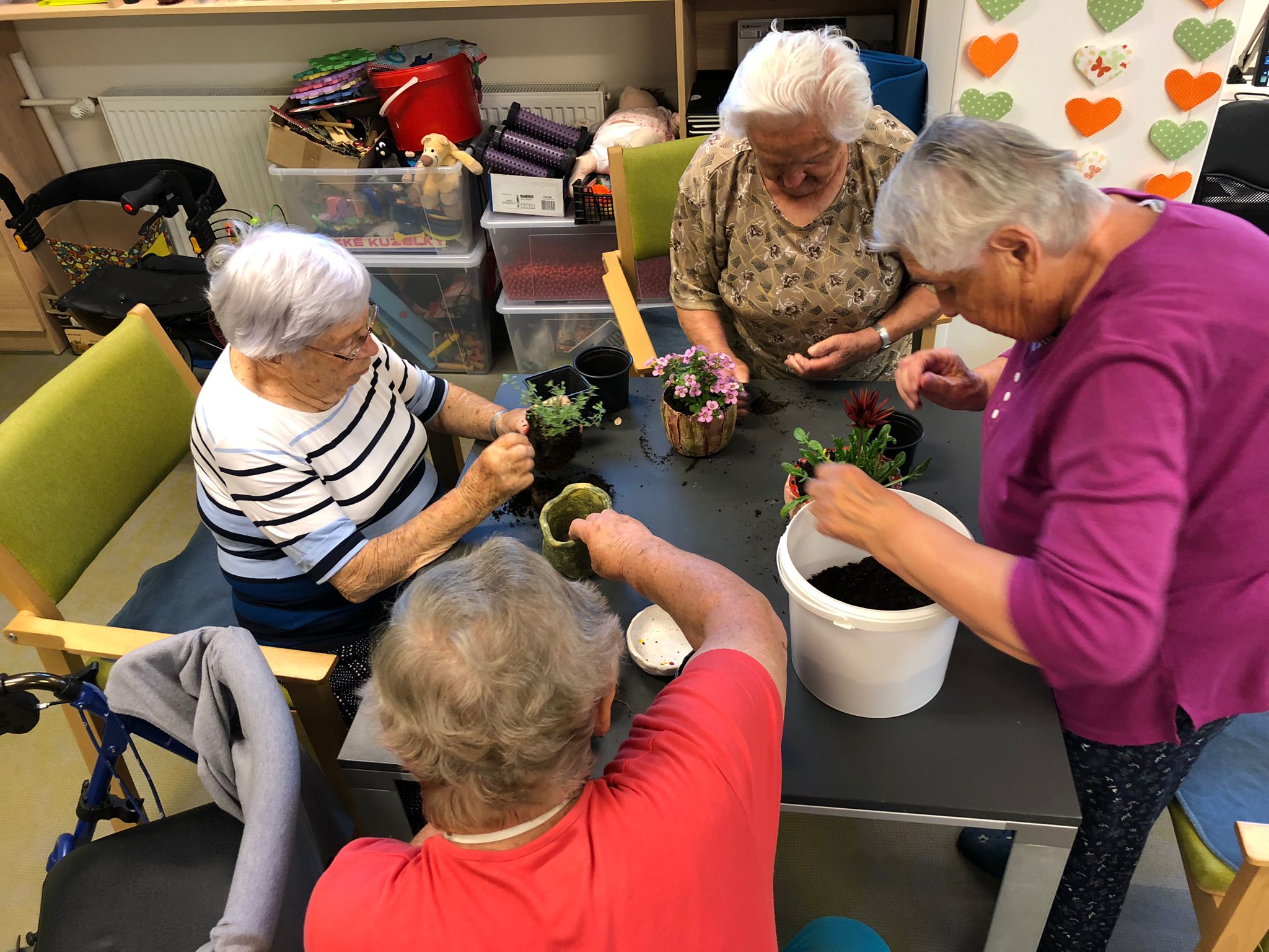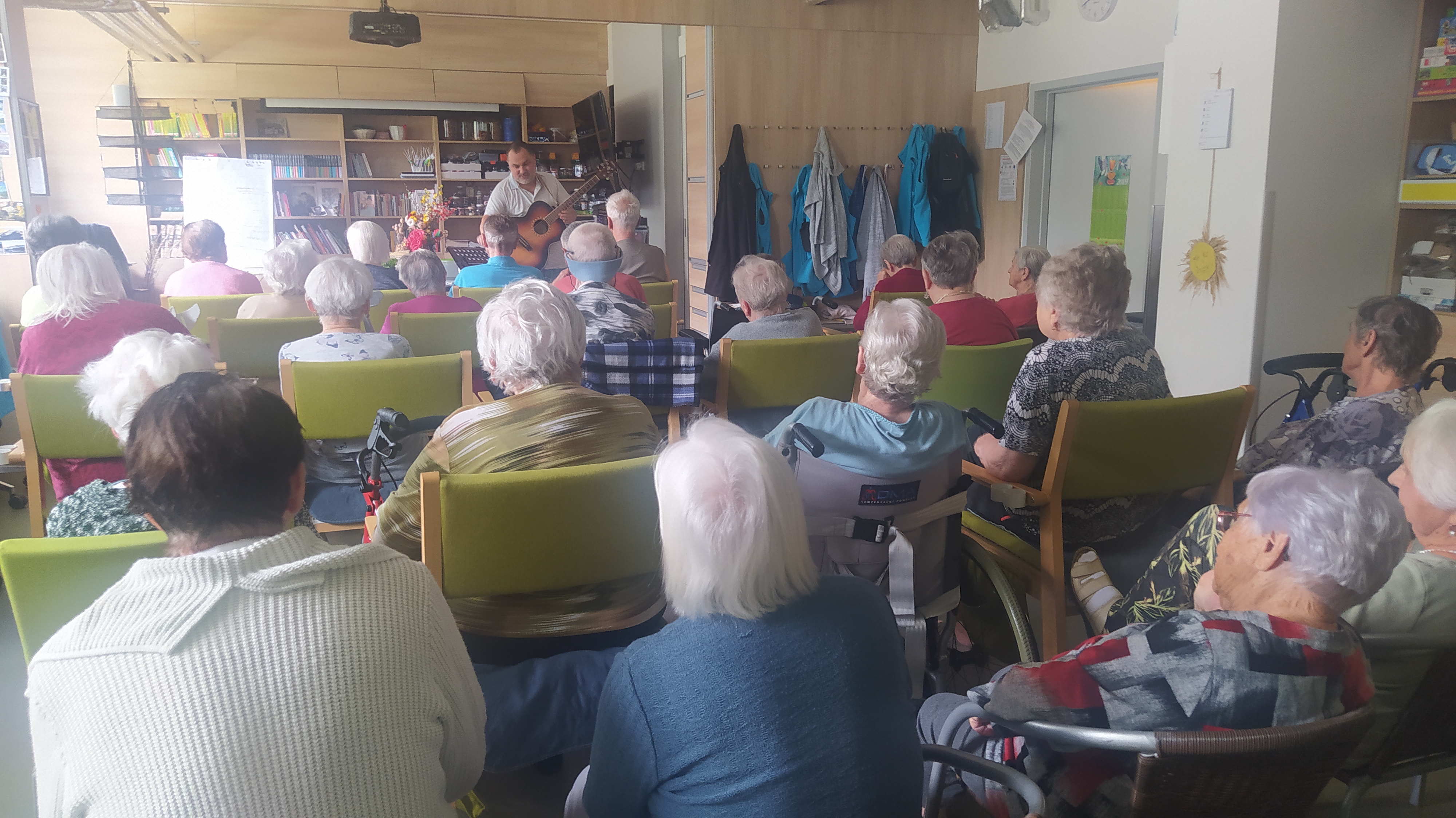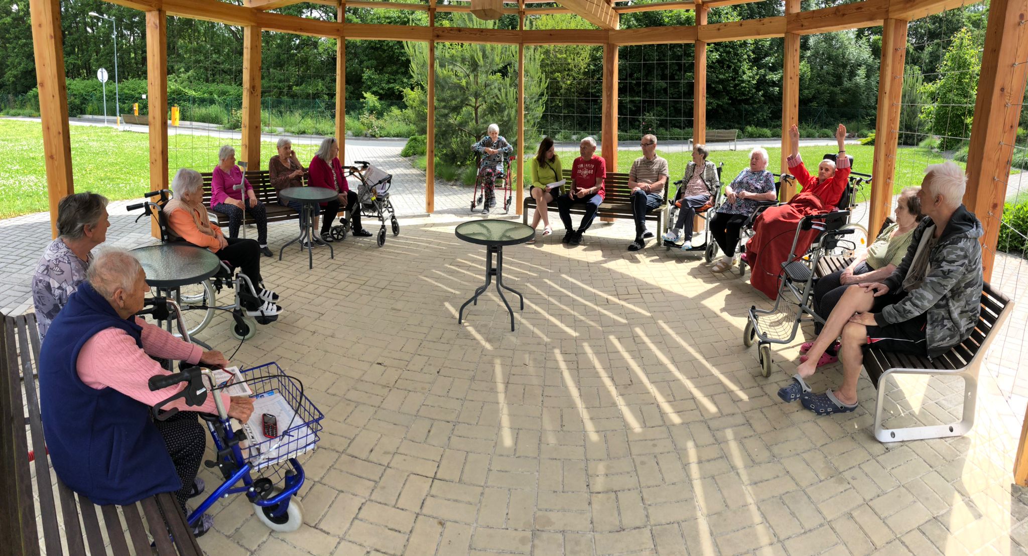 Léto pomalu nabírá na síle a my se už těšíme na letní výlety. V červnu jsme byli také dost aktivní: cvičili jsme společně na patrech, individuálně a s Kladruby. Upekli jsme ovocný koláč, se kterým jsme jeli na Olešku. Zpívali jsme s Jiřím Klečkou a Bárou Hrzánovou. V projektu "Ježíškova vnoučata" se splnilo přání a navštívili jsme ZOO Chleby. Potěšili nás naši čtyřnozí kamarádi a dokonce nám tu po zahradě pobíhal ztracený králík. Došlo i na první ochutnávky zmrzliny. Také u nás proběhla cvičná evakuace a jeli jsme na výstavu do Lysé nad Labem. Nový altán již plně slouží ke společnému setkávání a krásně nám rozkvetli nově osázené truhlíky na balkonech. A tak bychom mohli pokračovat ........