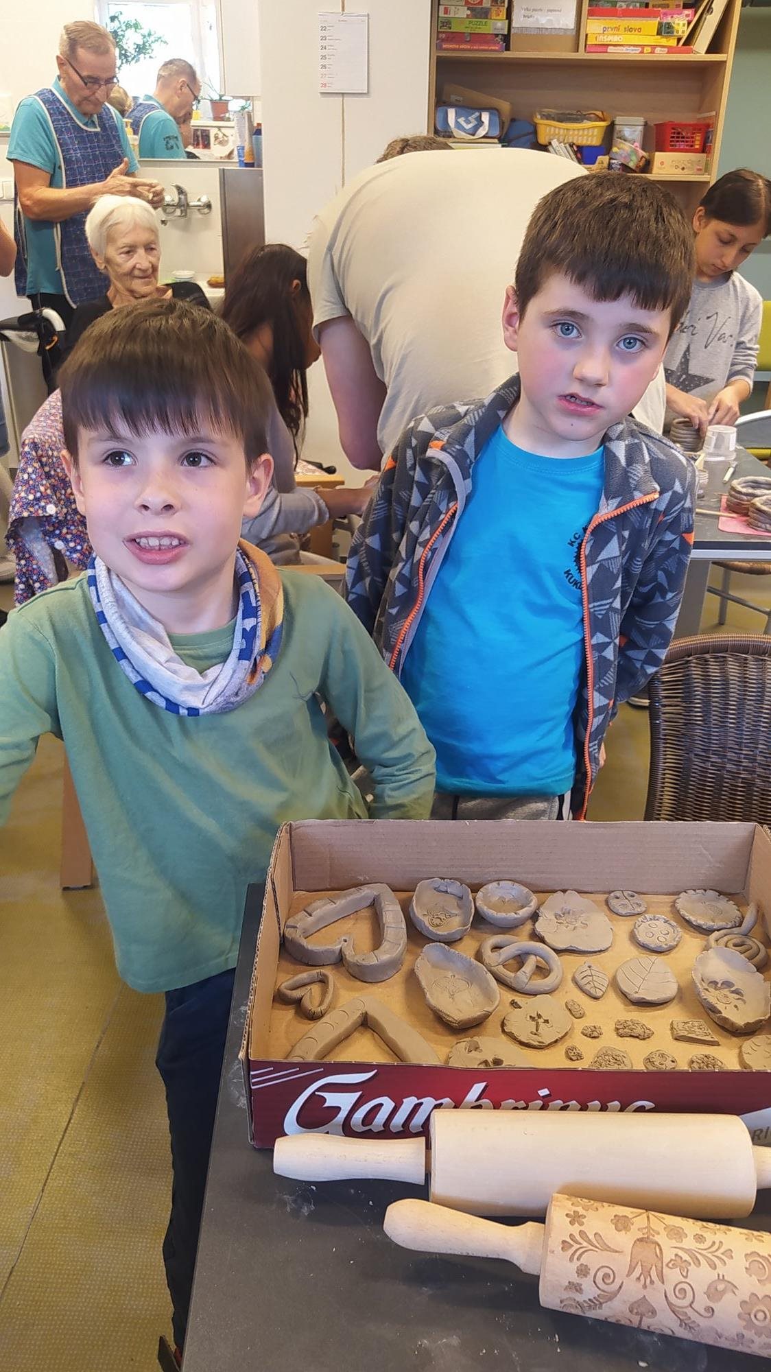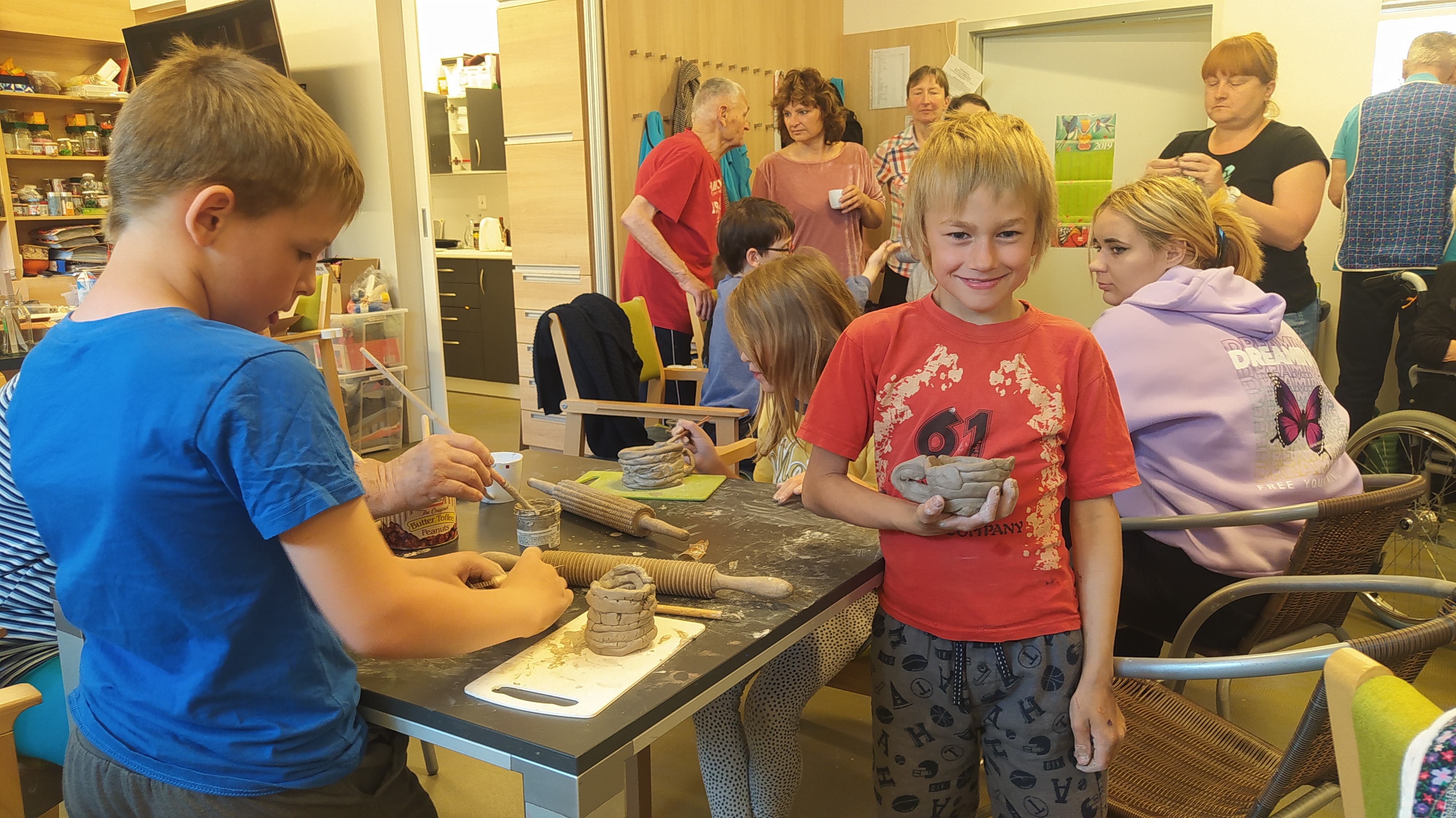 Dopoledne jsme vyráběli s dětmi ze ZŠ speciální Uhl. Janovice z keramické hlíny přívěšky, hrníčky nebo srdíčka. Tentokrát nás navštívilo 10 dětí z první logopedické třídy a společný čas jsme si moc užili. Těšíme se na další setkání.