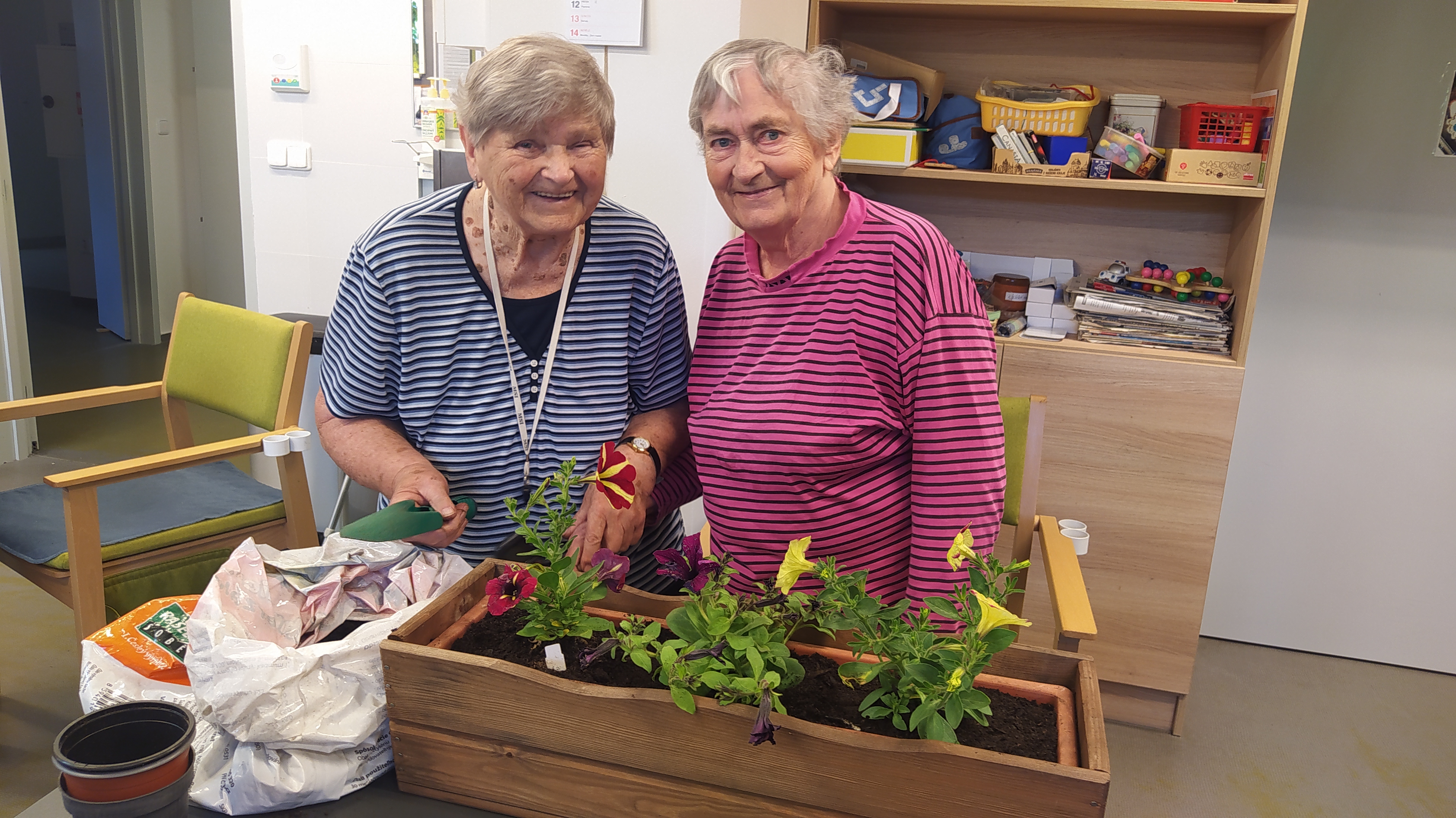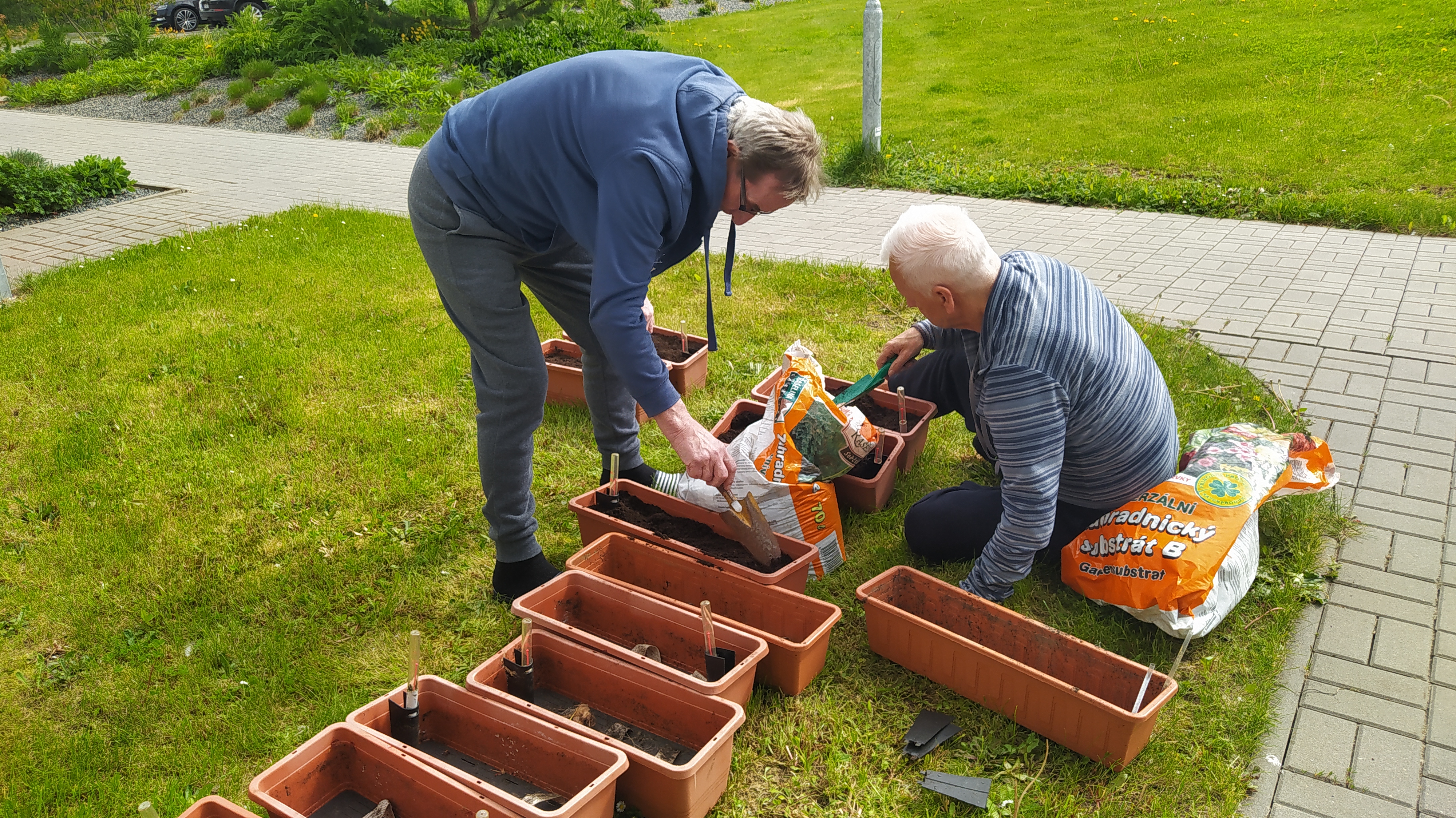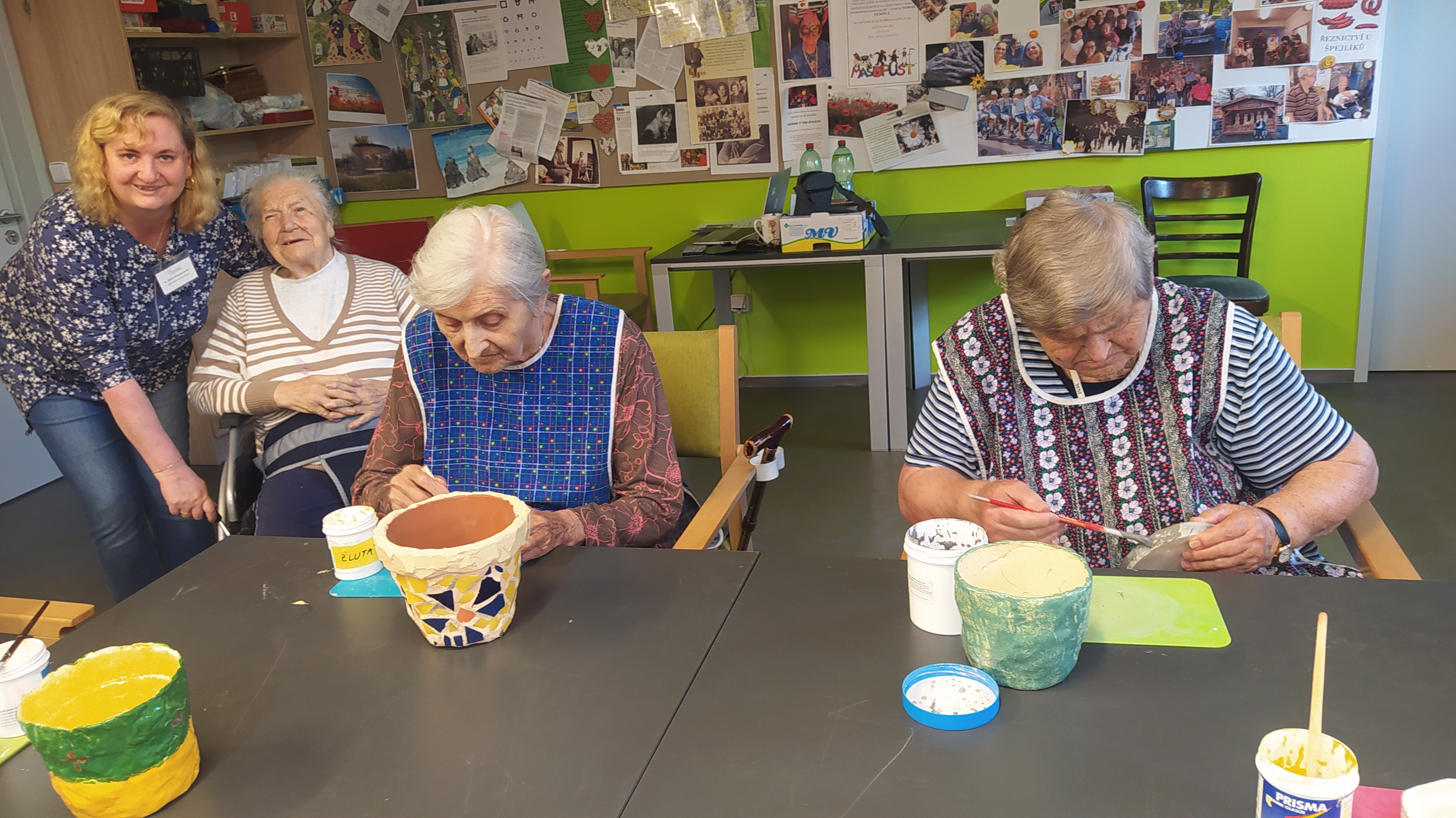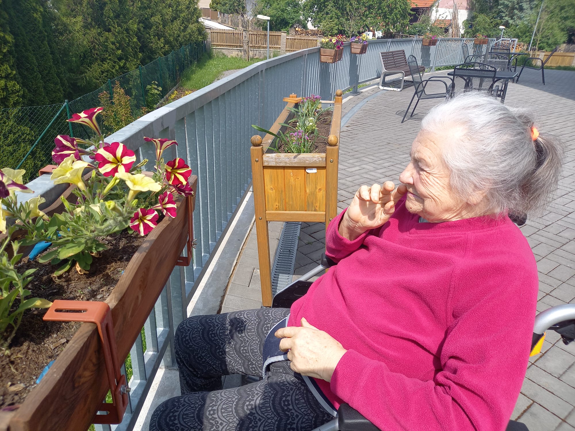 V květnu už hřálo sluníčko a my se mohli naplno pustit do nákupů květin, osázení truhlíků a údržby zahrádky. Využili jsme nového altánu pro příjemné posezení. Začali jsme připravovat výrobky pro výstavu v Lysé nad Labem - letos na téma "NÁVRATY DO DĚTSTVÍ ANEB INSPIRACE FILMEM PÁNI KLUCI". Pracovali jsme v dílně, glazovali keramiku a společně tvořili a tvořili a tvořili. :) Naše rehabilitační nám pomohla protáhnout těla, zvířecí kamarádi potěšili duši a potrápili jsme i naše hlavičky. Zahrál pro nás Bohuš Matuš s doprovodem. Navštívili jsme zámek v Ratajích nad Sázavou a také jsme tančili s panem Petrem Veletou. Začali jsme sušit bylinky a upekli si buchtu z čokolády Margot pro květnovou kavárničku. Prostě měsíc plný zážitků :)