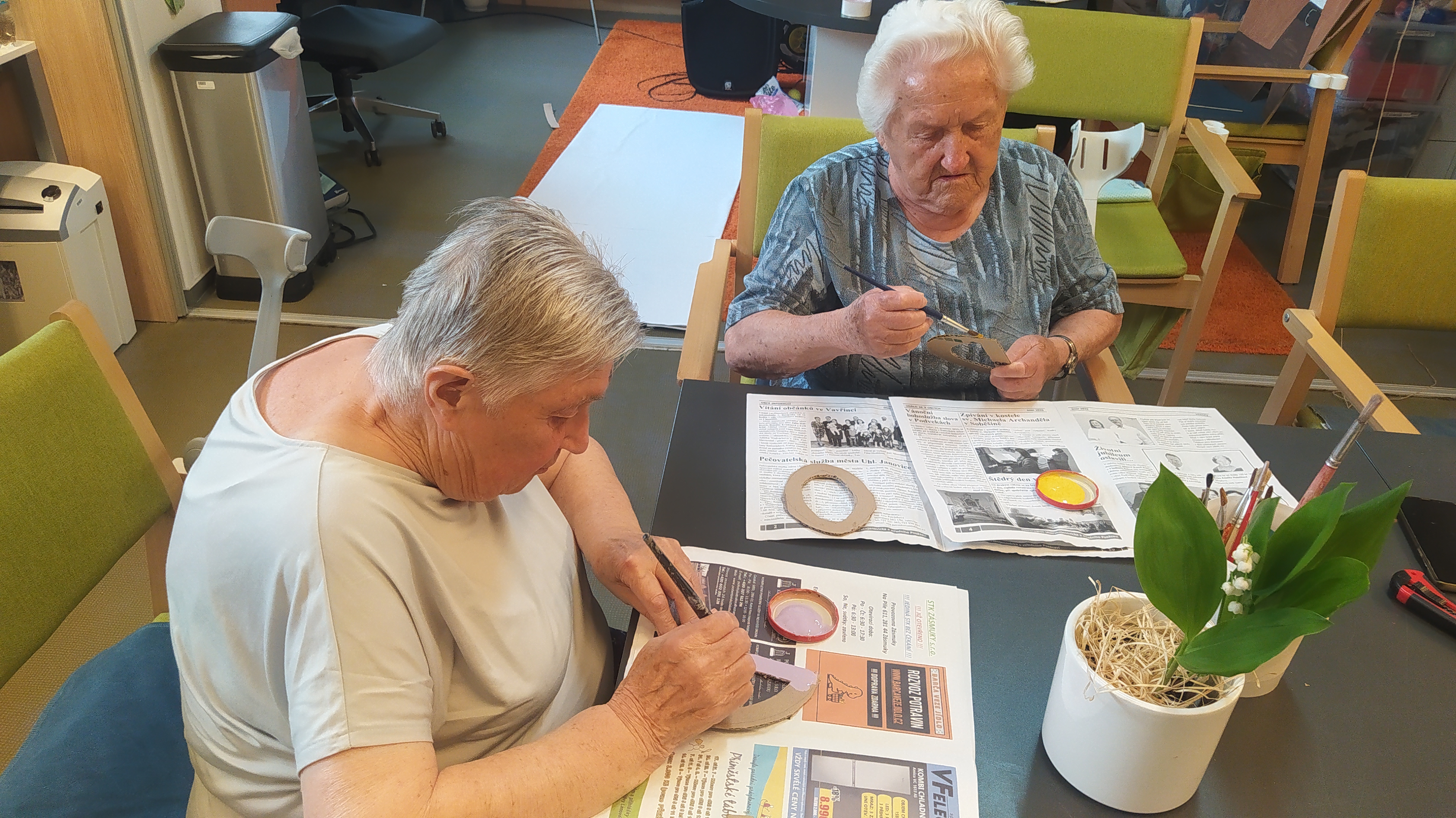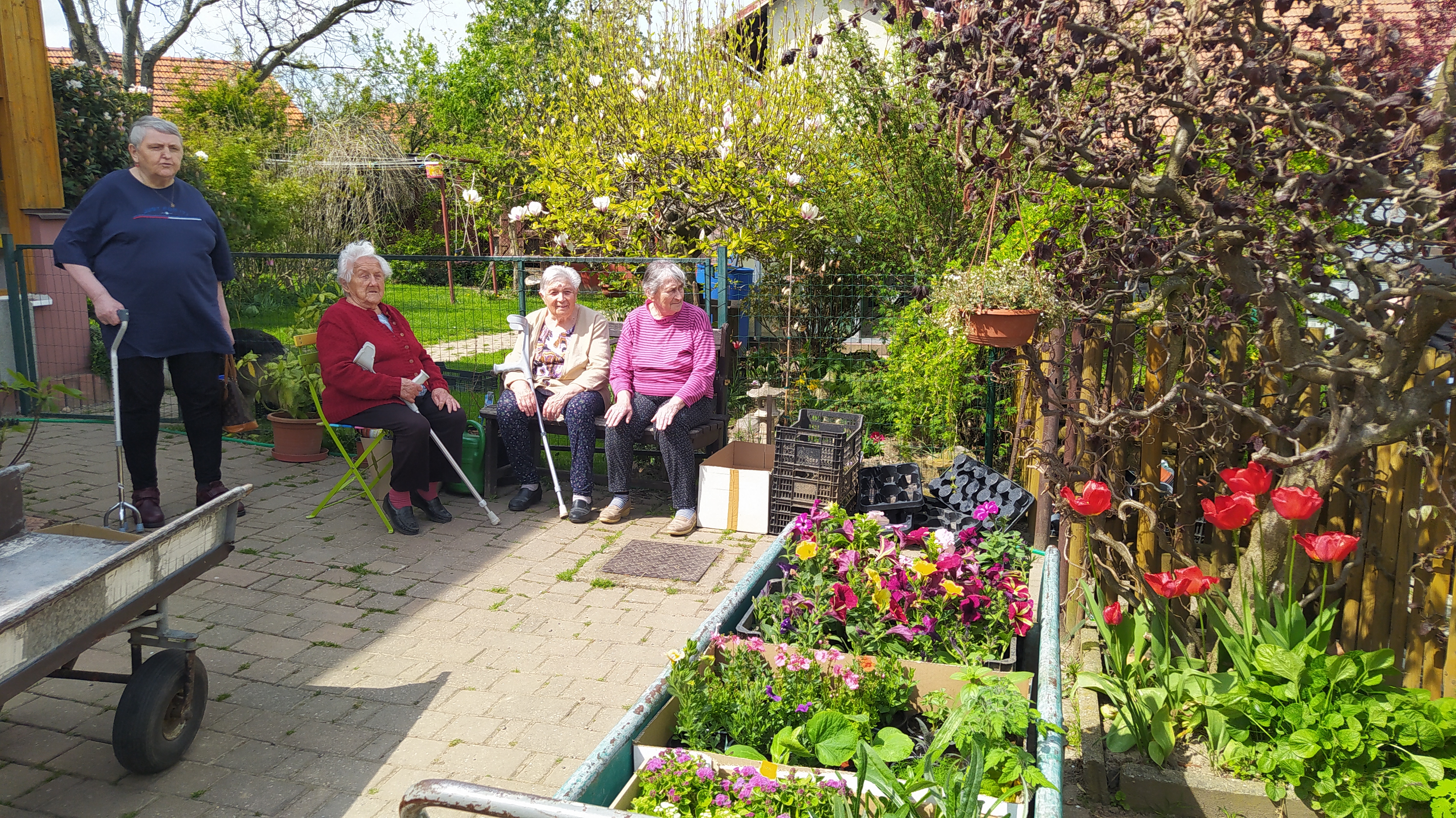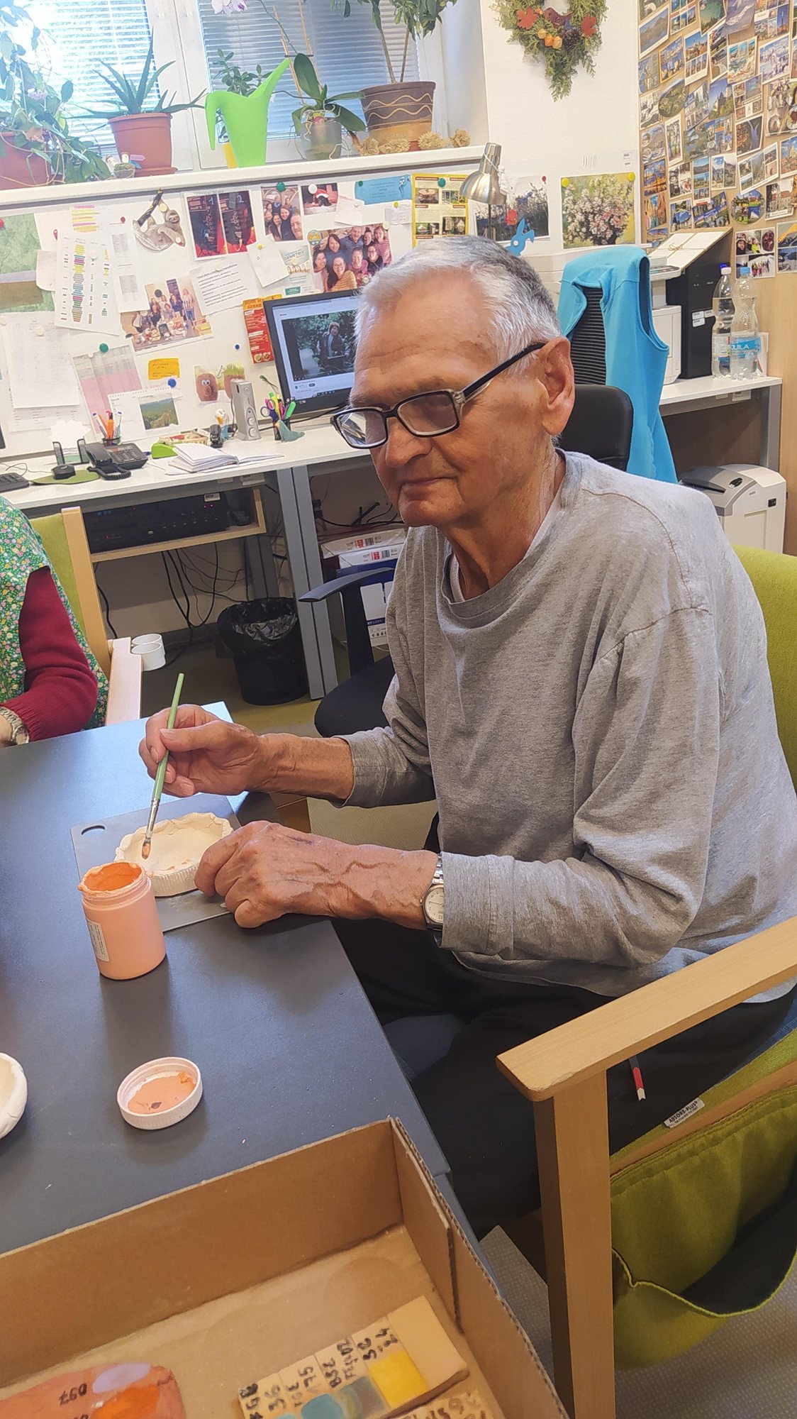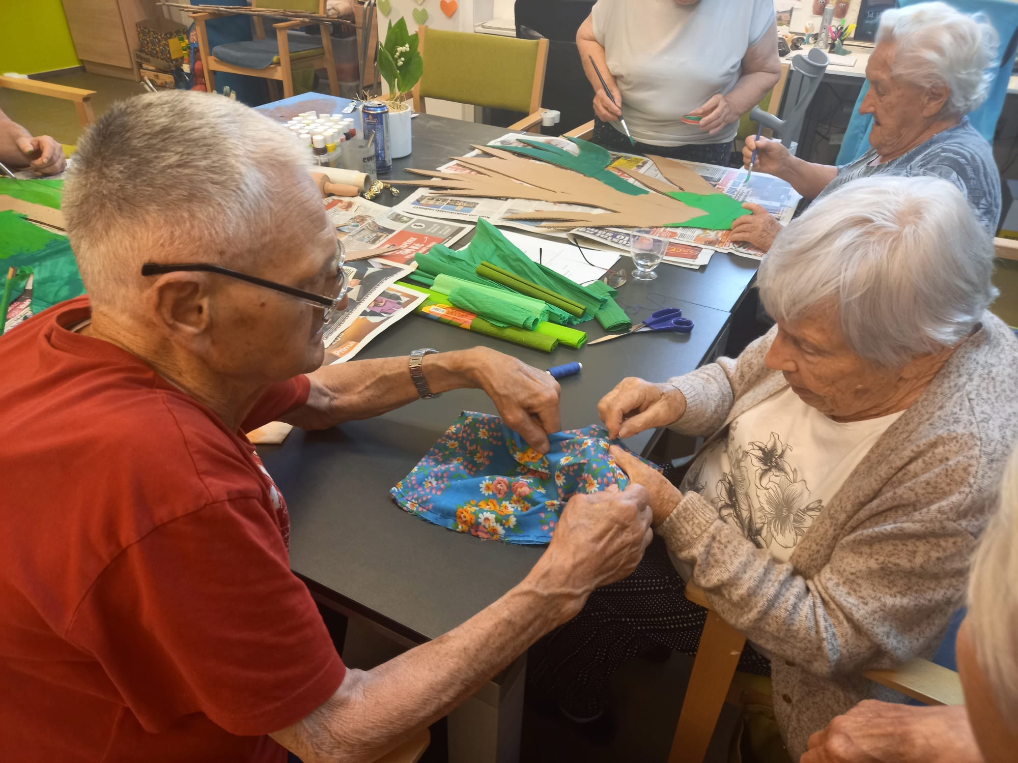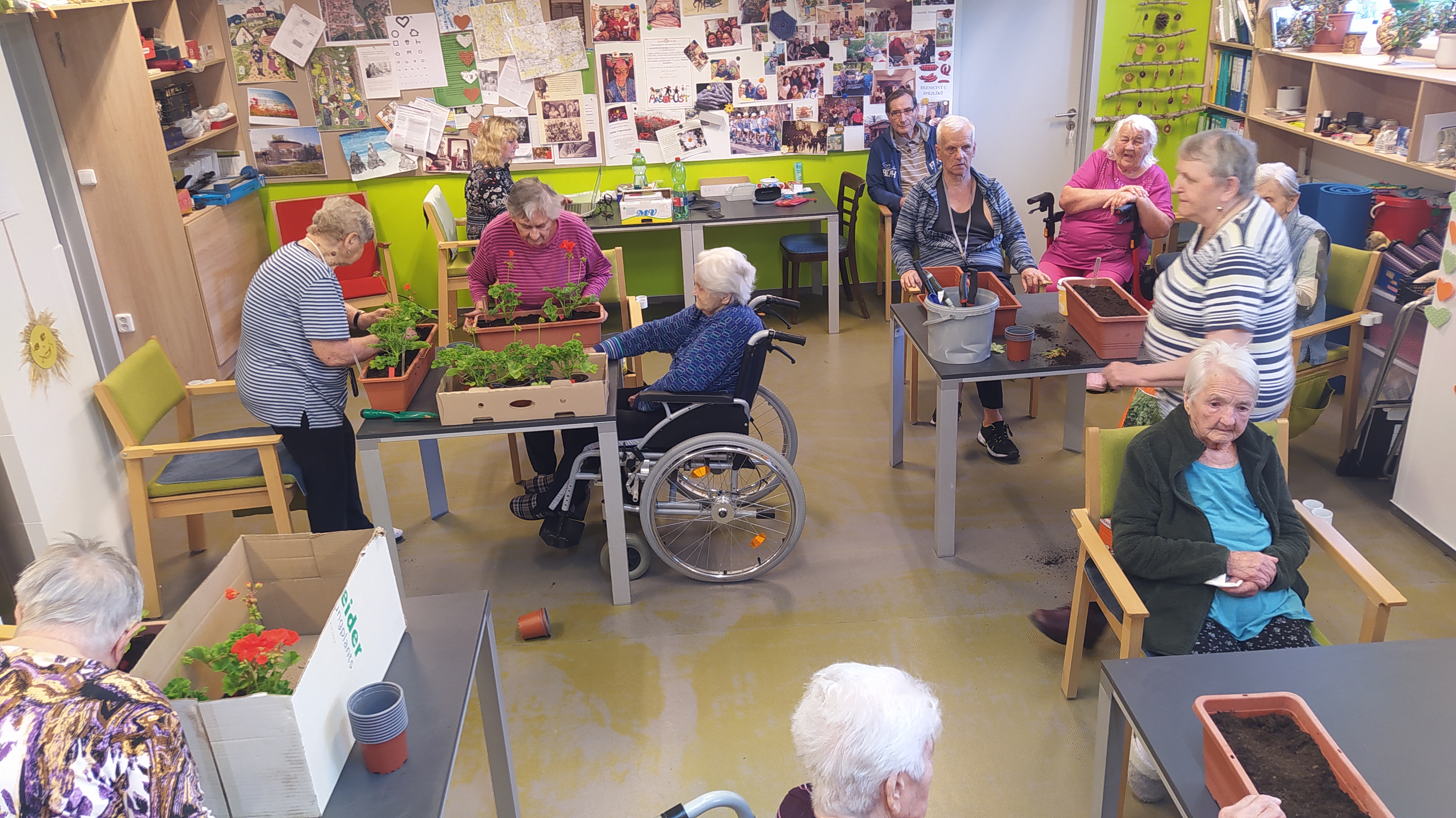 V květnu už hřálo sluníčko a my se mohli naplno pustit do nákupů květin, osázení truhlíků a údržby zahrádky. Využili jsme nového altánu pro příjemné posezení. Začali jsme připravovat výrobky pro výstavu v Lysé nad Labem - letos na téma "NÁVRATY DO DĚTSTVÍ ANEB INSPIRACE FILMEM PÁNI KLUCI". Pracovali jsme v dílně, glazovali keramiku a společně tvořili a tvořili a tvořili. :) Naše rehabilitační nám pomohla protáhnout těla, zvířecí kamarádi potěšili duši a potrápili jsme i naše hlavičky. Zahrál pro nás Bohuš Matuš s doprovodem. Navštívili jsme zámek v Ratajích nad Sázavou a také jsme tančili s panem Petrem Veletou. Začali jsme sušit bylinky a upekli si buchtu z čokolády Margot pro květnovou kavárničku. Prostě měsíc plný zážitků :)