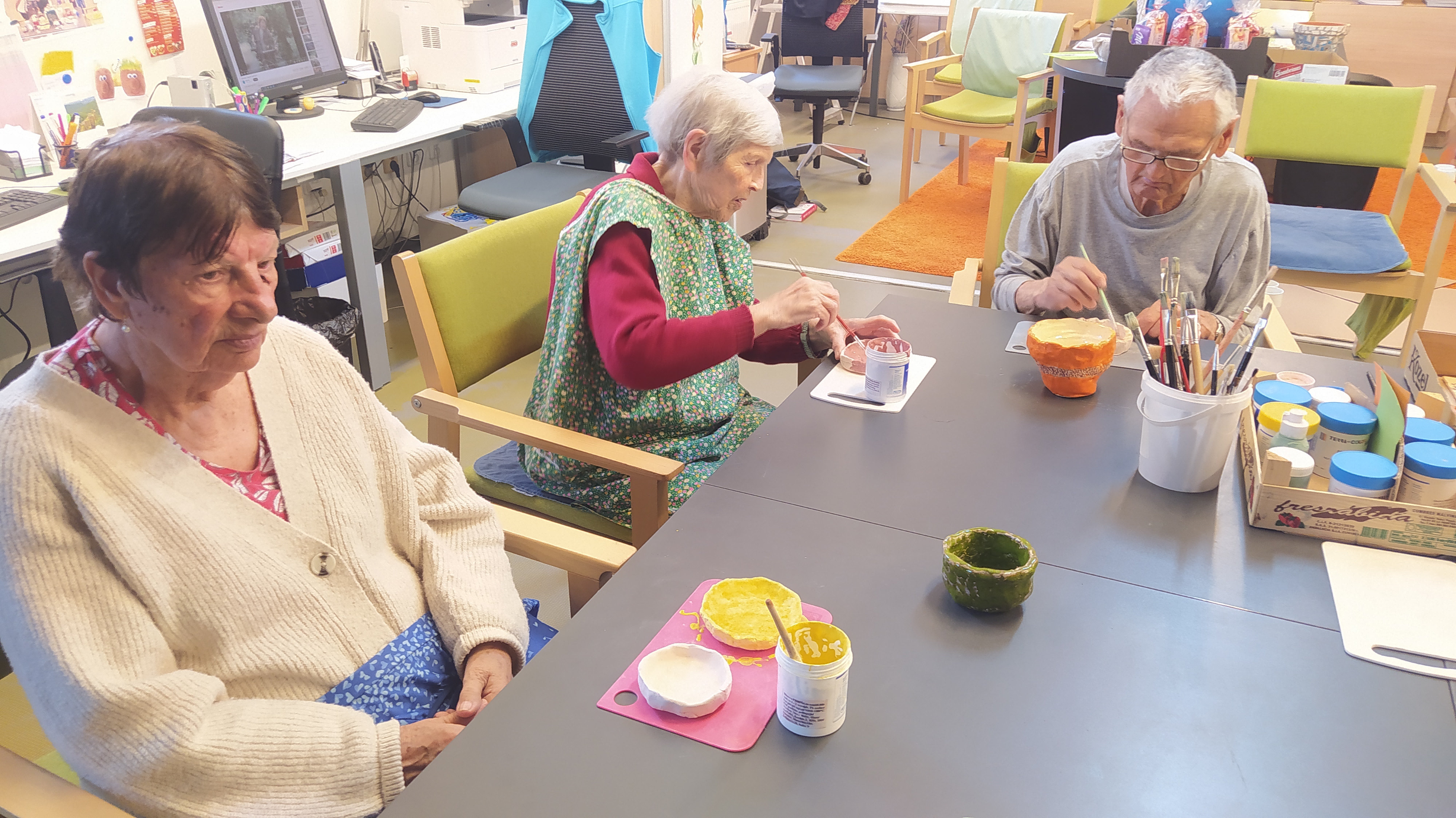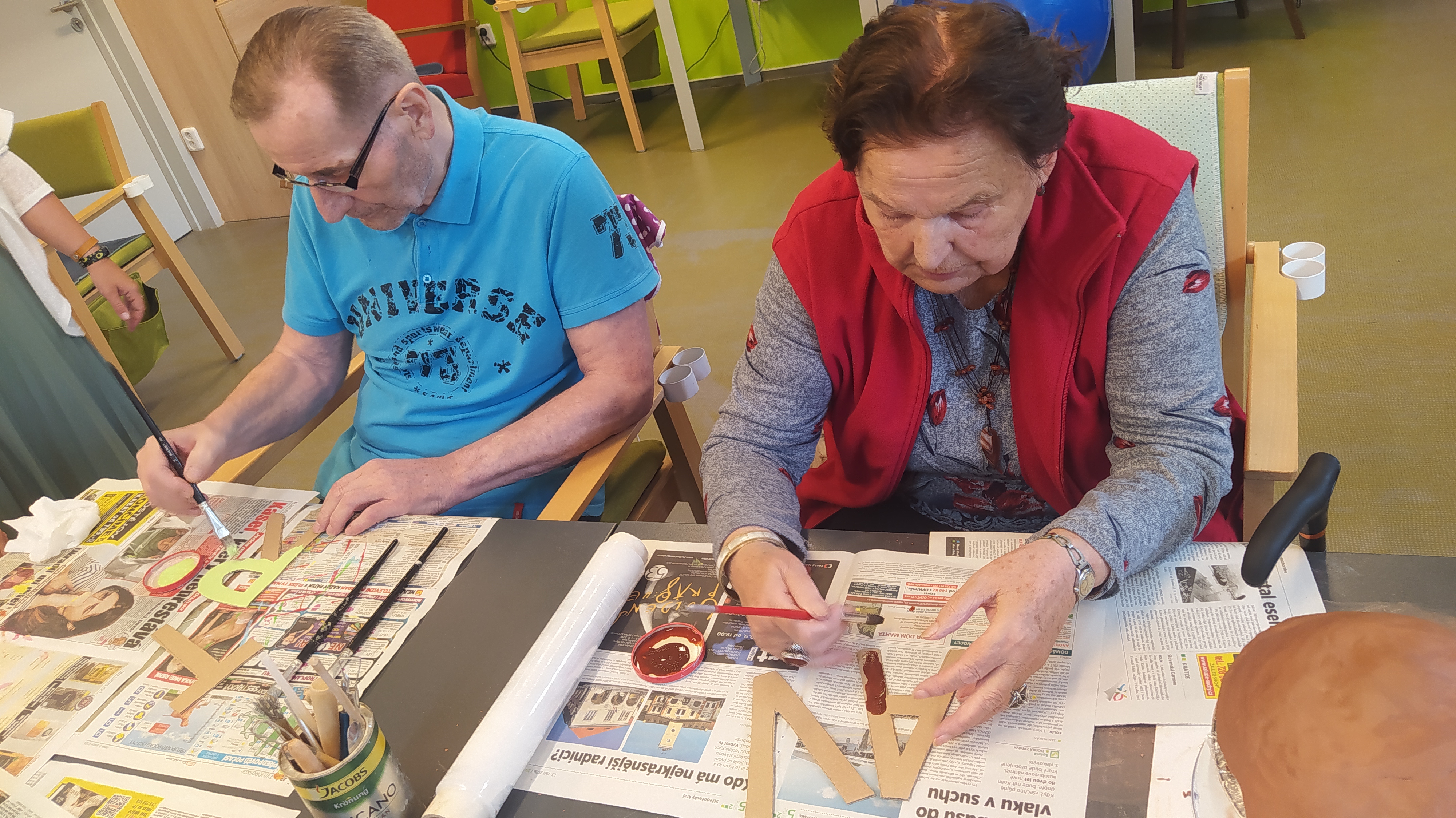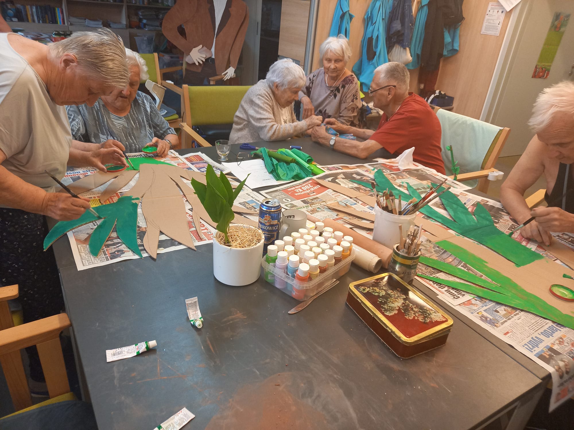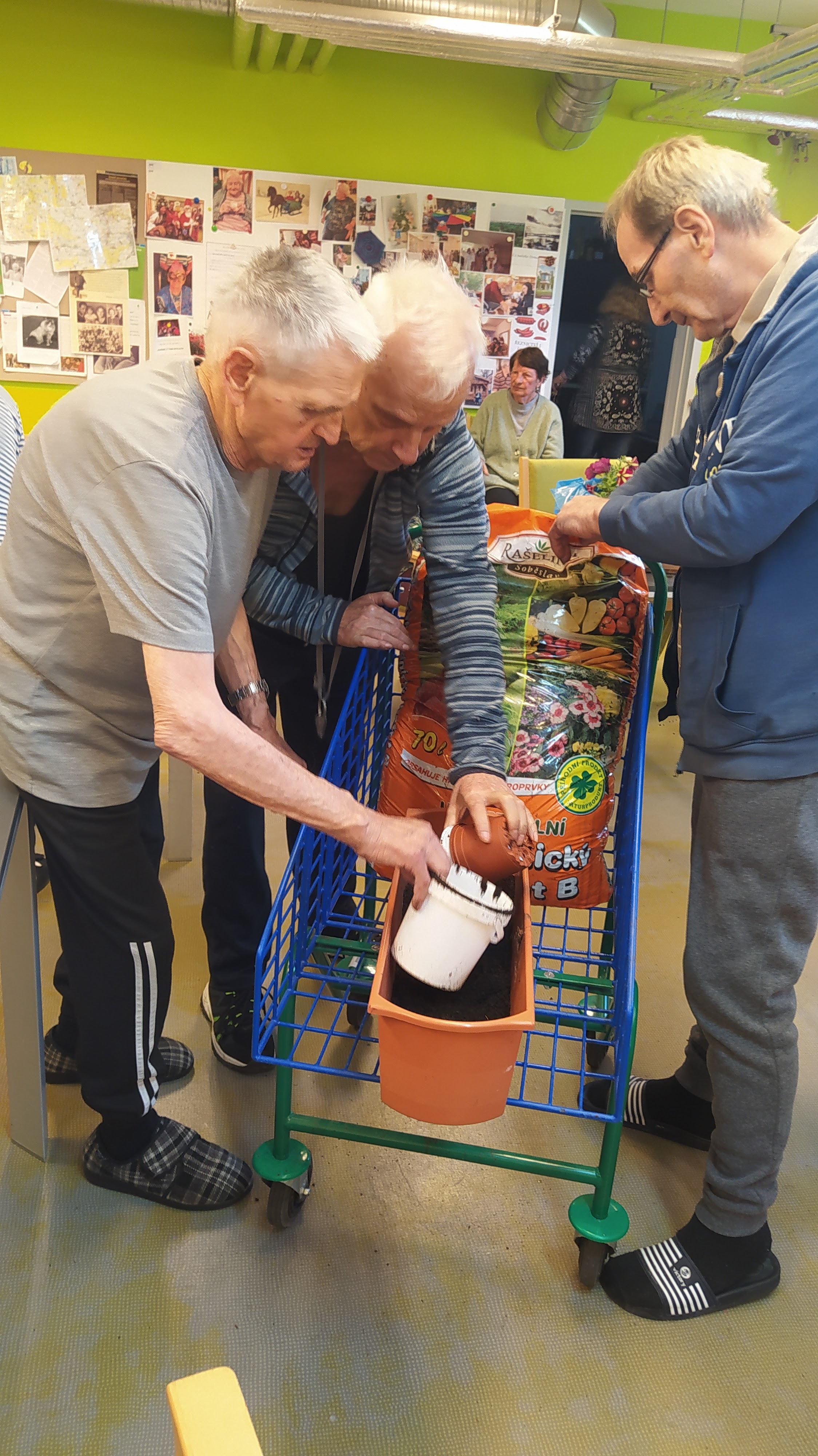 V květnu už hřálo sluníčko a my se mohli naplno pustit do nákupů květin, osázení truhlíků a údržby zahrádky. Využili jsme nového altánu pro příjemné posezení. Začali jsme připravovat výrobky pro výstavu v Lysé nad Labem - letos na téma "NÁVRATY DO DĚTSTVÍ ANEB INSPIRACE FILMEM PÁNI KLUCI". Pracovali jsme v dílně, glazovali keramiku a společně tvořili a tvořili a tvořili. :) Naše rehabilitační nám pomohla protáhnout těla, zvířecí kamarádi potěšili duši a potrápili jsme i naše hlavičky. Zahrál pro nás Bohuš Matuš s doprovodem. Navštívili jsme zámek v Ratajích nad Sázavou a také jsme tančili s panem Petrem Veletou. Začali jsme sušit bylinky a upekli si buchtu z čokolády Margot pro květnovou kavárničku. Prostě měsíc plný zážitků :)