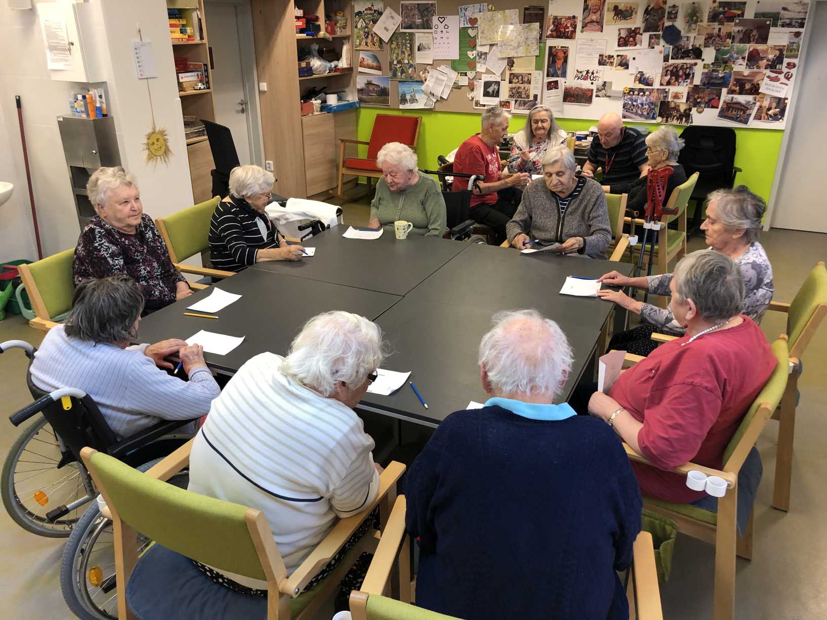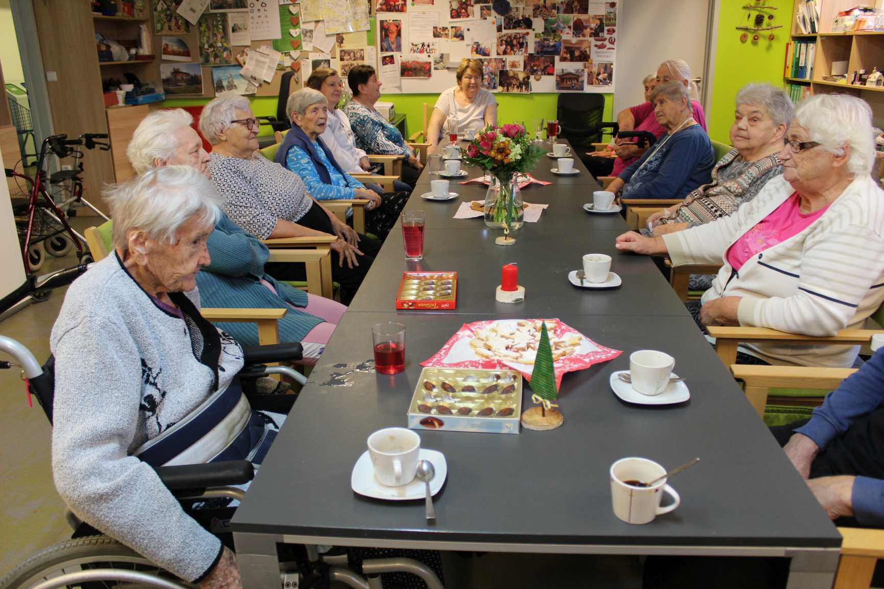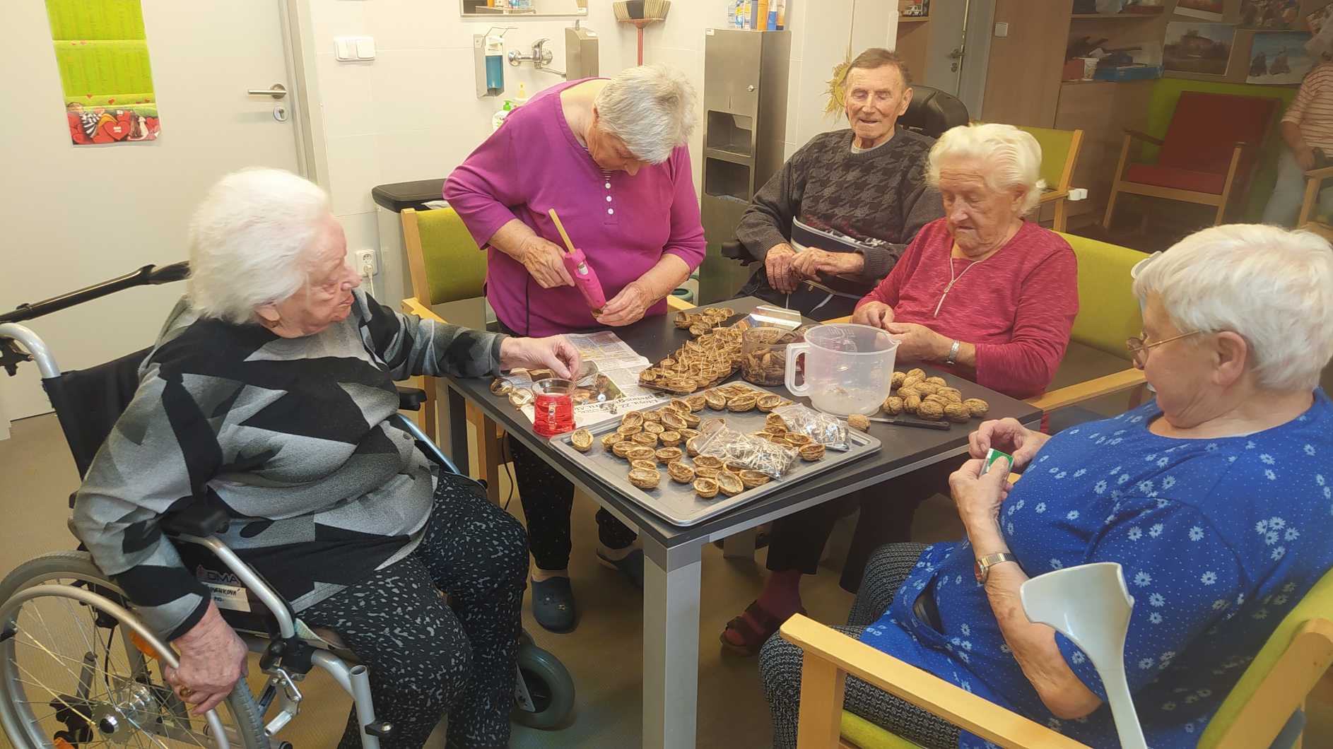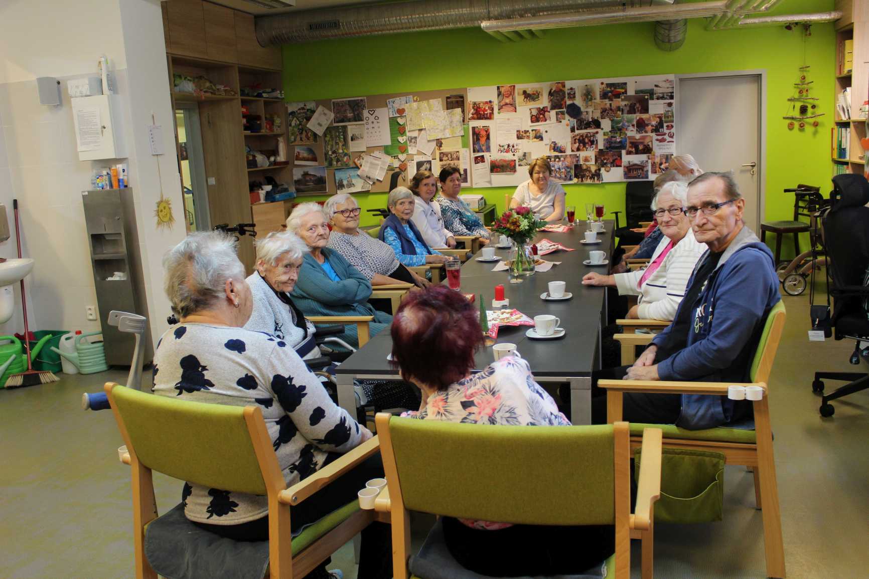 Listopad patří tradičně památce zesnulých a přípravám na vánoční svátky. Ani u nás v Domově tomu nebylo jinak. Vůně lineckého a perníčků se linula chodbami. Vyráběli jsme vánoční keramiku, lodičky ze skořápek a připravovali jsme se na tradiční výstavu v budově STŘEDOČESKÉHO KRAJE. Řádně jsme se udržovali v kondici cvičením a hrami pro lepší paměť. Navštívili jsme SVATOMARTINSKÉ TRHY, MUZEUM OSTROV LIDOVÝCH KROJŮ a místní akci MARTINSKÁ PEROUTKA. Potěšila nás řada hudebních vystoupení a přítomnost našich zvířecích kamarádů. Samozřejmě nemohla chybět kavárnička pro oslavence, tento měsíc jsme slavili úctyhodných 95 let a dále 90, 88, 80 i 77. Na závěr malé pozvání na novou venkovní vánoční výzdobu.