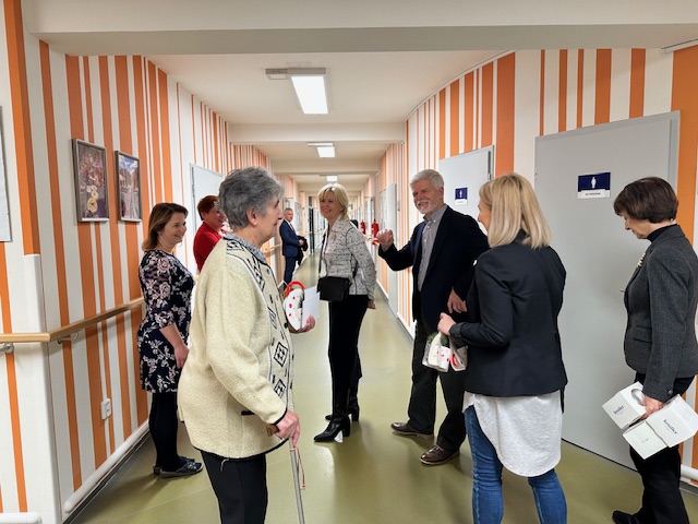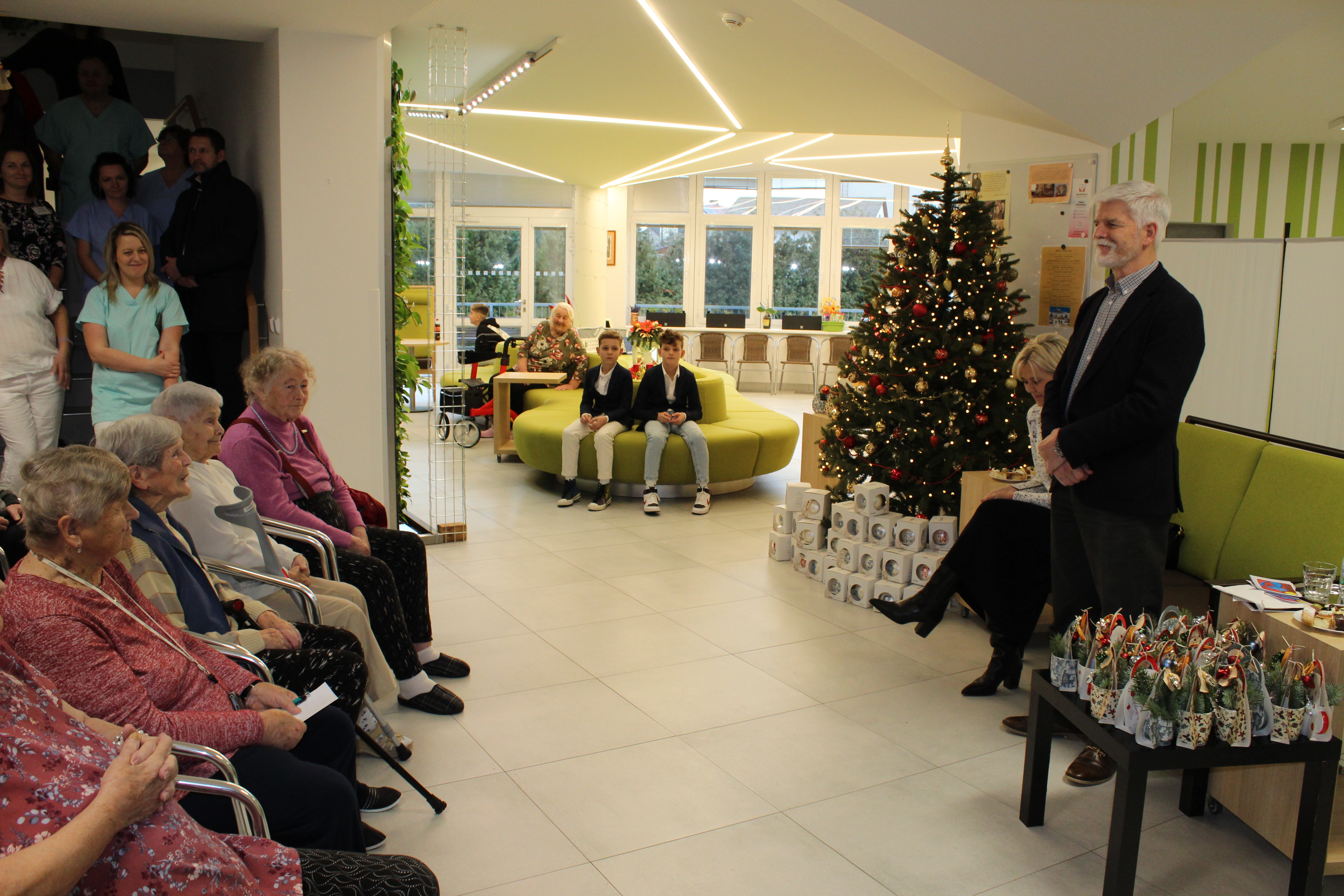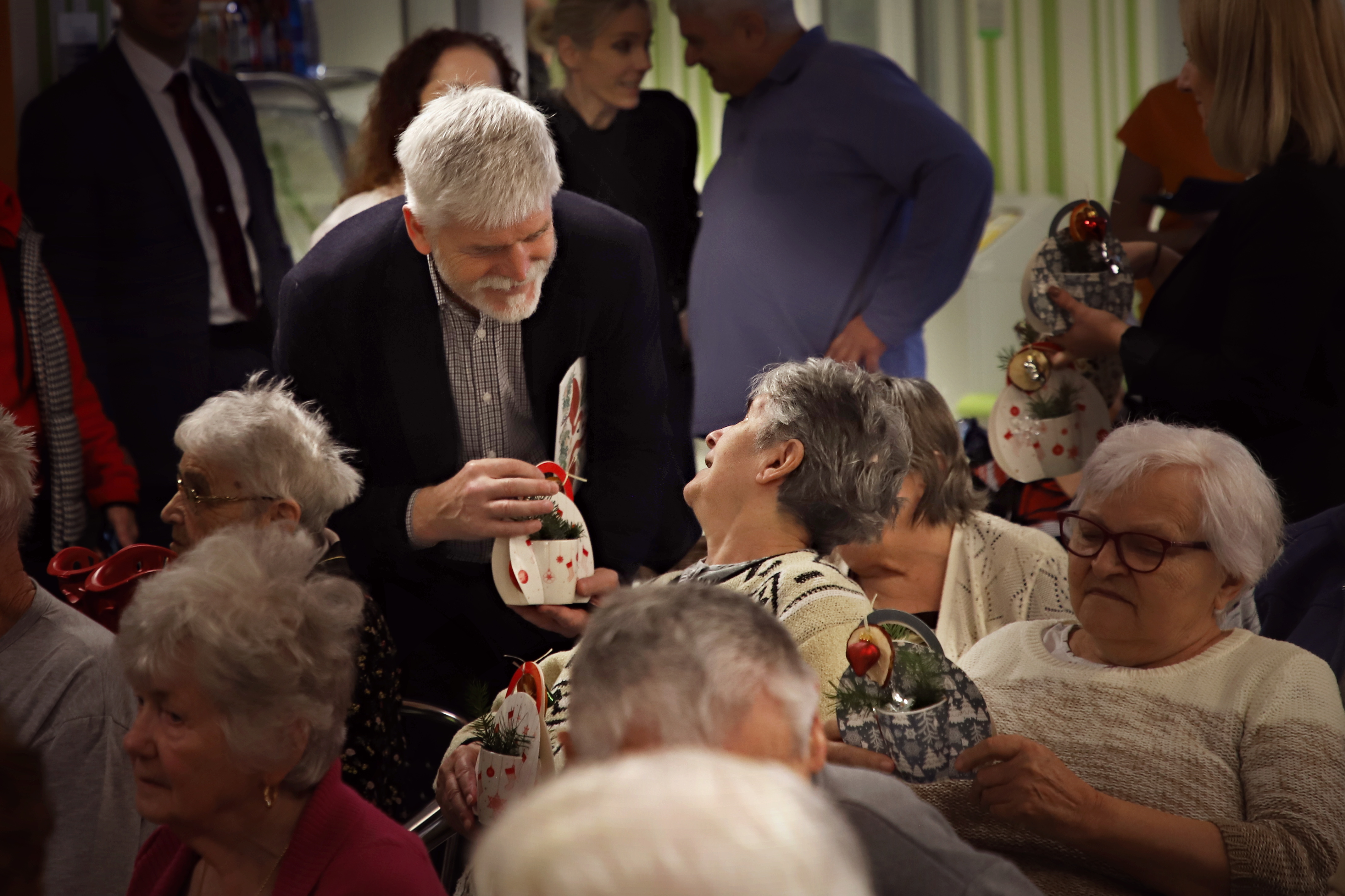 Dnes jsme v Domově přivítali významnou návštěvu, a to prezidenta České republiky pana Petra Pavla včetně první dámy paní Evy Pavlové. Prezidentský pár přijel pozdravit naše klienty a předat jim drobné dárečky. Na oplátku jsme panu prezidentovi i jeho ženě předali ukázky výrobků našich klientů a produkty místních výrobců, konkrétně z Farmy Bláto a Pivovaru Malešov. Návštěva byla velmi milá a naši klienti byli návštěvou nadšeni. Věříme, že i pan prezident odjížděl spokojený.