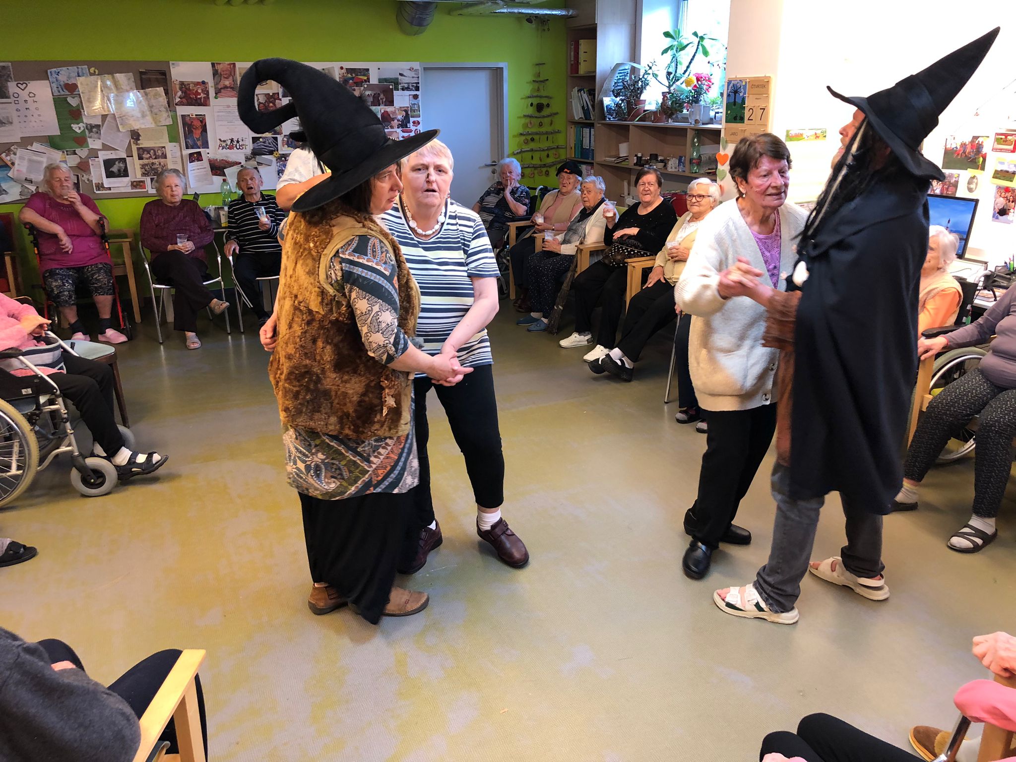 Ve čtvrtek dopoledne jsme za zvuku harmoniky poseděli a oslavili ČARODĚJNICE. Počasí nám moc nepřálo, ale přesto jsme o dobrý buřtík nepřišli.