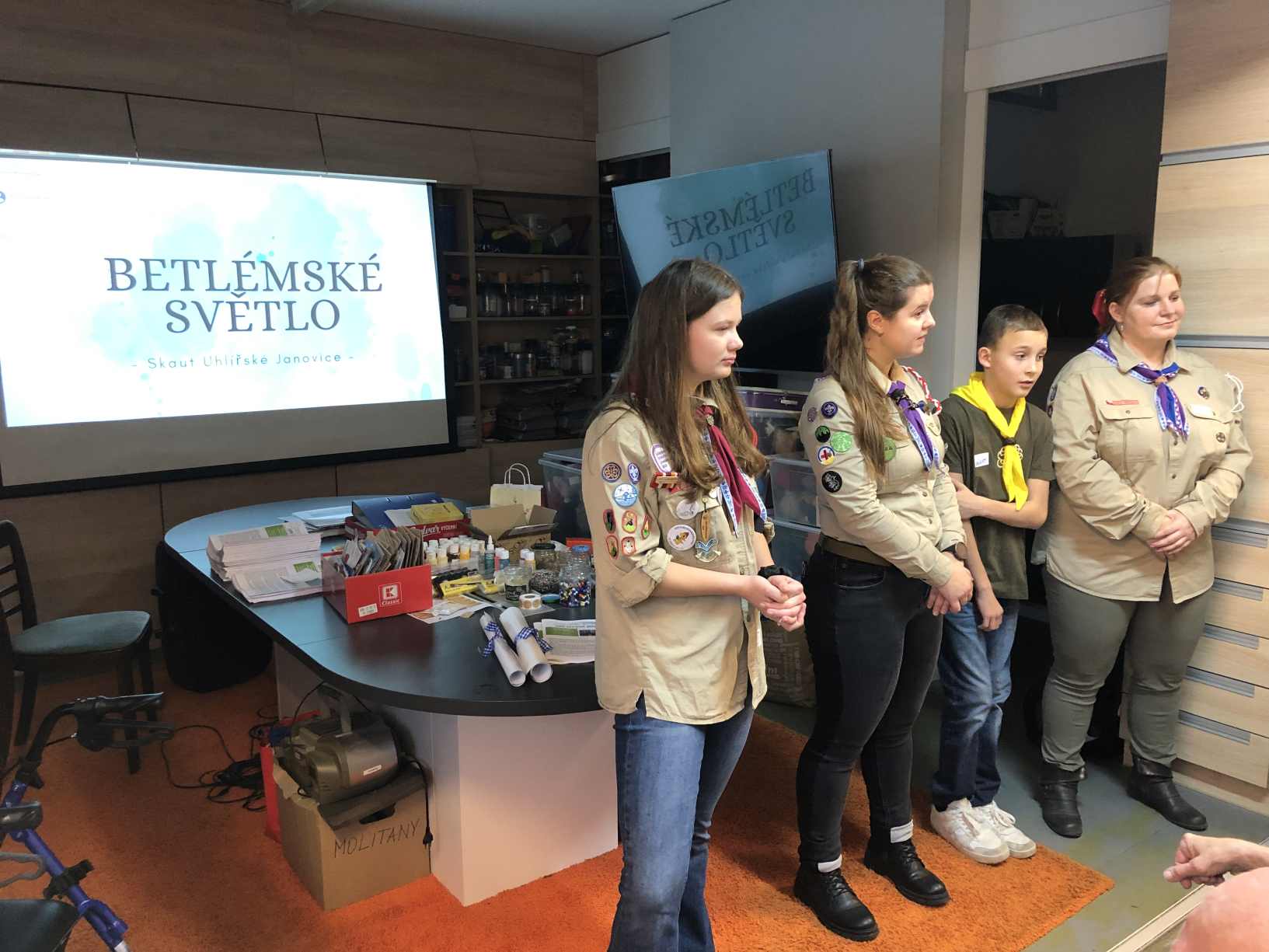 V pátek nás navštívili skauti ze Střediska Jana Roháče z Dubé a na Sioně Uhlířské Janovice a povídali jsme si o BETLÉMSKÉM SVĚTLE.