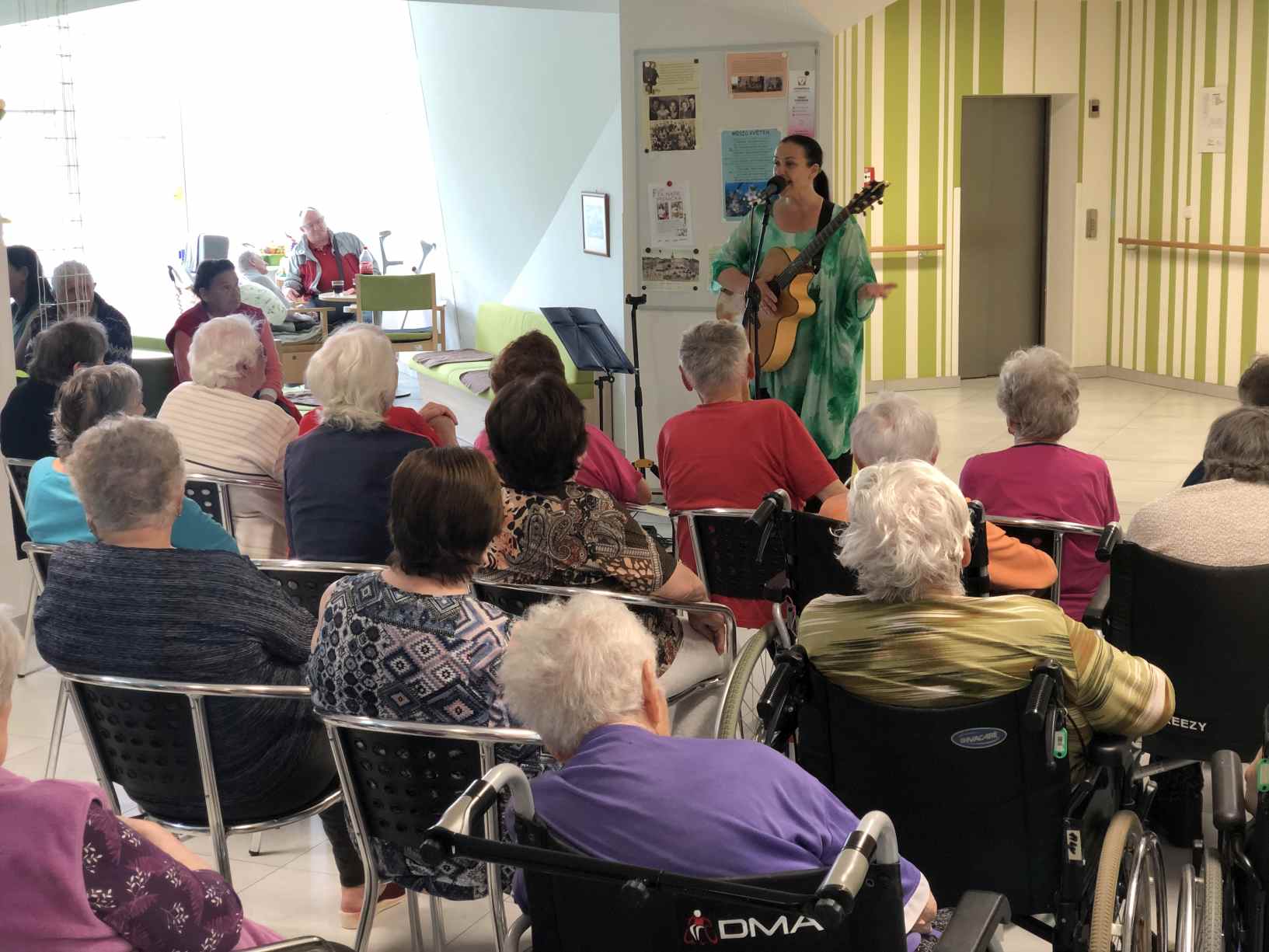 V pondělí odpoledne nám zahrála a zazpívala paní Jana Rychterová, která se doprovázela kytarou.