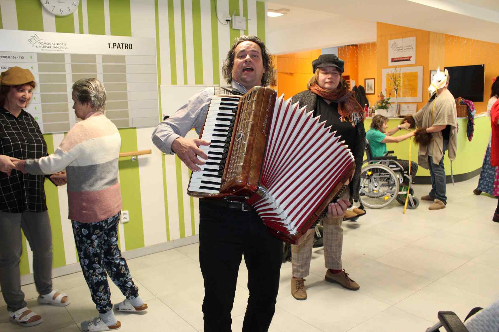 V úterý se u nás v domově pořádal MASOPUSTNÍ REJ. O úžasnou atmosféru se postaral Radek Anděl, zpěvem a hrou na harmoniku.