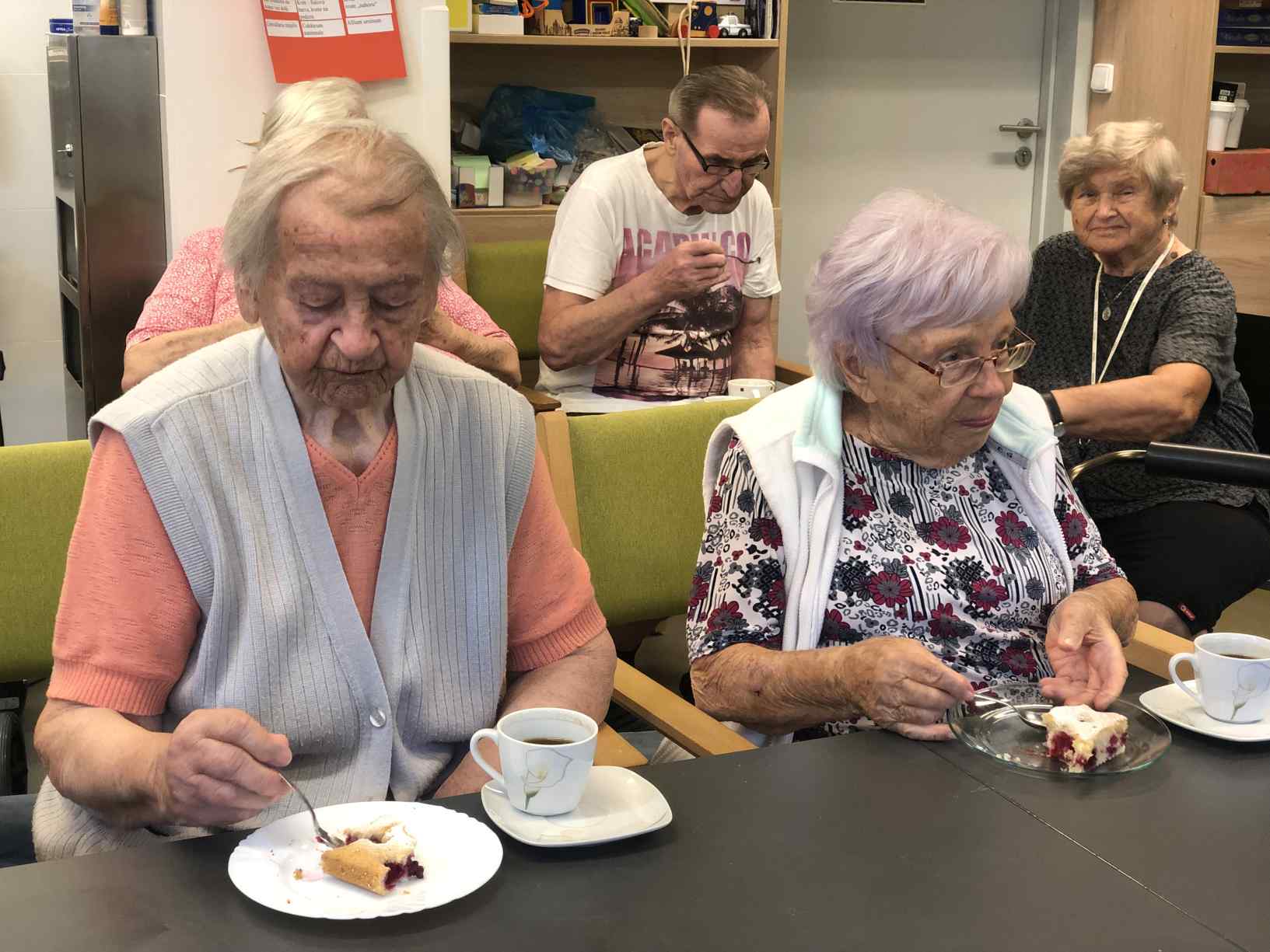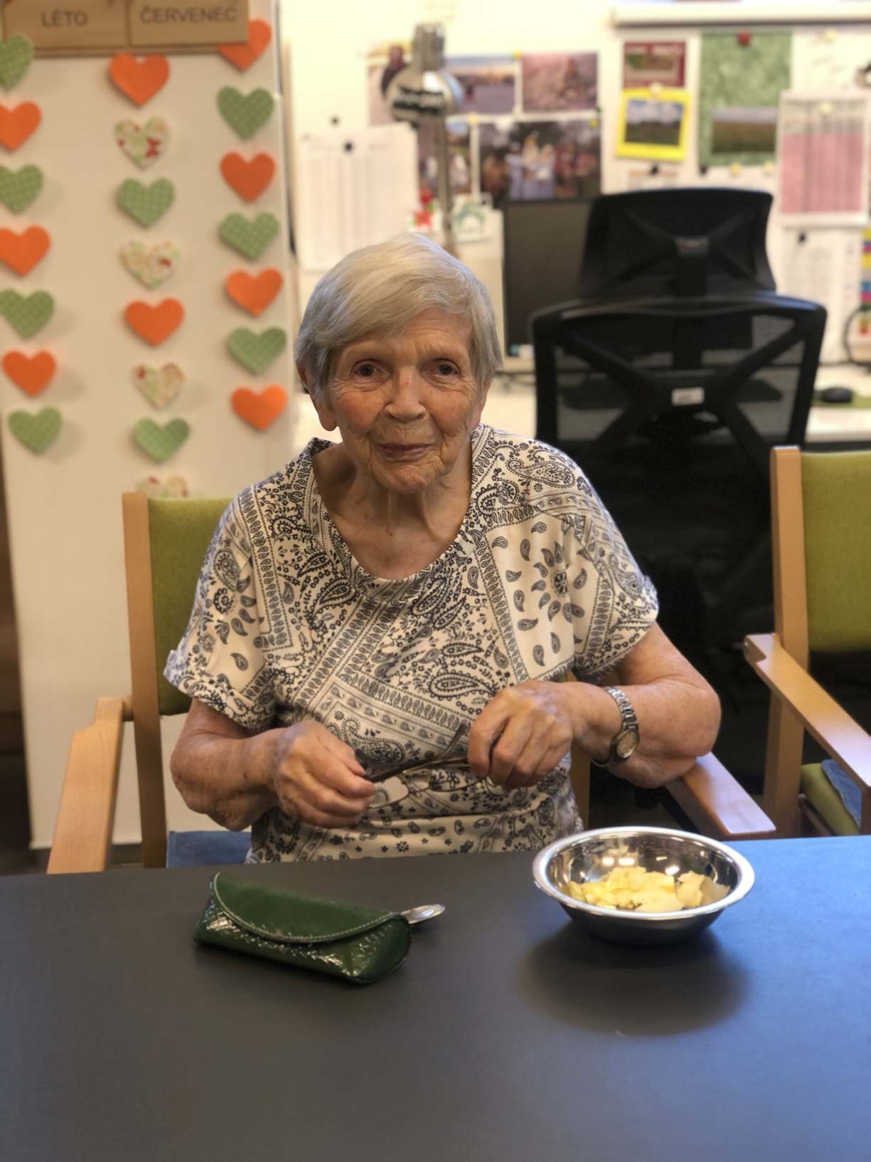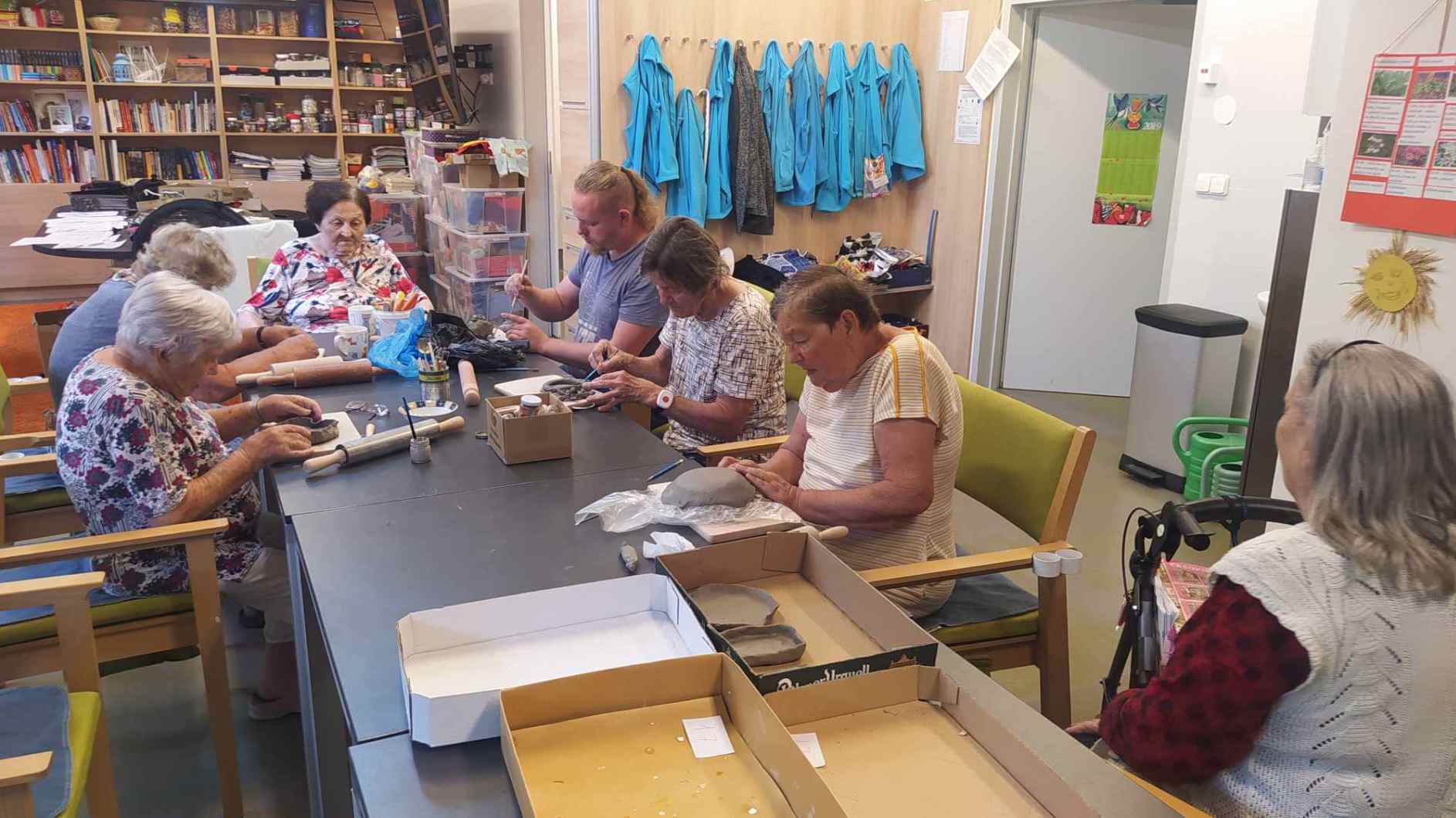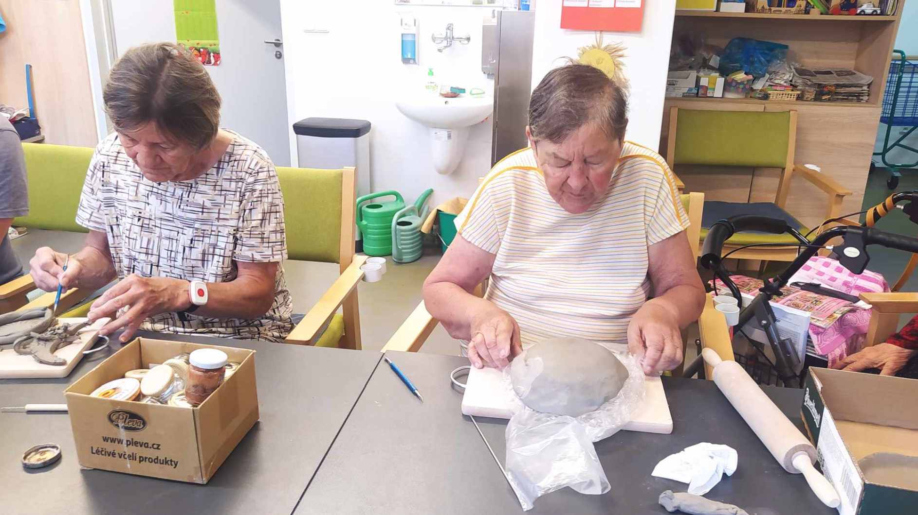 Léto je již v plném proudu. Využíváme krásného počasí k výletům a pobytu venku. Hodně jsme pracovali s keramikou a i nadále se věnujeme malování tašek. Nápadů je stále hodně. Upekli jsme si různé dobroty. Věnovali jsme se cvičení těla i ducha. Společně jsme trávili čas poslechem hudby, na zahradě i v altánu. Nemohli chybět naši čtyřnozí kamarádi a narozeninová kavárna. Navštívili jsme kemp Omaha u Kácova, Sudějov a zarybařili jsme si v místním rybníku.