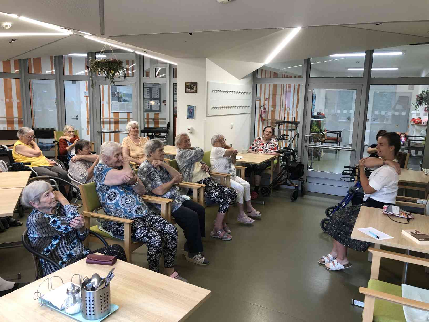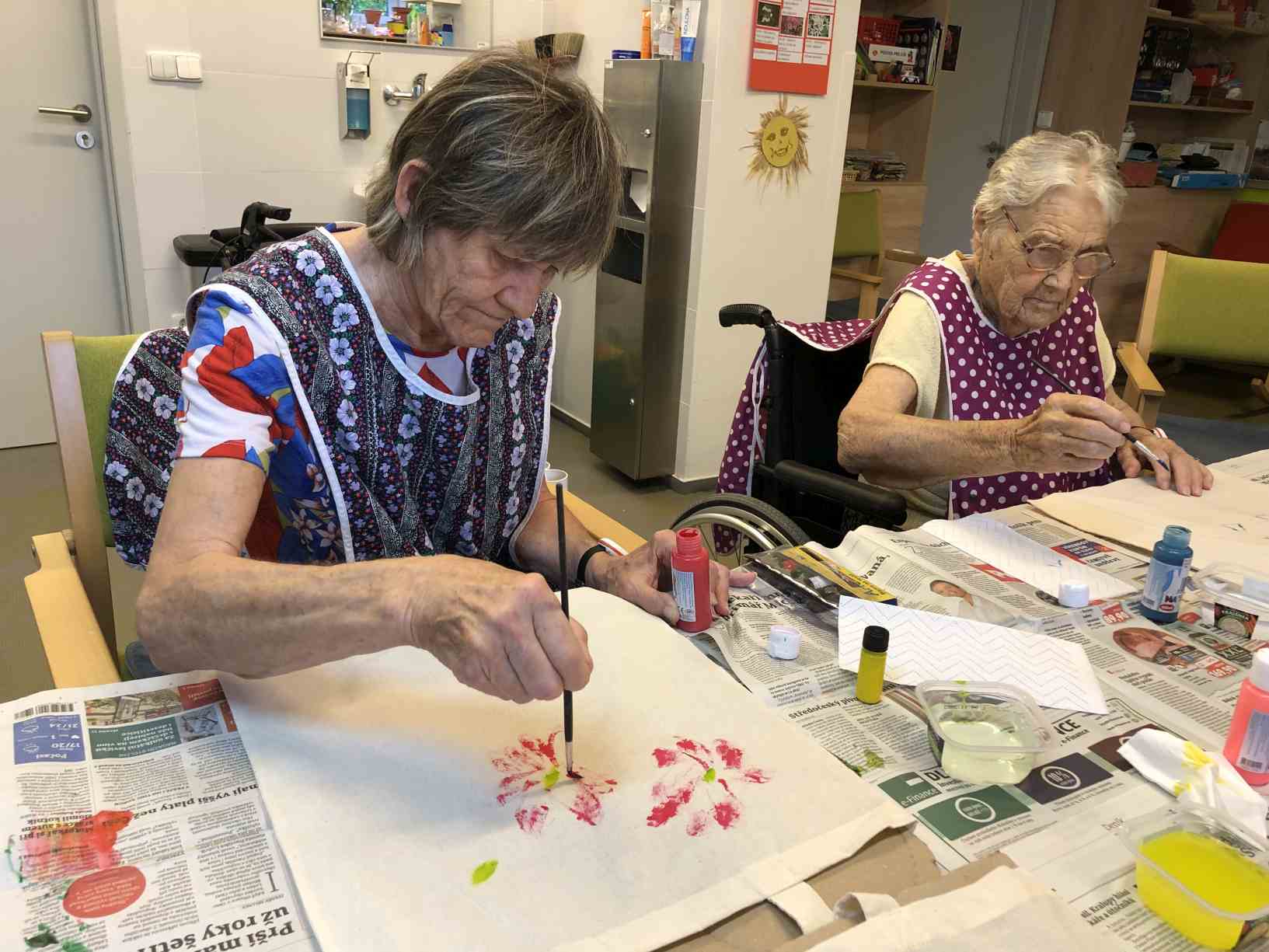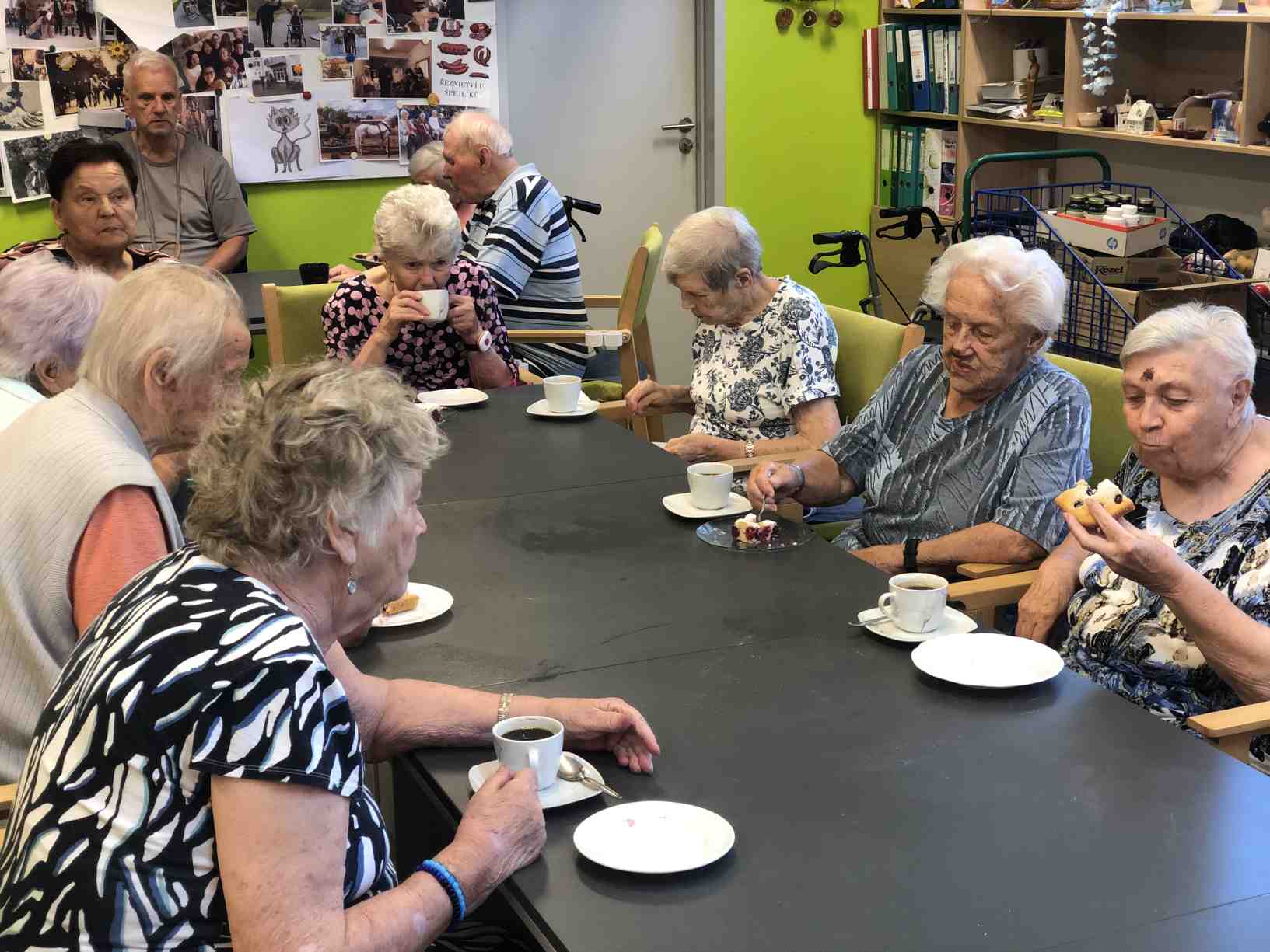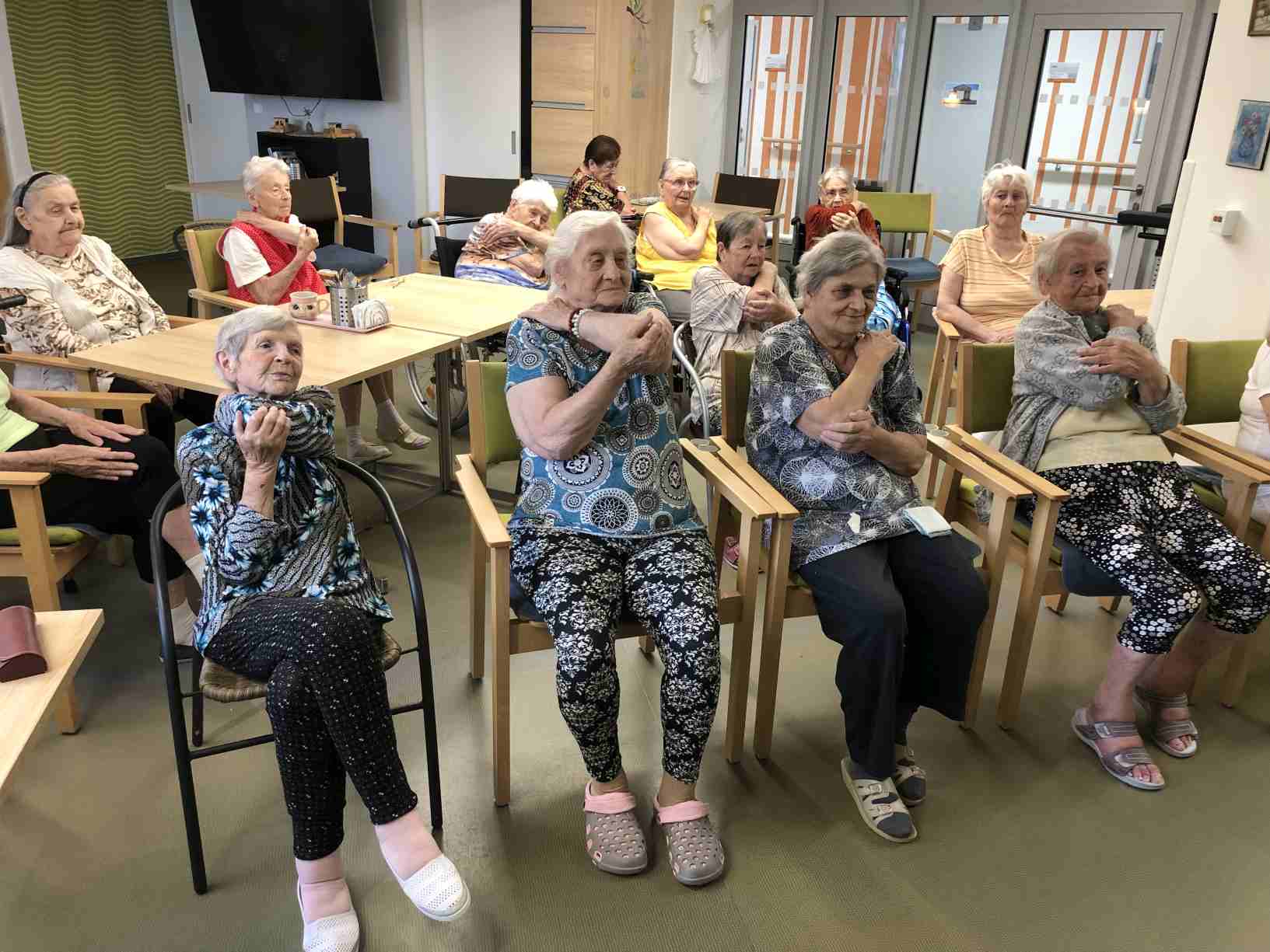 Léto je již v plném proudu. Využíváme krásného počasí k výletům a pobytu venku. Hodně jsme pracovali s keramikou a i nadále se věnujeme malování tašek. Nápadů je stále hodně. Upekli jsme si různé dobroty. Věnovali jsme se cvičení těla i ducha. Společně jsme trávili čas poslechem hudby, na zahradě i v altánu. Nemohli chybět naši čtyřnozí kamarádi a narozeninová kavárna. Navštívili jsme kemp Omaha u Kácova, Sudějov a zarybařili jsme si v místním rybníku.