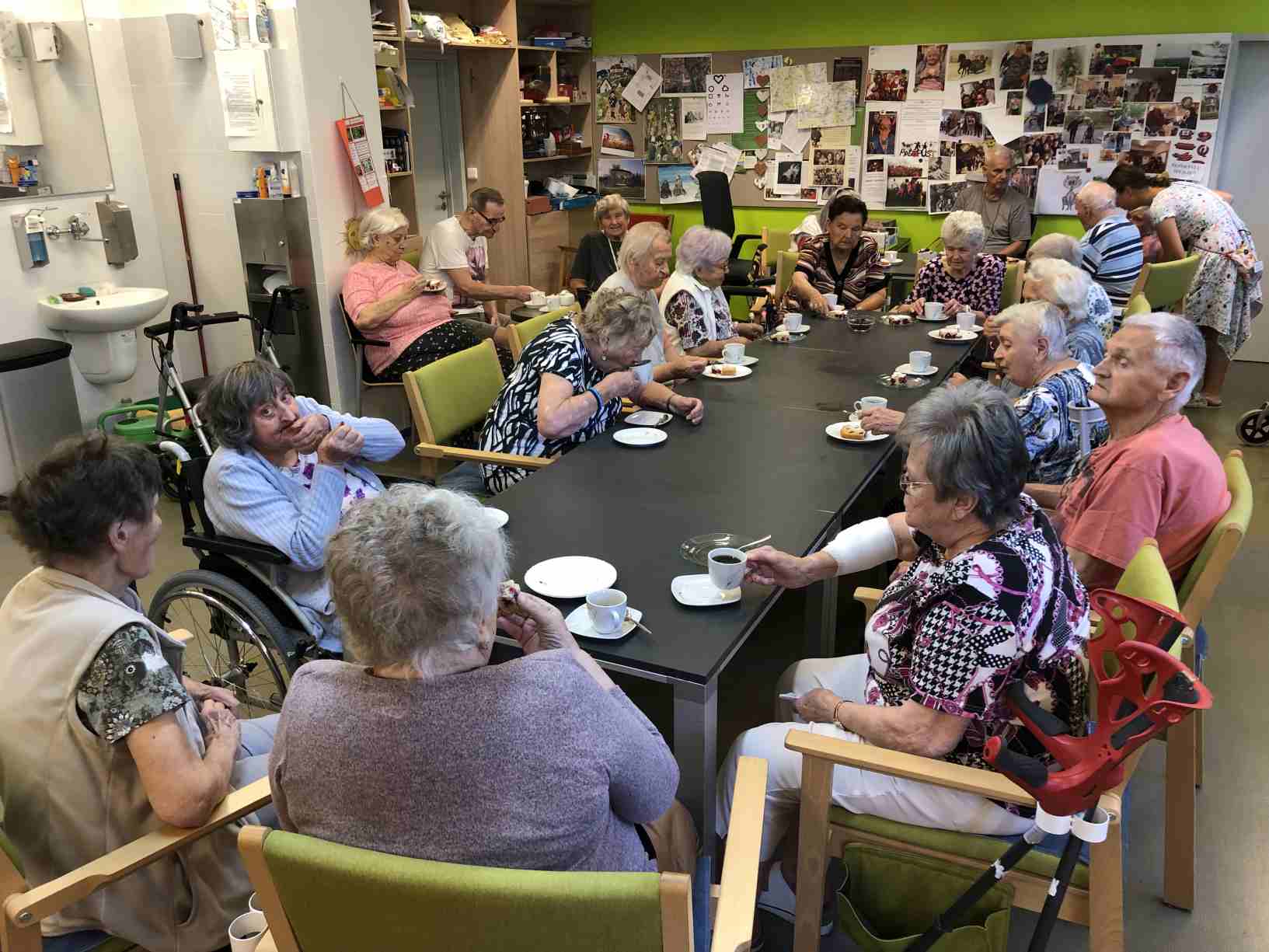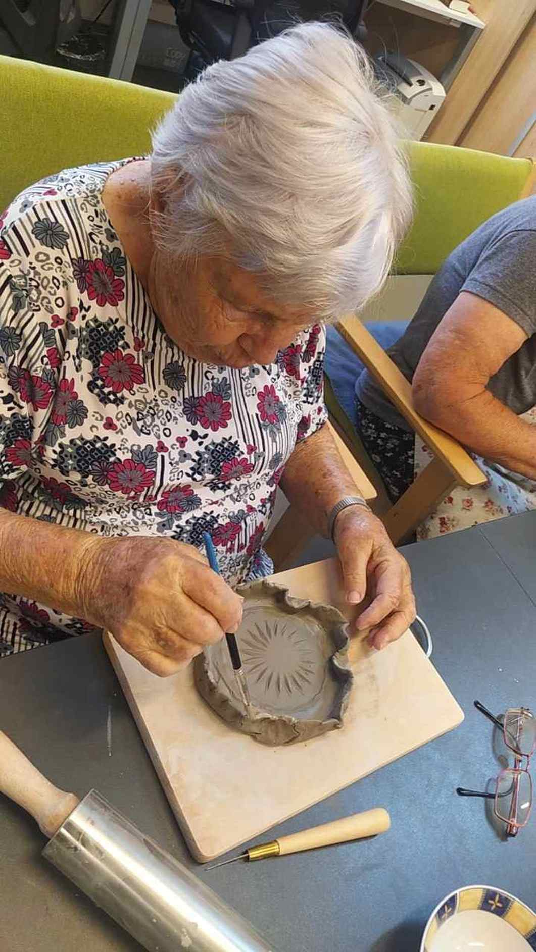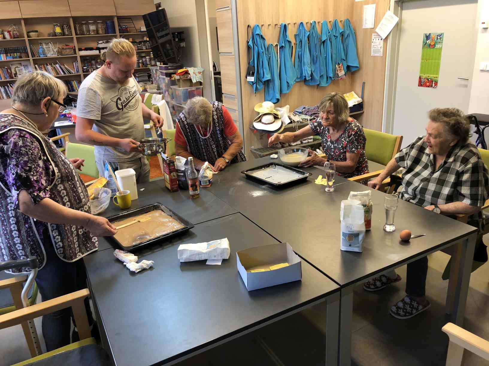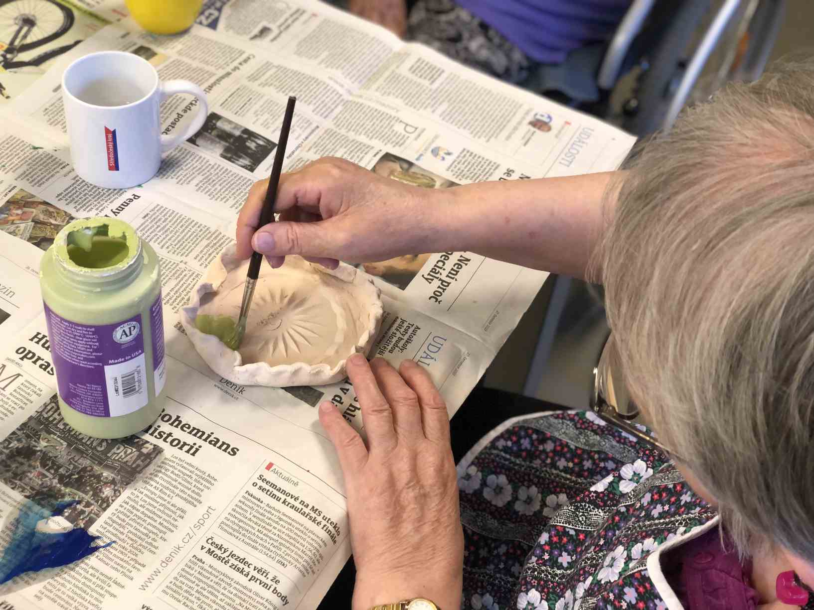 Léto je již v plném proudu. Využíváme krásného počasí k výletům a pobytu venku. Hodně jsme pracovali s keramikou a i nadále se věnujeme malování tašek. Nápadů je stále hodně. Upekli jsme si různé dobroty. Věnovali jsme se cvičení těla i ducha. Společně jsme trávili čas poslechem hudby, na zahradě i v altánu. Nemohli chybět naši čtyřnozí kamarádi a narozeninová kavárna. Navštívili jsme kemp Omaha u Kácova, Sudějov a zarybařili jsme si v místním rybníku.