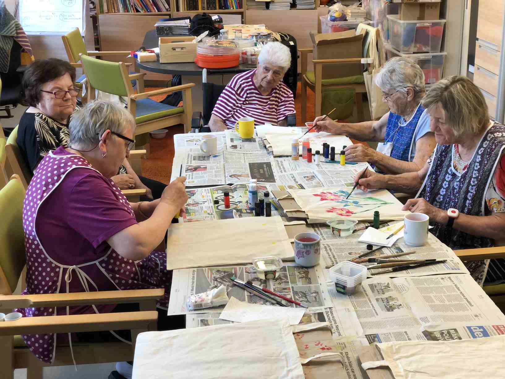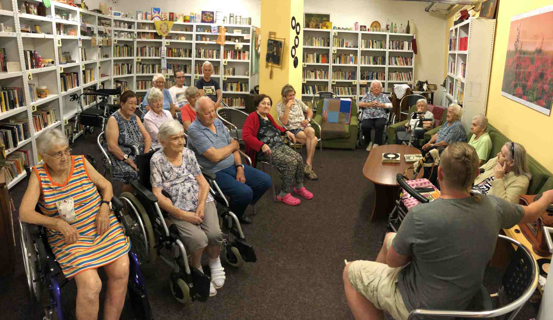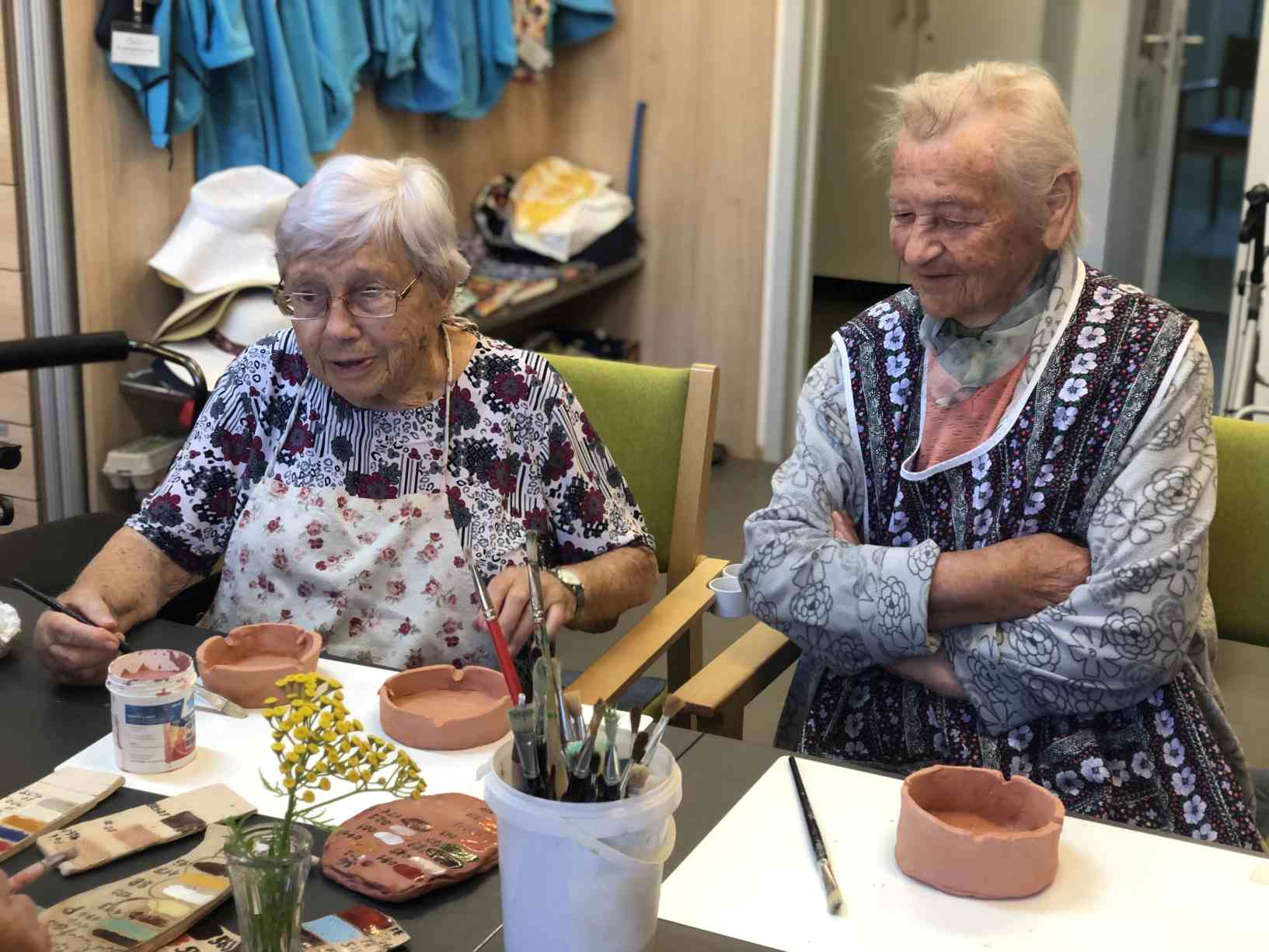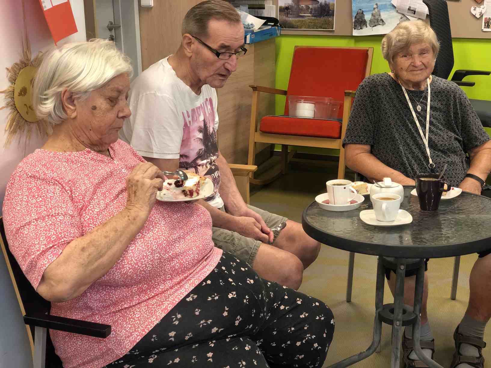 Léto je již v plném proudu. Využíváme krásného počasí k výletům a pobytu venku. Hodně jsme pracovali s keramikou a i nadále se věnujeme malování tašek. Nápadů je stále hodně. Upekli jsme si různé dobroty. Věnovali jsme se cvičení těla i ducha. Společně jsme trávili čas poslechem hudby, na zahradě i v altánu. Nemohli chybět naši čtyřnozí kamarádi a narozeninová kavárna. Navštívili jsme kemp Omaha u Kácova, Sudějov a zarybařili jsme si v místním rybníku.