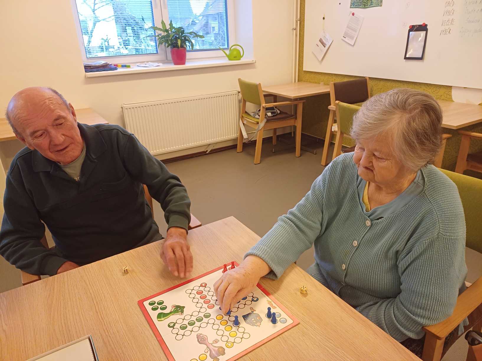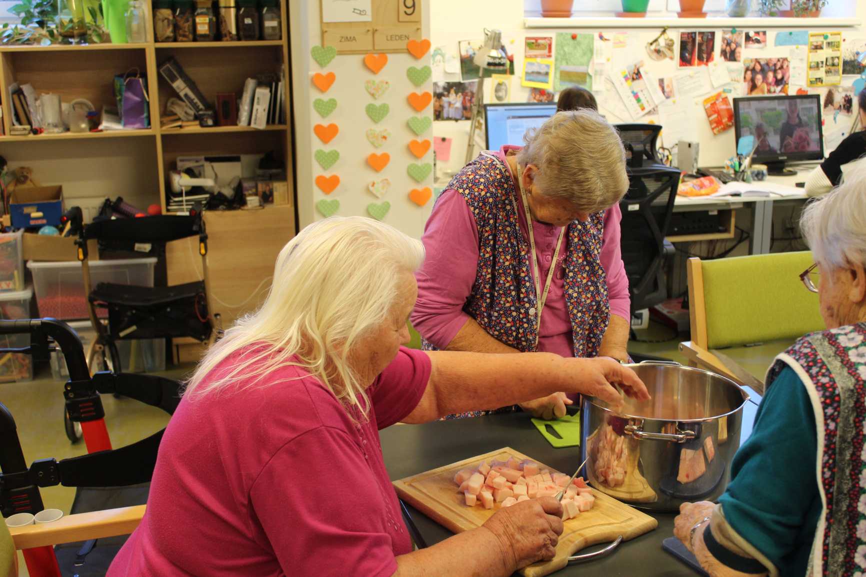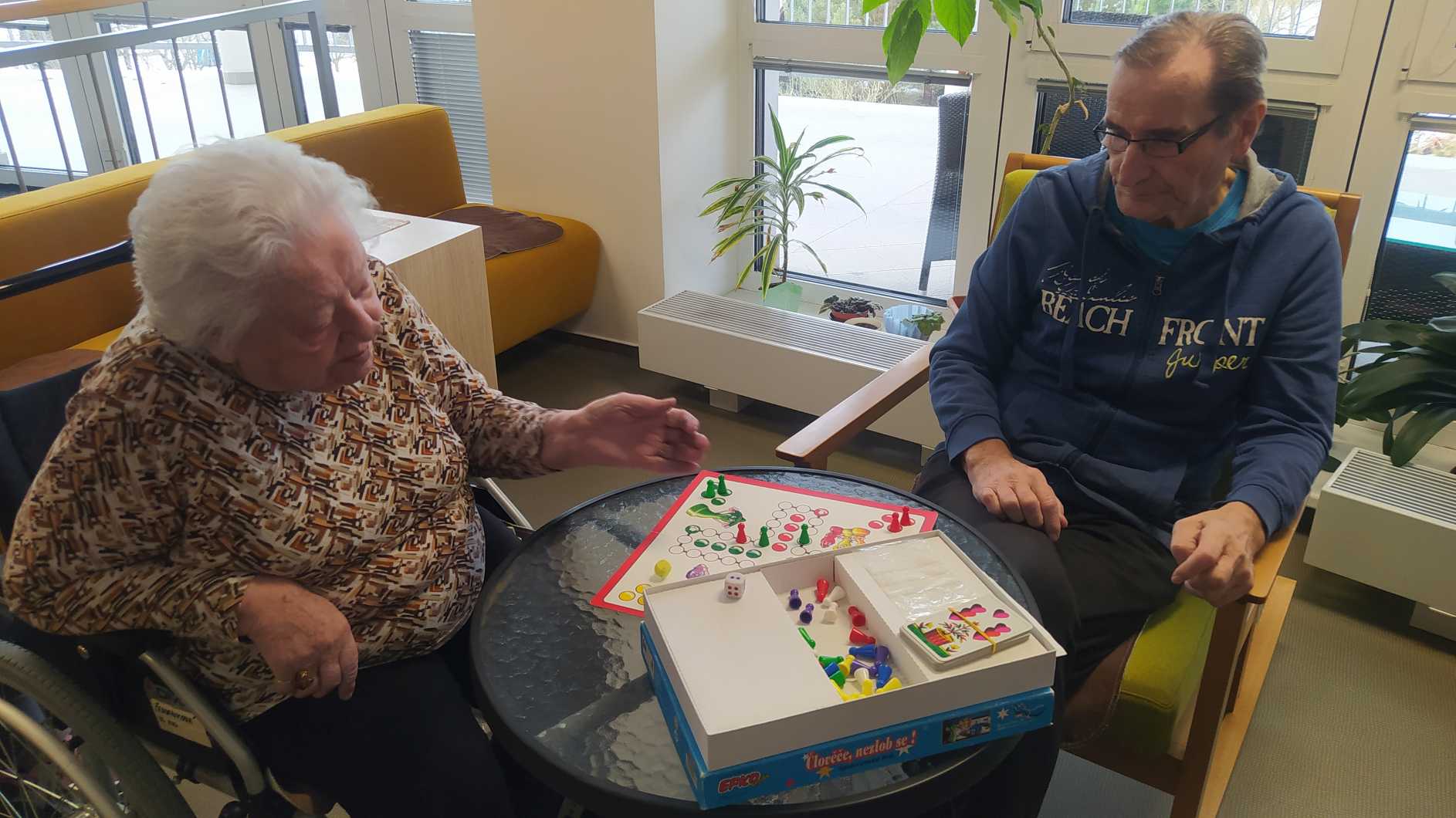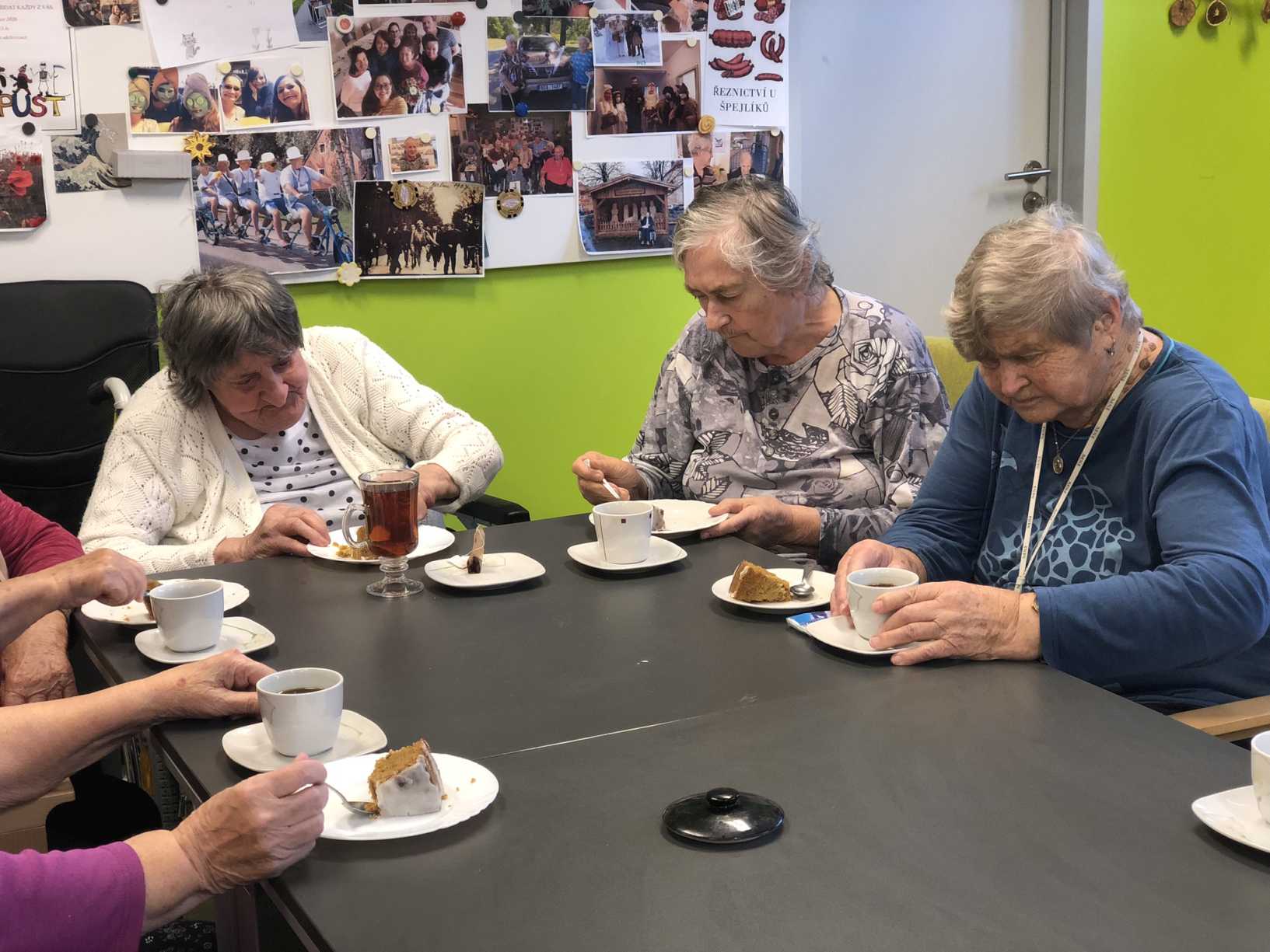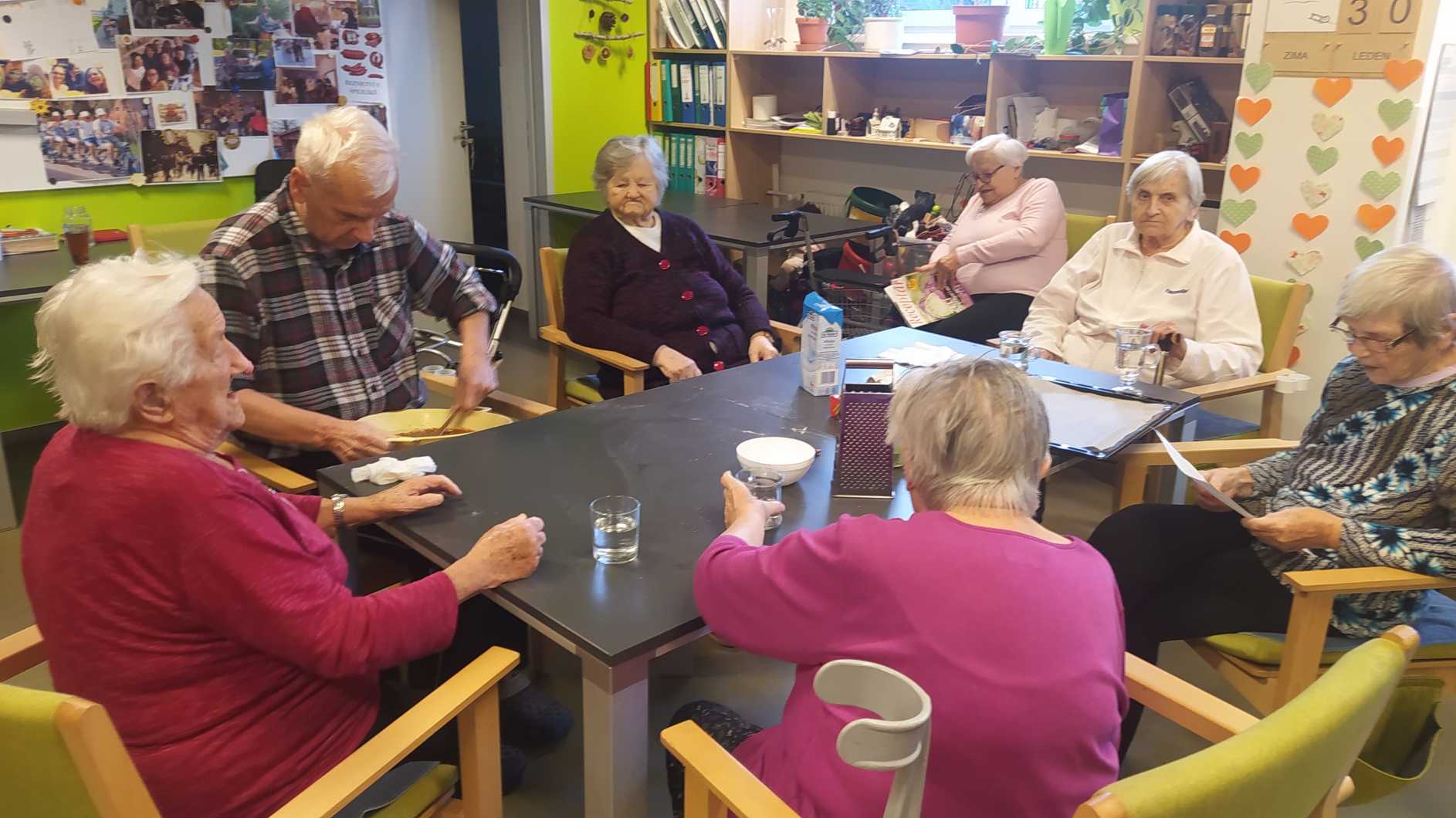 Nový rok jsme zahájili zpíváním s panem Klečkou a TŘÍKRÁLOVÝM koncertem. Vyzkoušeli jsme Kaleido virtuální brýle. Poseděli jsme si při hudbě, předčítání v knihovně a nemohla chybět narozeninová kavárnička pro lednové oslavence (93, 90, 87, 84, 82, až 76). Společně jsme pekli a vyškvařili jsme si škvarky. Zahráli jsme si bingo, karty, holandský billiard a jiné společenské hry. Tvořili jsme keramiku, cvičili jsme s naší fyzioterapeutkou jak individuálně, tak společně. Pravidelně nás navštěvovala psí kamarádka Ella a úžasné setkání proběhlo v rámci canisterapie se šesti štěňaty Belgického ovčáka. Otec Radim si pro nás připravil novoroční bohoslužbu a na konci měsíce jsme se byli podívat v Komunitním centru.
