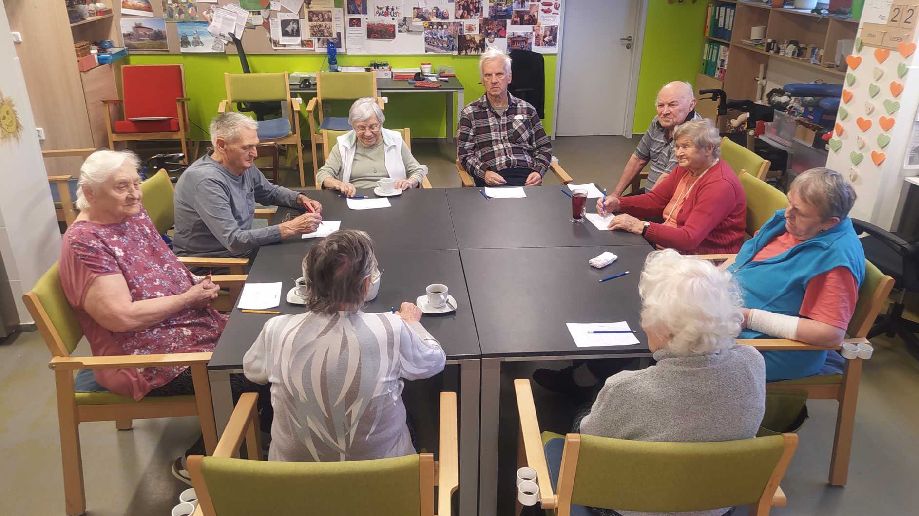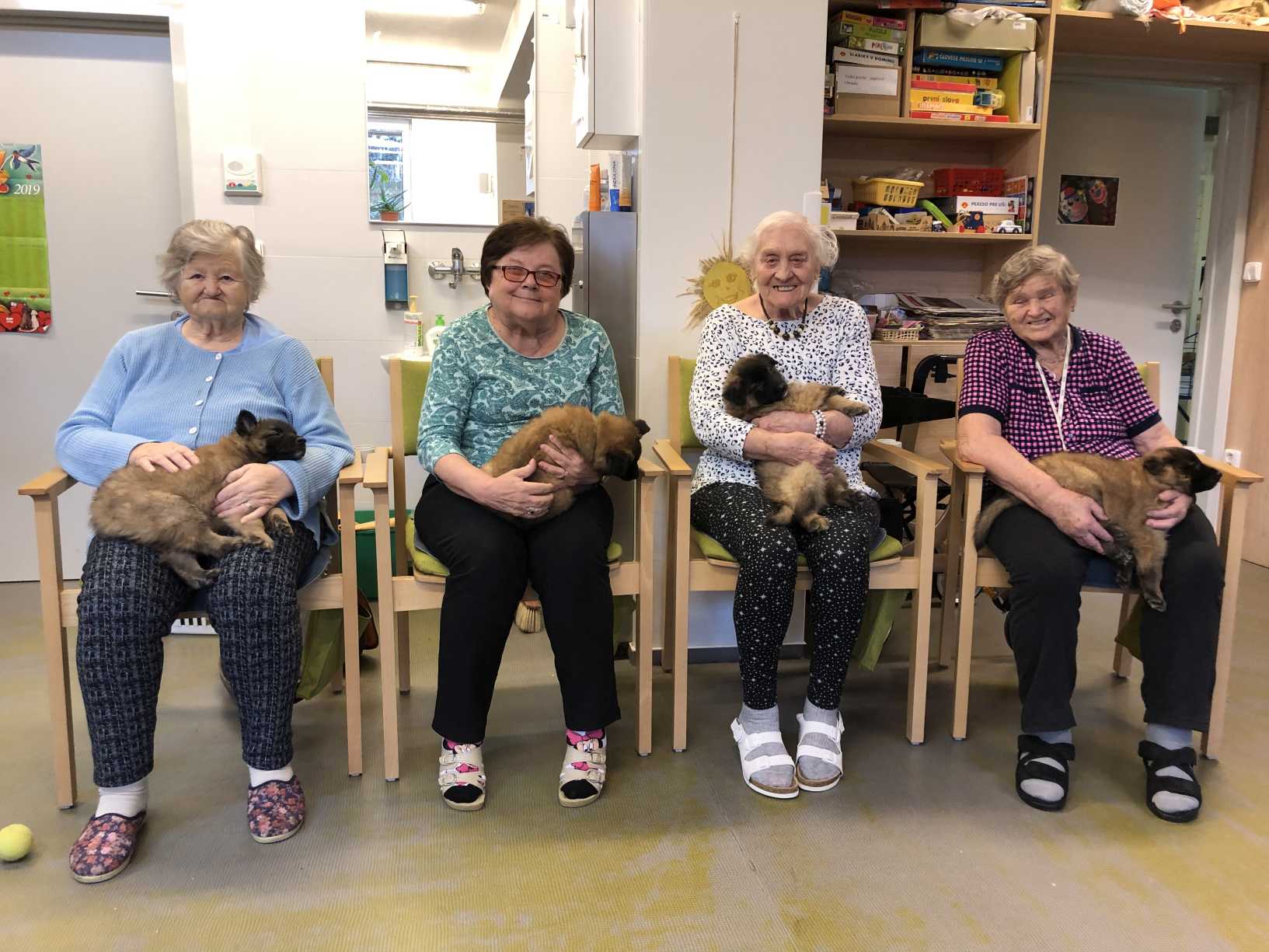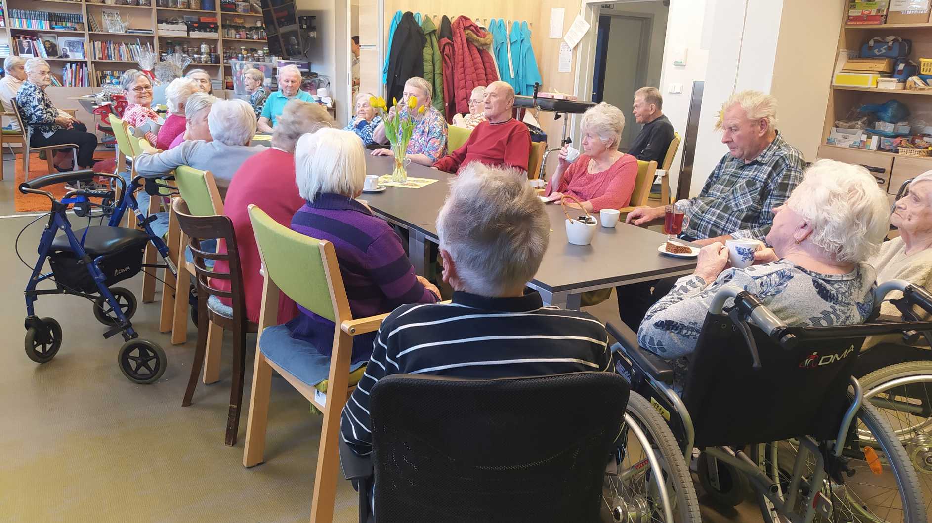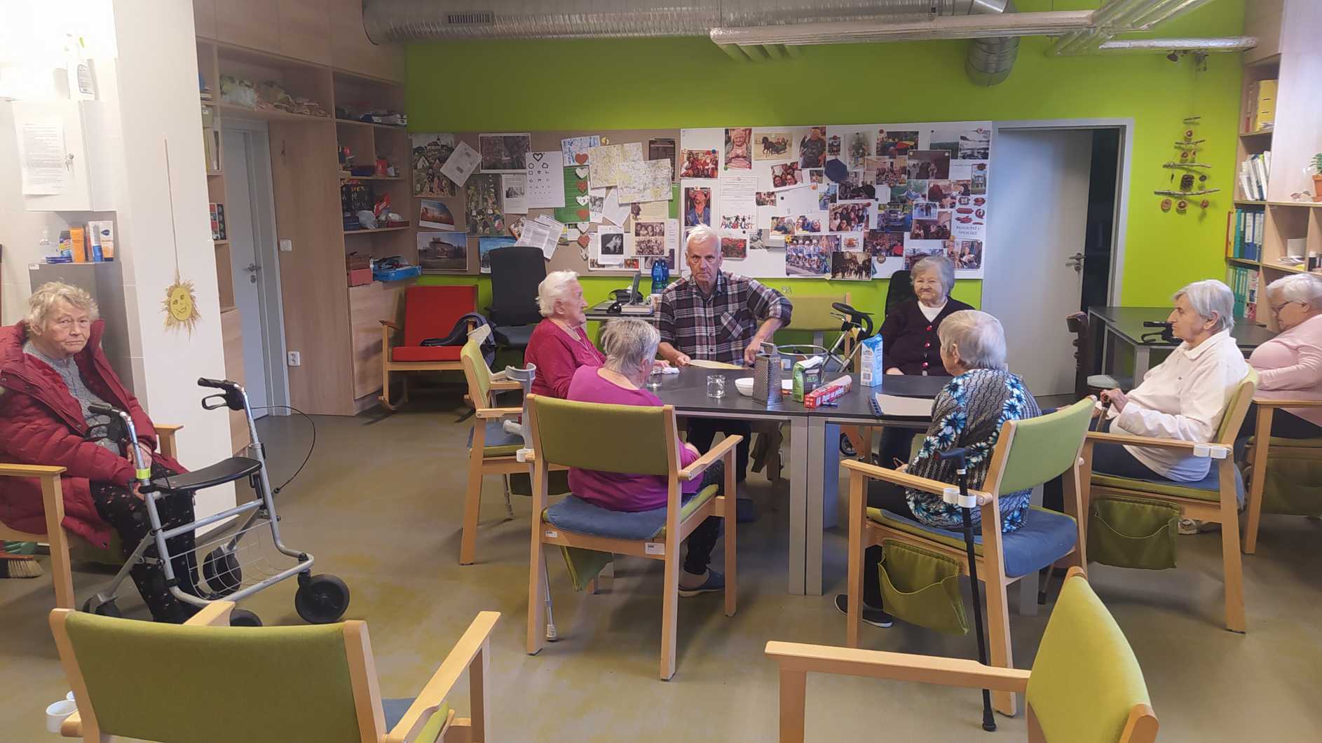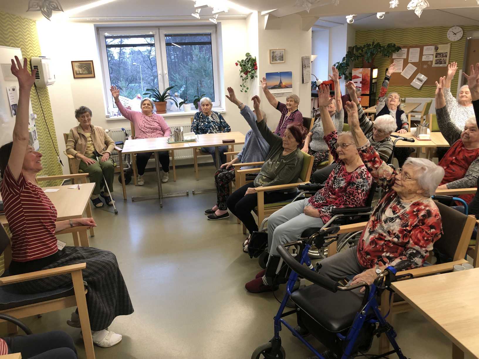 Nový rok jsme zahájili zpíváním s panem Klečkou a TŘÍKRÁLOVÝM koncertem. Vyzkoušeli jsme Kaleido virtuální brýle. Poseděli jsme si při hudbě, předčítání v knihovně a nemohla chybět narozeninová kavárnička pro lednové oslavence (93, 90, 87, 84, 82, až 76). Společně jsme pekli a vyškvařili jsme si škvarky. Zahráli jsme si bingo, karty, holandský billiard a jiné společenské hry. Tvořili jsme keramiku, cvičili jsme s naší fyzioterapeutkou jak individuálně, tak společně. Pravidelně nás navštěvovala psí kamarádka Ella a úžasné setkání proběhlo v rámci canisterapie se šesti štěňaty Belgického ovčáka. Otec Radim si pro nás připravil novoroční bohoslužbu a na konci měsíce jsme se byli podívat v Komunitním centru.