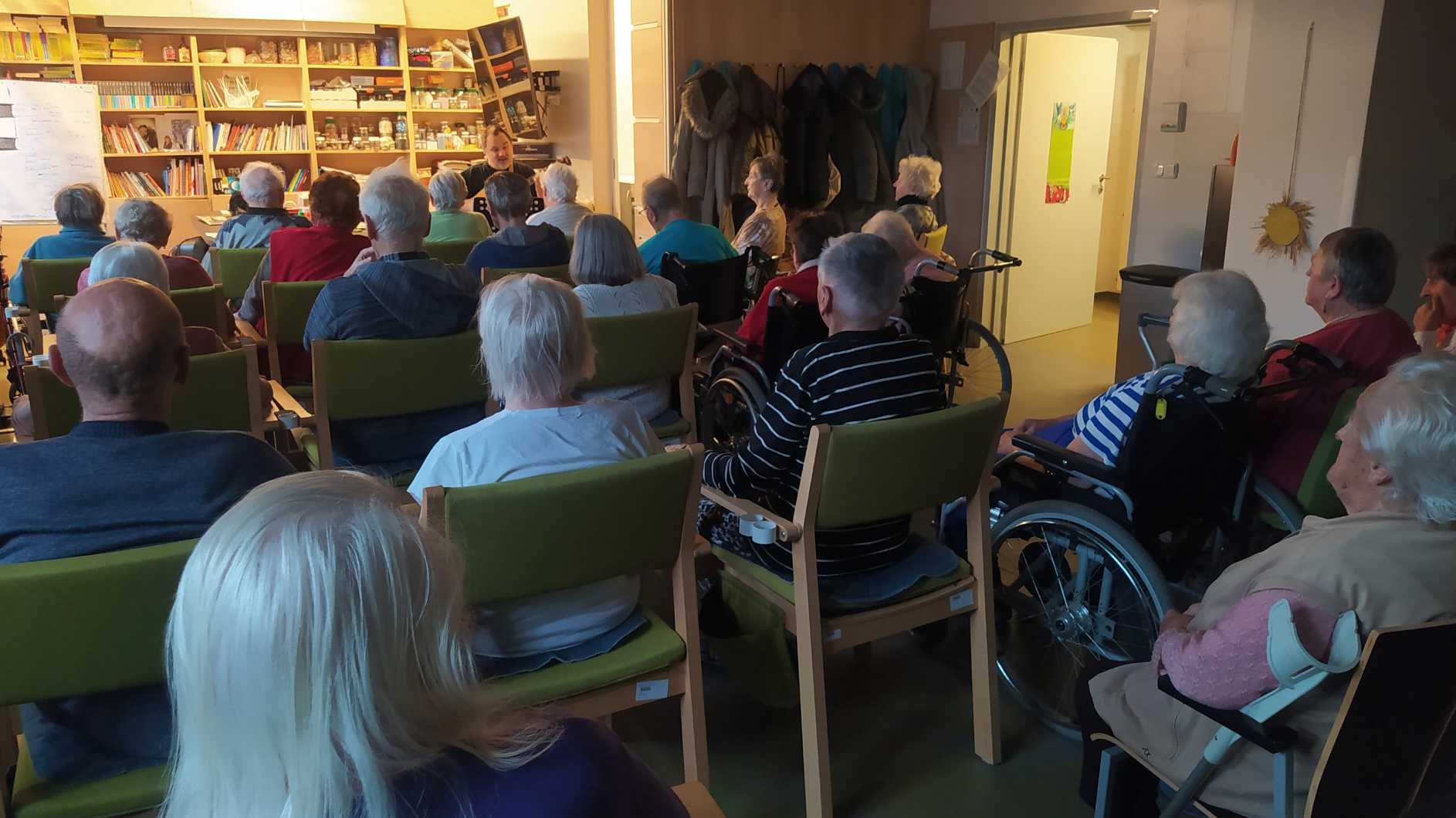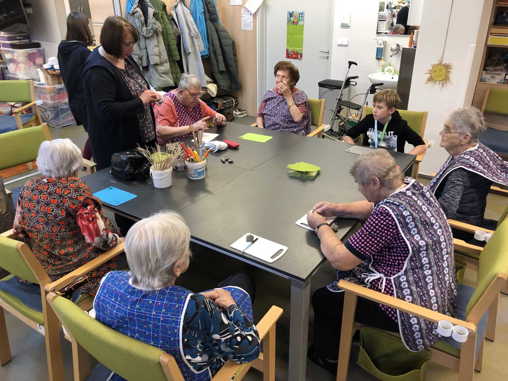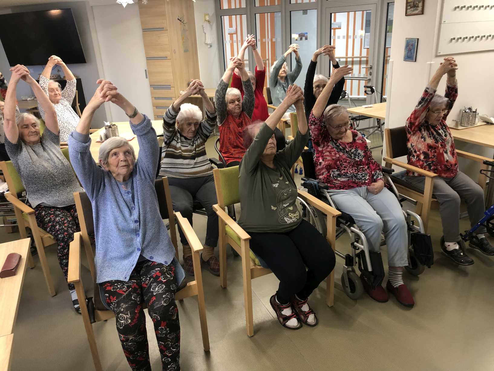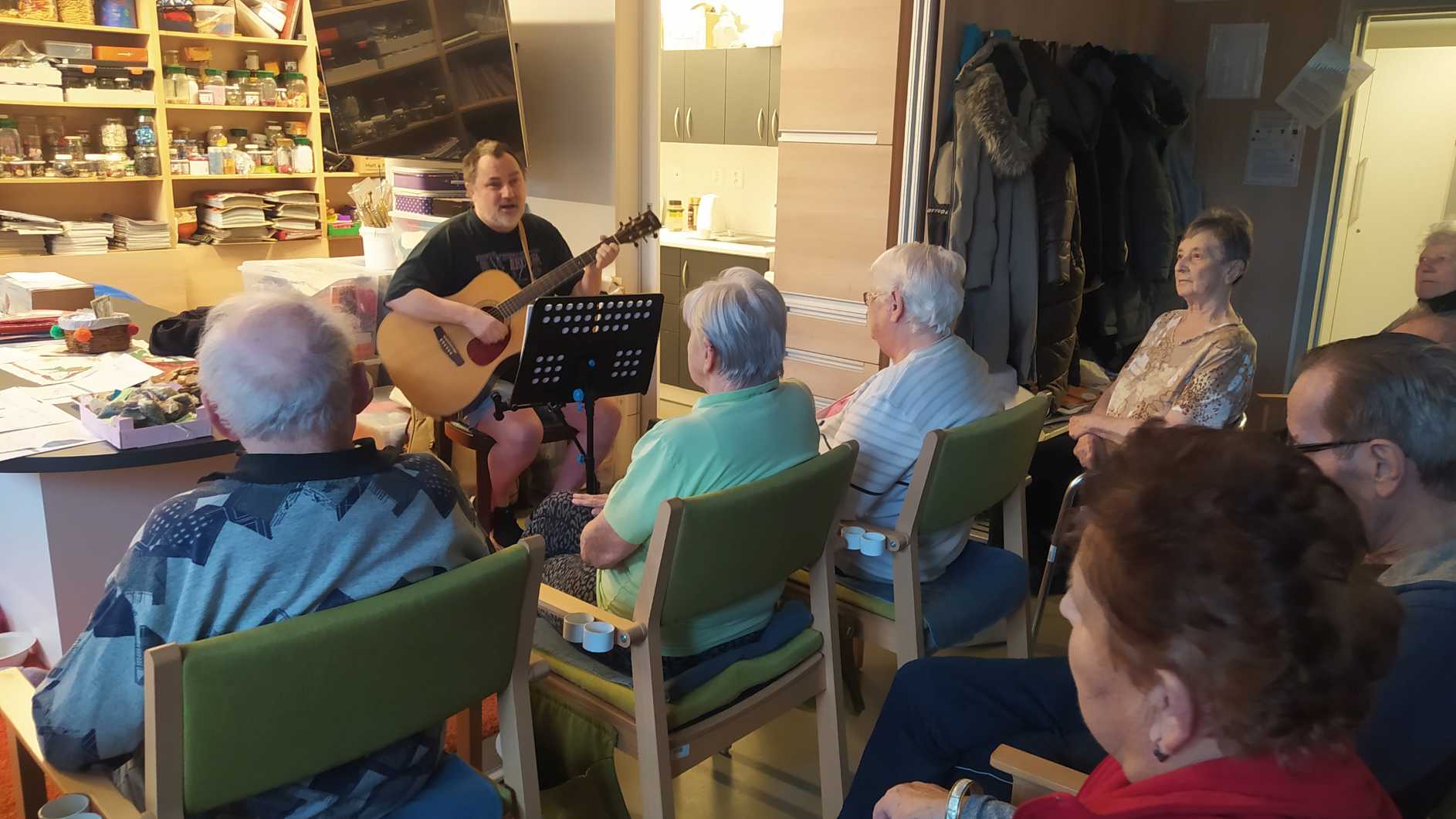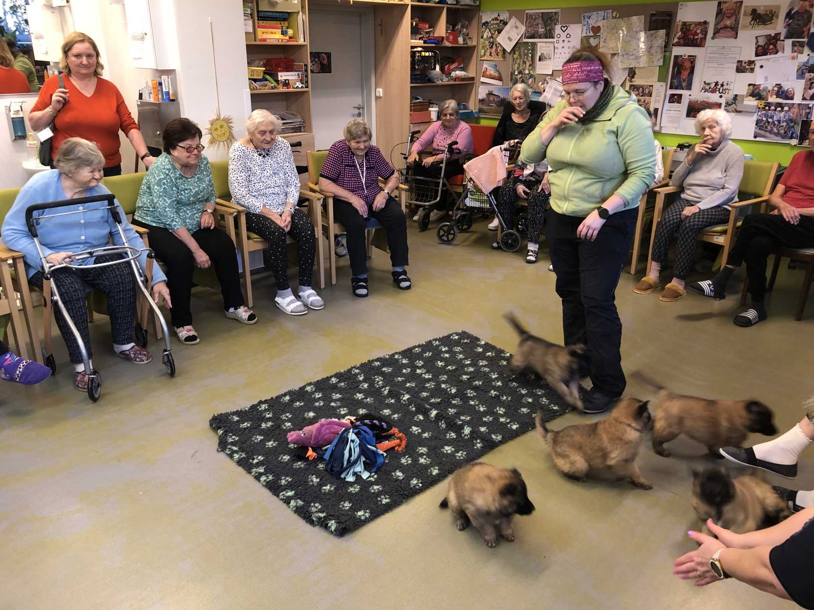 Nový rok jsme zahájili zpíváním s panem Klečkou a TŘÍKRÁLOVÝM koncertem. Vyzkoušeli jsme Kaleido virtuální brýle. Poseděli jsme si při hudbě, předčítání v knihovně a nemohla chybět narozeninová kavárnička pro lednové oslavence (93, 90, 87, 84, 82, až 76). Společně jsme pekli a vyškvařili jsme si škvarky. Zahráli jsme si bingo, karty, holandský billiard a jiné společenské hry. Tvořili jsme keramiku, cvičili jsme s naší fyzioterapeutkou jak individuálně, tak společně. Pravidelně nás navštěvovala psí kamarádka Ella a úžasné setkání proběhlo v rámci canisterapie se šesti štěňaty Belgického ovčáka. Otec Radim si pro nás připravil novoroční bohoslužbu a na konci měsíce jsme se byli podívat v Komunitním centru.