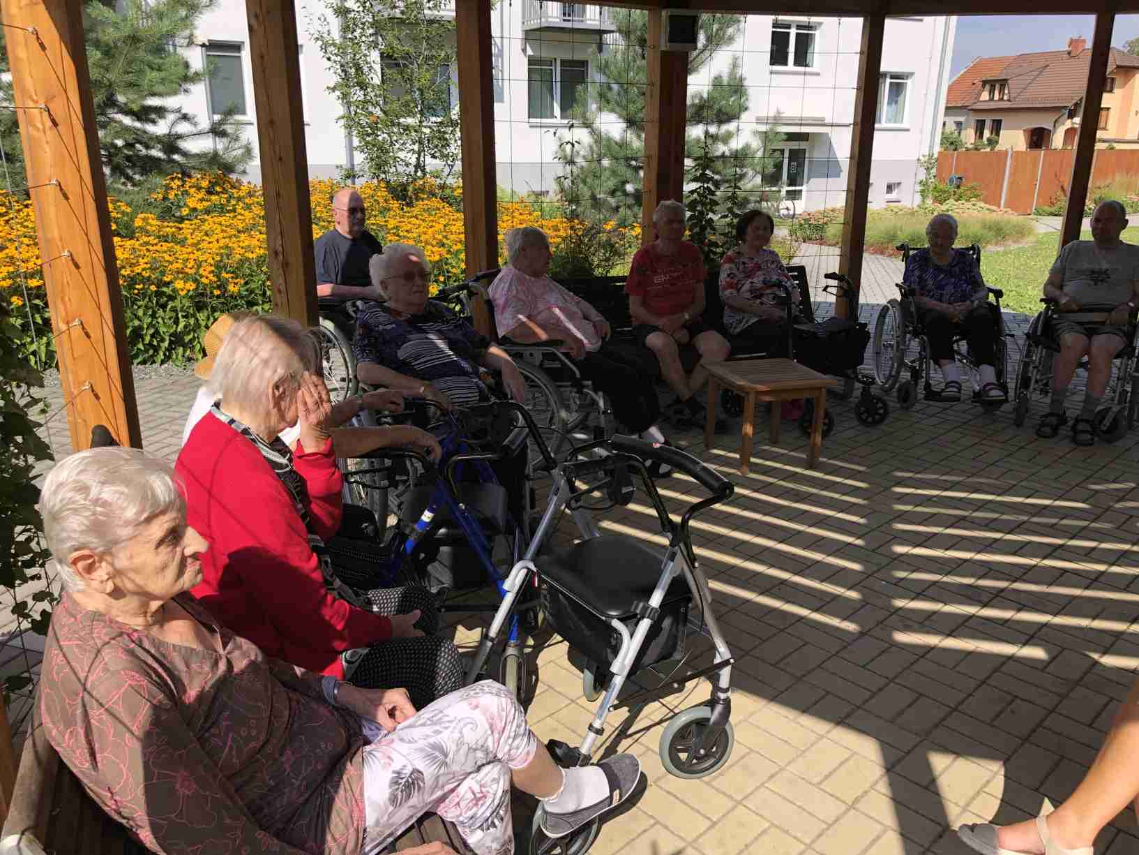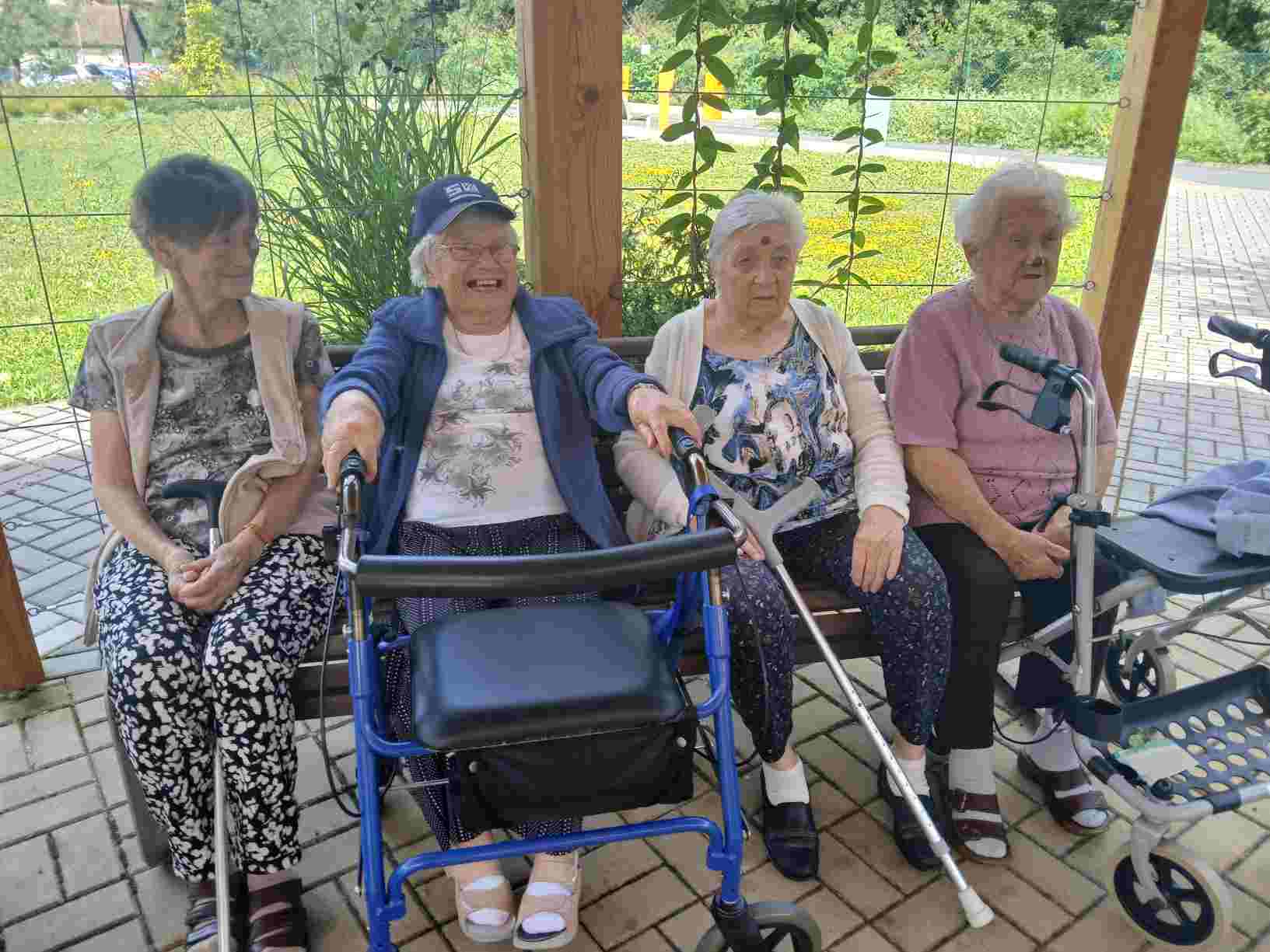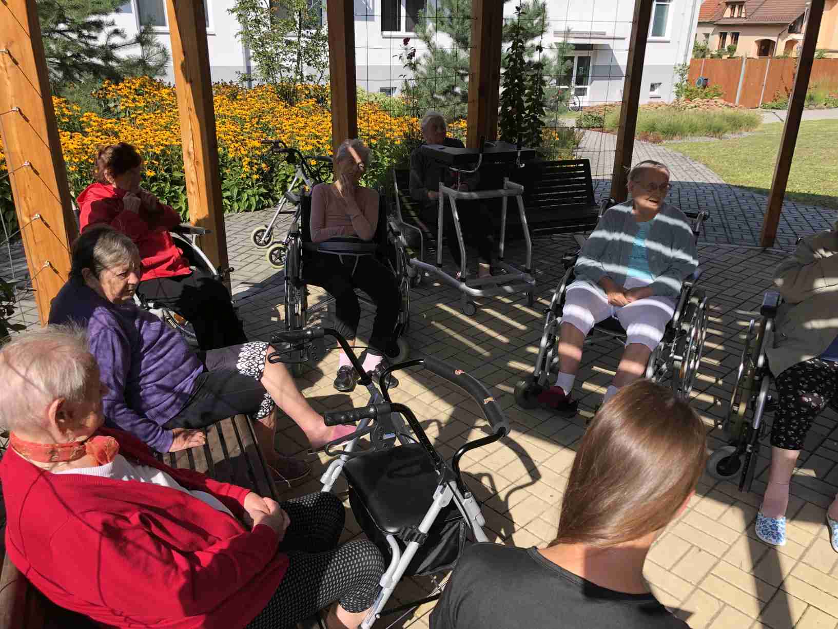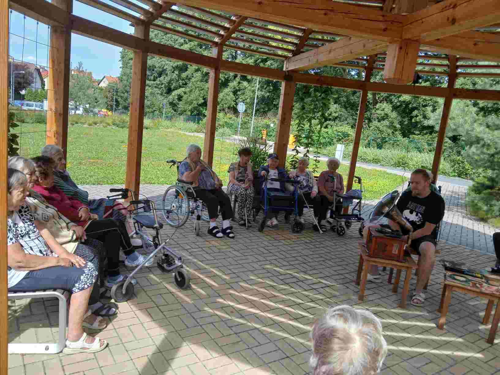 Léto se přehouplo do druhé poloviny, počasí nám stále přálo, tak není divu že jsme srpen převážně trávili venku. Společně jsme si četli, zpívali, starali jsme se o zahrádku. Upekli jsme si výborný štrůdl, zaposlouchali jsme se do hudby ze starých gramofonových desek. Hodně jsme cvičili, navštívil nás psí kamarád a vyráběli jsme z keramiky ryby. Na recepci jsme si udělali sraz "MÍSTNÍCH JANOVIČÁKŮ", poseděli při kávě a také nechyběly výlety.