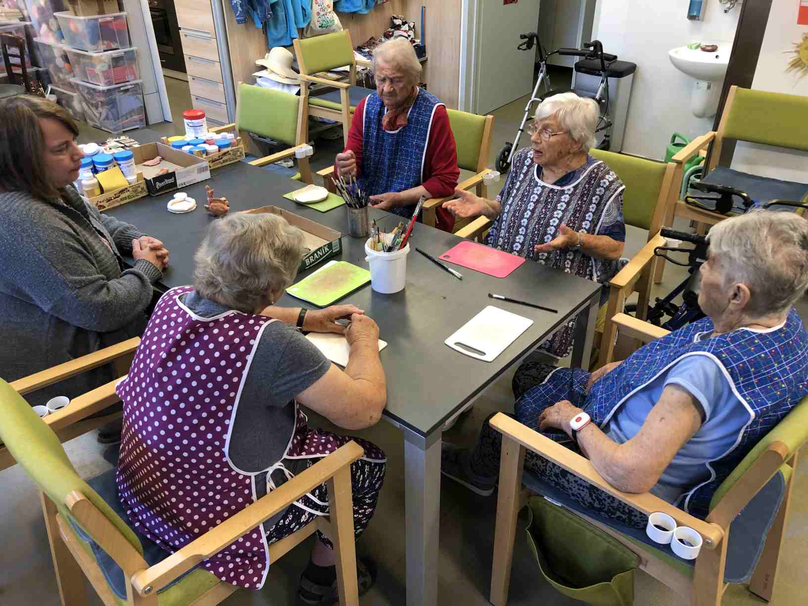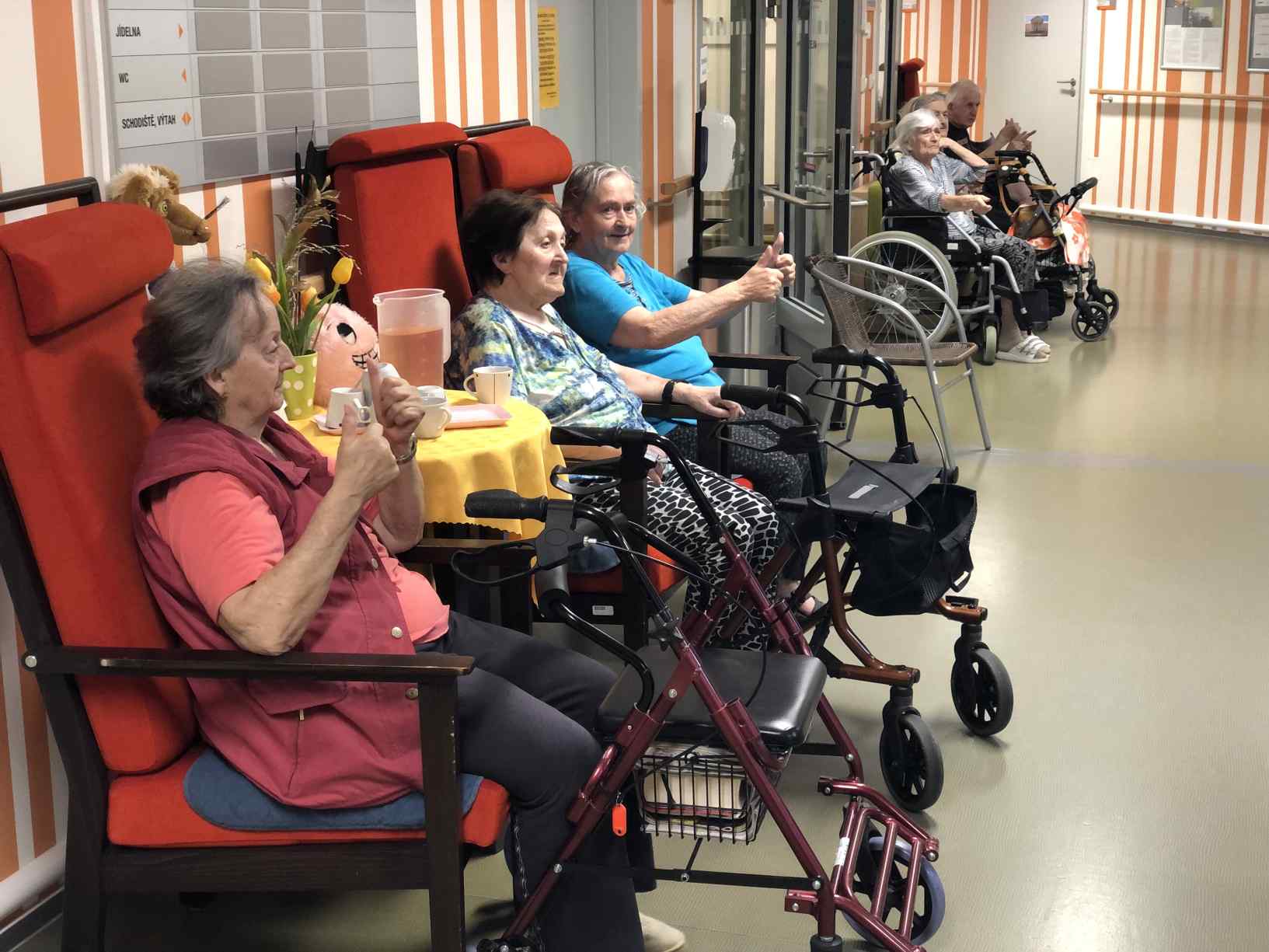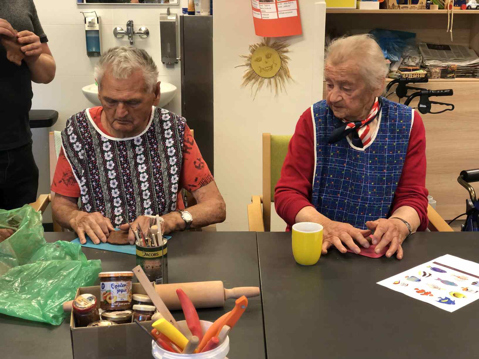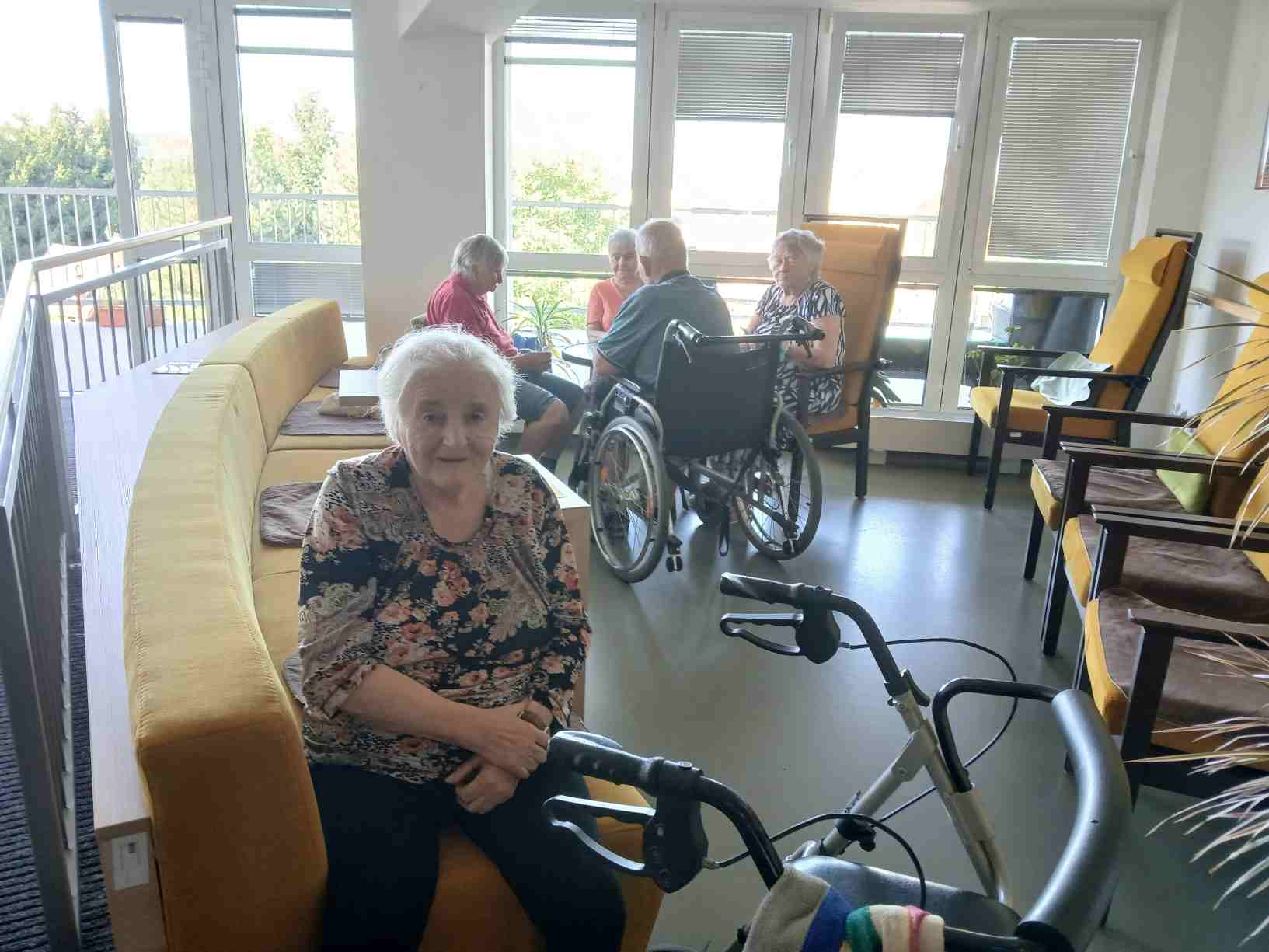 Léto se přehouplo do druhé poloviny, počasí nám stále přálo, tak není divu že jsme srpen převážně trávili venku. Společně jsme si četli, zpívali, starali jsme se o zahrádku. Upekli jsme si výborný štrůdl, zaposlouchali jsme se do hudby ze starých gramofonových desek. Hodně jsme cvičili, navštívil nás psí kamarád a vyráběli jsme z keramiky ryby. Na recepci jsme si udělali sraz "MÍSTNÍCH JANOVIČÁKŮ", poseděli při kávě a také nechyběly výlety.