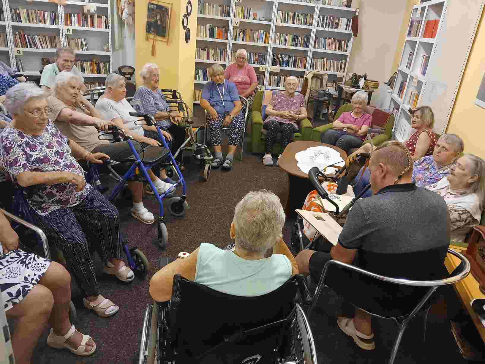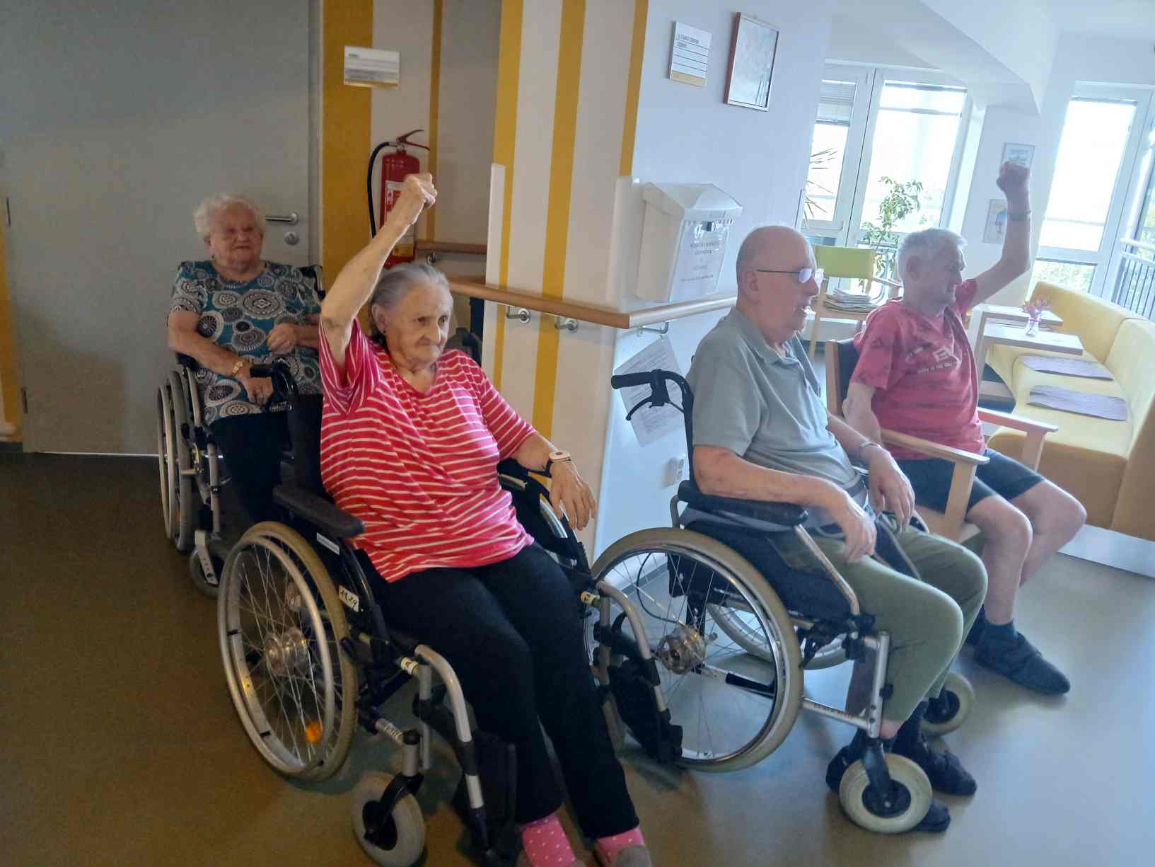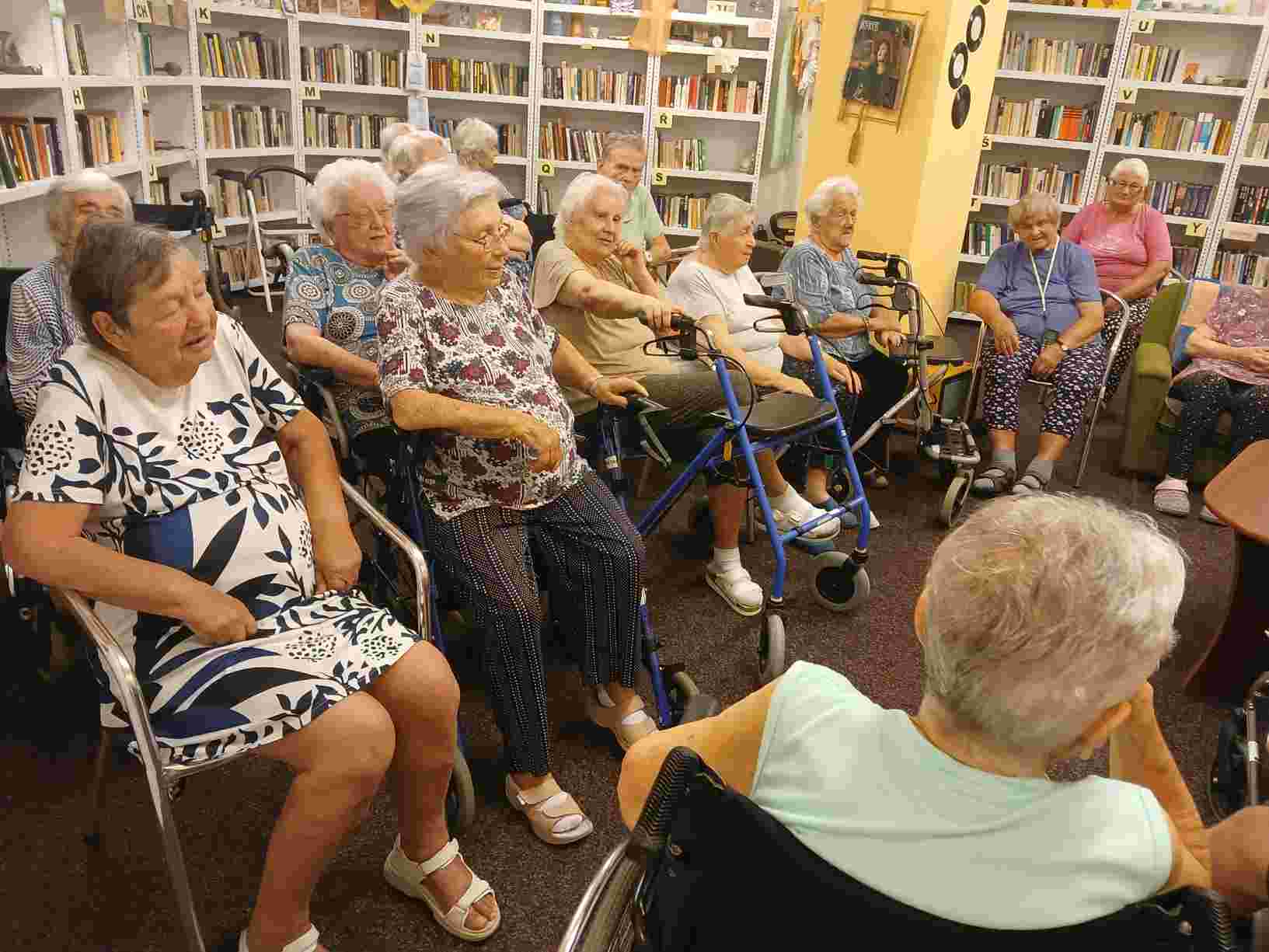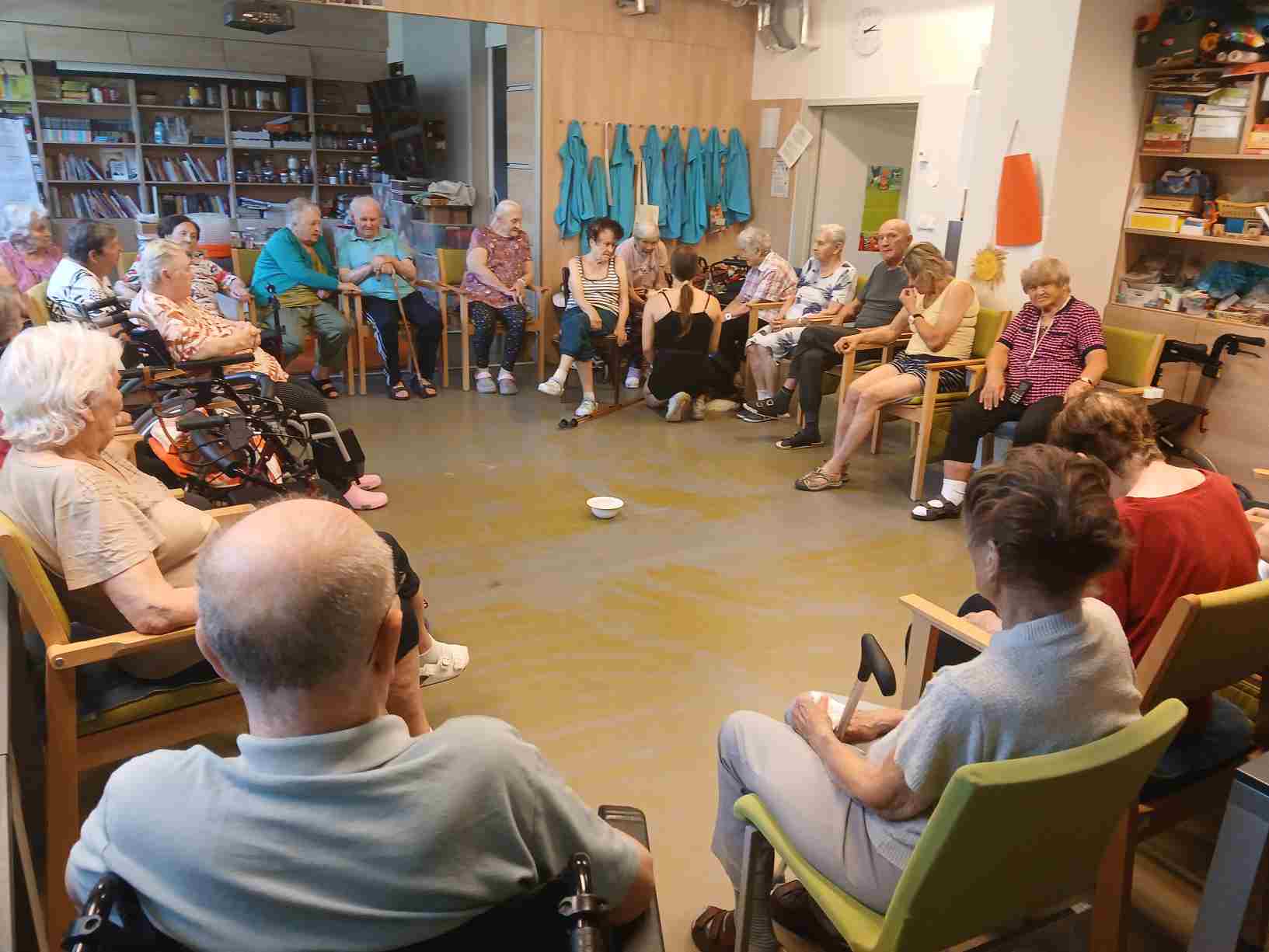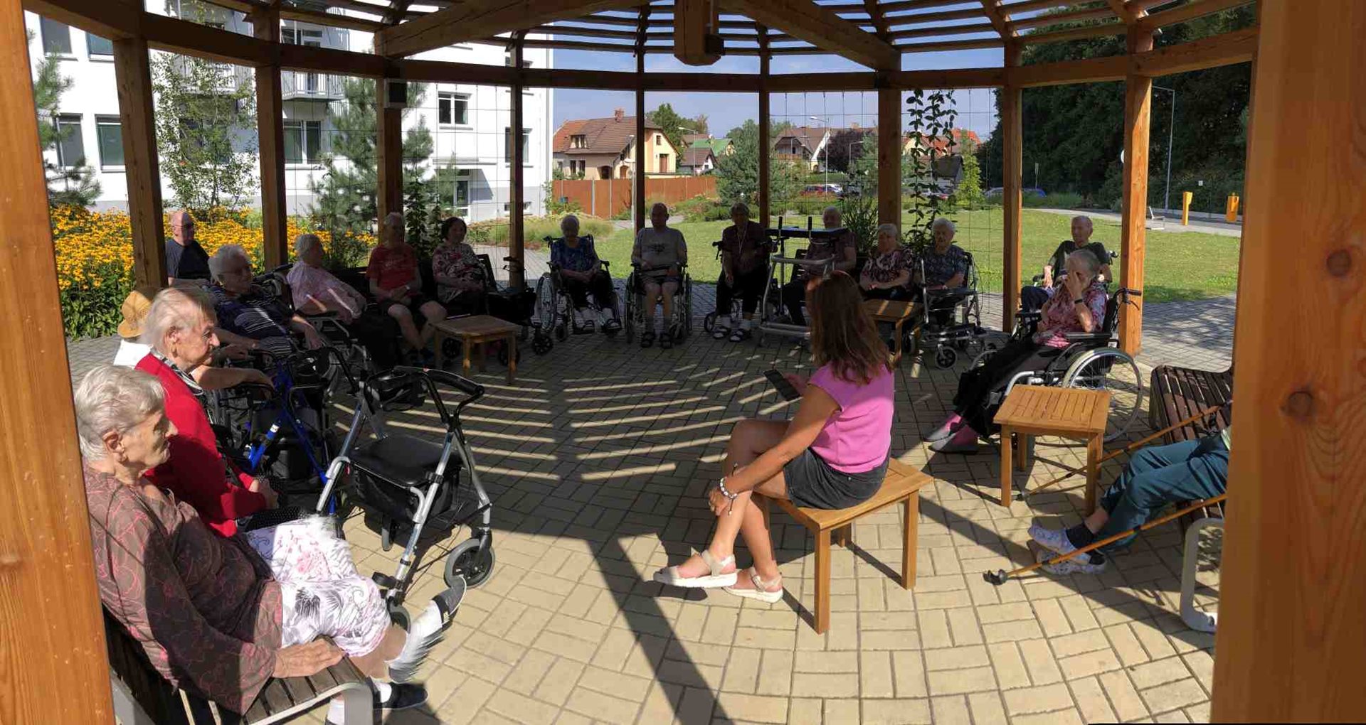 Léto se přehouplo do druhé poloviny, počasí nám stále přálo, tak není divu že jsme srpen převážně trávili venku. Společně jsme si četli, zpívali, starali jsme se o zahrádku. Upekli jsme si výborný štrůdl, zaposlouchali jsme se do hudby ze starých gramofonových desek. Hodně jsme cvičili, navštívil nás psí kamarád a vyráběli jsme z keramiky ryby. Na recepci jsme si udělali sraz "MÍSTNÍCH JANOVIČÁKŮ", poseděli při kávě a také nechyběly výlety.
