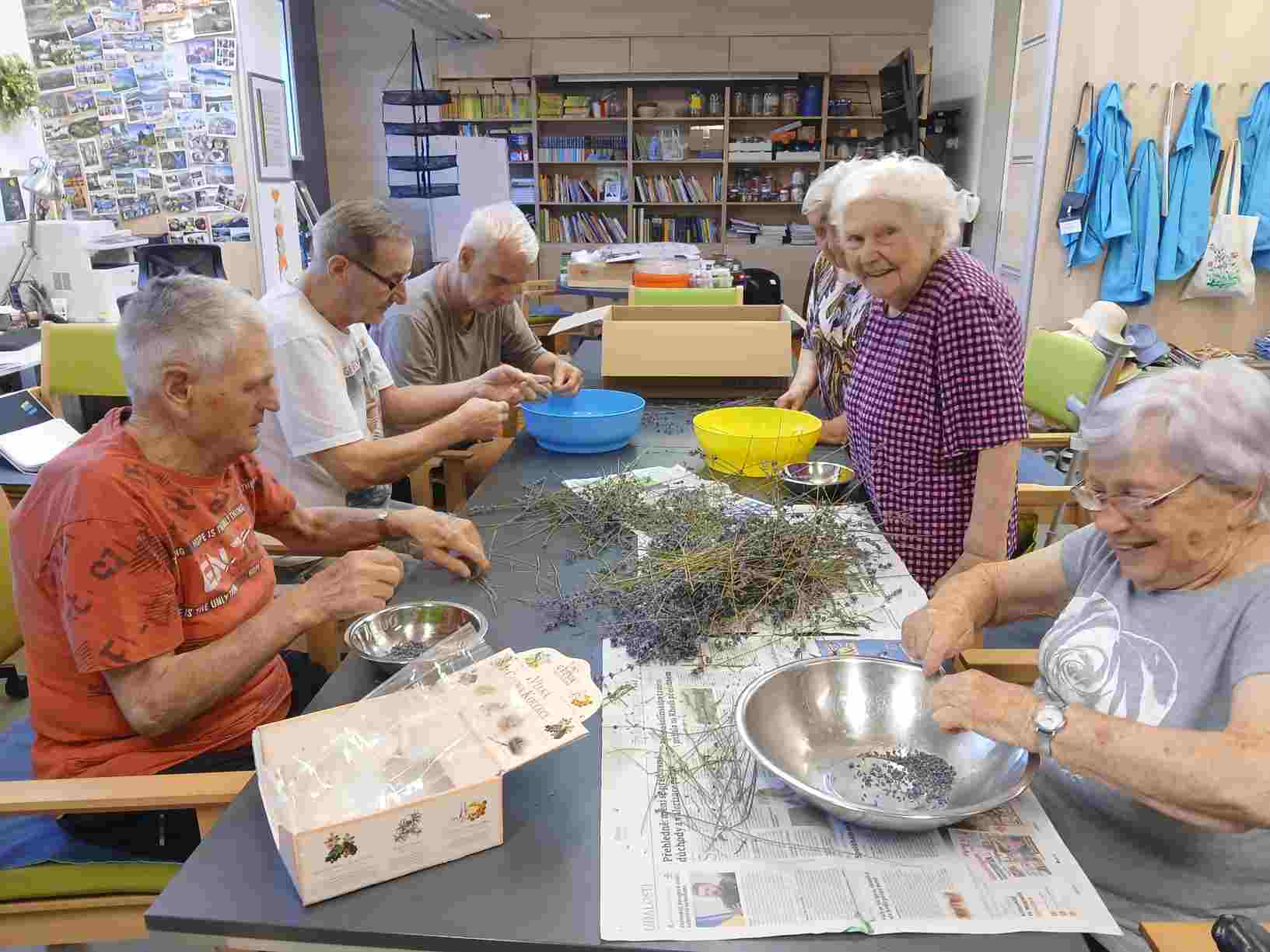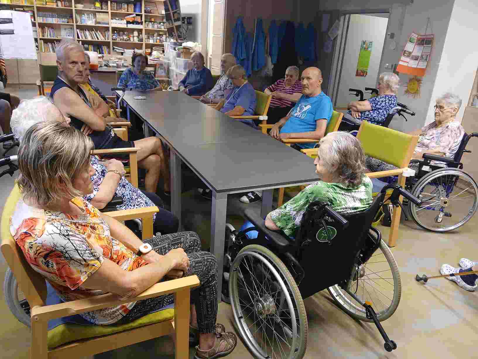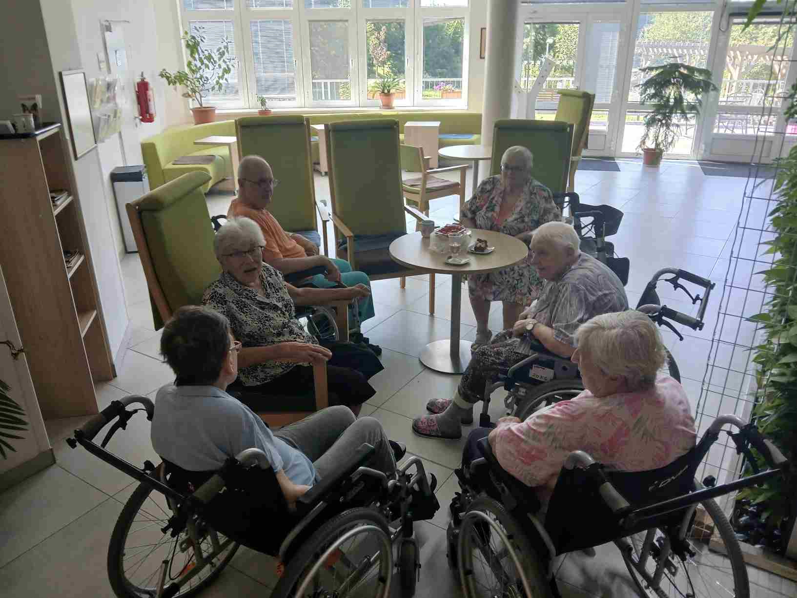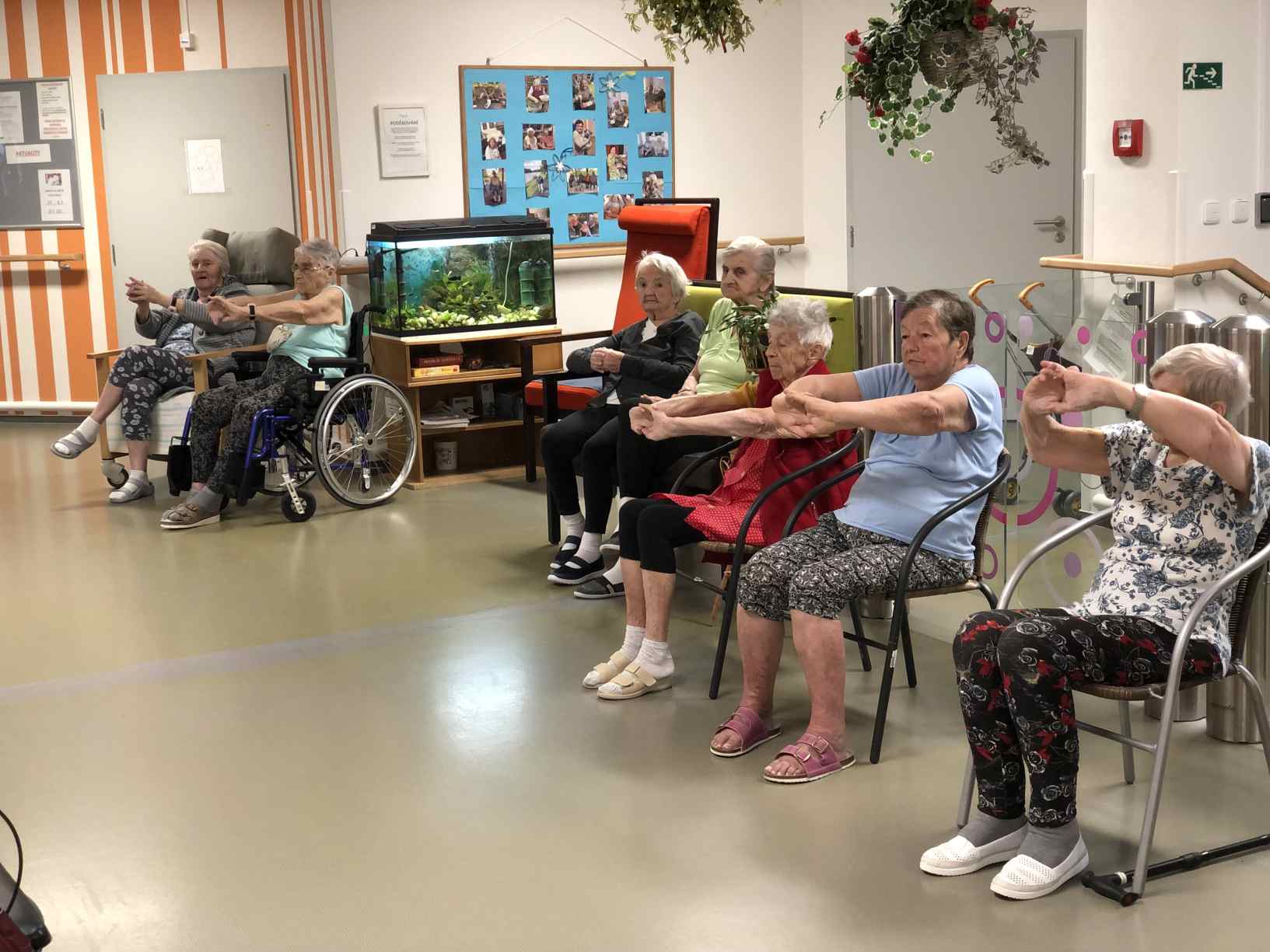 Léto se přehouplo do druhé poloviny, počasí nám stále přálo, tak není divu že jsme srpen převážně trávili venku. Společně jsme si četli, zpívali, starali jsme se o zahrádku. Upekli jsme si výborný štrůdl, zaposlouchali jsme se do hudby ze starých gramofonových desek. Hodně jsme cvičili, navštívil nás psí kamarád a vyráběli jsme z keramiky ryby. Na recepci jsme si udělali sraz "MÍSTNÍCH JANOVIČÁKŮ", poseděli při kávě a také nechyběly výlety.