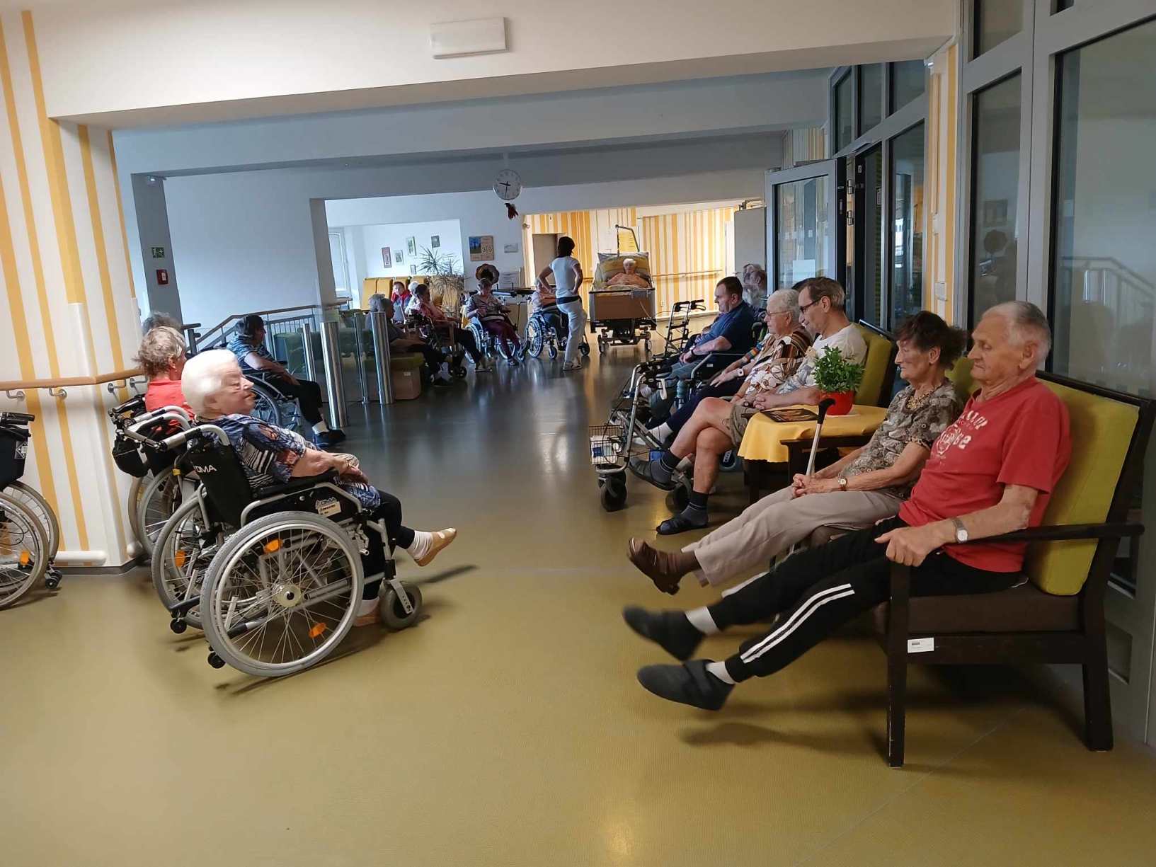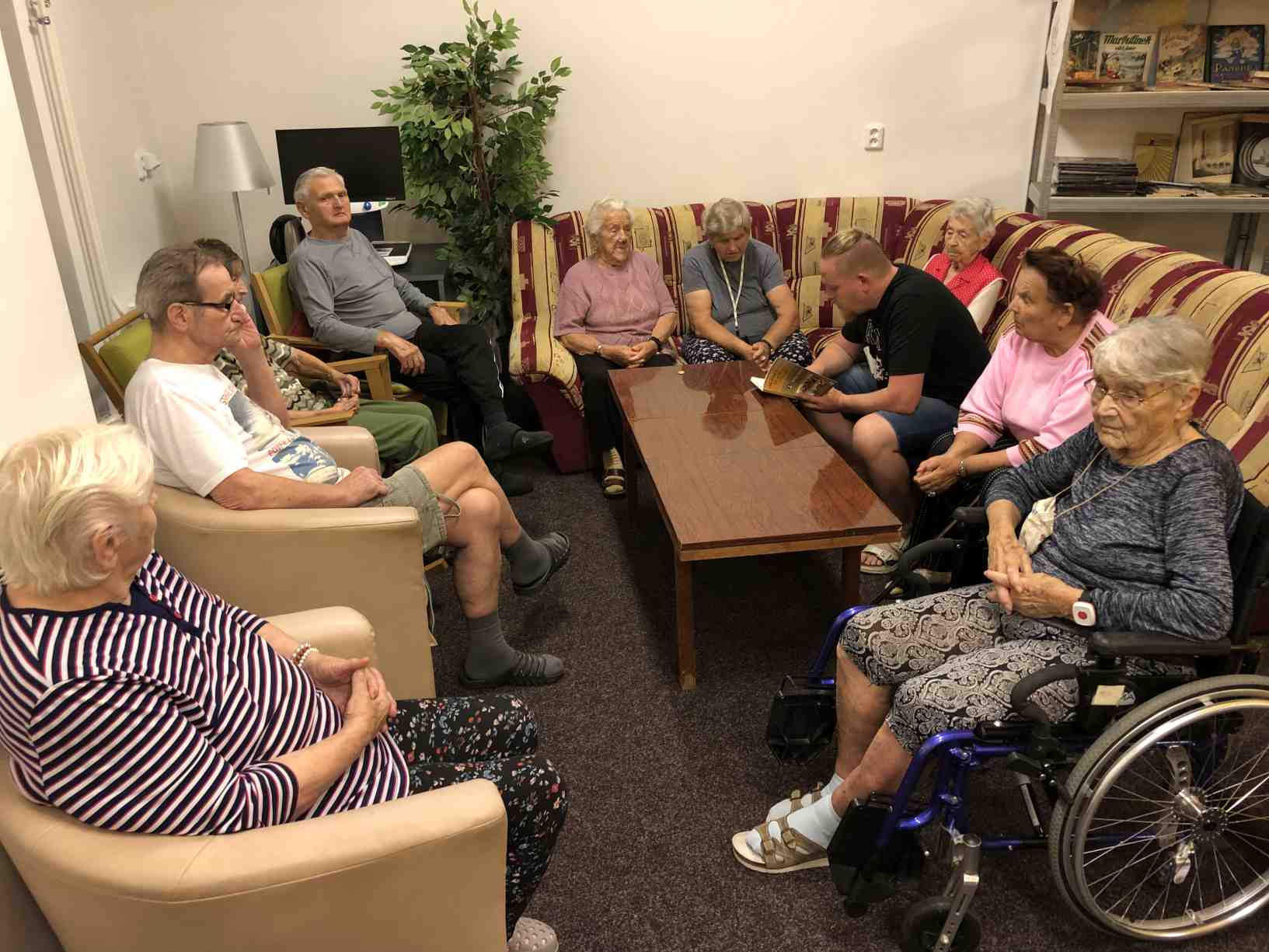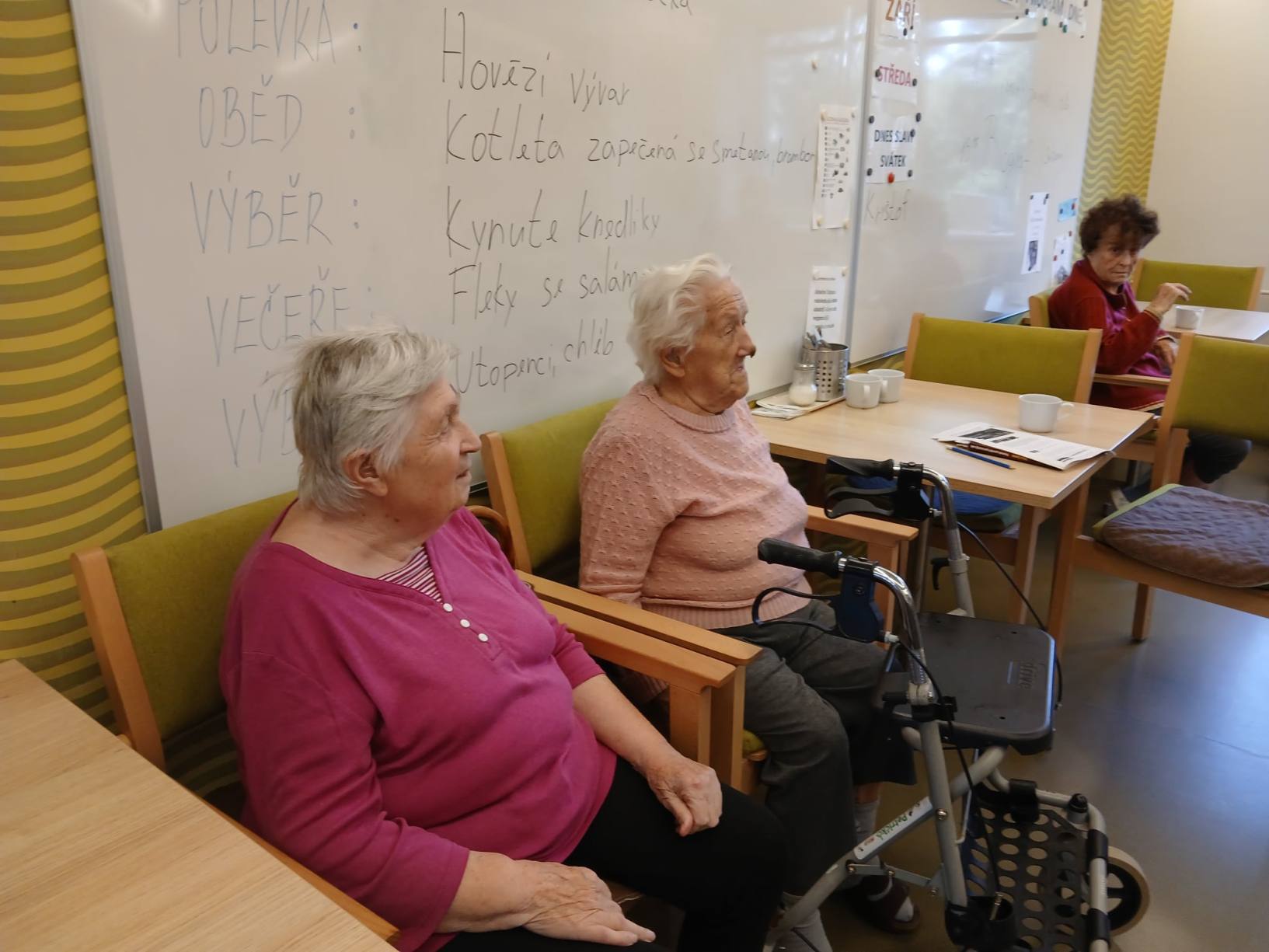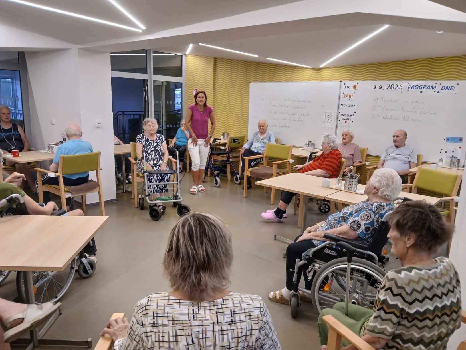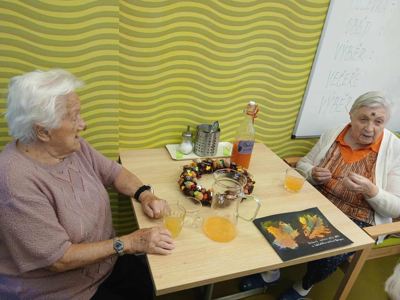 Léto se pomalu přehouplo do podzimu a tak venkovních aktivit začne pomalu ubývat. Sluníčko stále ještě hřálo a tak slunné dny jsme se snažili trávit v altánu a na zahradě. Zabalili jsme usušené bylinky, věnovali jsme se keramice i zdobení látkových tašek. Společně jsme trávili čas předčítáním, posezením s hudbou a tréninkem paměti. Zacvičili jsme si s naší fyzioterapeutkou, navštívili nás zvířecí kamarádi a využili jsme našich kadeřnických služeb. Navštívila nás paní učitelka z Dětského centra v Polipsech, aby nám předala výrobky, které děti pro nás připravily. A ještě jsme si stačili udělat výlet na farmu do Netušila.