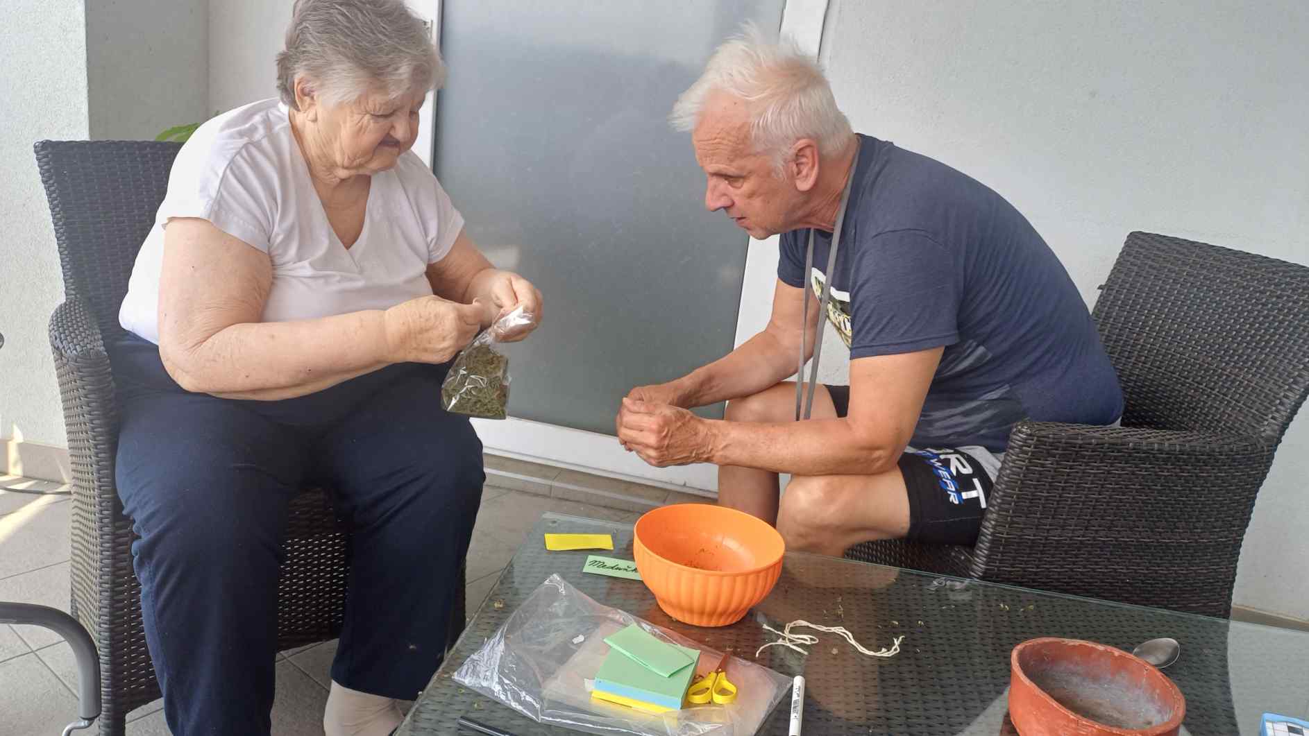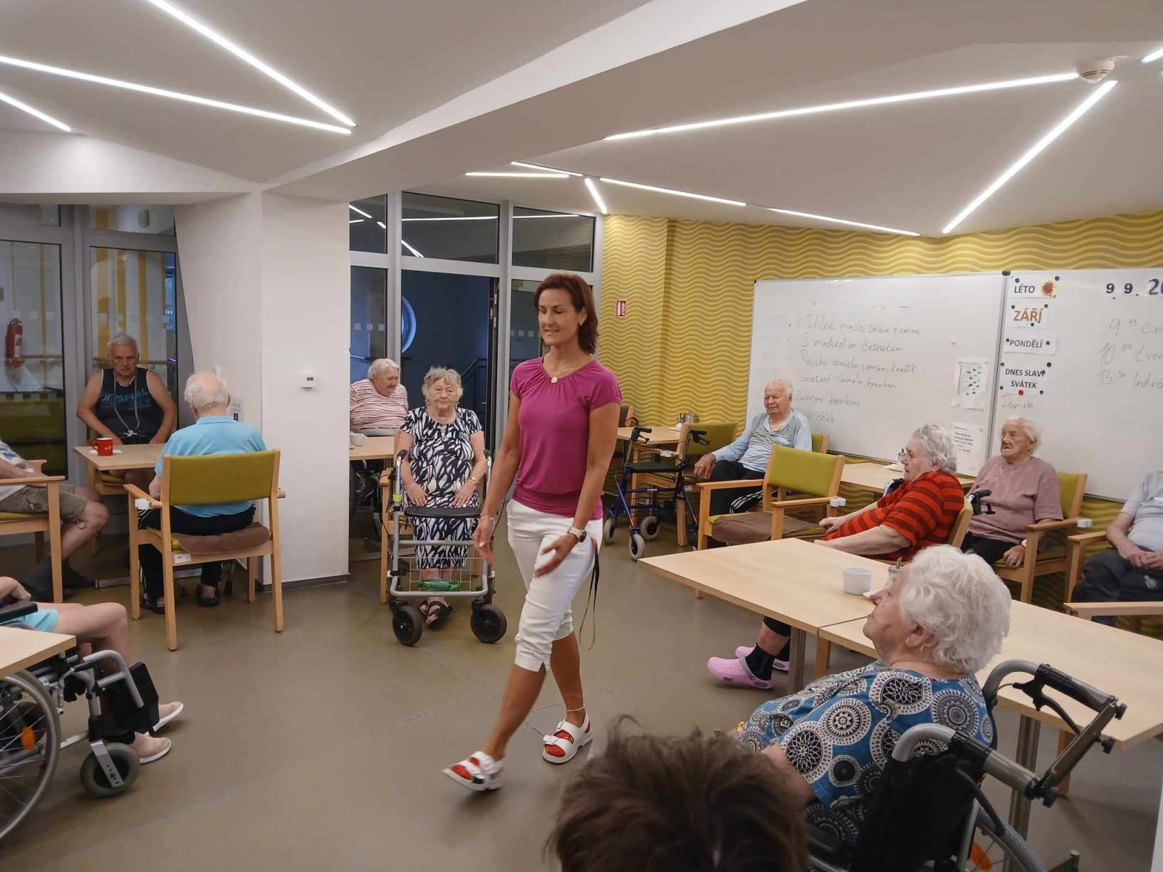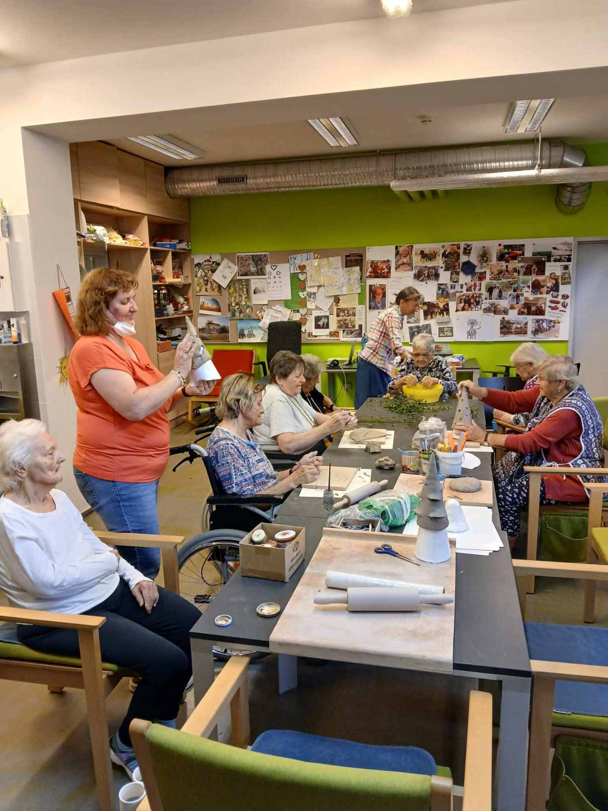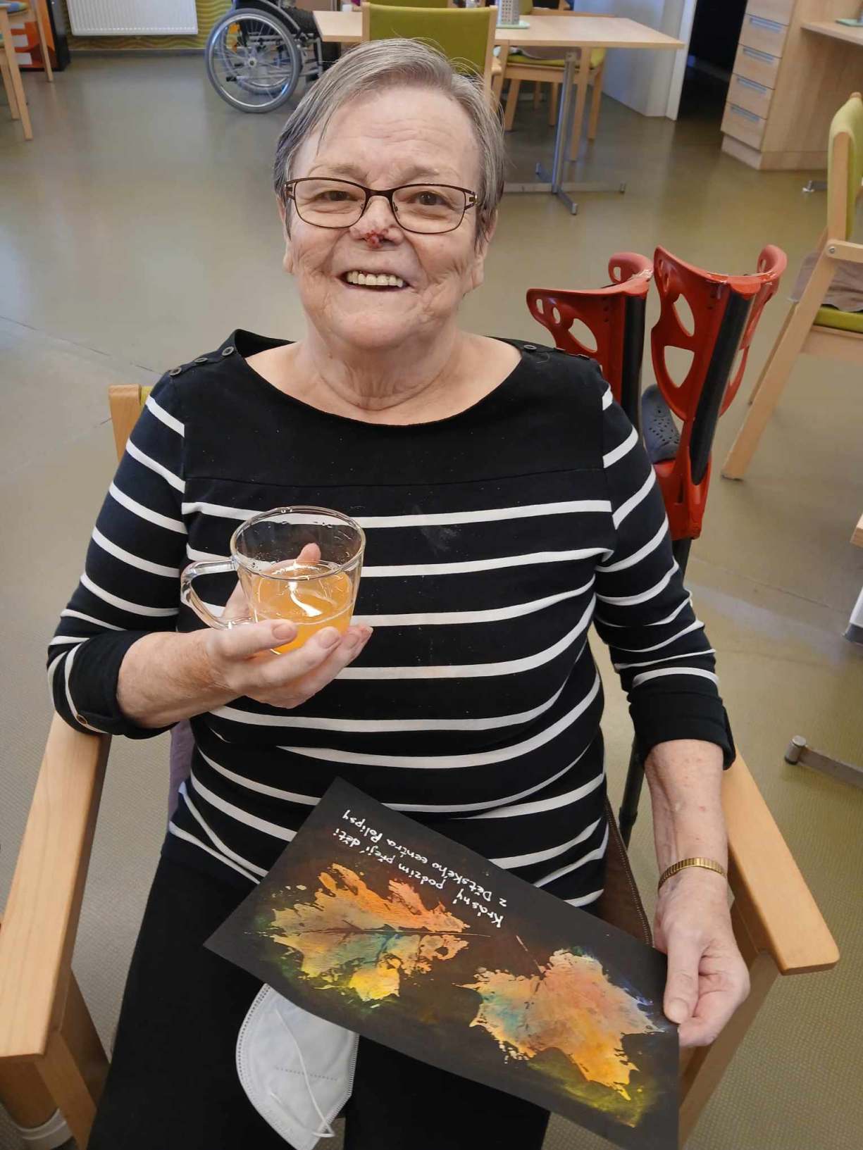 Léto se pomalu přehouplo do podzimu a tak venkovních aktivit začne pomalu ubývat. Sluníčko stále ještě hřálo a tak slunné dny jsme se snažili trávit v altánu a na zahradě. Zabalili jsme usušené bylinky, věnovali jsme se keramice i zdobení látkových tašek. Společně jsme trávili čas předčítáním, posezením s hudbou a tréninkem paměti. Zacvičili jsme si s naší fyzioterapeutkou, navštívili nás zvířecí kamarádi a využili jsme našich kadeřnických služeb. Navštívila nás paní učitelka z Dětského centra v Polipsech, aby nám předala výrobky, které děti pro nás připravily. A ještě jsme si stačili udělat výlet na farmu do Netušila.