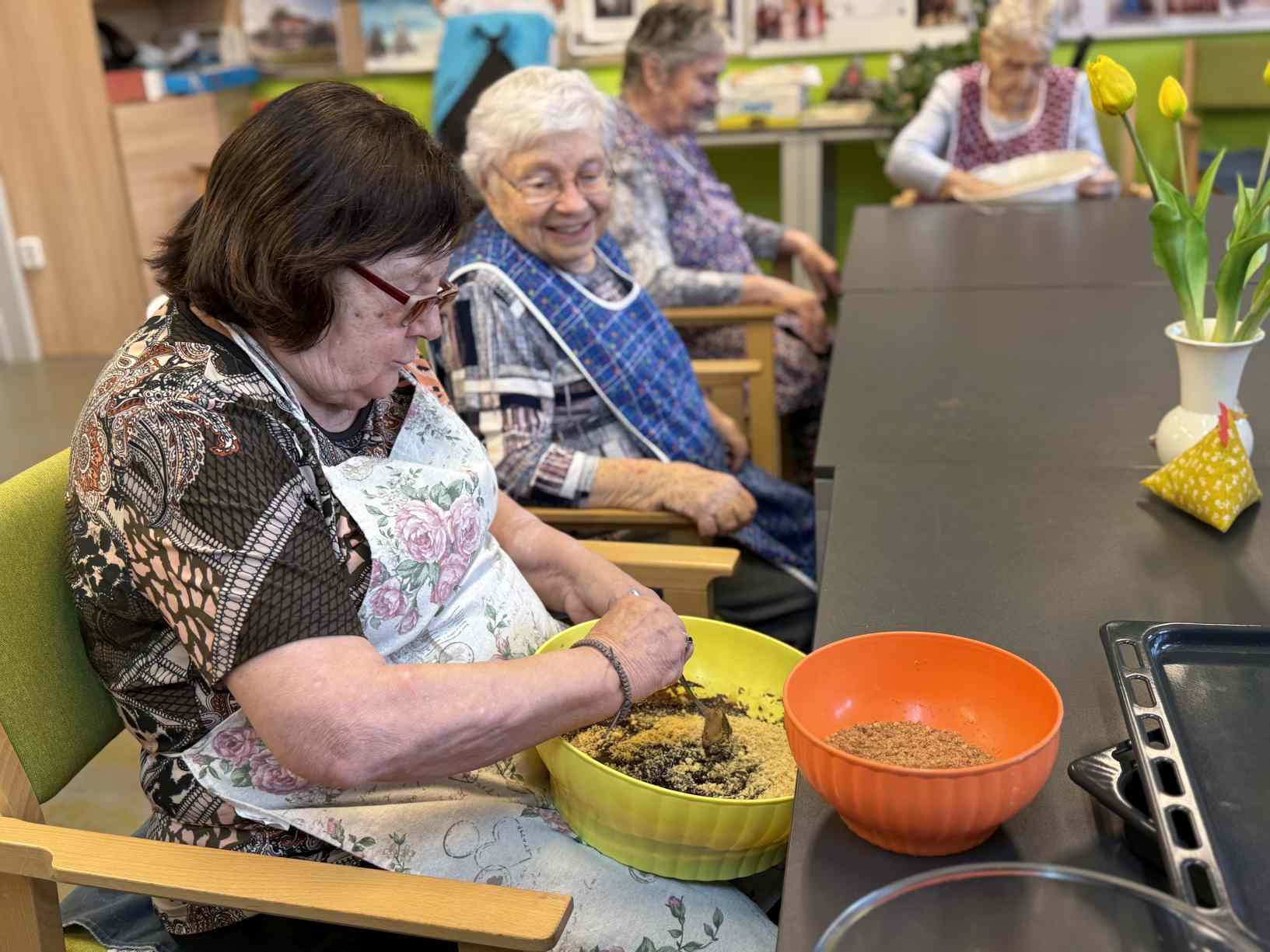 Příroda se pozvolna probouzí a slunce začíná hřát. I my jsme začali trávit více času venku a těšili se ze zpěvu ptáků a sluníčka. Během března jsme zasázeli kytky do truhlíků. Vyrobili jsme mýdla, která jsme zabalili do krabiček. Upekli jsme si sušenkový dort, vyškvařili sádlo a poseděli v narozeninové kavárničce. Nesmíme zapomenout na naše psí kamarády, kteří nám vždy dělají velkou radost. Nechyběl ani MASOPUSTNÍ REJ. Vyráběli jsme s žáky ze ZŠ speciální jarní motivy a uspořádali setkání s JANOVICKÝMI OBČANY. Nezaháleli jsme ani ve cvičení těla a paměti.