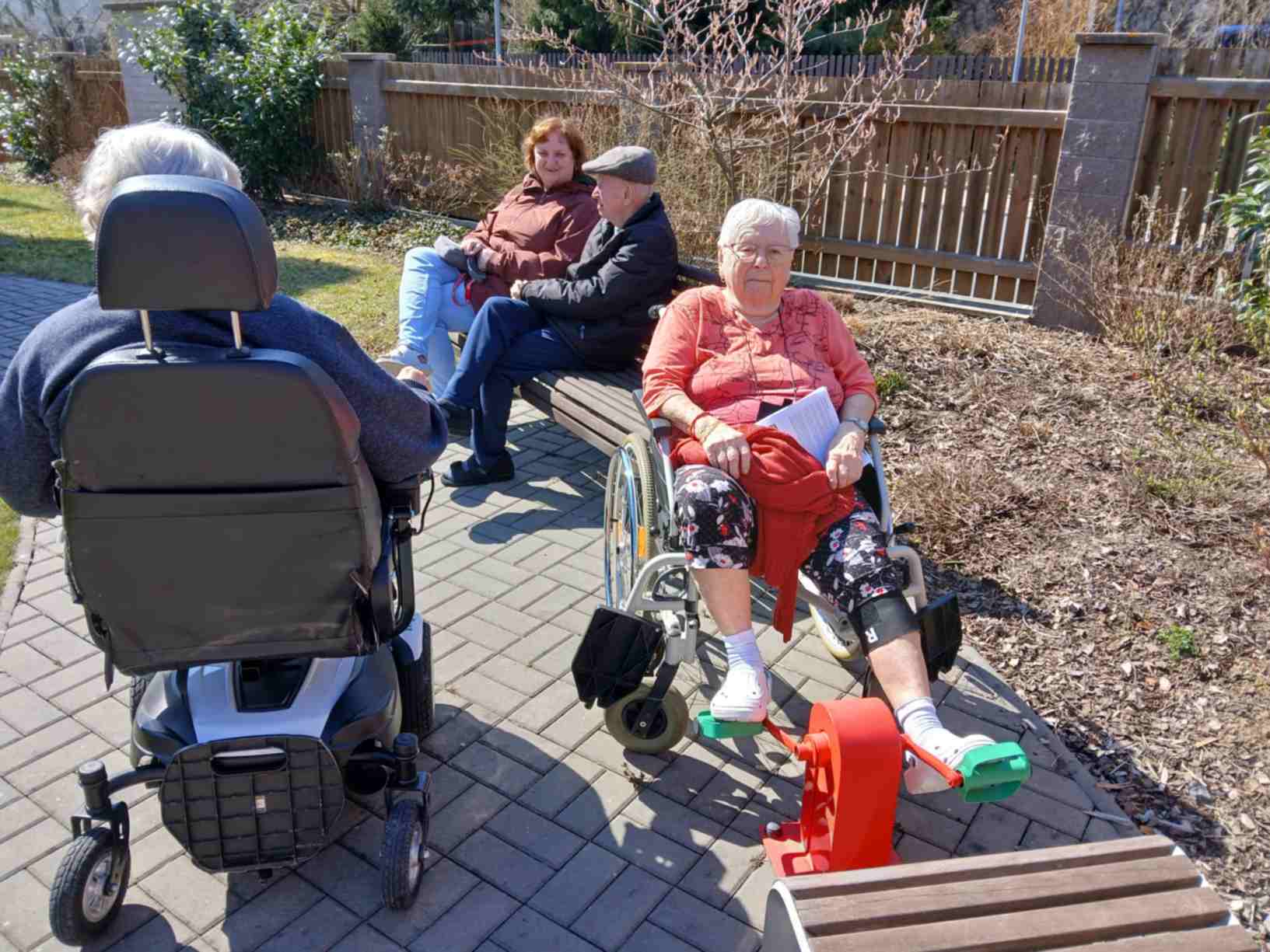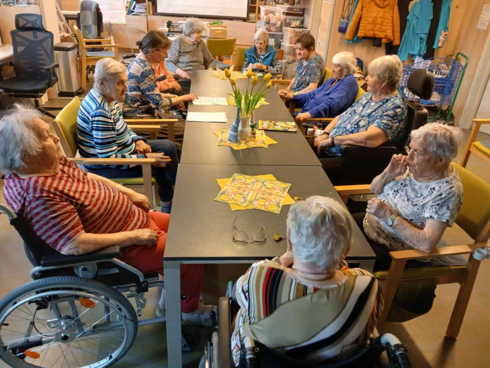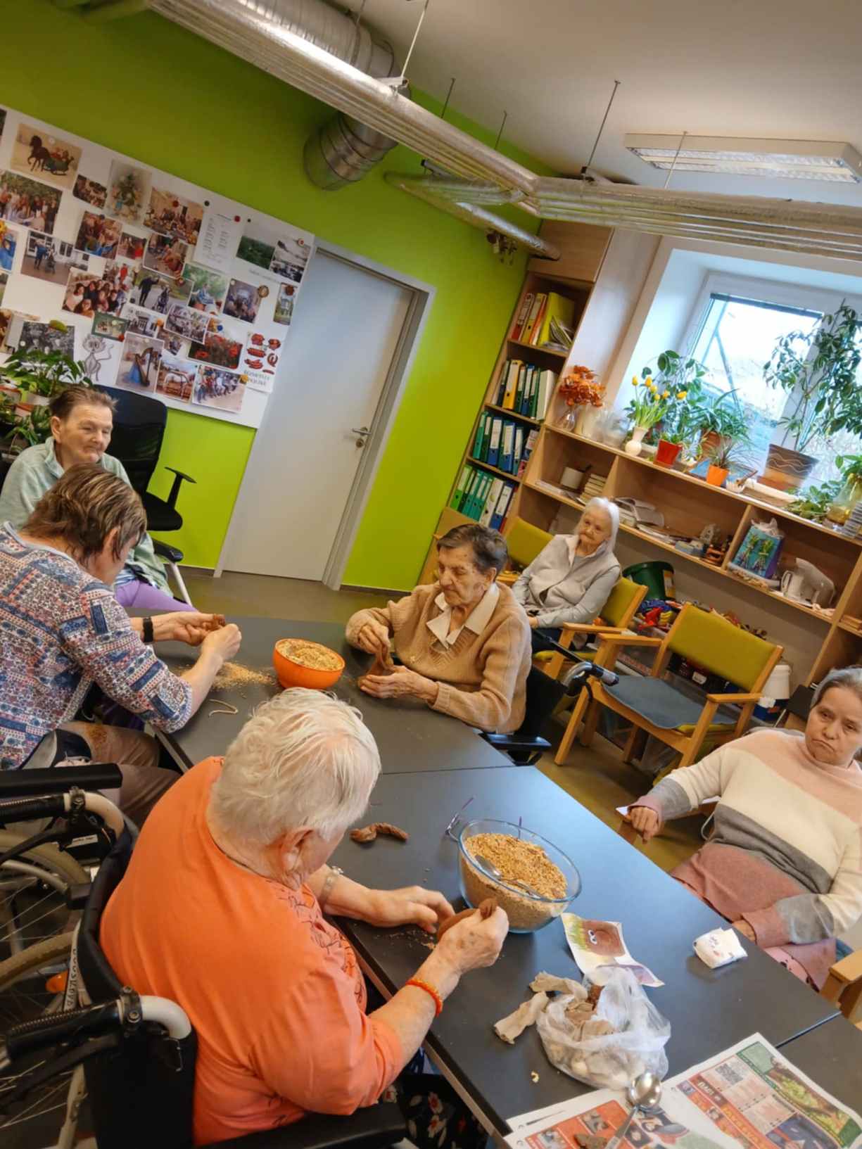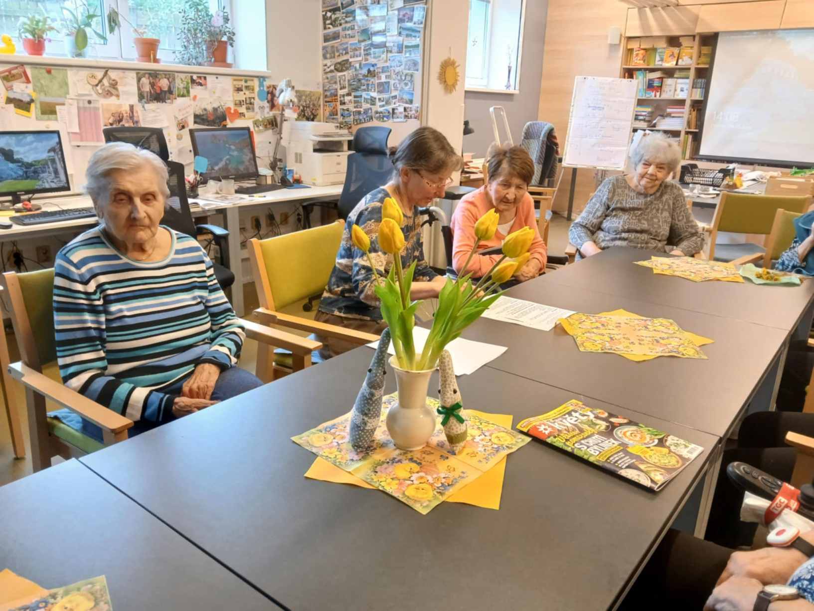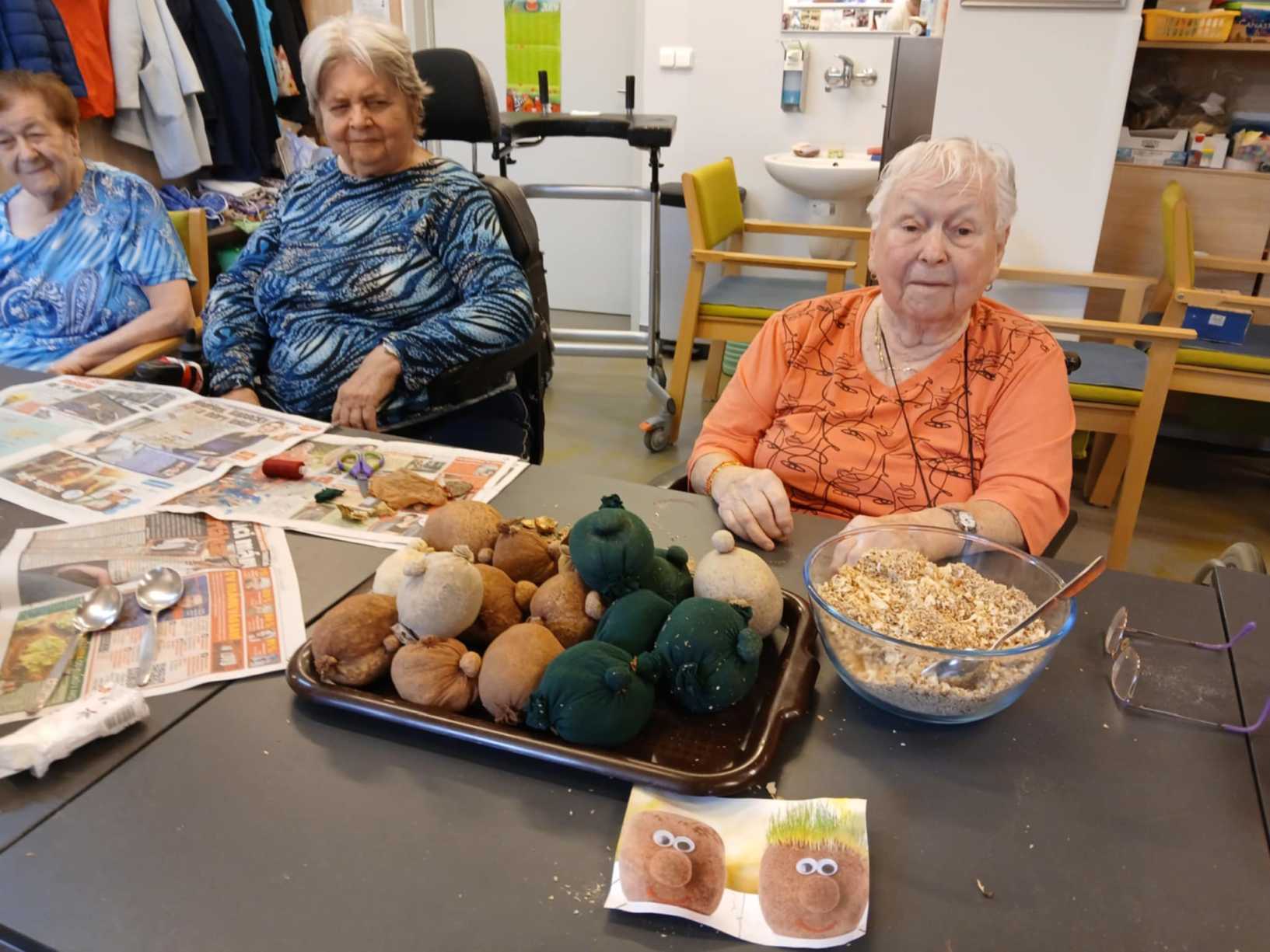 Krásné dubnové počasí vybízelo k venkovním aktivitám. Nasbírali jsme pampelišky pro výrobu medu. Společně jsme se podíleli na výrobě "travňáků", malování tašek a výrobě pampeliškového medu. V naší kavárně nechyběla oslava pro dubnové oslavence. Tento měsíc jsme s naší klientkou oslavili krásné sté narozeniny. Cvičili jsme společně i individuálně a nejen tělo, ale i mysl. Poseděli jsme při poslechu starých gramodesek, nebo hráli žolíky na terase. V rámci výletu jsme zajeli na fotbalový zápas, který se uskutečnil na místním fotbalovém hřišti. Přišel za námi náš psí kamarád a dokonce i husa nebo poníci. V květnu se moc těšíme na floristický workshop s rodinami, tak si určitě udělejte čas.