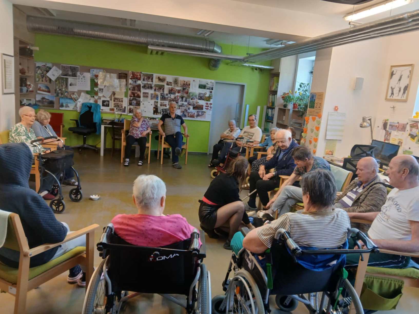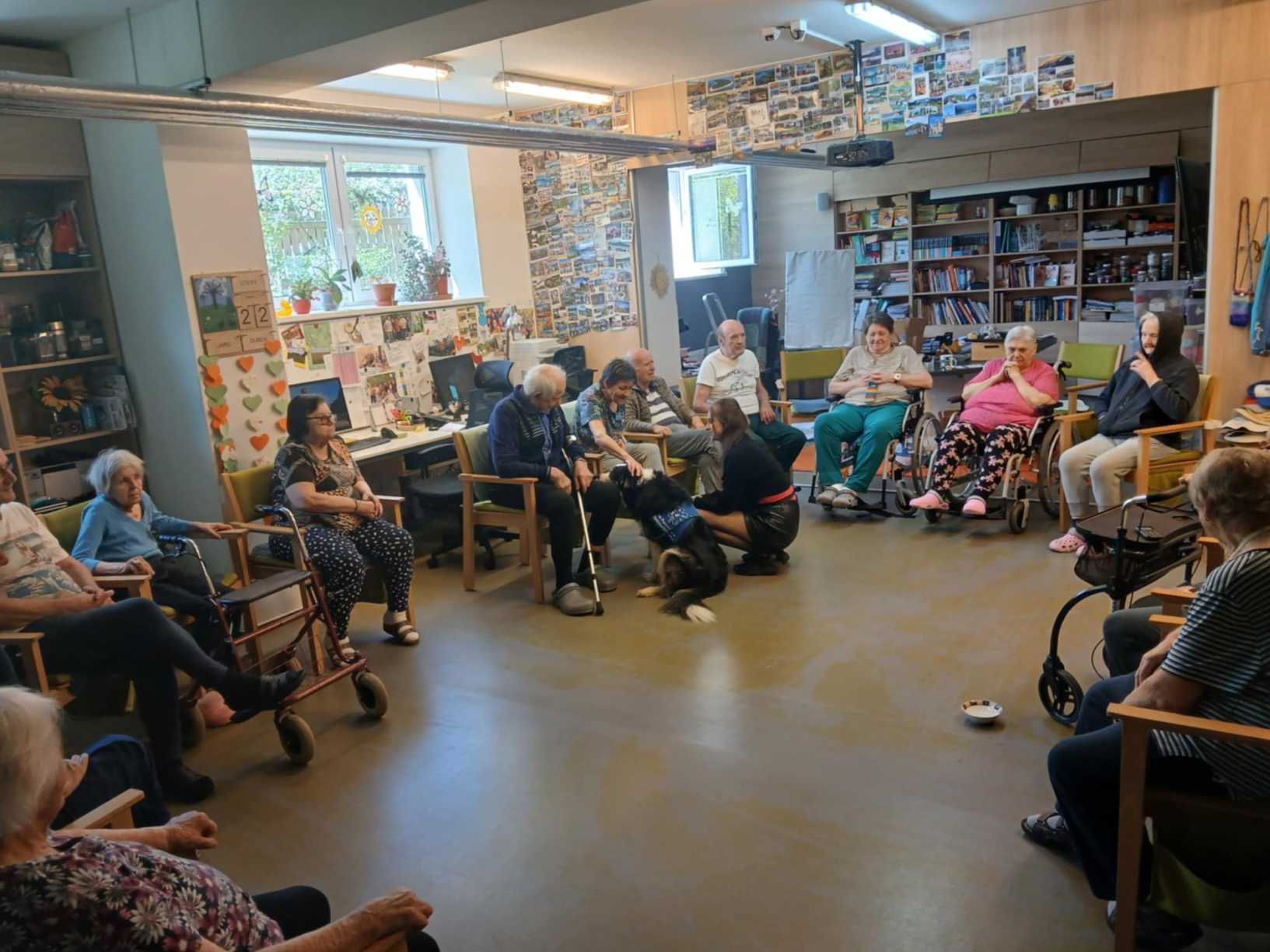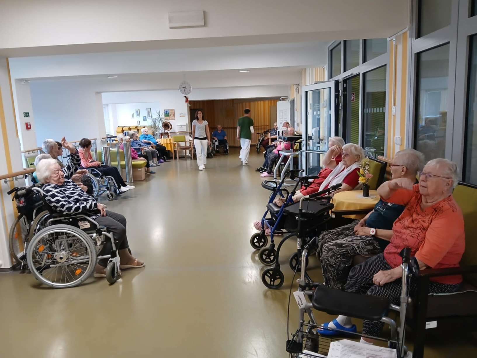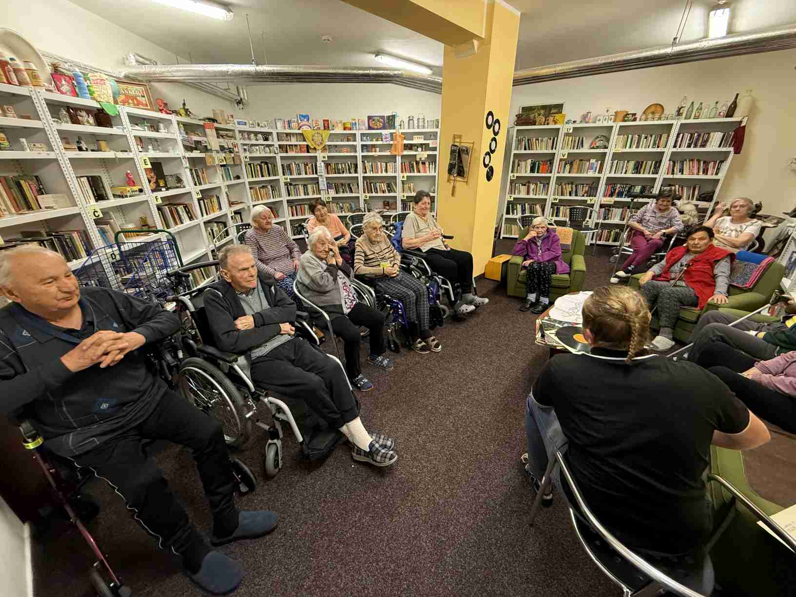 Krásné dubnové počasí vybízelo k venkovním aktivitám. Nasbírali jsme pampelišky pro výrobu medu. Společně jsme se podíleli na výrobě "travňáků", malování tašek a výrobě pampeliškového medu. V naší kavárně nechyběla oslava pro dubnové oslavence. Tento měsíc jsme s naší klientkou oslavili krásné sté narozeniny. Cvičili jsme společně i individuálně a nejen tělo, ale i mysl. Poseděli jsme při poslechu starých gramodesek, nebo hráli žolíky na terase. V rámci výletu jsme zajeli na fotbalový zápas, který se uskutečnil na místním fotbalovém hřišti. Přišel za námi náš psí kamarád a dokonce i husa nebo poníci. V květnu se moc těšíme na floristický workshop s rodinami, tak si určitě udělejte čas.