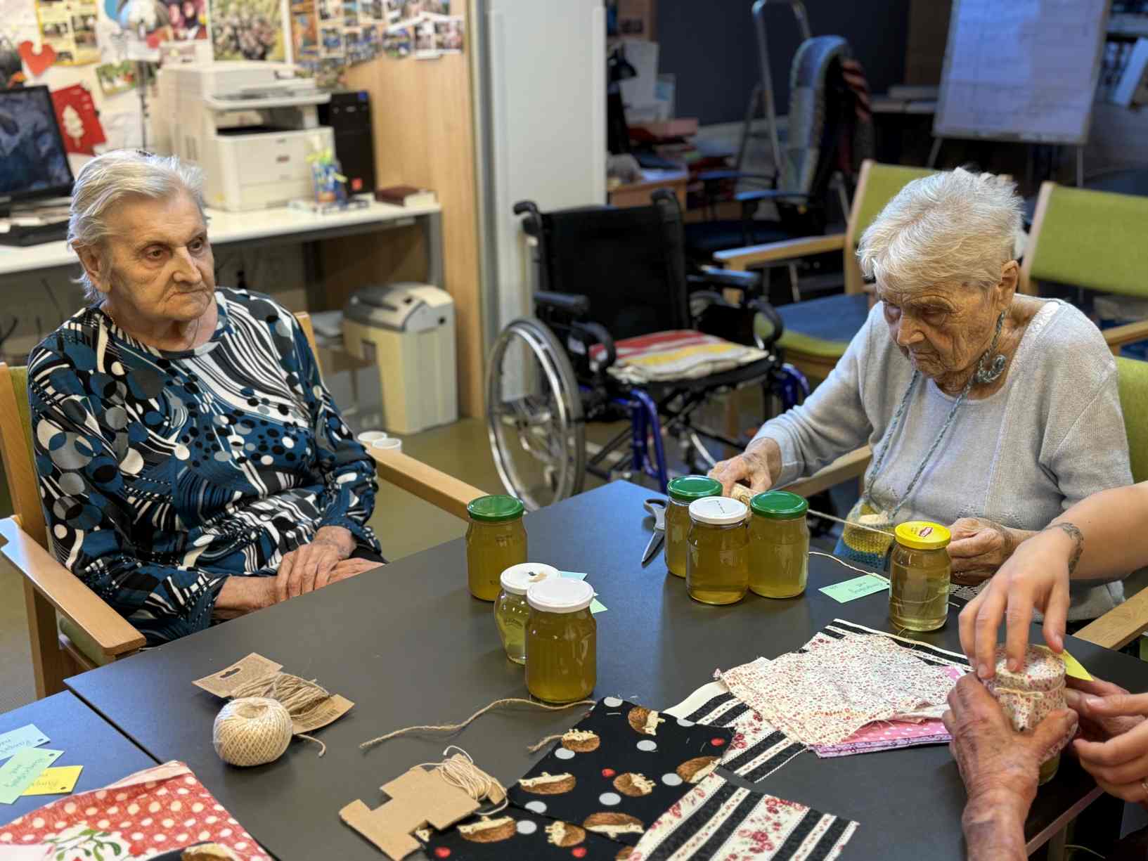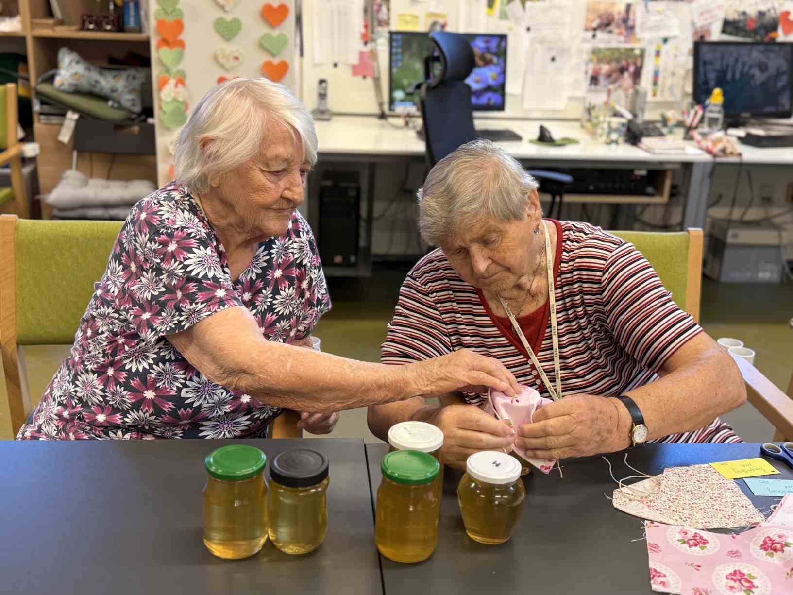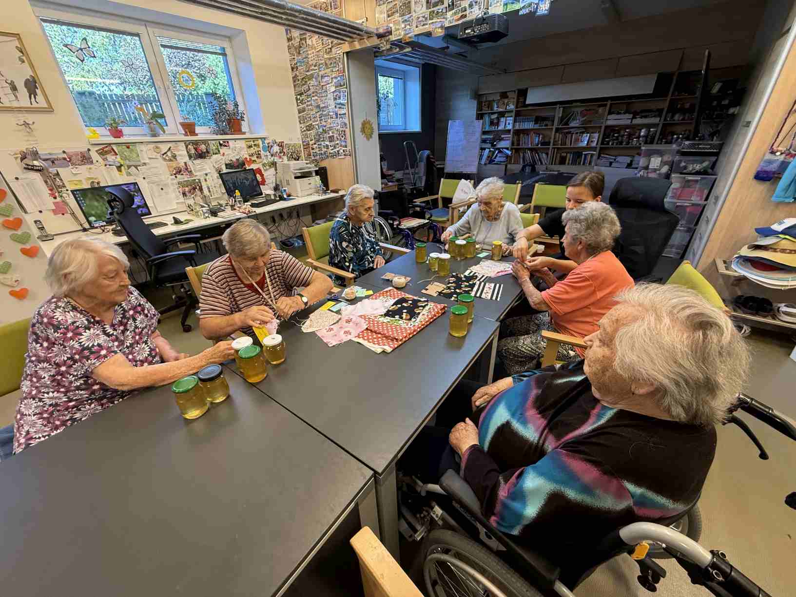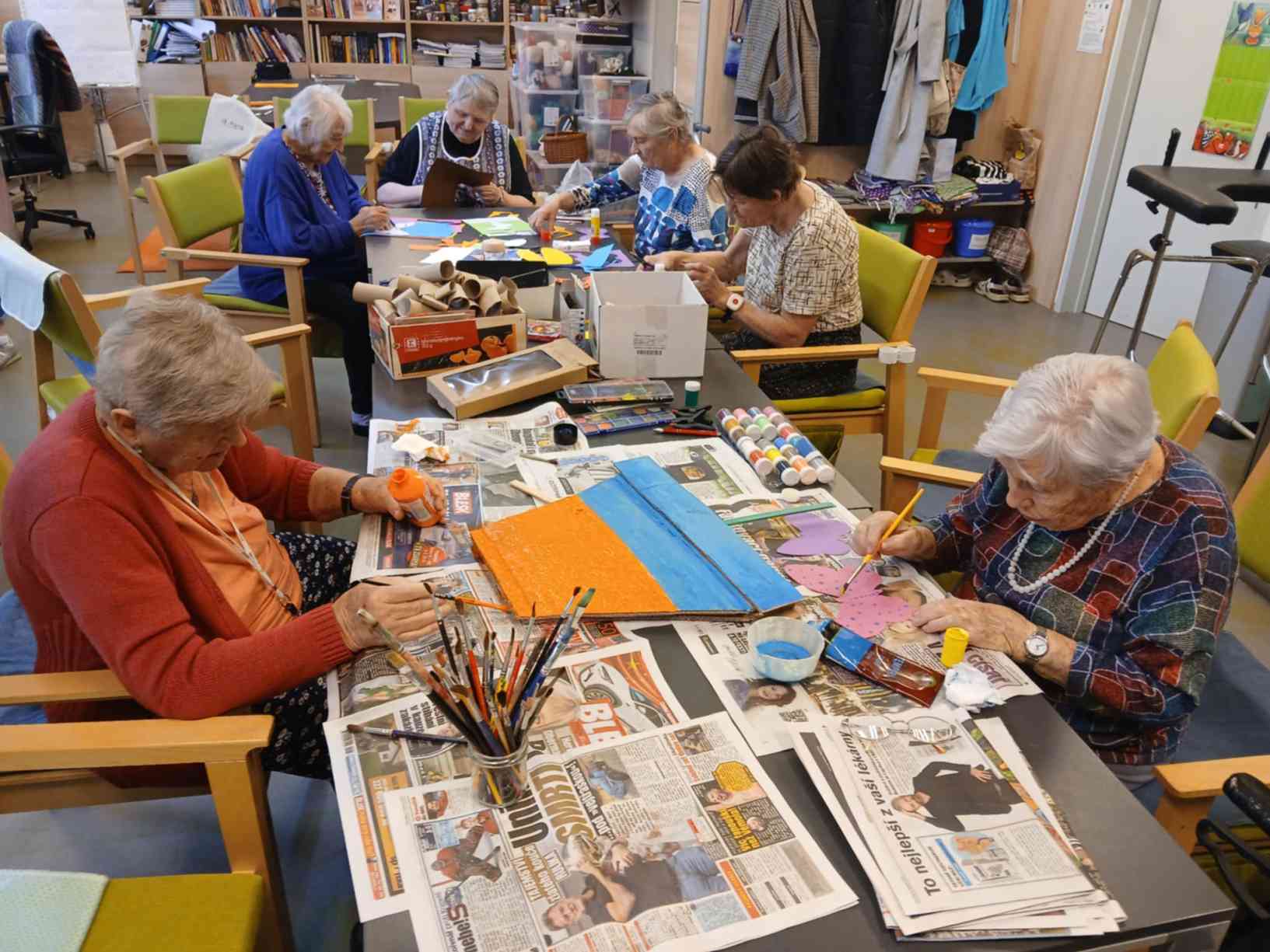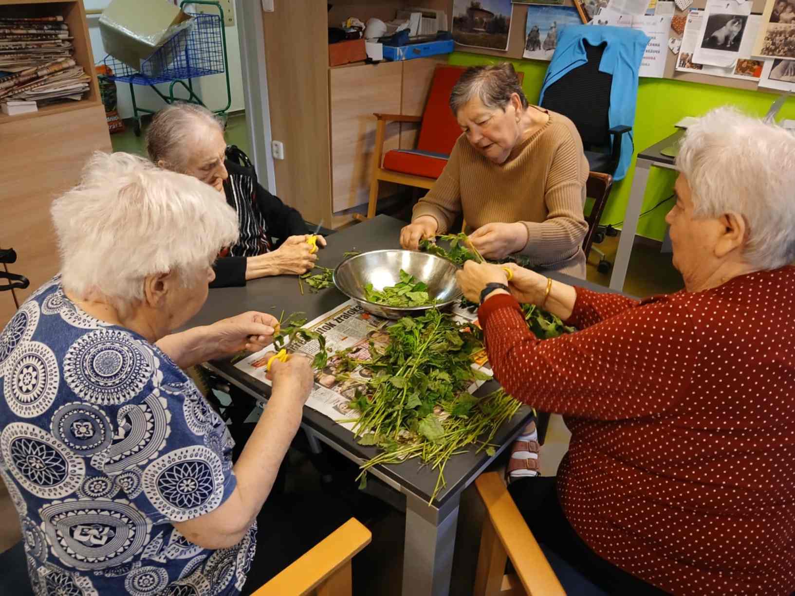 I přes pochmurné květnové počasí jsme nezaháleli. Zabalili jsme vyrobený med. Společnými silami jsme se pustili do výroby dekorace na halu Domova. Připravili jsme si tvarohové pomazánky, rybízový koláč. Zasadili jsme rajčata, papriky a různé květiny. Otrhali jsme meduňku, kterou budeme sušit. Jak jen to šlo, tak jsme trávili čas na zahradě. Dozvěděli jsme se zajímavosti z historie Uhlířských Janovic. Z keramiky jsme vyráběli klíčenky. Květnová kavárnička proběhla za doprovodu kapely Seniorband. Nechybělo pravidelné duchovní setkání v čítárně a nesmíme opomenout zvířecí kamarády. A bylo toho mnohem víc... :)