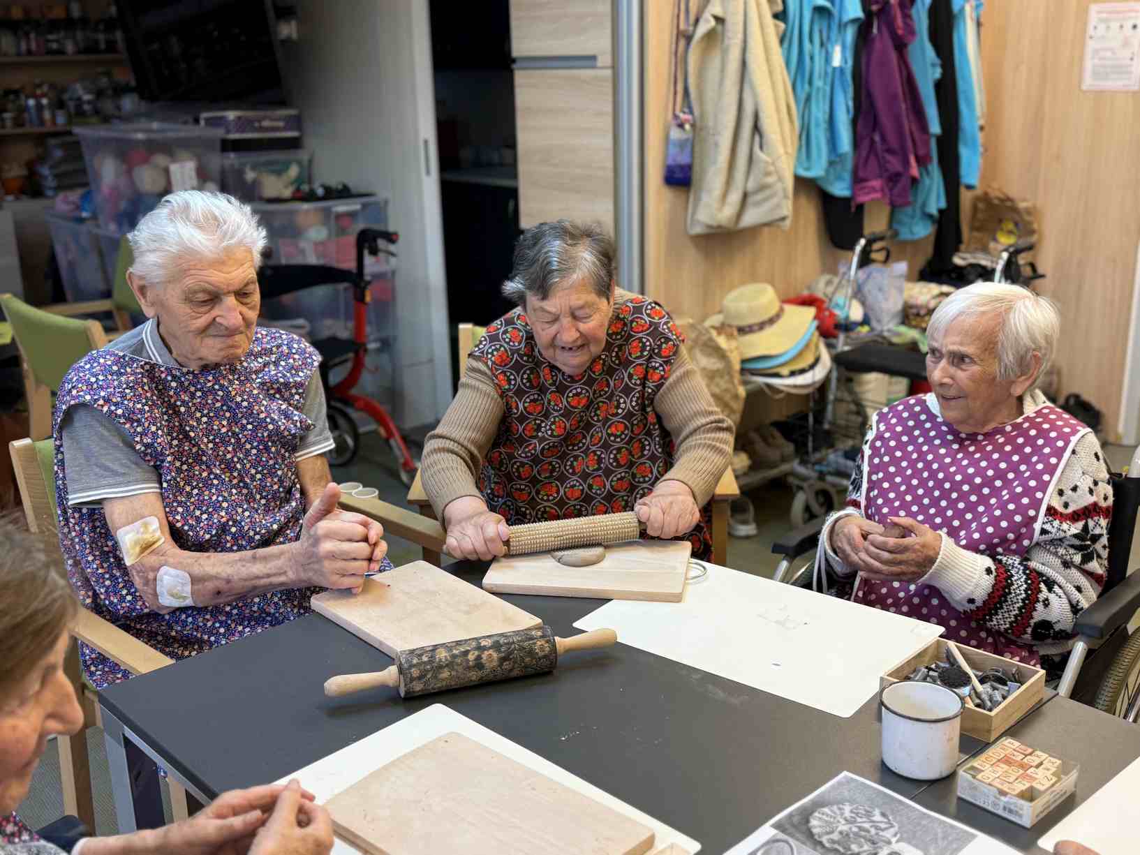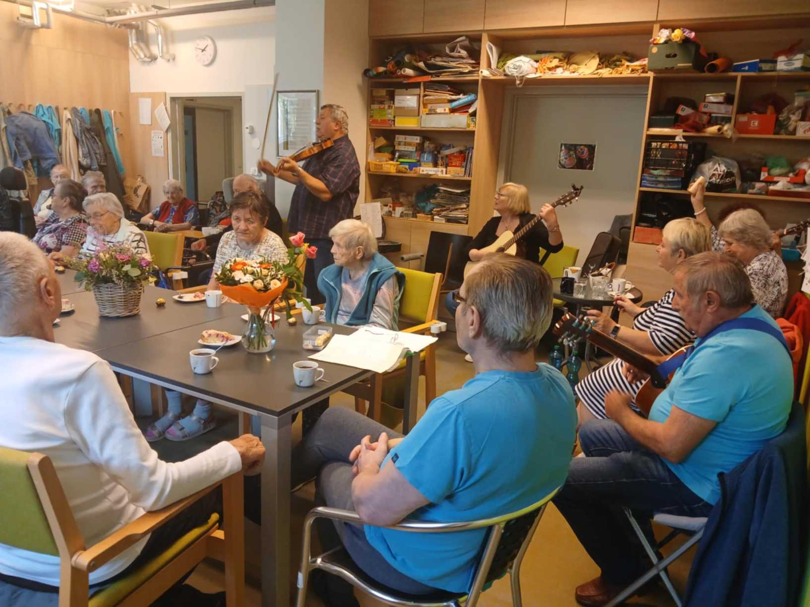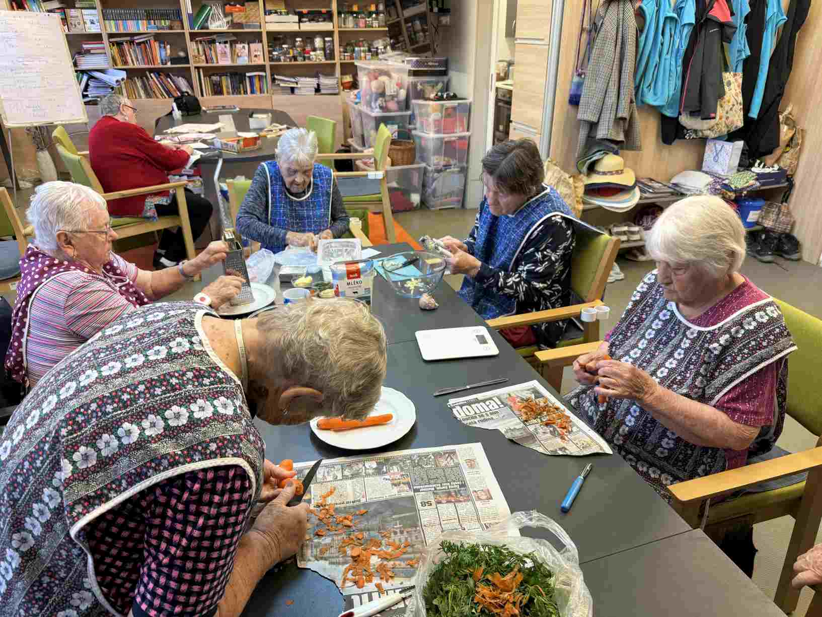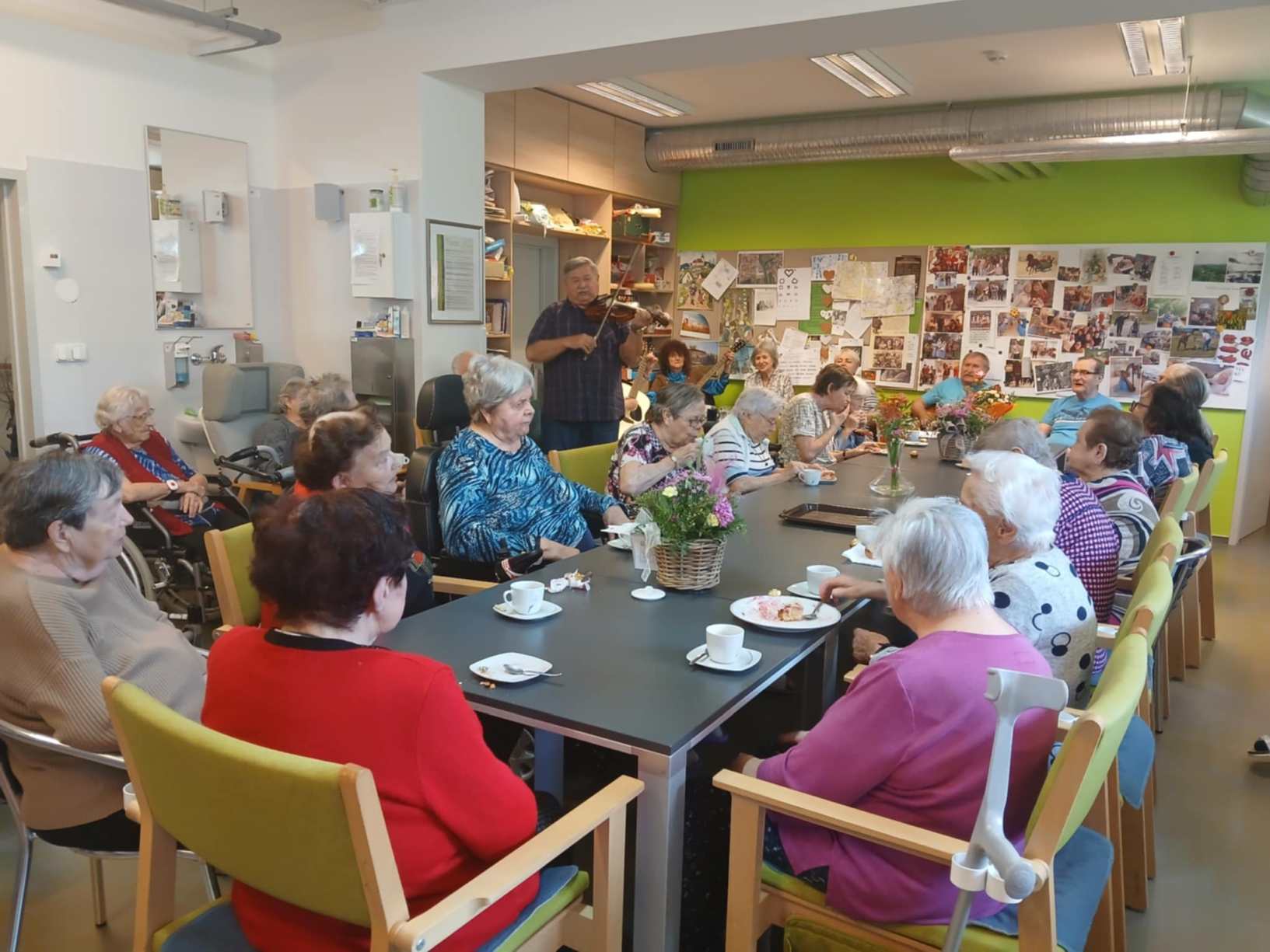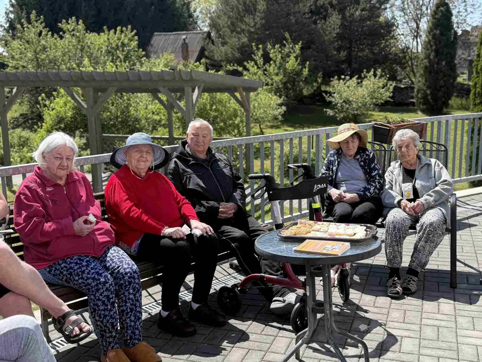 I přes pochmurné květnové počasí jsme nezaháleli. Zabalili jsme vyrobený med. Společnými silami jsme se pustili do výroby dekorace na halu Domova. Připravili jsme si tvarohové pomazánky, rybízový koláč. Zasadili jsme rajčata, papriky a různé květiny. Otrhali jsme meduňku, kterou budeme sušit. Jak jen to šlo, tak jsme trávili čas na zahradě. Dozvěděli jsme se zajímavosti z historie Uhlířských Janovic. Z keramiky jsme vyráběli klíčenky. Květnová kavárnička proběhla za doprovodu kapely Seniorband. Nechybělo pravidelné duchovní setkání v čítárně a nesmíme opomenout zvířecí kamarády. A bylo toho mnohem víc... :)
