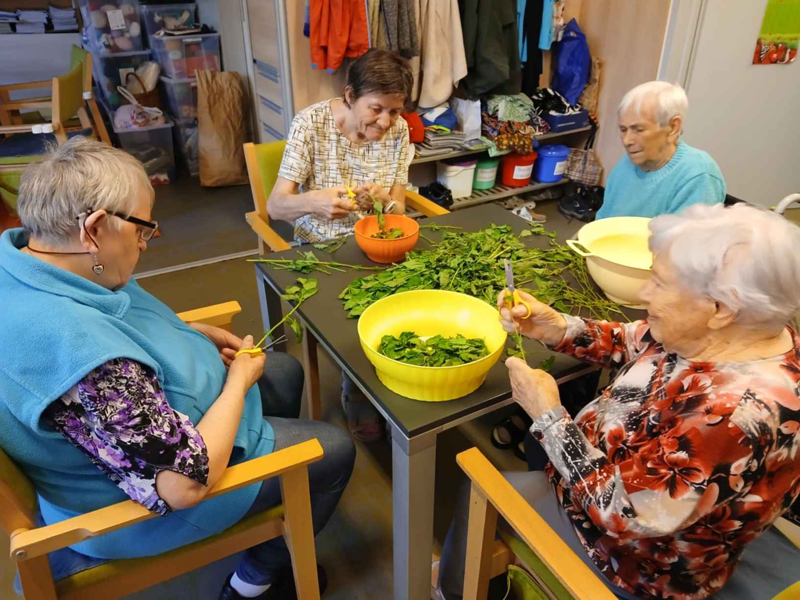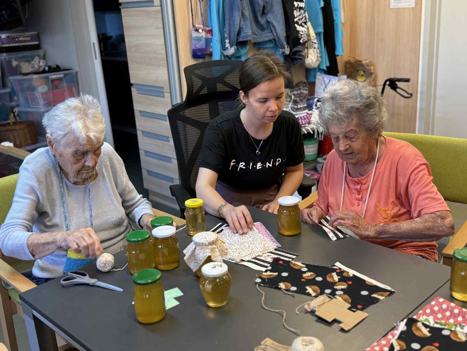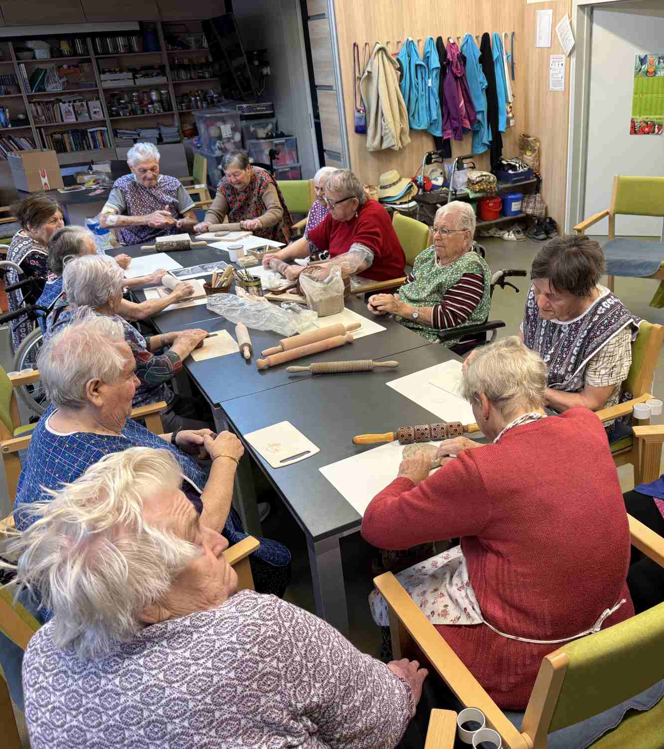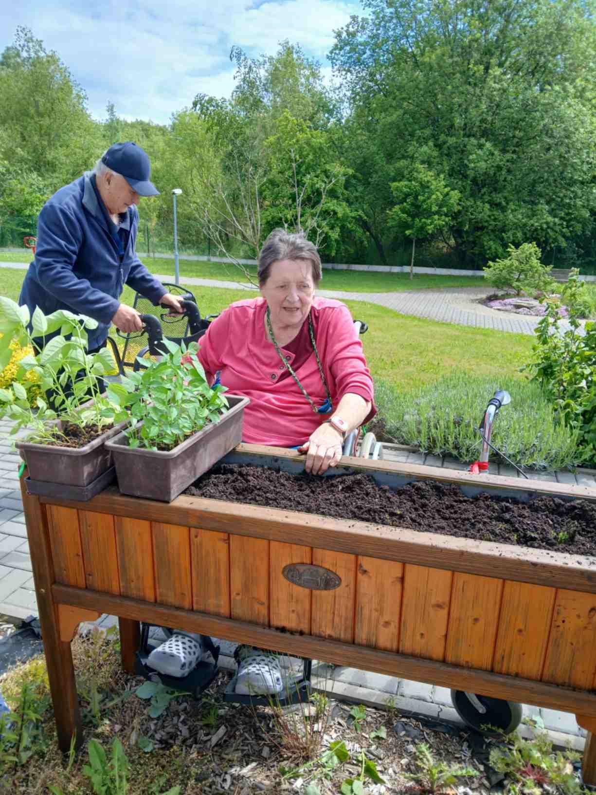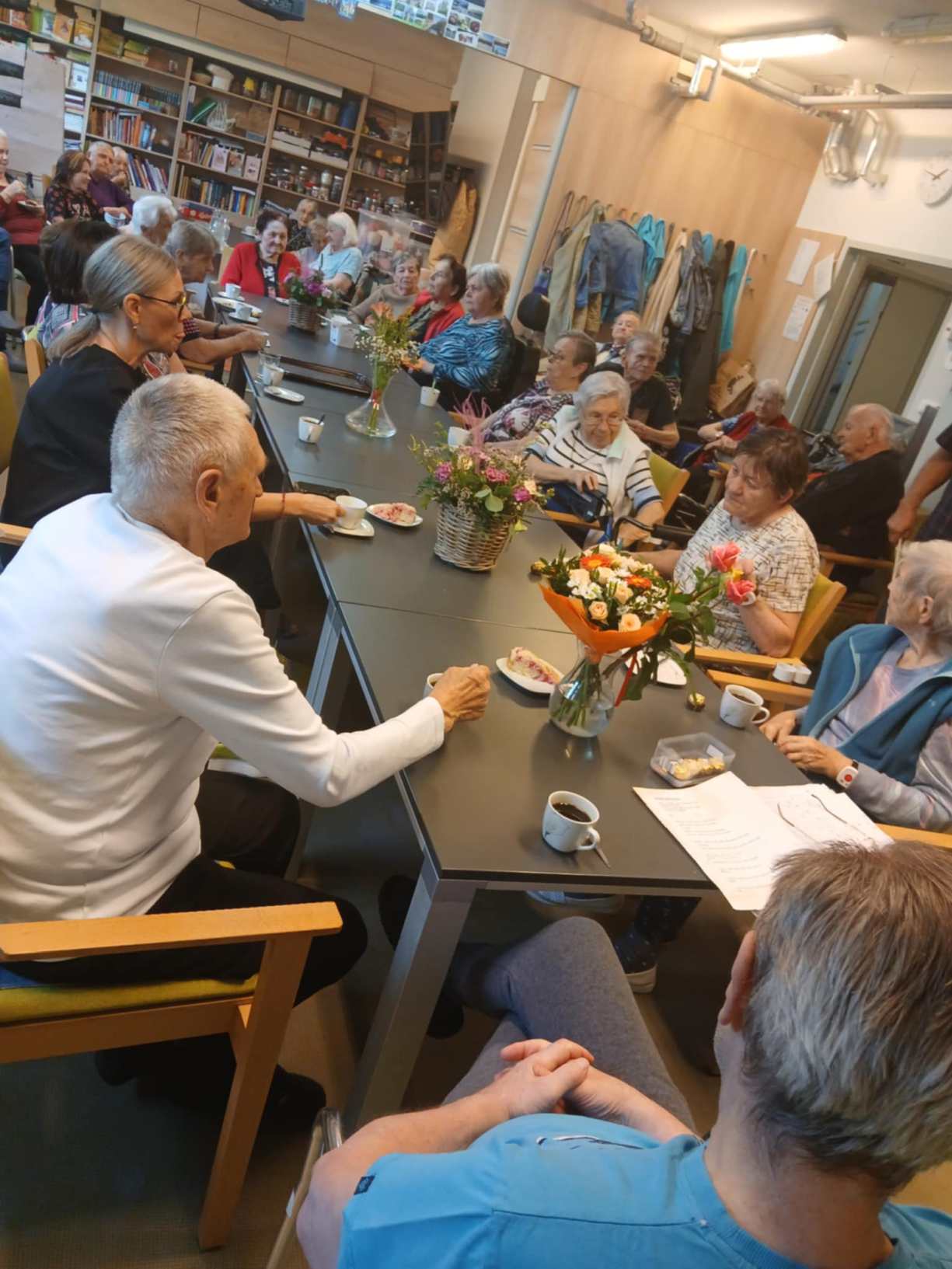 I přes pochmurné květnové počasí jsme nezaháleli. Zabalili jsme vyrobený med. Společnými silami jsme se pustili do výroby dekorace na halu Domova. Připravili jsme si tvarohové pomazánky, rybízový koláč. Zasadili jsme rajčata, papriky a různé květiny. Otrhali jsme meduňku, kterou budeme sušit. Jak jen to šlo, tak jsme trávili čas na zahradě. Dozvěděli jsme se zajímavosti z historie Uhlířských Janovic. Z keramiky jsme vyráběli klíčenky. Květnová kavárnička proběhla za doprovodu kapely Seniorband. Nechybělo pravidelné duchovní setkání v čítárně a nesmíme opomenout zvířecí kamarády. A bylo toho mnohem víc... :)
