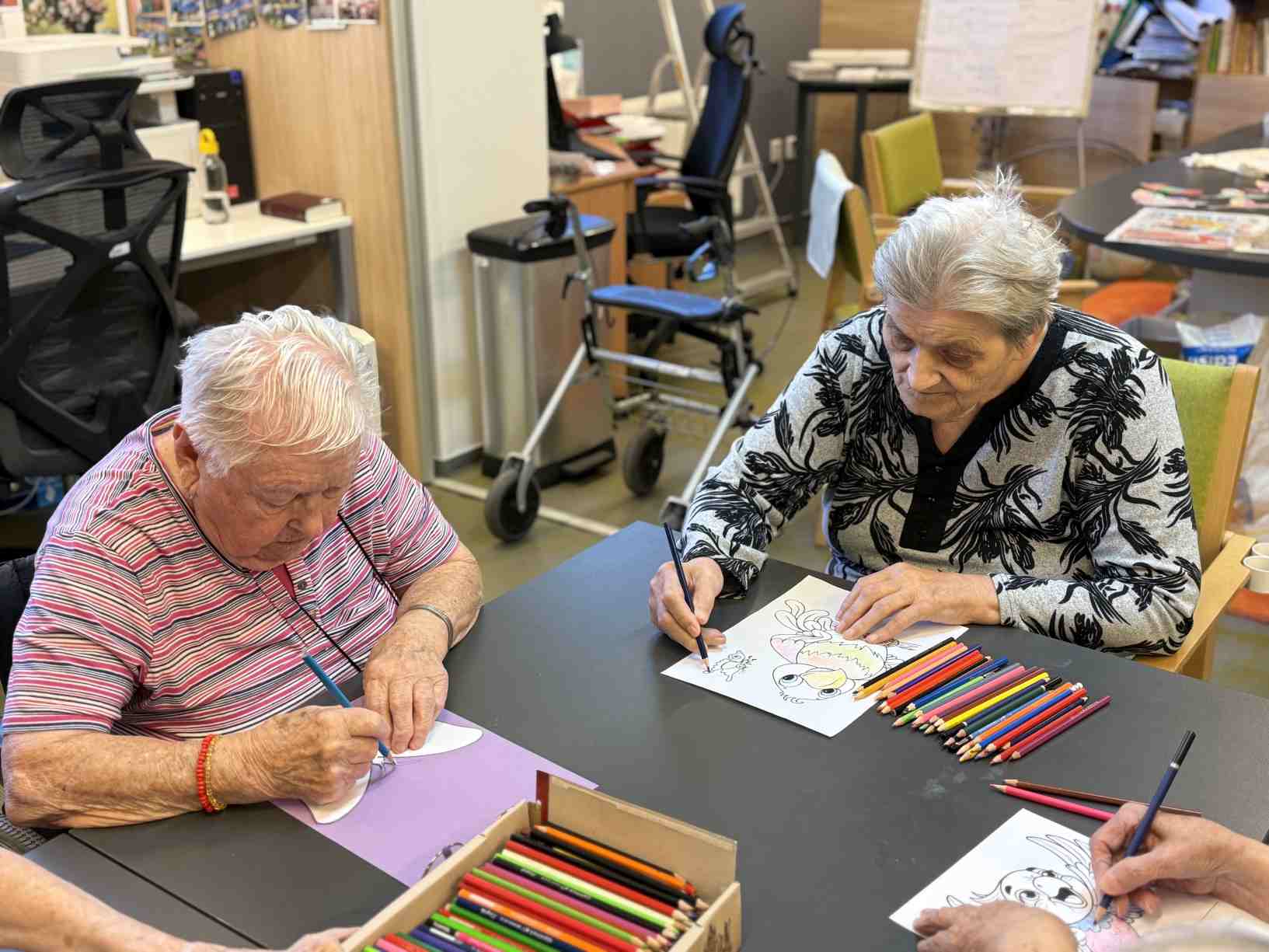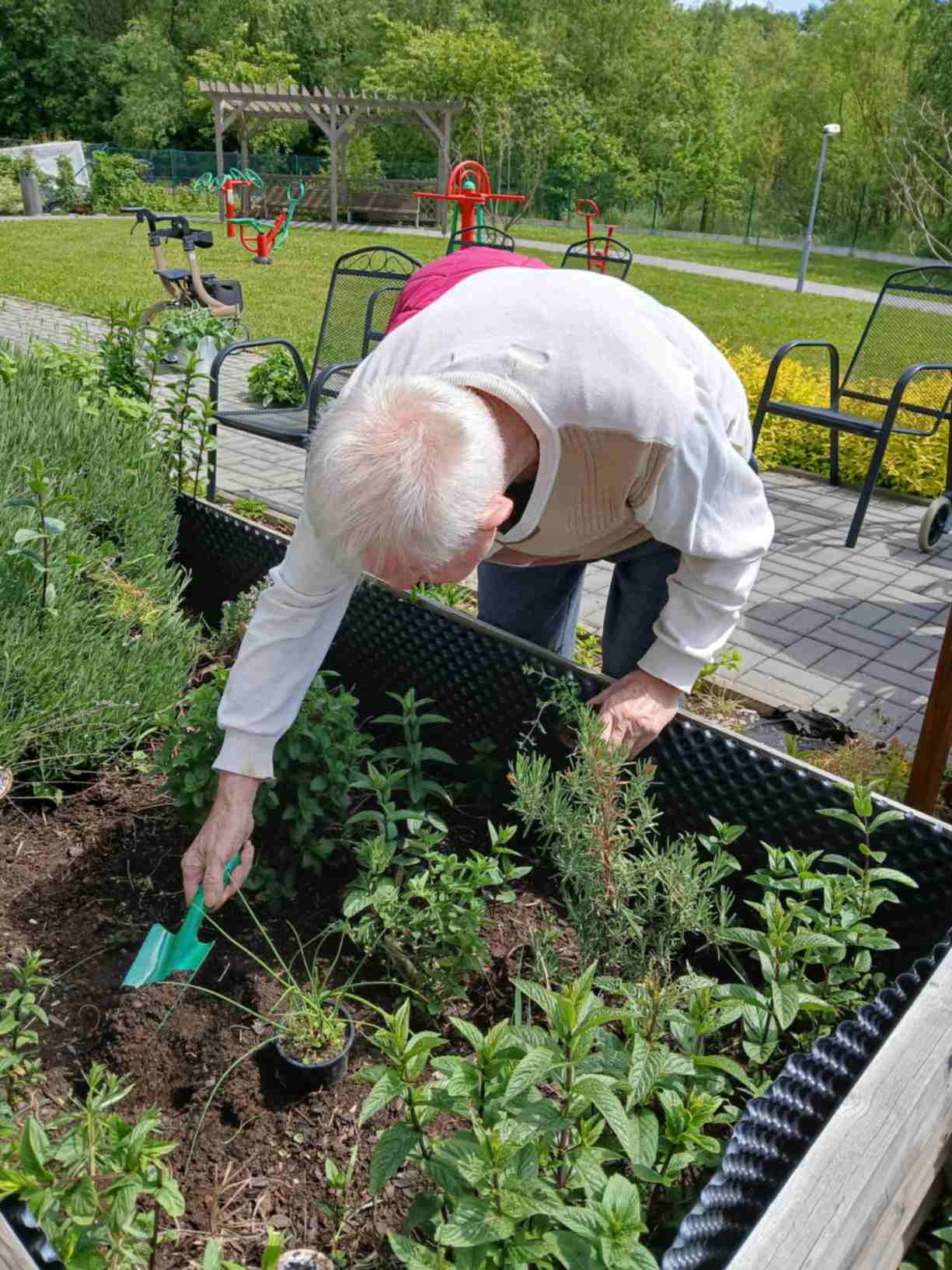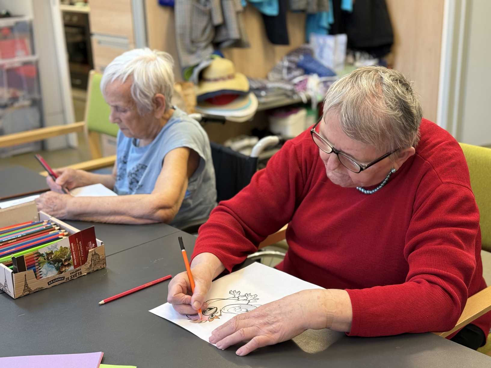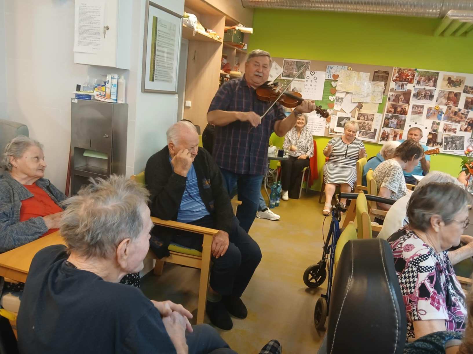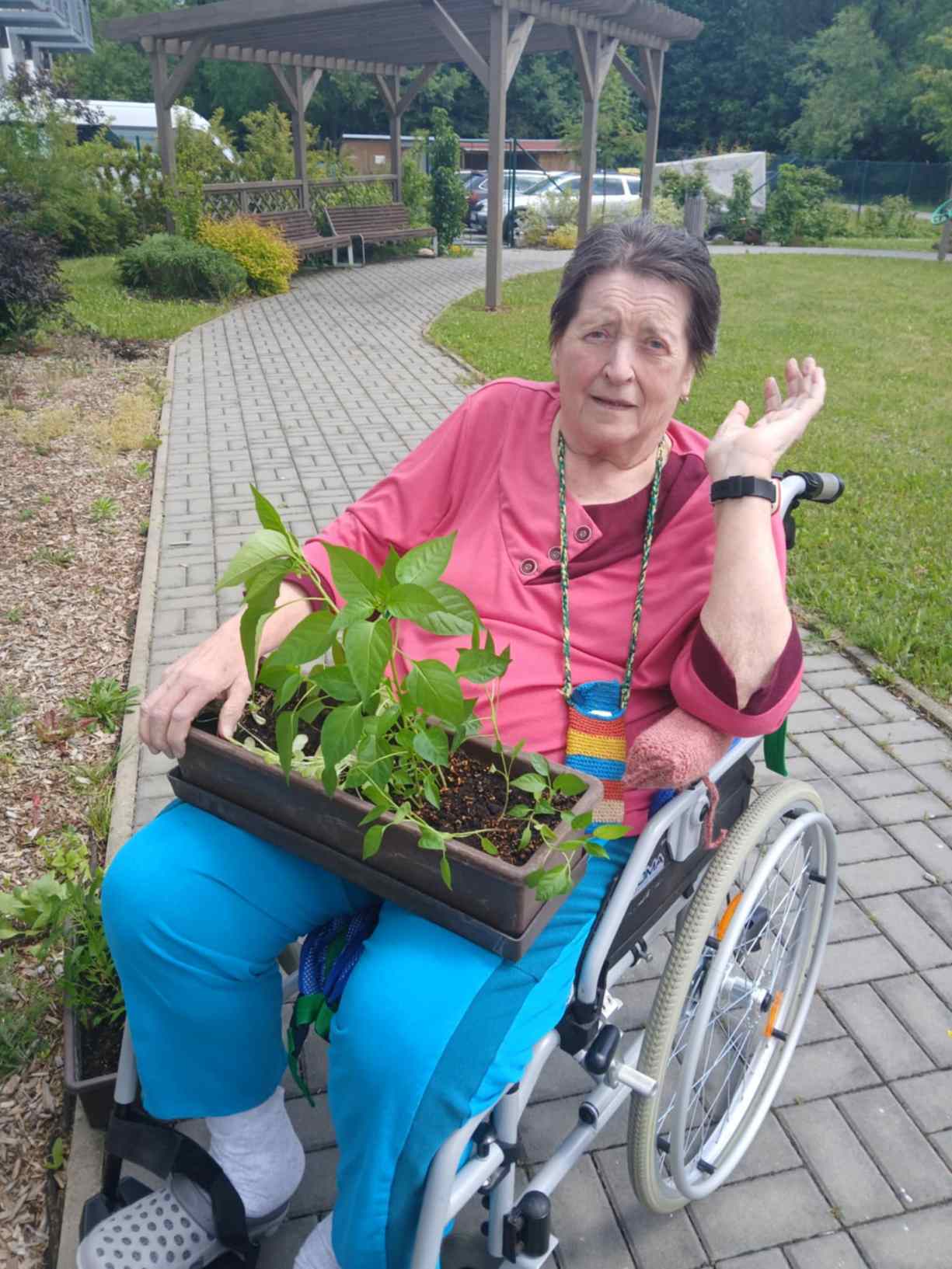 I přes pochmurné květnové počasí jsme nezaháleli. Zabalili jsme vyrobený med. Společnými silami jsme se pustili do výroby dekorace na halu Domova. Připravili jsme si tvarohové pomazánky, rybízový koláč. Zasadili jsme rajčata, papriky a různé květiny. Otrhali jsme meduňku, kterou budeme sušit. Jak jen to šlo, tak jsme trávili čas na zahradě. Dozvěděli jsme se zajímavosti z historie Uhlířských Janovic. Z keramiky jsme vyráběli klíčenky. Květnová kavárnička proběhla za doprovodu kapely Seniorband. Nechybělo pravidelné duchovní setkání v čítárně a nesmíme opomenout zvířecí kamarády. A bylo toho mnohem víc... :)