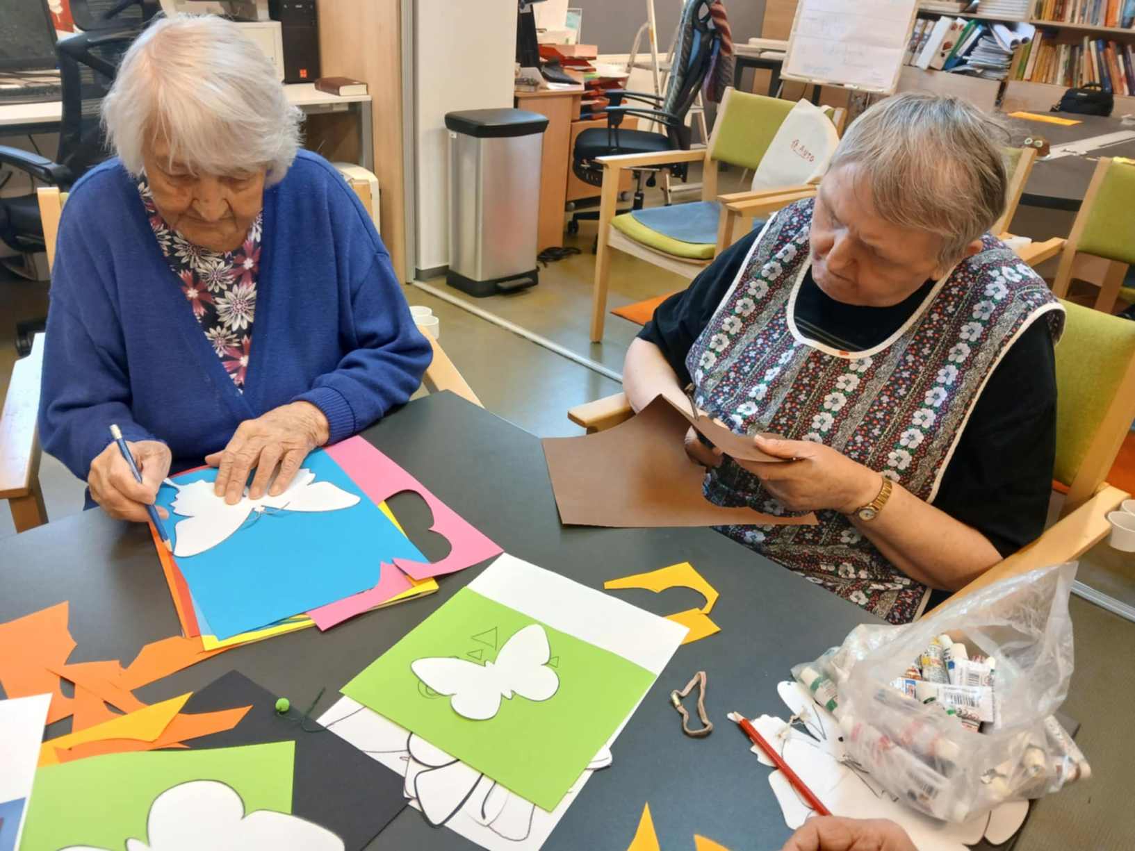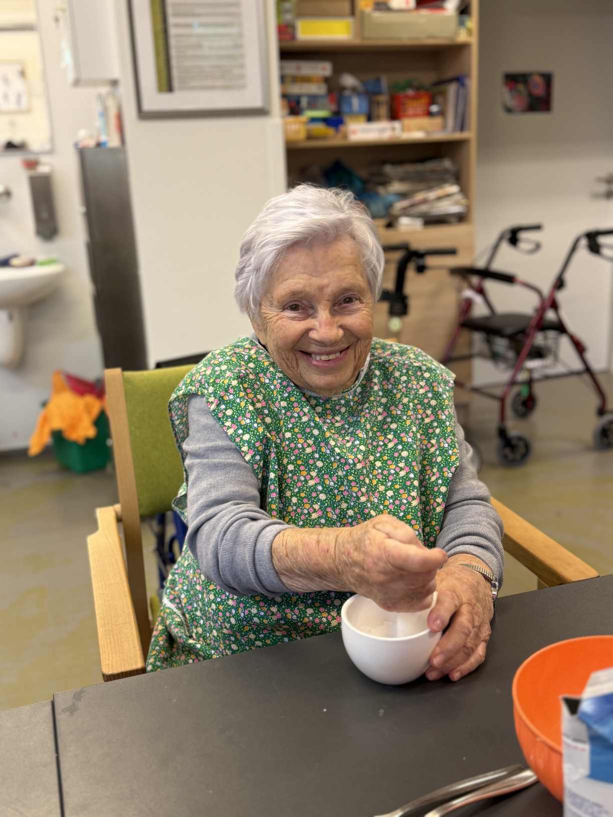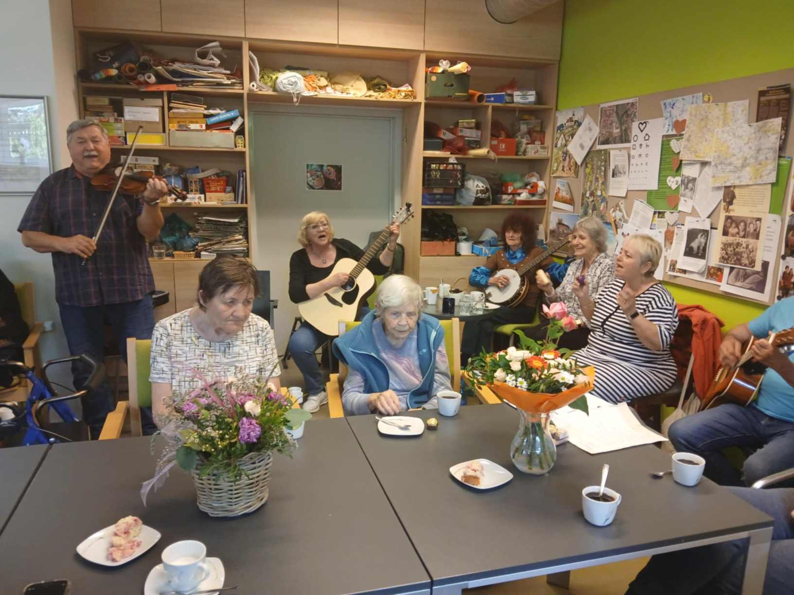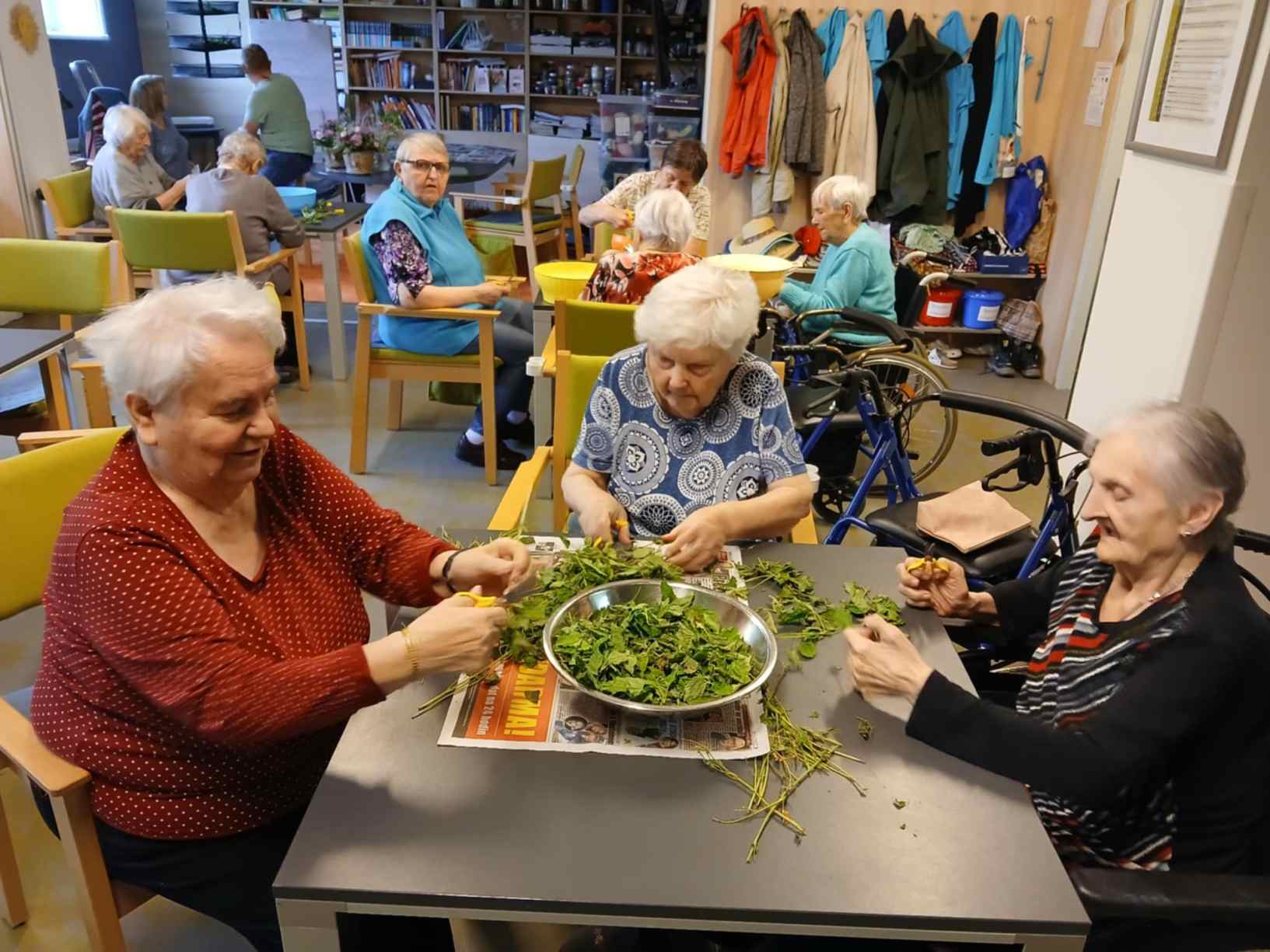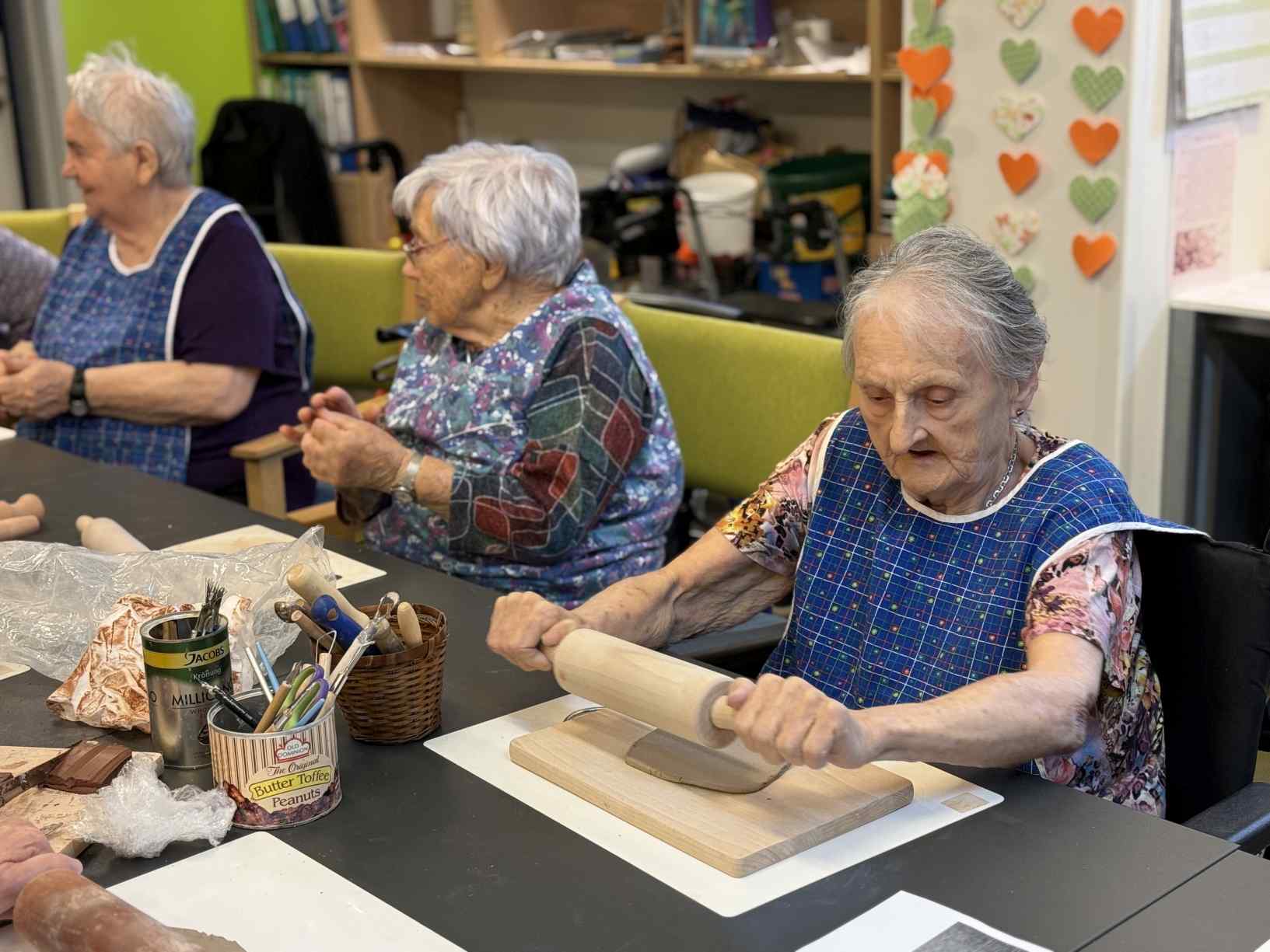 I přes pochmurné květnové počasí jsme nezaháleli. Zabalili jsme vyrobený med. Společnými silami jsme se pustili do výroby dekorace na halu Domova. Připravili jsme si tvarohové pomazánky, rybízový koláč. Zasadili jsme rajčata, papriky a různé květiny. Otrhali jsme meduňku, kterou budeme sušit. Jak jen to šlo, tak jsme trávili čas na zahradě. Dozvěděli jsme se zajímavosti z historie Uhlířských Janovic. Z keramiky jsme vyráběli klíčenky. Květnová kavárnička proběhla za doprovodu kapely Seniorband. Nechybělo pravidelné duchovní setkání v čítárně a nesmíme opomenout zvířecí kamarády. A bylo toho mnohem víc... :)